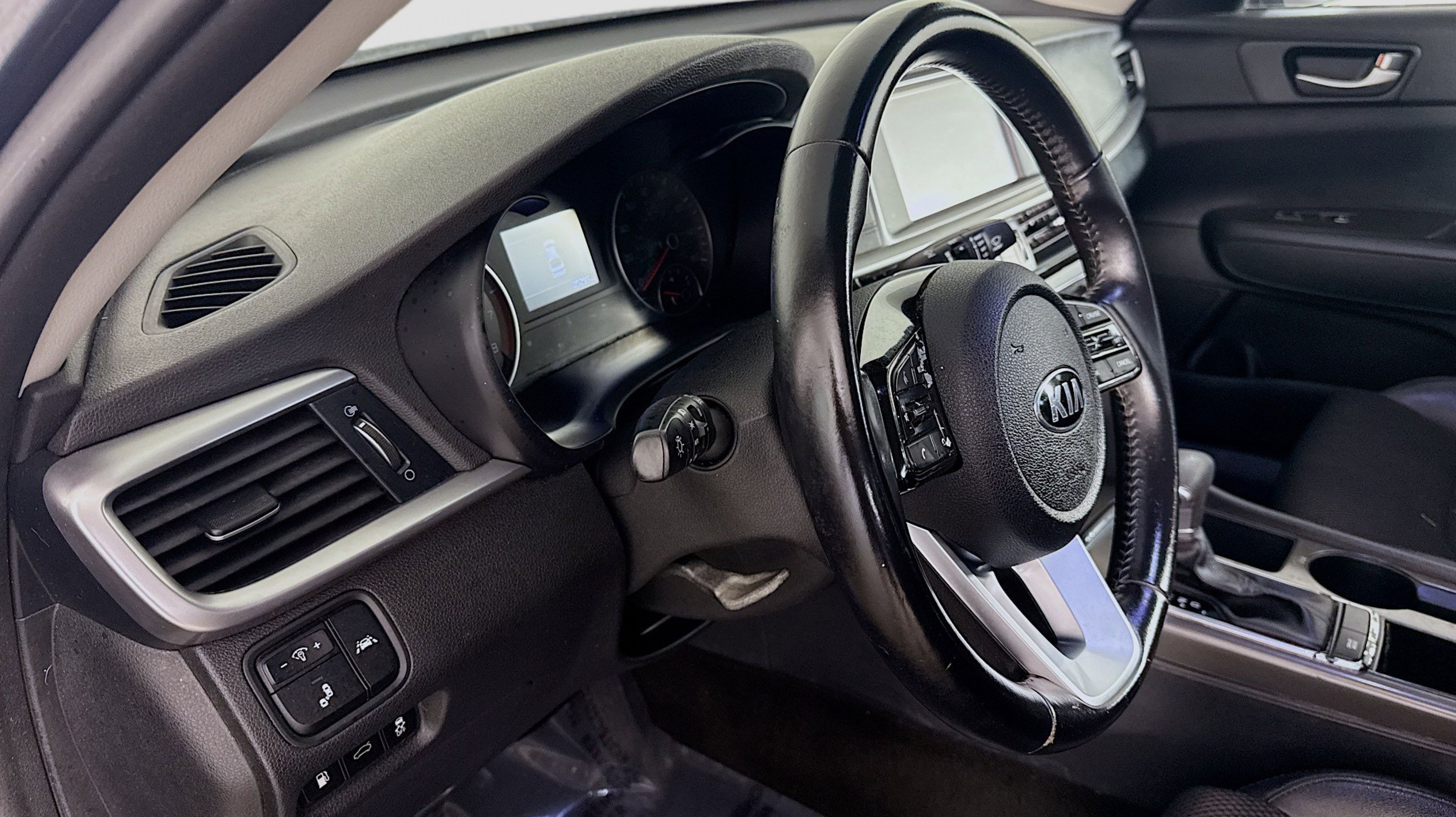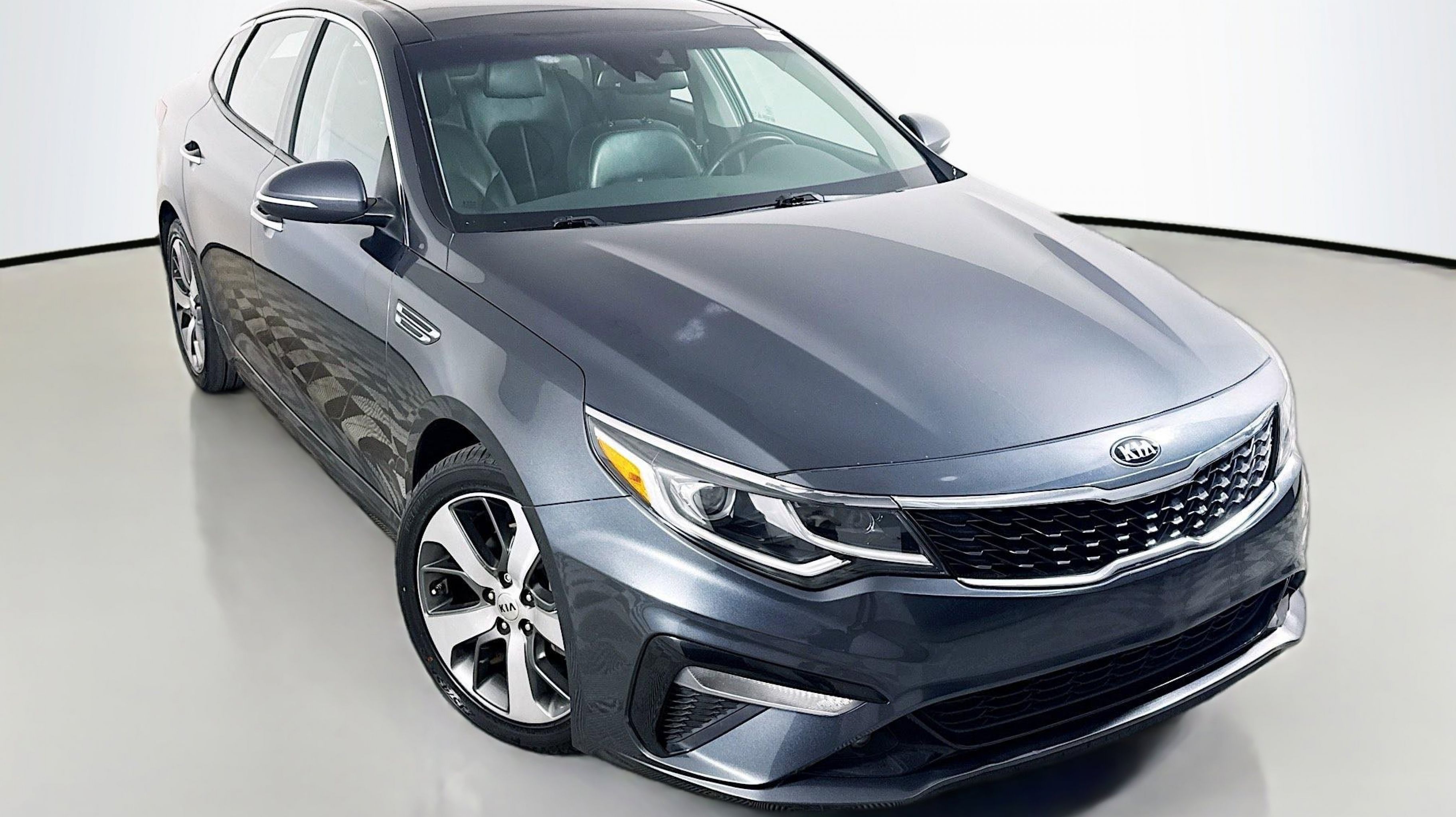 Horizon Blue 2019 Kia Optima S FWD 6-Speed Automatic with Sportmatic 2.4L I4 DGI DOHC Black w/Cloth Seat Trim, LED Overhead Front & Rear Reading Lights, Panoramic Sunroof, S Panoramic Sunroof Package, 4-Wheel Disc Brakes, 6 Speakers, ABS brakes, Air Conditioning, Alloy wheels, AM/FM radio: SiriusXM, Anti-whiplash front head restraints, Apple CarPlay & Android Auto, Auto High-beam Headlights, Auto-dimming Rear-View mirror, Automatic temperature control, Brake assist, Bumpers: body-color, Cargo Tray, Carpet Floor Mats, Delay-off headlights, Driver door bin, Driver vanity mirror, Dual front impact airbags, Dual front side impact airbags, Electronic Stability Control, Emergency communication system: UVO eServices, Four wheel independent suspension, Front anti-roll bar, Front Bucket Seats, Front Center Armrest, Front dual zone A/C, Front fog lights, Front reading lights, Fully automatic headlights, Heated door mirrors, Illuminated entry, Knee airbag, Leather steering wheel, Low tire pressure warning, Occupant sensing airbag, Outside temperature display, Overhead airbag, Overhead console, Panic alarm, Passenger door bin, Passenger vanity mirror, Power door mirrors, Power driver seat, Power steering, Power windows, Radio data system, Radio: AM/FM/MP3/SiriusXM Audio System, Rear anti-roll bar, Rear seat center armrest, Rear window defroster, Remote keyless entry, Security system, Speed control, Speed-sensing steering, Split folding rear seat, Spoiler, Sport Cloth Seat Trim, Steering wheel mounted audio controls, Tachometer, Telescoping steering wheel, Tilt steering wheel, Traction control, Trip computer, Turn signal indicator mirrors, Variably intermittent wipers, Wheels: 7.5J x 18 Machine Finish Alloy, Black w/Cloth Seat Trim, LED Overhead Front & Rear Reading Lights, Panoramic Sunroof, S Panoramic Sunroof Package.