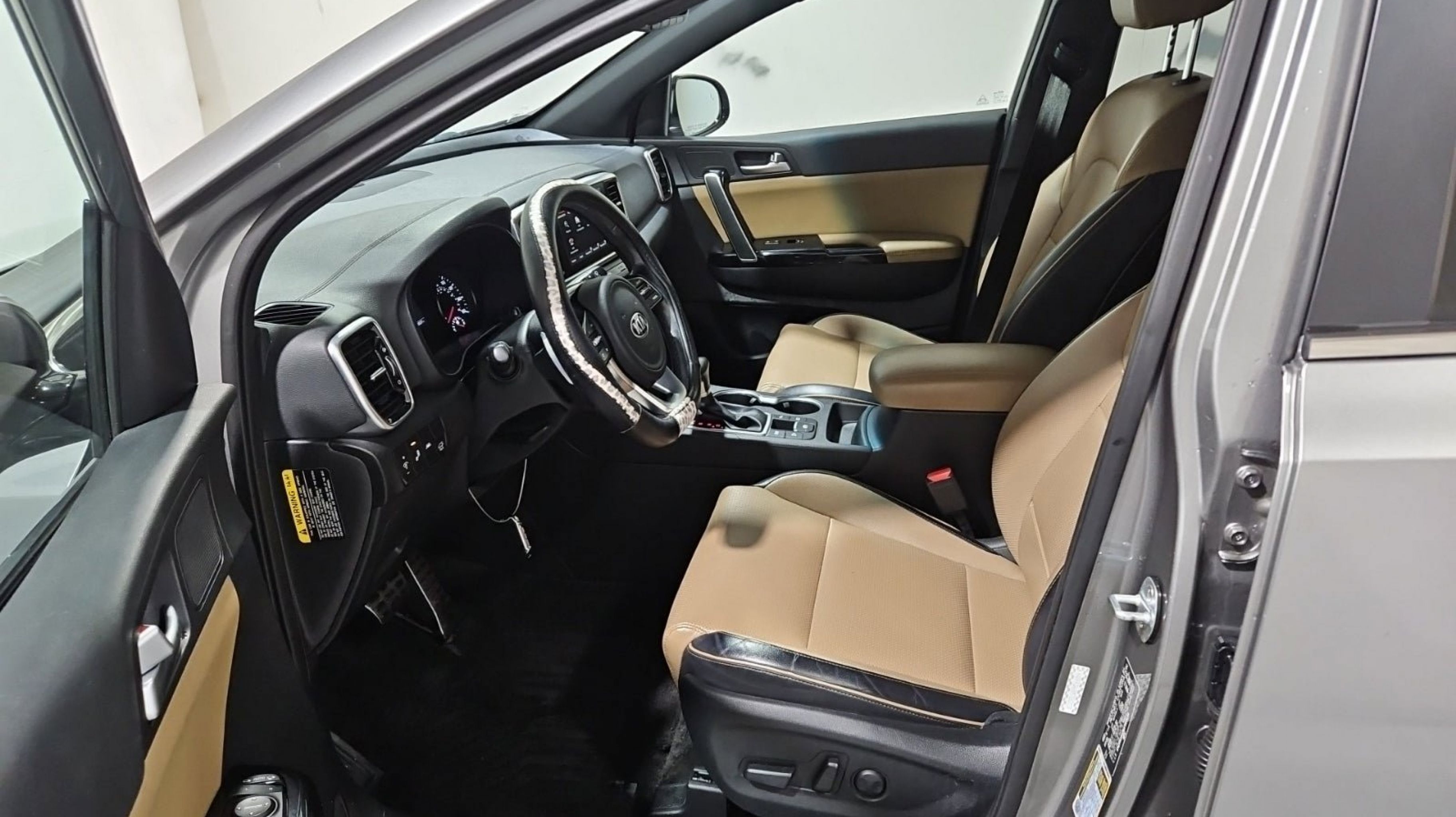 Steel Gray 2021 Kia Sportage SX FWD 6-Speed Automatic Electronic with Overdrive 2.0L I4 DGI Turbocharged SX Turbo Beige Interior Color Package, 19 Alloy Wheels, 4-Wheel Disc Brakes, 8 Speakers, ABS brakes, Air Conditioning, Alloy wheels, AM/FM radio: SiriusXM, Apple CarPlay & Android Auto, Auto High-beam Headlights, Auto-dimming Rear-View mirror, Automatic temperature control, Axle Ratio: 3.32, Brake assist, Bumpers: body-color, Carpet Floor Mats, Compass, Delay-off headlights, Driver door bin, Driver vanity mirror, Dual front impact airbags, Dual front side impact airbags, Electronic Stability Control, Emergency communication system: UVO link, Exterior Parking Camera Rear, Four wheel independent suspension, Front anti-roll bar, Front Bucket Seats, Front Center Armrest, Front dual zone A/C, Front fog lights, Front reading lights, Fully automatic headlights, Garage door transmitter: HomeLink, Heated & Ventilated Front Bucket Seats, Heated door mirrors, Heated front seats, Heated steering wheel, Illuminated entry, Leather Seat Trim, Leather Shift Knob, Leather steering wheel, Low tire pressure warning, Navigation System, Occupant sensing airbag, Outside temperature display, Overhead airbag, Overhead console, Panic alarm, PANORAMA SUNROOF, Passenger door bin, Passenger vanity mirror, Power door mirrors, Power driver seat, Power Liftgate, Power passenger seat, Power steering, Power windows, Radio: AM/FM/SiriusXM Audio System, Rear anti-roll bar, Rear Bumper APPLIQUE, Rear seat center armrest, Rear window defroster, Rear window wiper, Remote keyless entry, Roof rack: rails only, Security system, Speed control, Speed-sensing steering, Split folding rear seat, Spoiler, Sport steering wheel, Steering wheel mounted audio controls, Tachometer, Telescoping steering wheel, Tilt steering wheel, Traction control, Trip computer, Turn signal indicator mirrors, Variably intermittent wipers, Ventilated front seats, SX Turbo Beige Interior Color Package.