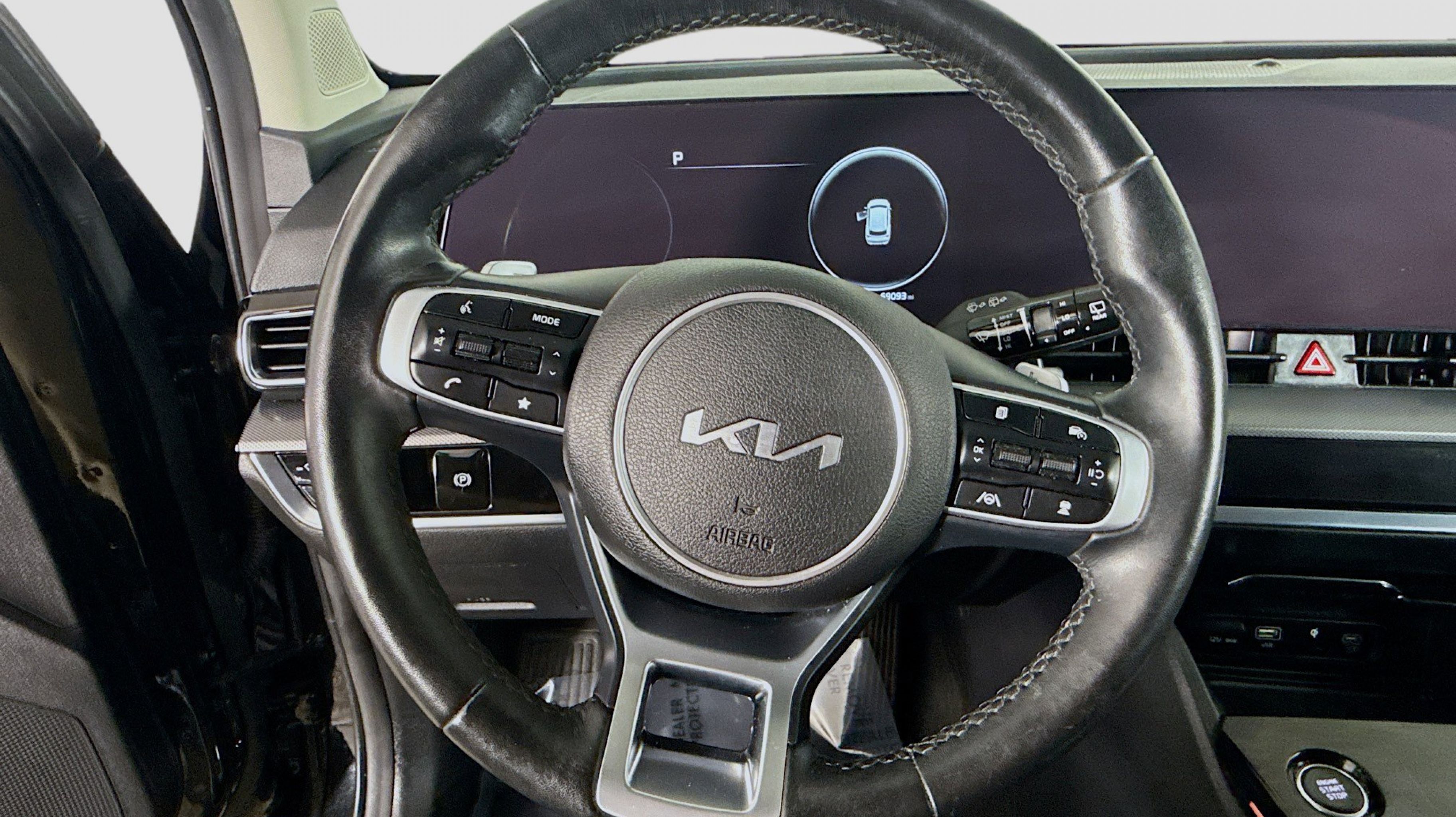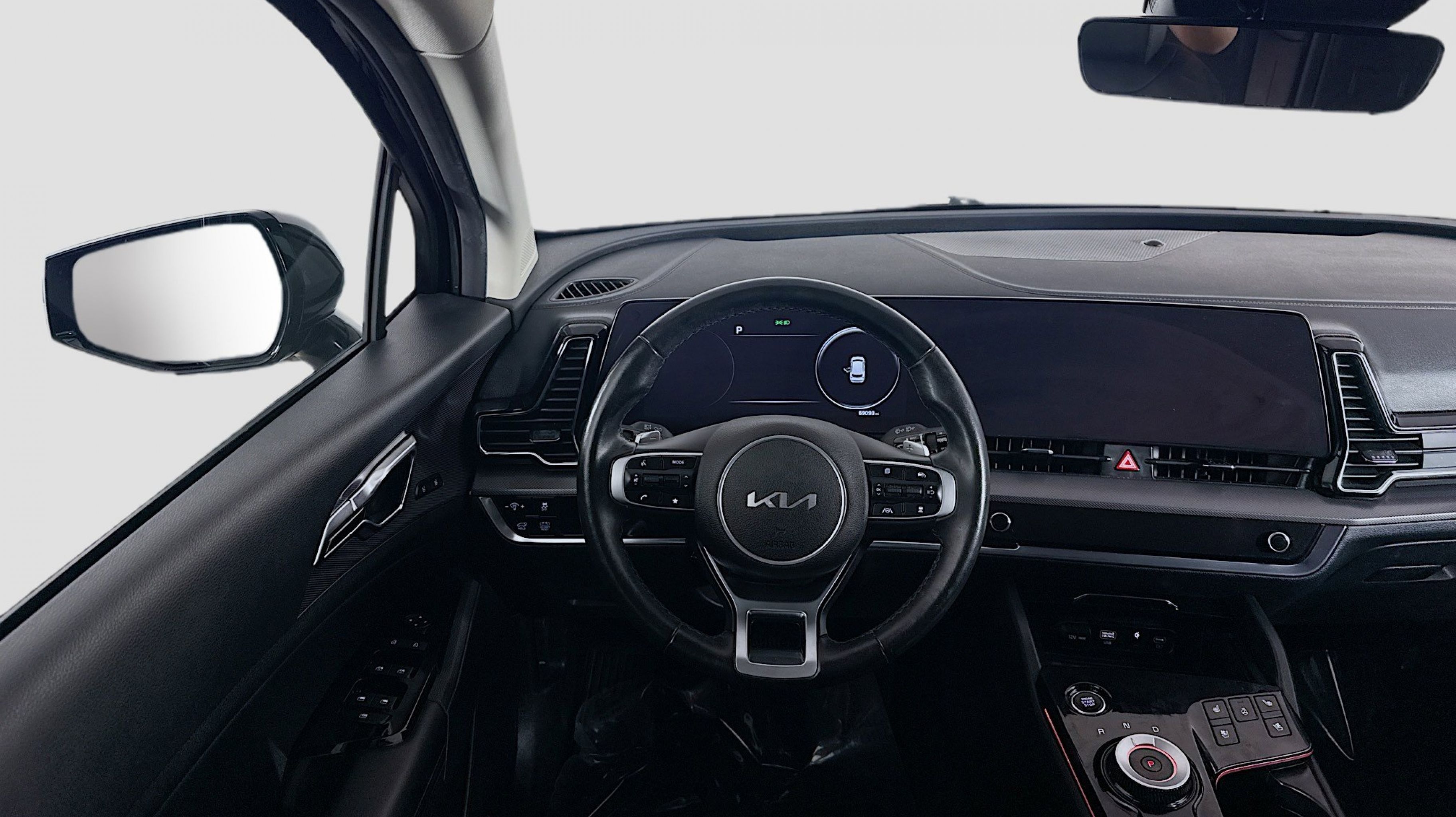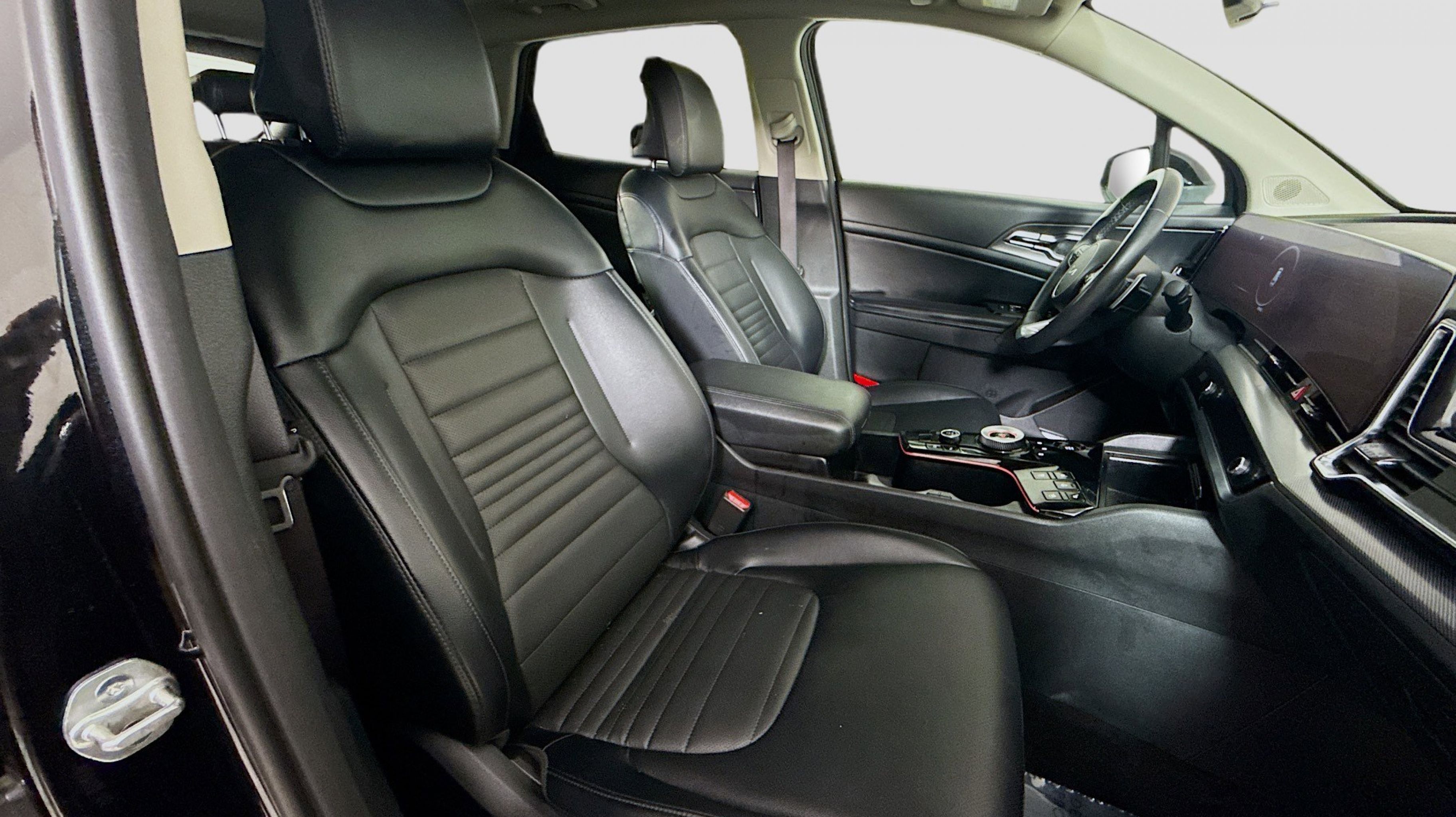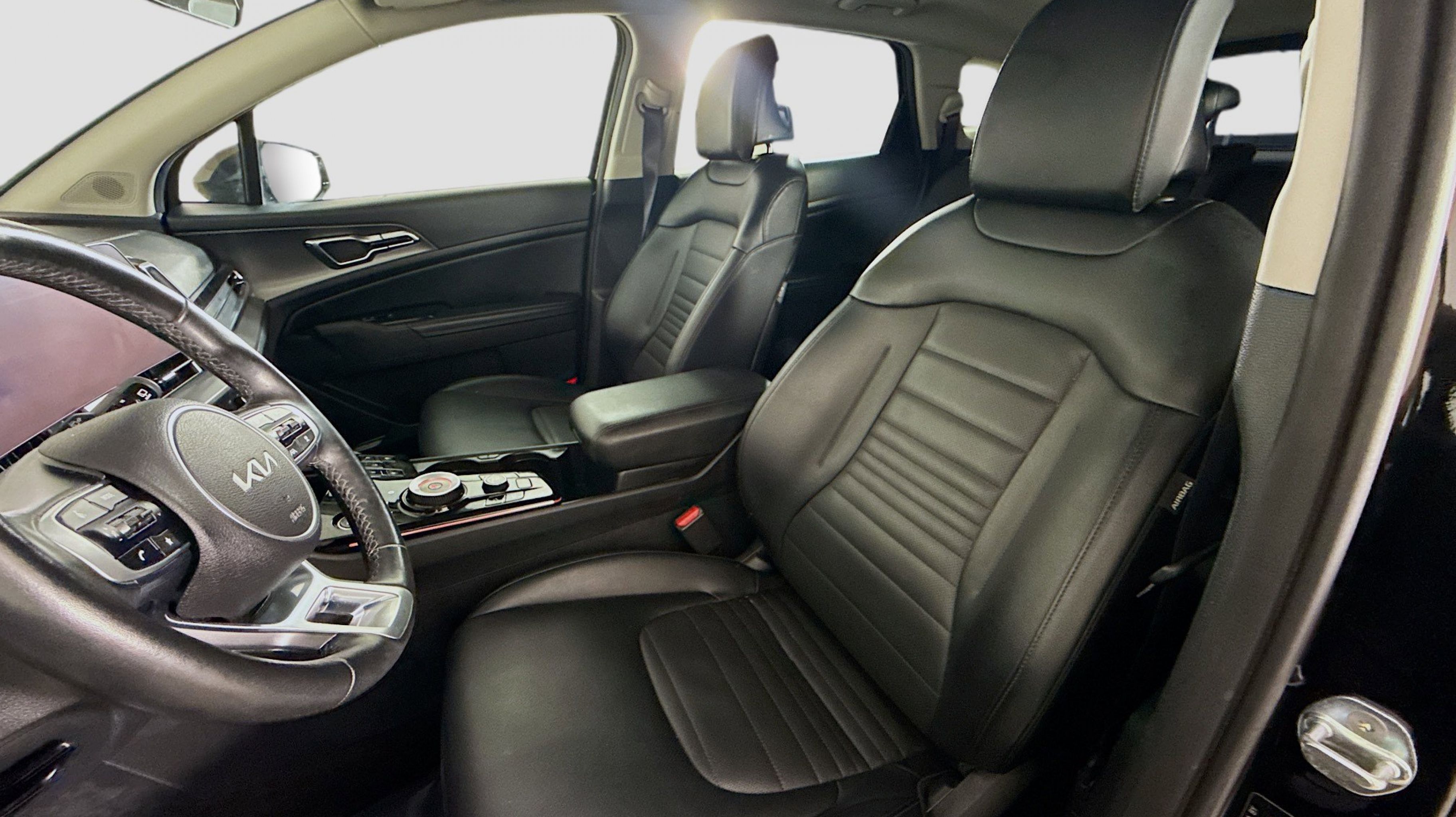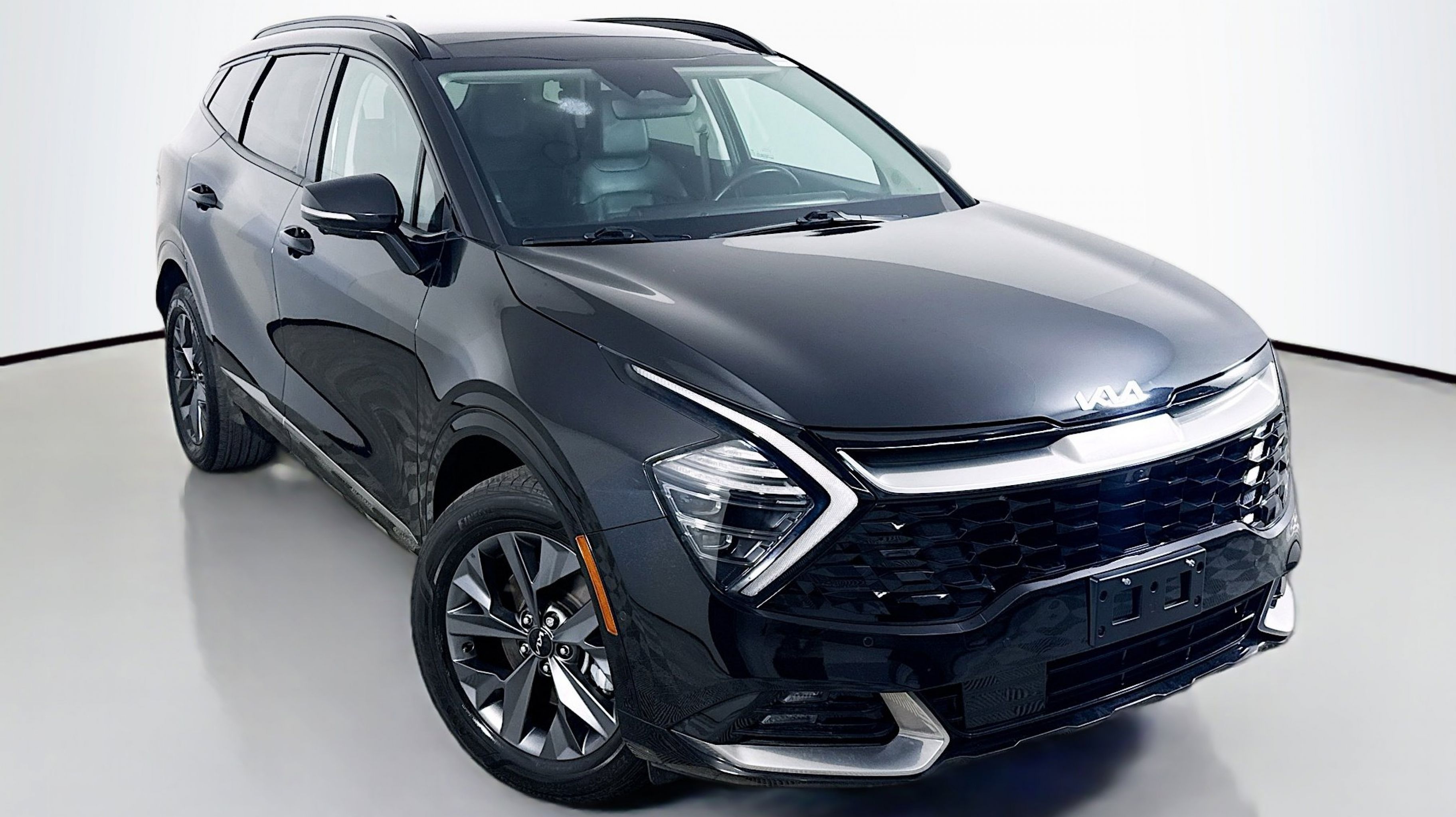 Fusion Black 2023 Kia Sportage Hybrid SX-Prestige AWD 6-Speed Automatic 1.6L Turbo GDI 4-Cylinder 1.6L Turbo GDI 4-Cylinder, 4-Wheel Disc Brakes, 8 Speakers, ABS brakes, Air Conditioning, Alloy wheels, AM/FM radio: SiriusXM, Apple CarPlay & Android Auto, Auto High-beam Headlights, Auto-dimming Rear-View mirror, Automatic temperature control, Axle Ratio: 3.32, Brake assist, Bumpers: body-color, Carpet Floor Mats, Compass, Delay-off headlights, Driver door bin, Driver vanity mirror, Dual front impact airbags, Dual front side impact airbags, Electronic Stability Control, Emergency communication system, Four wheel independent suspension, Front anti-roll bar, Front Bucket Seats, Front Center Armrest, Front dual zone A/C, Front fog lights, Front reading lights, Fully automatic headlights, Garage door transmitter: HomeLink, harman/kardon® Speakers, Heated & Ventilated Front Bucket Seats, Heated door mirrors, Heated front seats, Heated steering wheel, Illuminated entry, Low tire pressure warning, Memory seat, Navigation System, Occupant sensing airbag, Outside temperature display, Overhead airbag, Overhead console, Panic alarm, PANORAMA SUNROOF, Passenger door bin, Passenger vanity mirror, Power door mirrors, Power driver seat, Power Liftgate, Power passenger seat, Power steering, Power windows, Radio: AM/FM/HD Premium Audio System, Rain sensing wipers, Rear anti-roll bar, Rear reading lights, Rear seat center armrest, Rear window defroster, Rear window wiper, Remote keyless entry, Security system, Speed control, Speed-sensing steering, Split folding rear seat, Spoiler, Steering wheel mounted audio controls, SynTex Premium Leatherette Seat Trim, Tachometer, Telescoping steering wheel, Tilt steering wheel, Traction control, Trip computer, Turn signal indicator mirrors, Variably intermittent wipers, Ventilated front seats, Wheels: 18 x 7.5J Dark Alloy, 1.6L Turbo GDI 4-Cylinder.