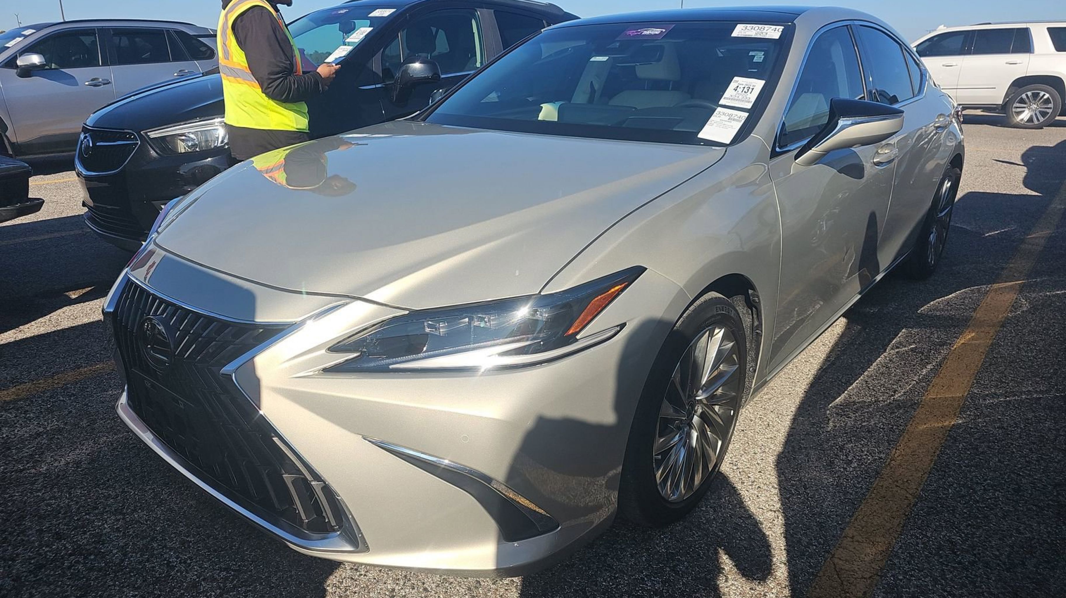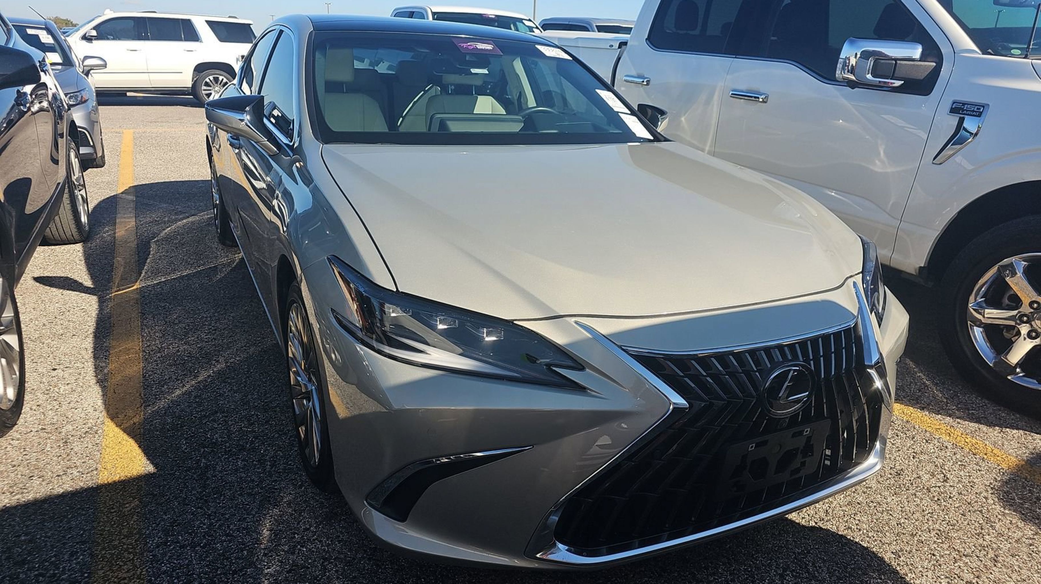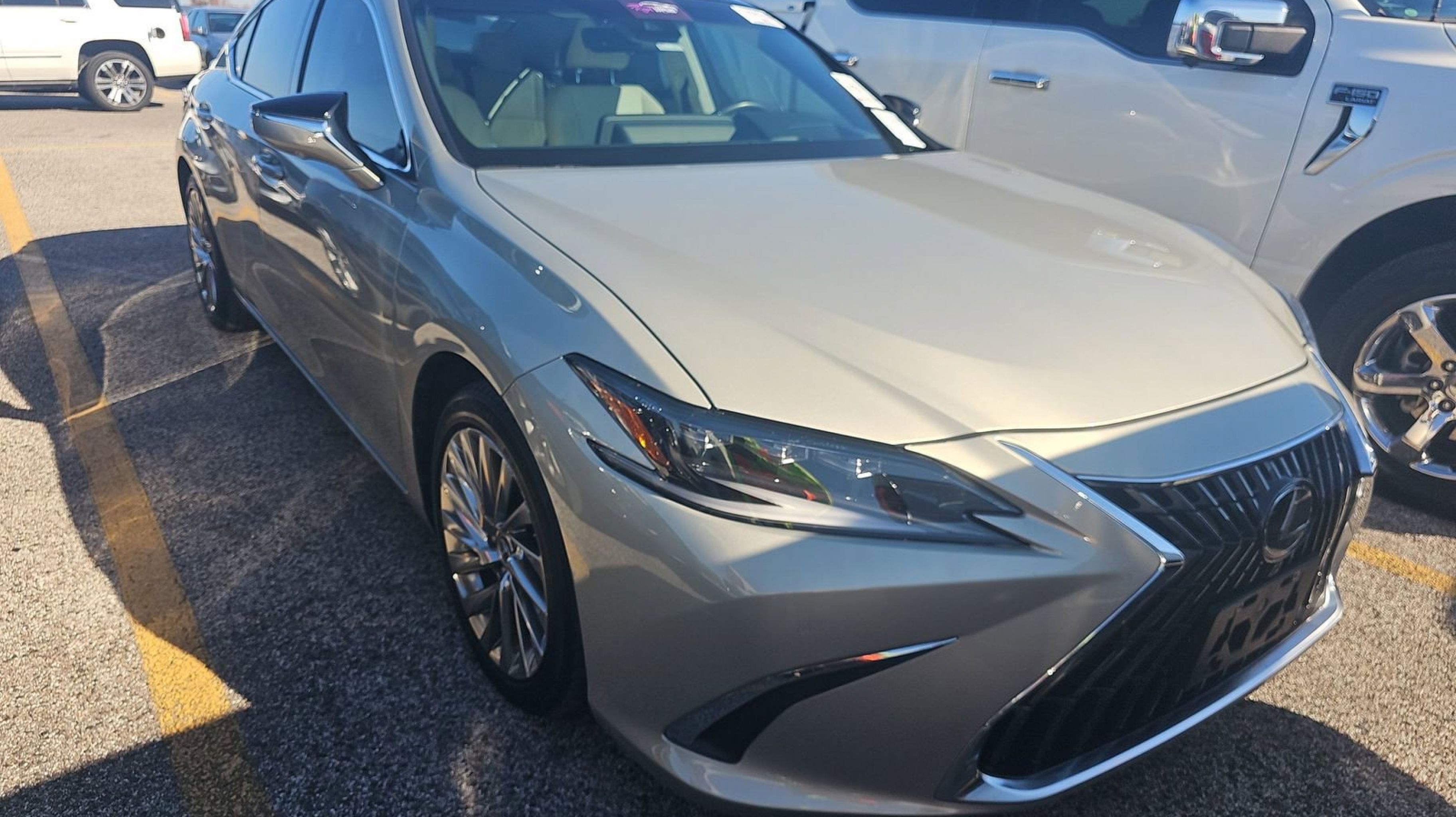 Moonbeam Beige Metallic 2022 Lexus ES 350 Ultra Luxury FWD 8-Speed Automatic 3.5L V6 DOHC 24V Rich Cream w/Black Open Pore w/Perforated Leather Seat Trim, 10.2 Head-Up Display (HUD), Accessory Package 2 (PPO), Acoustic Side Glass, Alloy Wheel Locks, Auto Braking Protection, Back Monitor, Cargo Net (PPO), Carpet Trunk Mat (PPO), Front & Rear Performance Rods, Hands-Free Power Open/Close Trunk, Heated & Ventilated Seats, Intelligent Clearance Sonar, Intuitive Parking Assist & Panoramic View Monitor, Key Gloves (PPO), Parking Support Alert/Brake, Power Rear Sunshade, Power Tilt/Telescoping Steering Wheel w/Memory, Rain Sensing Wipers, Rear Bumper APPLIQUE, Rear Pedestrian Detection, Ultra Luxury Package, Windshield De-Icer, Wireless Charger, Wood Trim w/Ambient Lighting, 10 Speakers, 10-Way Power Adjustable Front Seats, 4-Wheel Disc Brakes, ABS brakes, Air Conditioning, All-Weather Floor Liners w/Trunk Tray (PPO), Alloy wheels, AM/FM radio: SiriusXM, Apple CarPlay/Android Auto, Auto High-beam Headlights, Auto tilt-away steering wheel, Auto-dimming door mirrors, Auto-dimming Rear-View mirror, Automatic temperature control, Brake assist, Bumpers: body-color, CD player, Compass, Delay-off headlights, Door Edge Film by 3M (PPO), Driver door bin, Driver vanity mirror, Dual front impact airbags, Dual front side impact airbags, Electrochromic Rear-View Mirror, Electronic Stability Control, Emergency communication system, Exterior Parking Camera Rear, Four wheel independent suspension, Front anti-roll bar, Front Bucket Seats, Front Center Armrest, Front dual zone A/C, Front reading lights, Fully automatic headlights, Garage door transmitter: HomeLink, Genuine wood dashboard insert, Genuine wood door panel insert, Heads-Up Display, Heated door mirrors, Heated front seats, Heated steering wheel, Illuminated entry, Illuminated Trunk Sill (PPO), Key Card, Knee airbag, Leather Shift Knob, Leather steering wheel, Low tire pressure warning, Memory seat, Navigation System, Navigation w/Mark Levinson Audio, Occupant sensing airbag, Outside temperature display, Overhead airbag, Overhead console, Panic alarm, PANORAMA SUNROOF, Panoramic Glass Roof, Passenger door bin, Passenger vanity mirror, Power door mirrors, Power driver seat, Power passenger seat, Power steering, Power windows, Radio data system, Radio: Lexus Multimedia System, Rain sensing wipers, Rear anti-roll bar, Rear reading lights, Rear seat center armrest, Rear side impact airbag, Rear Spoiler, Rear Window Blind, Rear window defroster, Remote keyless entry, Security system, Semi-Aniline Leather Seat Trim, Speed control, Speed-sensing steering, Steering wheel memory, Steering wheel mounted audio controls, Tachometer, Telescoping steering wheel, Tilt steering wheel, Traction control, Trip computer, Triple Beam LED Headlamps, Turn signal indicator mirrors, Variably intermittent wipers, Ventilated front seats, Wheels: 18 x 8J Split-5-Spoke Alloy, Rich Cream w/Black Open Pore w/Perforated Leather Seat Trim, 10.2 Head-Up Display (HUD), Accessory Package 2 (PPO), Acoustic Side Glass, Alloy Wheel Locks, Auto Braking Protection, Back Monitor, Cargo Net (PPO), Carpet Trunk Mat (PPO), Front & Rear Performance Rods, Hands-Free Power Open/Close Trunk, Heated & Ventilated Seats, Intelligent Clearance Sonar, Intuitive Parking Assist & Panoramic View Monitor, Key Gloves (PPO), Parking Support Alert/Brake, Power Rear Sunshade, Power Tilt/Telescoping Steering Wheel w/Memory, Rain Sensing Wipers,
