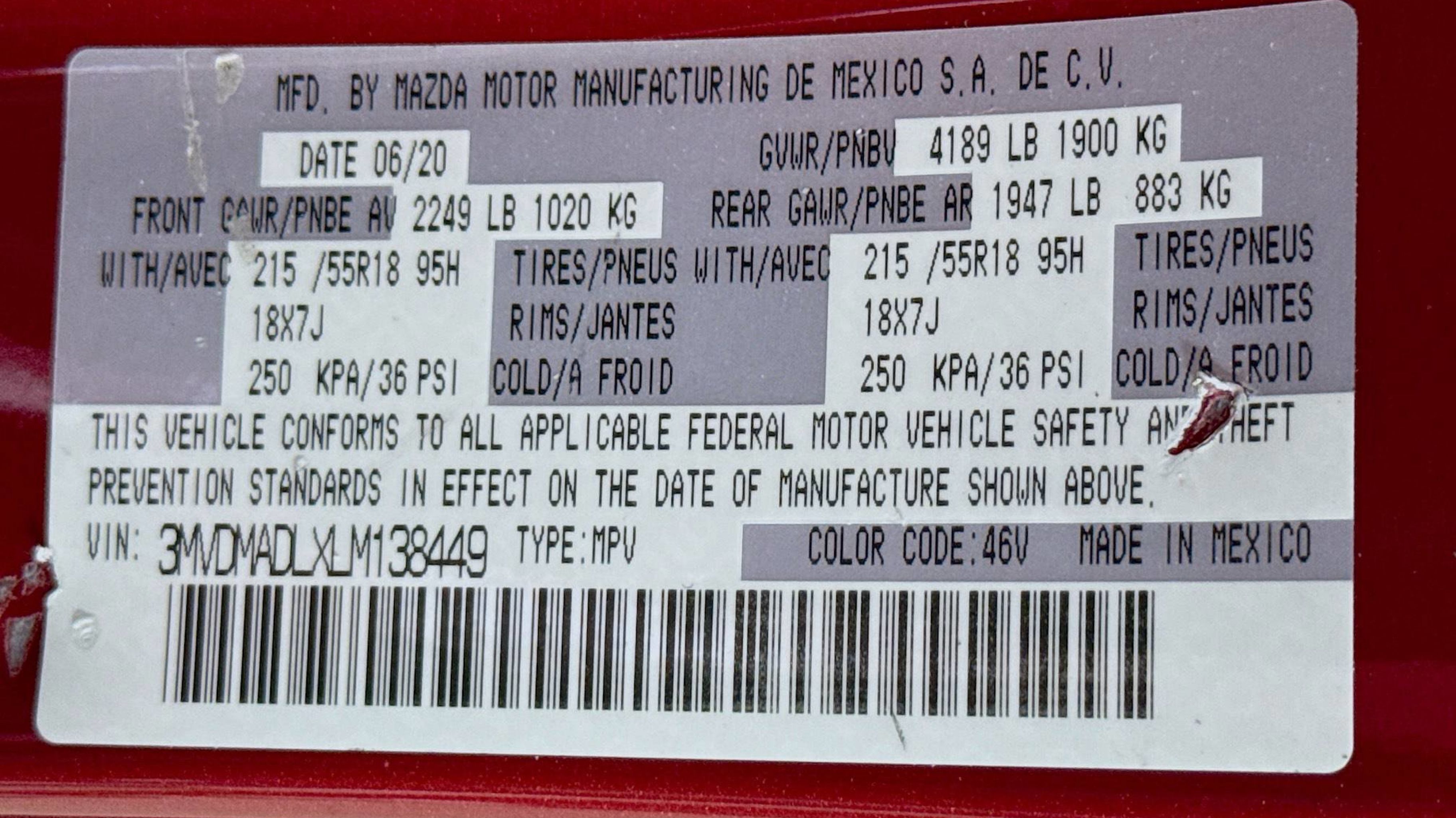 Blind Spot Monitoring w/Rear Cross Traffic Alert, Dual-Zone Automatic Climate Control System, Exterior Mirrors w/Memory Positioning, Front Grille Black Gloss Paint, Gloss Painted Speaker Grille, Illuminated Vanity Mirrors, Leather-Wrapped Steering Wheel & Gear Shift Knob, Mazda Advanced Keyless Entry, Overhead Console w/Sunglass Holder, Preferred Package, Rear Privacy Glass, Rear Seat Armrest w/Cupholders, Shark Fin Antenna, Side Mirror Turn Lamps, 12 Speakers, 18 x 7J Alloy Wheels, 3.626 Axle Ratio, 4-Wheel Disc Brakes, ABS brakes, Air Conditioning, Alloy wheels, AM/FM radio: SiriusXM, AppLink/Apple CarPlay and Android Auto, Auto High-beam Headlights, Automatic temperature control, Brake assist, Bumpers: body-color, Compass, Delay-off headlights, Driver door bin, Driver vanity mirror, Dual front impact airbags, Dual front side impact airbags, Electronic Stability Control, Emergency communication system: MAZDA CONNECT, Exterior Parking Camera Rear, Front anti-roll bar, Front Bucket Seats, Front Center Armrest, Front dual zone A/C, Front reading lights, Front wheel independent suspension, Fully automatic headlights, Heated Front Bucket Seats, Heated front seats, Illuminated entry, Knee airbag, Leather Shift Knob, Leather steering wheel, Leatherette Seat Trim, Low tire pressure warning, MAZDA CONNECT Infotainment System Voice Command, Memory seat, Occupant sensing airbag, Outside temperature display, Overhead airbag, Overhead console, Panic alarm, Passenger door bin, Passenger vanity mirror, Power door mirrors, Power driver seat, Power steering, Power windows, Radio data system, Radio: AM/FM Audio System, Rain sensing wipers, Rear seat center armrest, Rear window defroster, Rear window wiper, Remote keyless entry, Soul Red Crystal Metallic Paint, Speed control, Speed-sensing steering, Split folding rear seat, Spoiler, Steering wheel mounted audio controls, Tachometer, Telescoping steering wheel, Tilt steering wheel, Traction control, Trip computer, Turn signal indicator mirrors, Variably intermittent wipers, Wheel Locks, Blind Spot Monitoring w/Rear Cross Traffic Alert, Dual-Zone Automatic Climate Control System, Exterior Mirrors w/Memory Positioning, Front Grille Black Gloss Paint, Gloss Painted Speaker Grille, Illuminated Vanity Mirrors, Leather-Wrapped Steering Wheel & Gear Shift Knob, Mazda Advanced Keyless Entry, Overhead Console w/Sunglass Holder, Preferred Package, Rear Privacy Glass, Rear Seat Armrest w/Cupholders, Shark Fin Antenna, Side Mirror Turn Lamps. Odometer is 3637 miles below market average!