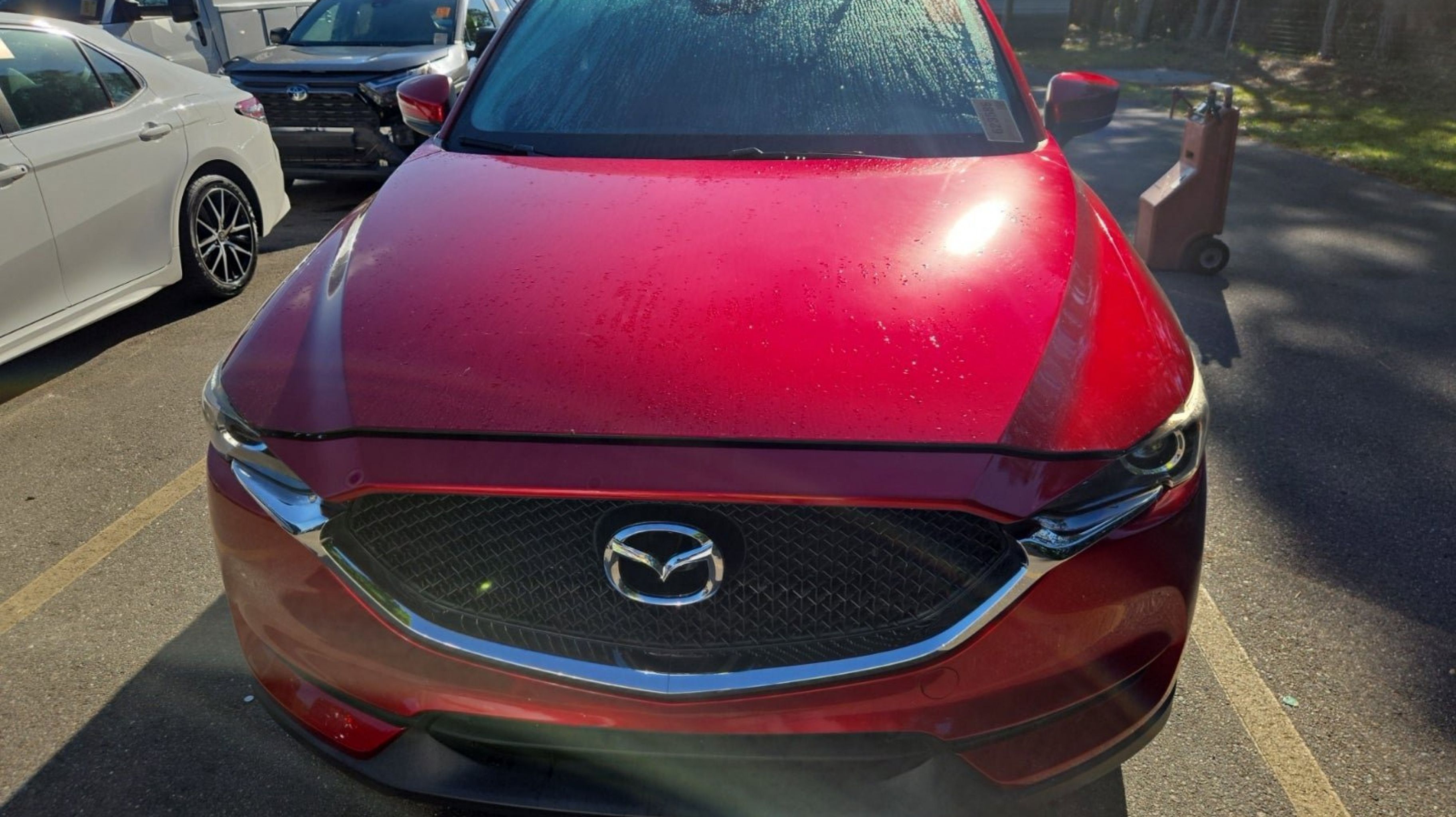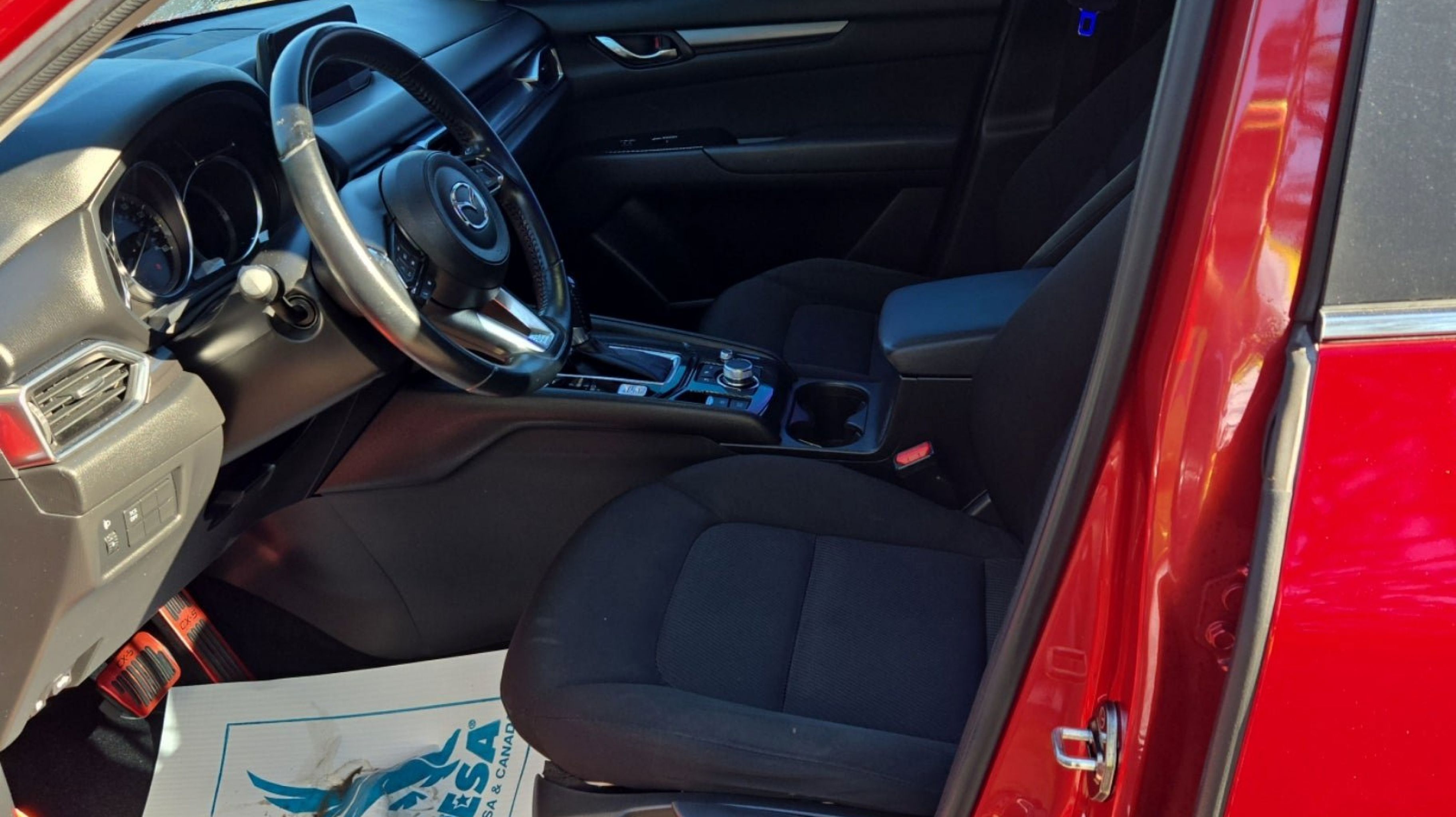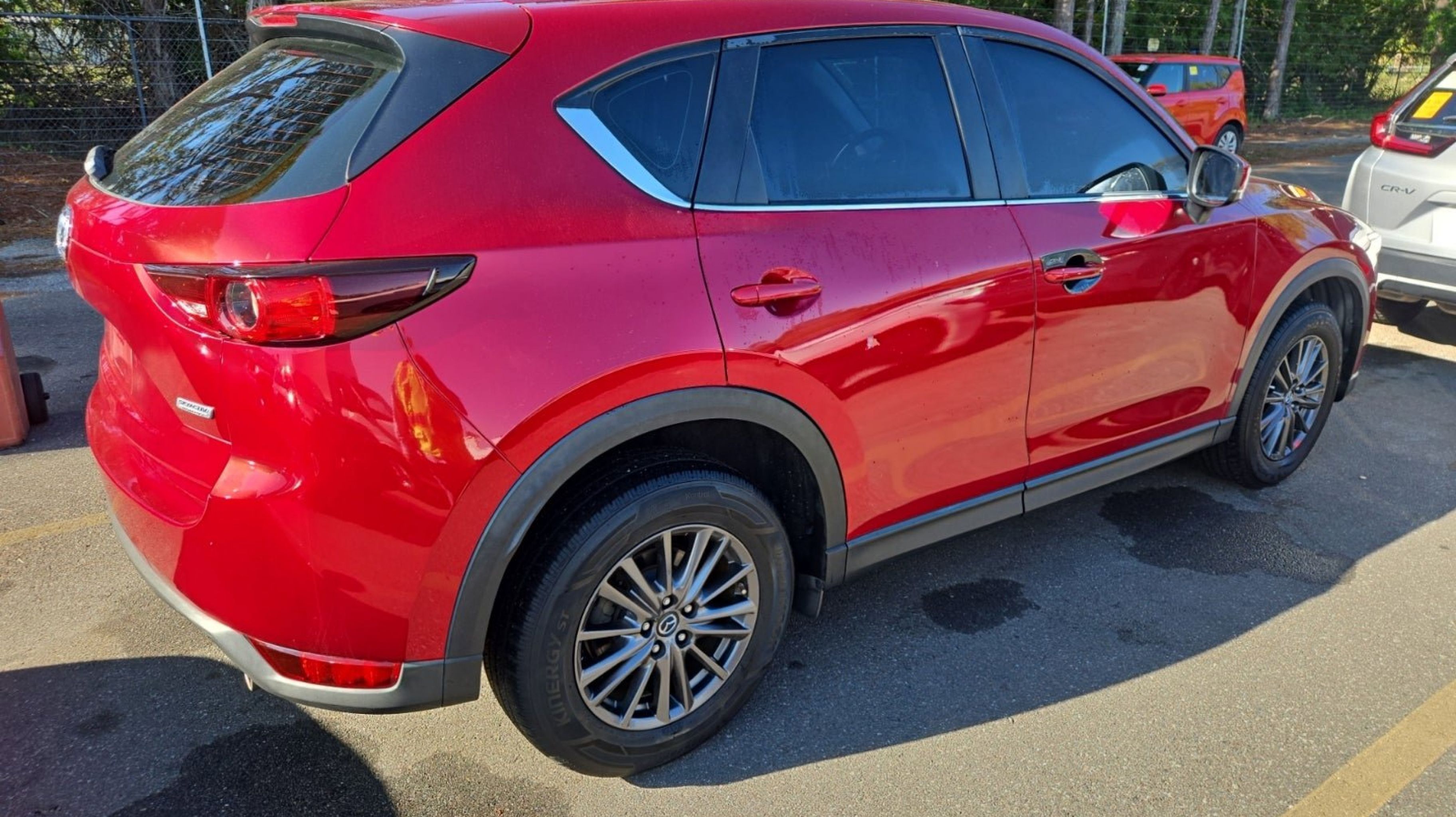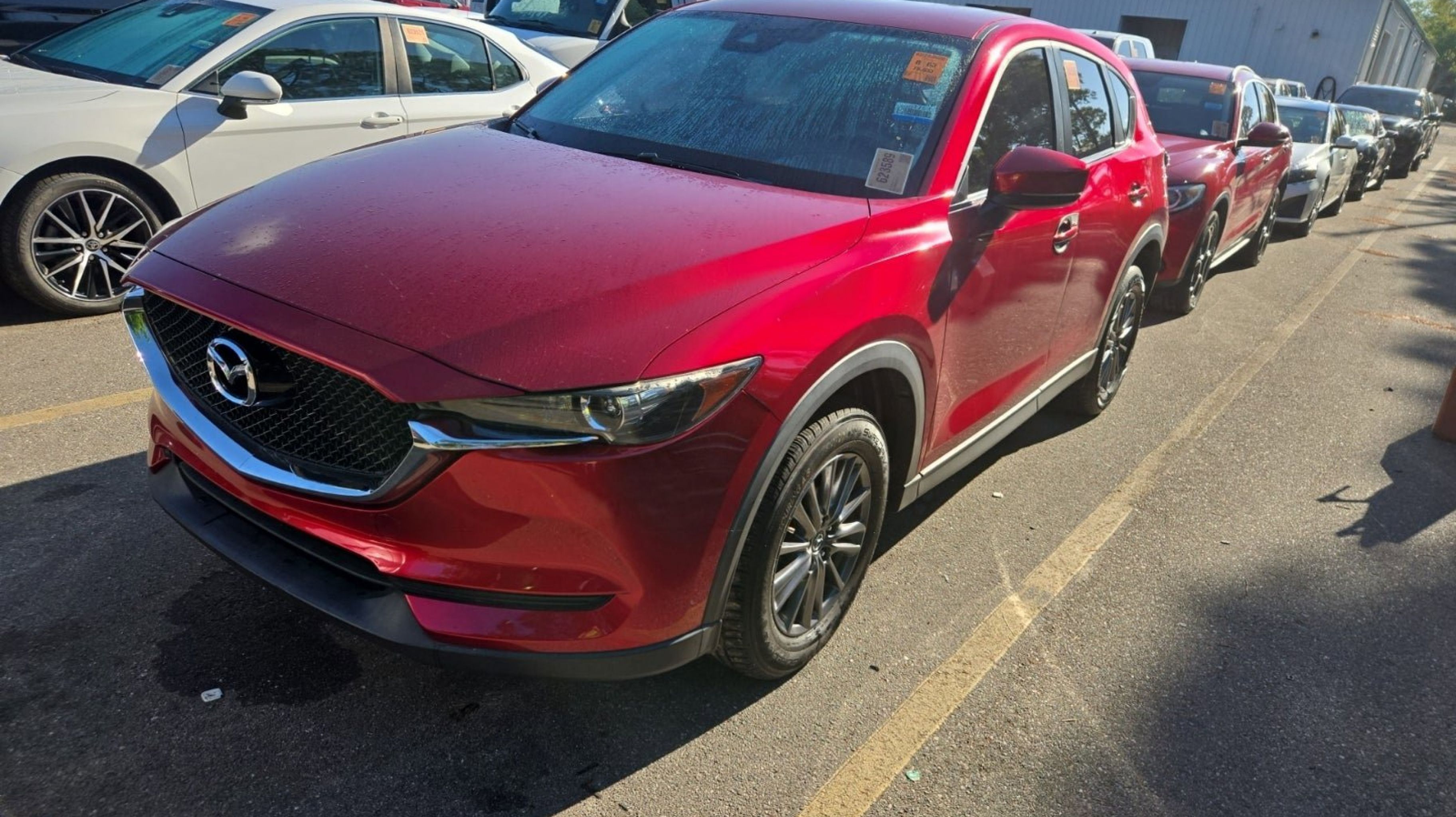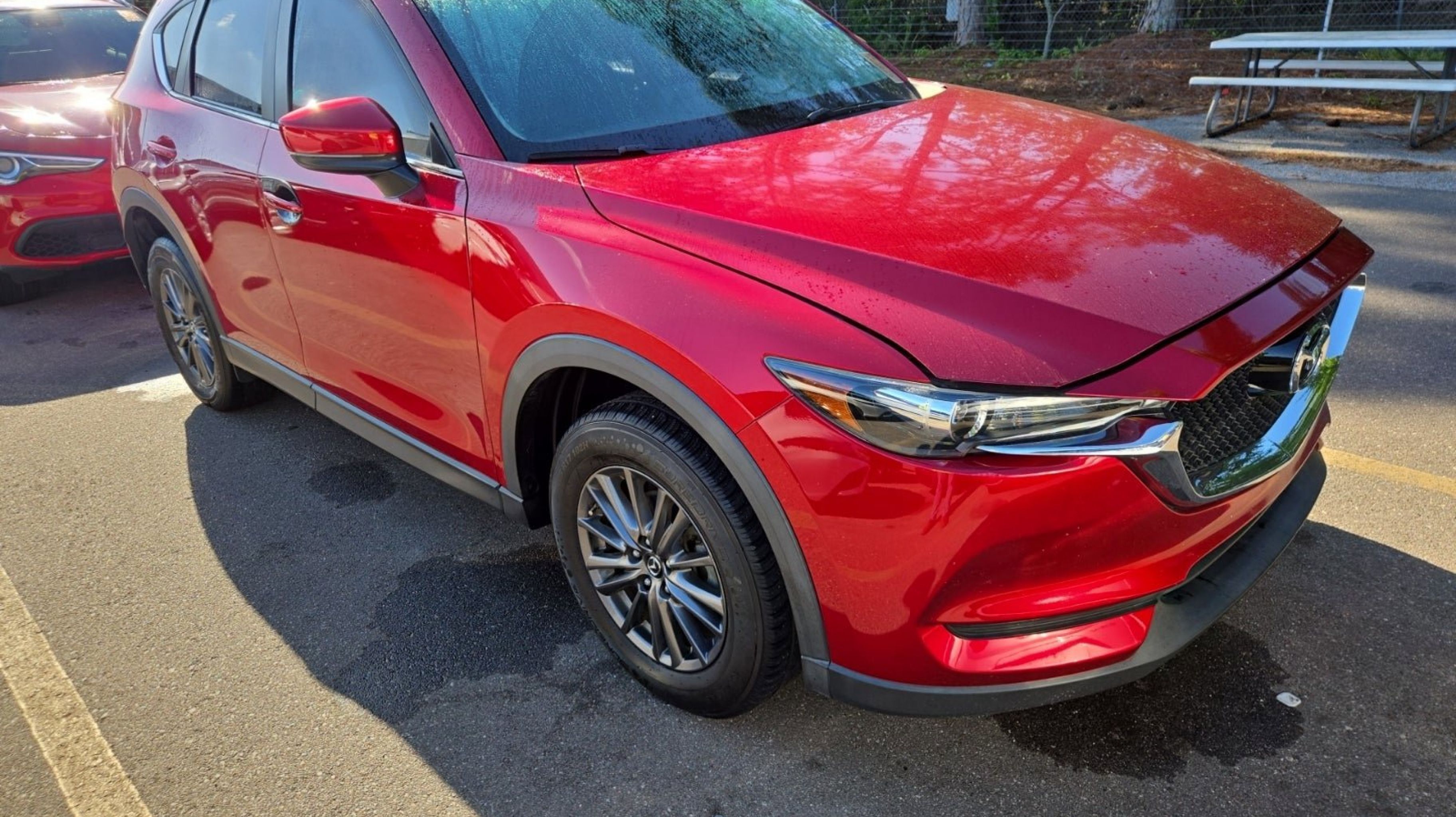 Soul Red Crystal Metallic 2019 Mazda CX-5 Sport FWD 6-Speed Automatic SKYACTIV® 2.5L 4-Cylinder DOHC 16V 4 Speakers, 4-Wheel Disc Brakes, 4.325 Axle Ratio, ABS brakes, Air Conditioning, Alloy wheels, AM/FM radio, Brake assist, Bumpers: body-color, Cloth Seat Trim, Delay-off headlights, Driver door bin, Driver vanity mirror, Dual front impact airbags, Dual front side impact airbags, Electronic Stability Control, Emergency communication system, Exterior Parking Camera Rear, Four wheel independent suspension, Front anti-roll bar, Front Bucket Seats, Front Center Armrest, Front reading lights, Illuminated entry, Leather Shift Knob, Low tire pressure warning, Occupant sensing airbag, Outside temperature display, Overhead airbag, Overhead console, Panic alarm, Passenger door bin, Passenger vanity mirror, Power door mirrors, Power steering, Power windows, Radio data system, Radio: AM/FM/HD Audio System, Rear anti-roll bar, Rear reading lights, Rear window defroster, Rear window wiper, Remote keyless entry, Soul Red Crystal Metallic Paint, Speed control, Speed-sensing steering, Split folding rear seat, Spoiler, Sport Front Seats, Steering wheel mounted audio controls, Tachometer, Telescoping steering wheel, Tilt steering wheel, Traction control, Trip computer, Turn signal indicator mirrors, Variably intermittent wipers, Wheels: 17 x 7J Gray Metallic Alloy.
