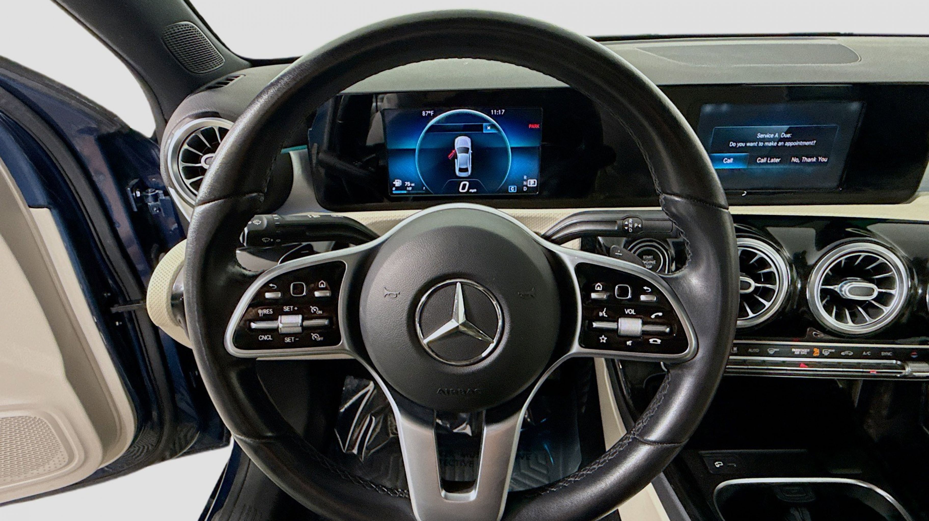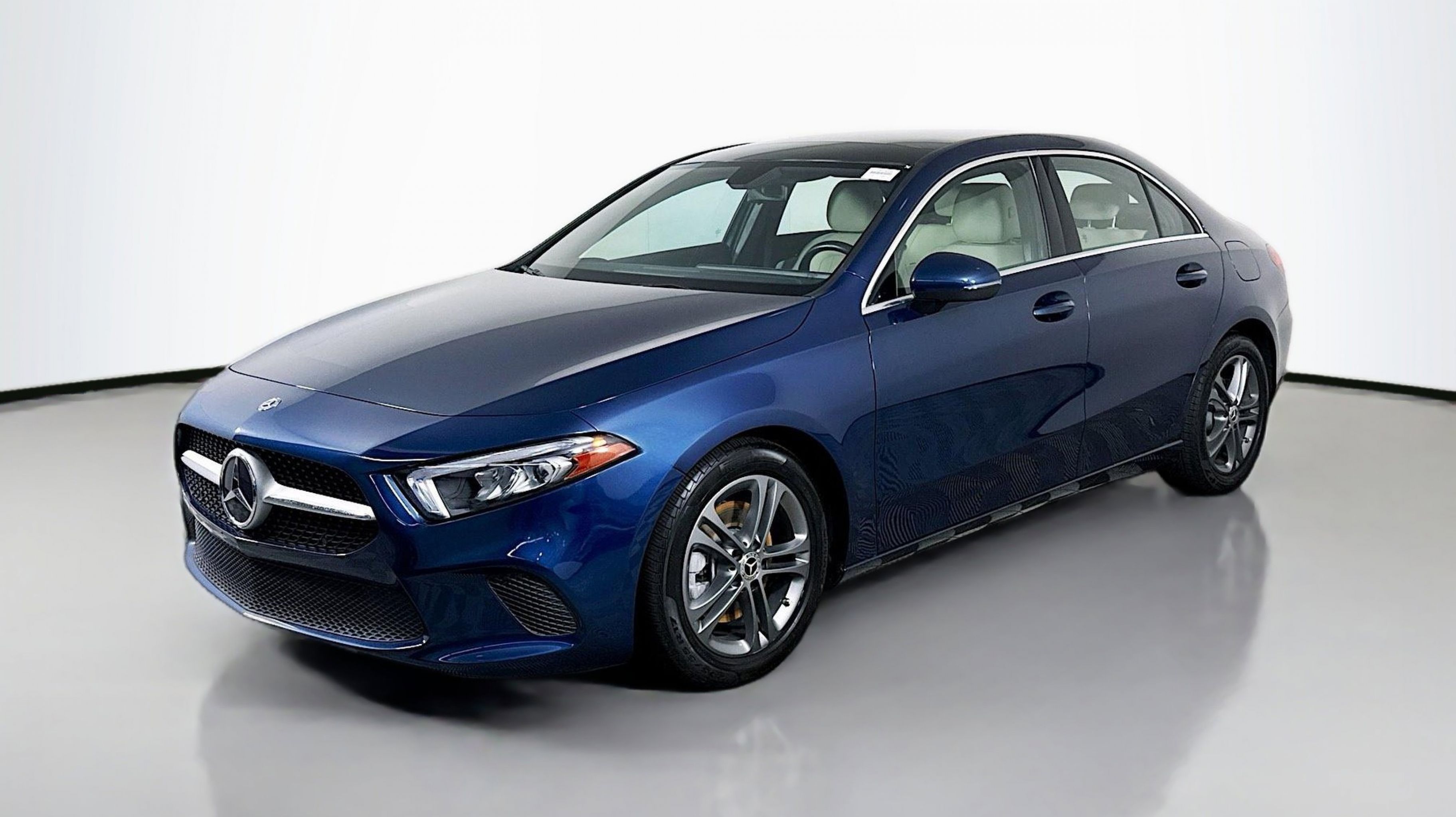 Denim Blue Metallic 2020 Mercedes-Benz A-Class A 220 FWD 7-Speed Automatic 2.0L I4 Turbocharged 4-Way Lumbar Support, 4-Wheel Disc Brakes, 64-Color Interior Ambient Lighting, 8 Speakers, ABS brakes, Air Conditioning, Alloy wheels, AM/FM radio, Android Auto®, Apple CarPlay®, Apple CarPlay®/Android Auto®, Automatic temperature control, Blind Spot Assist, Brake assist, Brushed Aluminum Trim, Bumpers: body-color, Child-Seat-Sensing Airbag, Delay-off headlights, Driver door bin, Driver vanity mirror, Dual front impact airbags, Dual front side impact airbags, Electronic Stability Control, Emergency communication system: Mercedes me connect, Exterior Parking Camera Rear, Four wheel independent suspension, Front anti-roll bar, Front Bucket Seats, Front Center Armrest, Front dual zone A/C, Front reading lights, Fully automatic headlights, HD Radio, Heated door mirrors, HERMES Communications Module LTE, Illuminated entry, Knee airbag, Low tire pressure warning, MB-Tex Upholstery, Memory seat, Natural Grain Black Ash Wood Center Console, Occupant sensing airbag, Outside temperature display, Overhead airbag, Overhead console, Panic alarm, Passenger door bin, Passenger vanity mirror, Power door mirrors, Power driver seat, Power Front Seats w/Memory, Power moonroof: Panorama, Power passenger seat, Power steering, Power windows, Premium audio system: MBUX, Radio data system, Radio: MBUX Multimedia System, Rain sensing wipers, Rear anti-roll bar, Rear reading lights, Rear seat center armrest, Rear window defroster, Remote keyless entry, Security system, Smartphone Integration, Speed control, Speed-sensing steering, Split folding rear seat, Steering wheel mounted audio controls, Tachometer, Telescoping steering wheel, Tilt steering wheel, Traction control, Trip computer, Turn signal indicator mirrors, USB C Adapter Cable, Variably intermittent wipers, Wheels: 17 x 6.5 10-Spoke, Wheels: 17 x 6.5 Twin 5-Spoke.