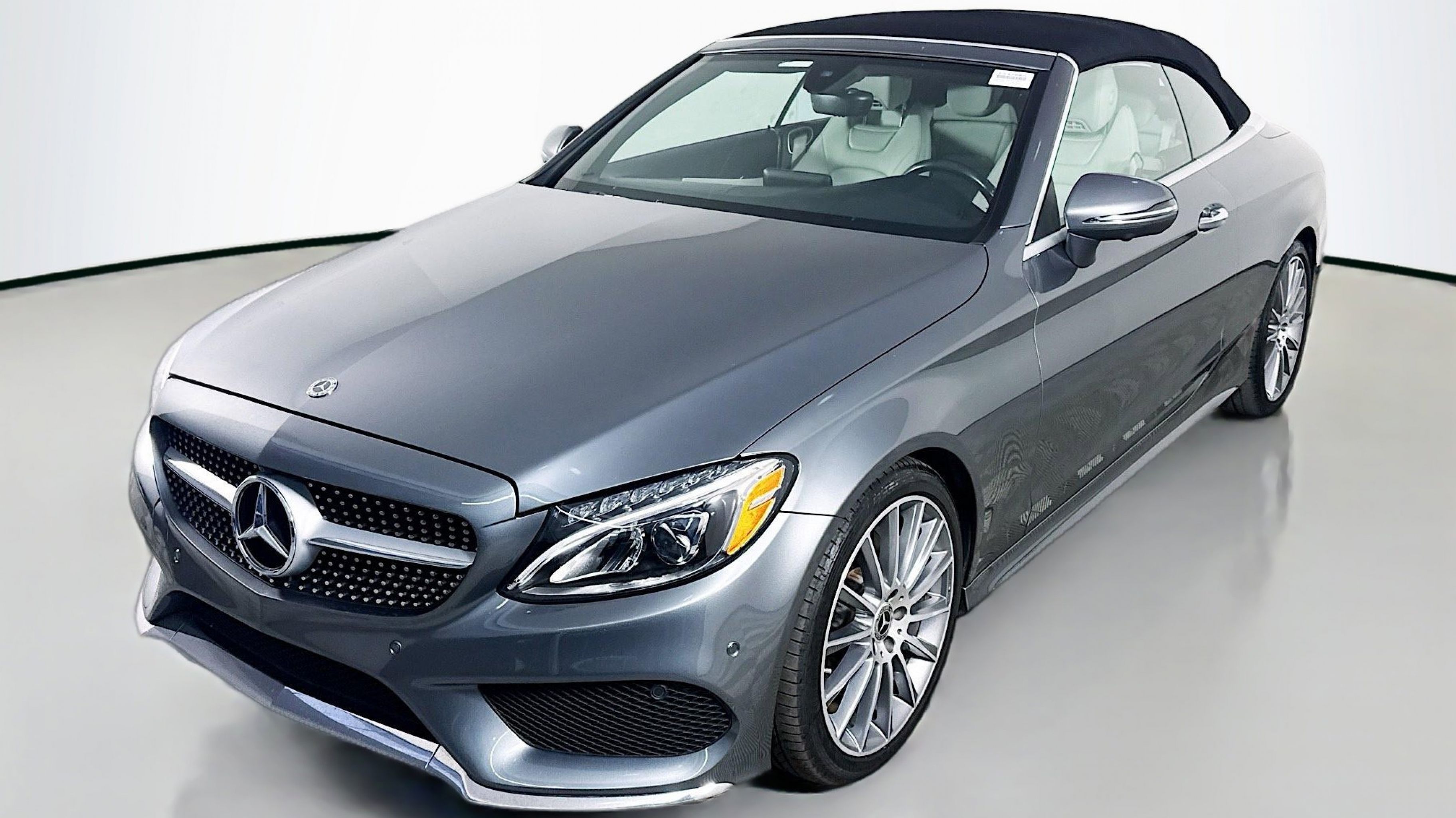 CARFAX One-Owner. Clean CARFAX. AIRCAP®, AMG® Body Styling, AMG® Line, AMG® Line Exterior, AMG® Line Interior, Android Auto®, Apple CarPlay®, Black Fabric Headliner, Burmester® Surround Sound System, Cabrio Comfort Package, Diamond Grille in Chrome, Parking Assist Package, Parking Package, PARKTRONIC w/Active Parking Assist, Power Folding Mirrors, Premium Package, Semi-Automatic Trunk Separator, SiriusXM Satellite Radio, Smartphone Integration, Smartphone Integration Package, Sport Suspension, Surround View System, 4-Way Lumbar Support, 4-Wheel Disc Brakes, 5 Speakers, ABS brakes, Air Conditioning, Alloy wheels, AM/FM radio, Anti-whiplash front head restraints, Auto tilt-away steering wheel, Auto-dimming door mirrors, Auto-dimming Rear-View mirror, Automatic temperature control, Brake assist, Bumpers: body-color, CD player, Child-Seat-Sensing Airbag, Compass, Convertible roof lining, Convertible roof wind blocker, Delay-off headlights, Driver door bin, Driver vanity mirror, Dual front impact airbags, Dual front side impact airbags, Electronic Stability Control, Emergency communication system: mbrace2, Exterior Parking Camera Rear, Four wheel independent suspension, Front anti-roll bar, Front Bucket Seats, Front Center Armrest, Front dual zone A/C, Front reading lights, Fully automatic headlights, Garage door transmitter: Homelink, Genuine wood console insert, Genuine wood door panel insert, Glass rear window, Head restraints memory, Heated door mirrors, Heated Front Seats, Heated front seats, Illuminated entry, Illuminated Star, Integrated roll-over protection, Knee airbag, Low tire pressure warning, MB-Tex Upholstery, Memory seat, Occupant sensing airbag, Outside temperature display, Overhead airbag, Overhead console, Panic alarm, Passenger door bin, Passenger vanity mirror, Power adjustable front head restraints, Power convertible roof, Power door mirrors, Power driver seat, Power Driver Seat & Steering Column w/Memory, Power passenger seat, Power steering, Power windows, Premium audio system: COMAND®, Radio data system, Radio: Audio 20 - Radio w/Bluetooth, Rain sensing wipers, Rear anti-roll bar, Rear Chrome Trim, Rear fog lights, Rear side impact airbag, Rear window defroster, Remote keyless entry, SD-Card Navigation Pre-Wiring, Security system, Single CD Player, Speed control, Speed-sensing steering, Split folding rear seat, Steering wheel memory, Steering wheel mounted audio controls, Tachometer, Telescoping steering wheel, Tilt steering wheel, Traction control, Trip computer, Turn signal indicator mirrors, Variably intermittent wipers, Weather band radio, Wheel Locking Bolts, Wheels: 18 Twin 5-Spoke, Wheels: 19 AMG® Multi-Spoke, AIRCAP®, AMG® Body Styling, AMG® Line, AMG® Line Exterior, AMG® Line Interior, Android Auto®, Apple CarPlay®, Black Fabric Headliner, Burmester® Surround Sound System, Cabrio Comfort Package, Diamond Grille in Chrome, Parking Assist Package, Parking Package, PARKTRONIC w/Active Parking Assist, Power Folding Mirrors, Premium Package, Semi-Automatic Trunk Separator, SiriusXM Satellite Radio, Smartphone Integration, Smartphone Integration Package, Sport Suspension, Surround View System. Odometer is 9013 miles below market average!