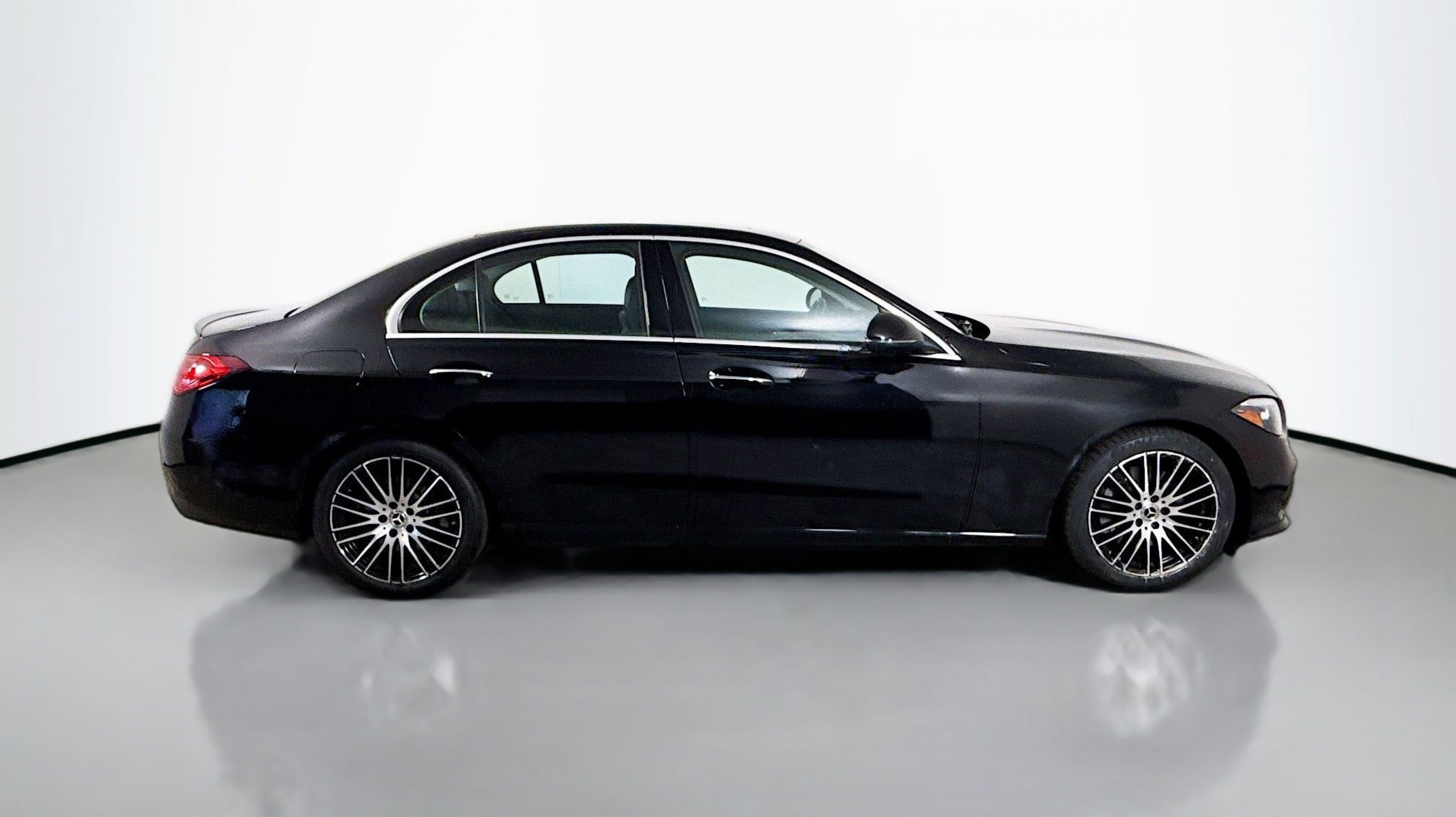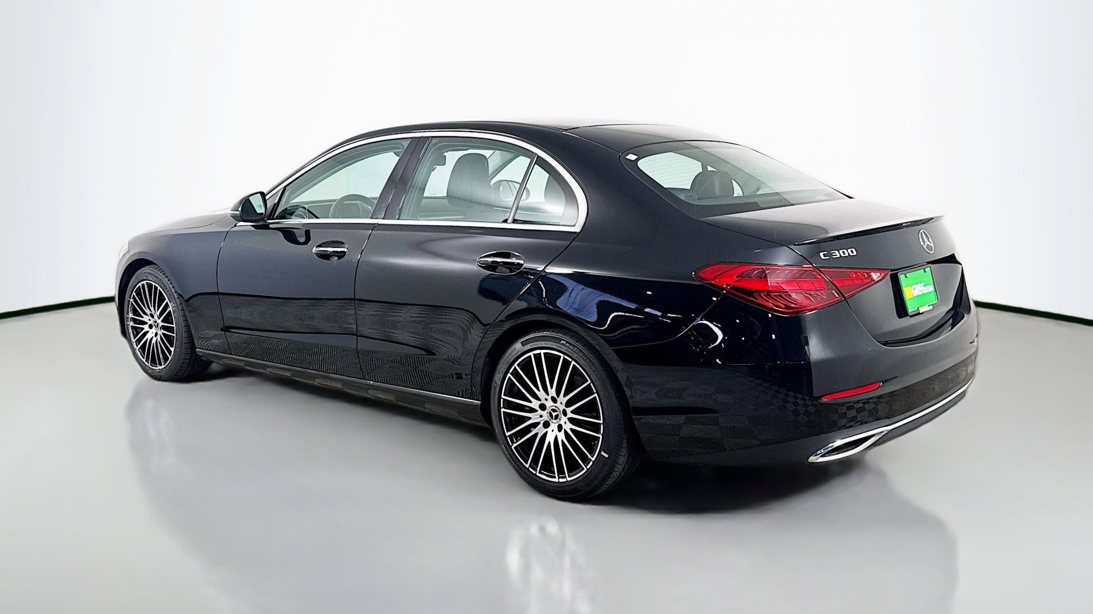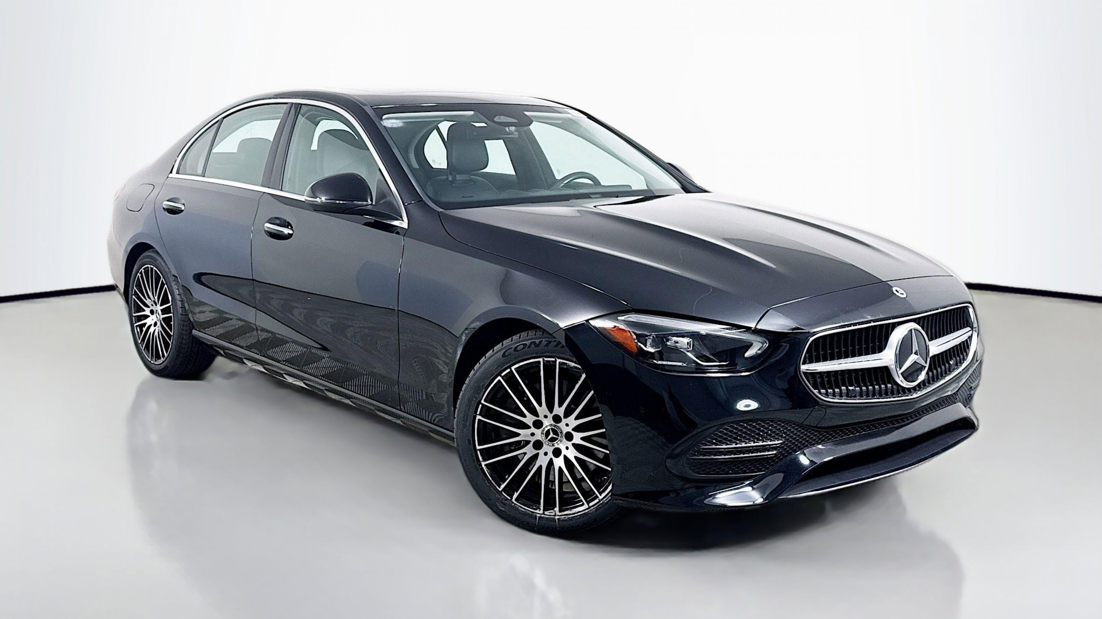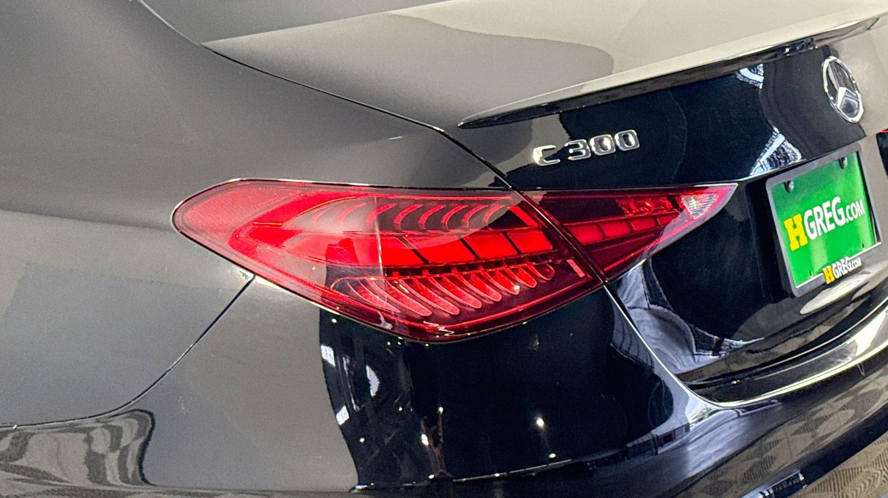 Black 2022 Mercedes-Benz C-Class C 300 RWD 9-Speed Automatic 2.0L I4 Turbocharged Premium Trim Package, 11.9 Center Touchscreen Display, 18 5-Spoke Wheels, 4-way Power Driver's Lumbar Support, 4-Wheel Disc Brakes, 5 Speakers, ABS brakes, Air Conditioning, Alloy wheels, AM/FM radio, Anti-whiplash front head restraints, Apple CarPlay®/Android Auto®, Auto High-beam Headlights, Auto tilt-away steering wheel, Auto-dimming door mirrors, Auto-dimming Rear-View mirror, Automatic temperature control, Body Color Rear Spoiler, Brake assist, Bumpers: body-color, Child-Seat-Sensing Airbag, Compass, Crystal Grey Fabric Headliner, Delay-off headlights, Driver door bin, Driver vanity mirror, Dual front impact airbags, Dual front side impact airbags, Electronic Stability Control, Emergency communication system: Mercedes-Benz Emergency Call Service, Exterior Parking Camera Rear, First Aid Kit, Four wheel independent suspension, Front anti-roll bar, Front Bucket Seats, Front Center Armrest, Front dual zone A/C, Front reading lights, Fully automatic headlights, Garage door transmitter: HomeLink, Genuine wood dashboard insert, Head restraints memory, Heated door mirrors, Heated front seats, Illuminated entry, Knee airbag, Low tire pressure warning, MB-Tex Upholstery, Memory seat, Metal Weave Center Console, Occupant sensing airbag, Outside temperature display, Overhead airbag, Overhead console, Panic alarm, PANORAMA SUNROOF, Passenger door bin, Passenger vanity mirror, Power adjustable front head restraints, Power door mirrors, Power driver seat, Power Heated Front Seats w/Memory, Power passenger seat, Power steering, Power windows, Premium audio system: MBUX, Radio data system, Radio: FrontBass 5-Speaker Audio System, Rain sensing wipers, Rear anti-roll bar, Rear fog lights, Rear reading lights, Rear seat center armrest, Rear window defroster, Remote keyless entry, Security system, Speed control, Speed-sensing steering, Split folding rear seat, Steering wheel memory, Steering wheel mounted audio controls, Tachometer, Telescoping steering wheel, Tilt steering wheel, Traction control, Trip computer, Turn signal indicator mirrors, Variably intermittent wipers, Weather band radio, Wheel Locking Bolts, Wheels: 18 Multispoke, Premium Trim Package.