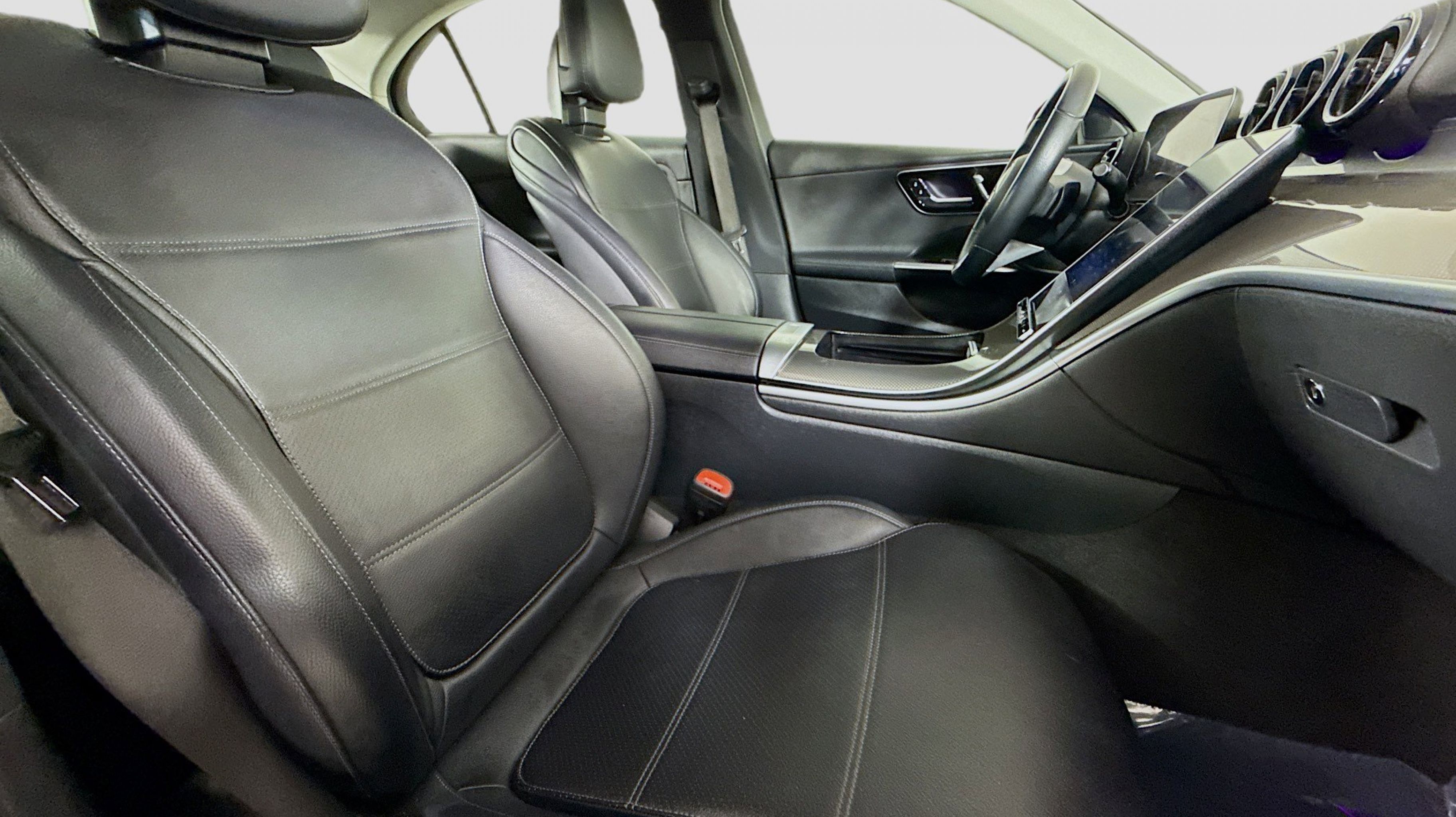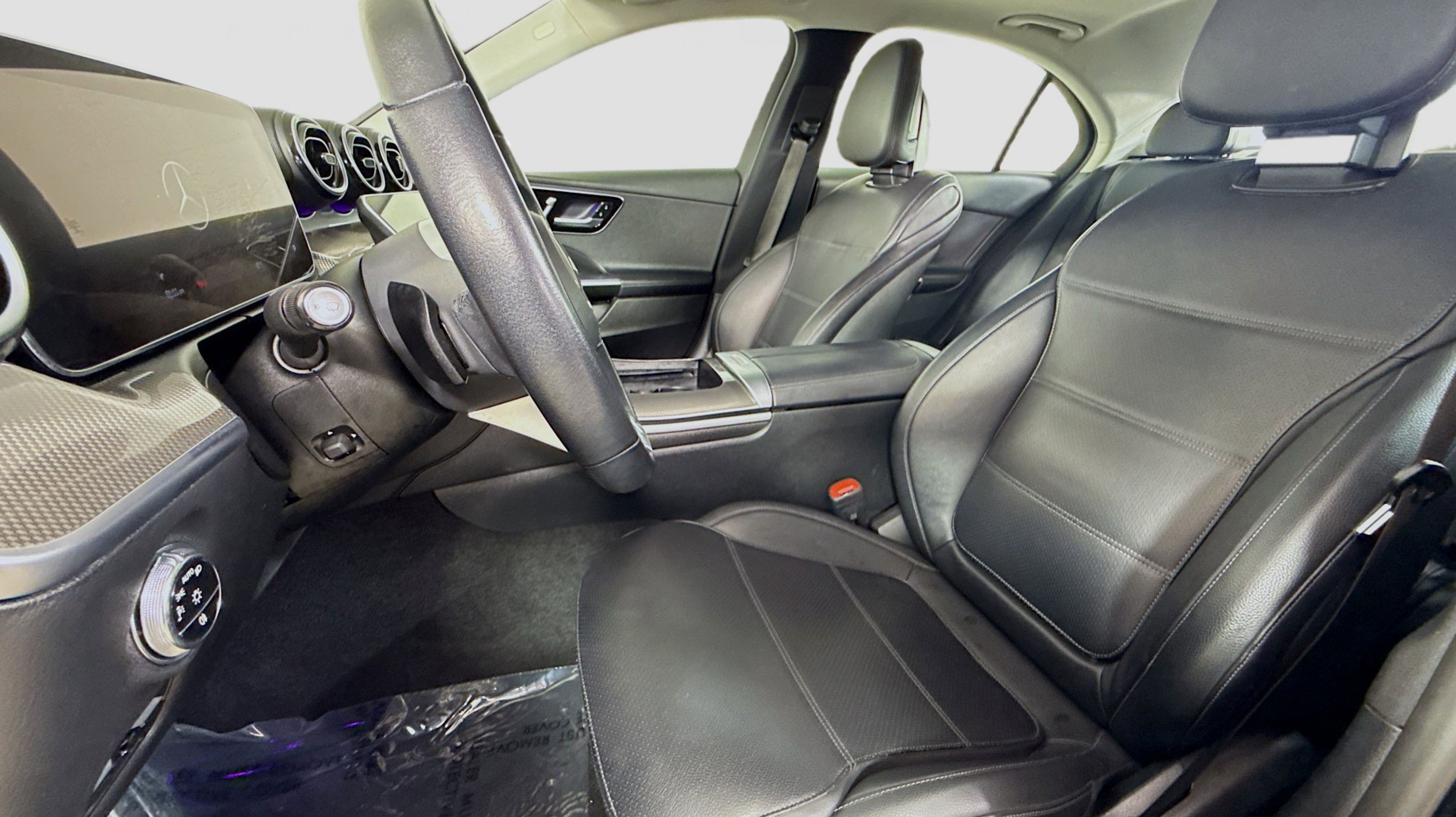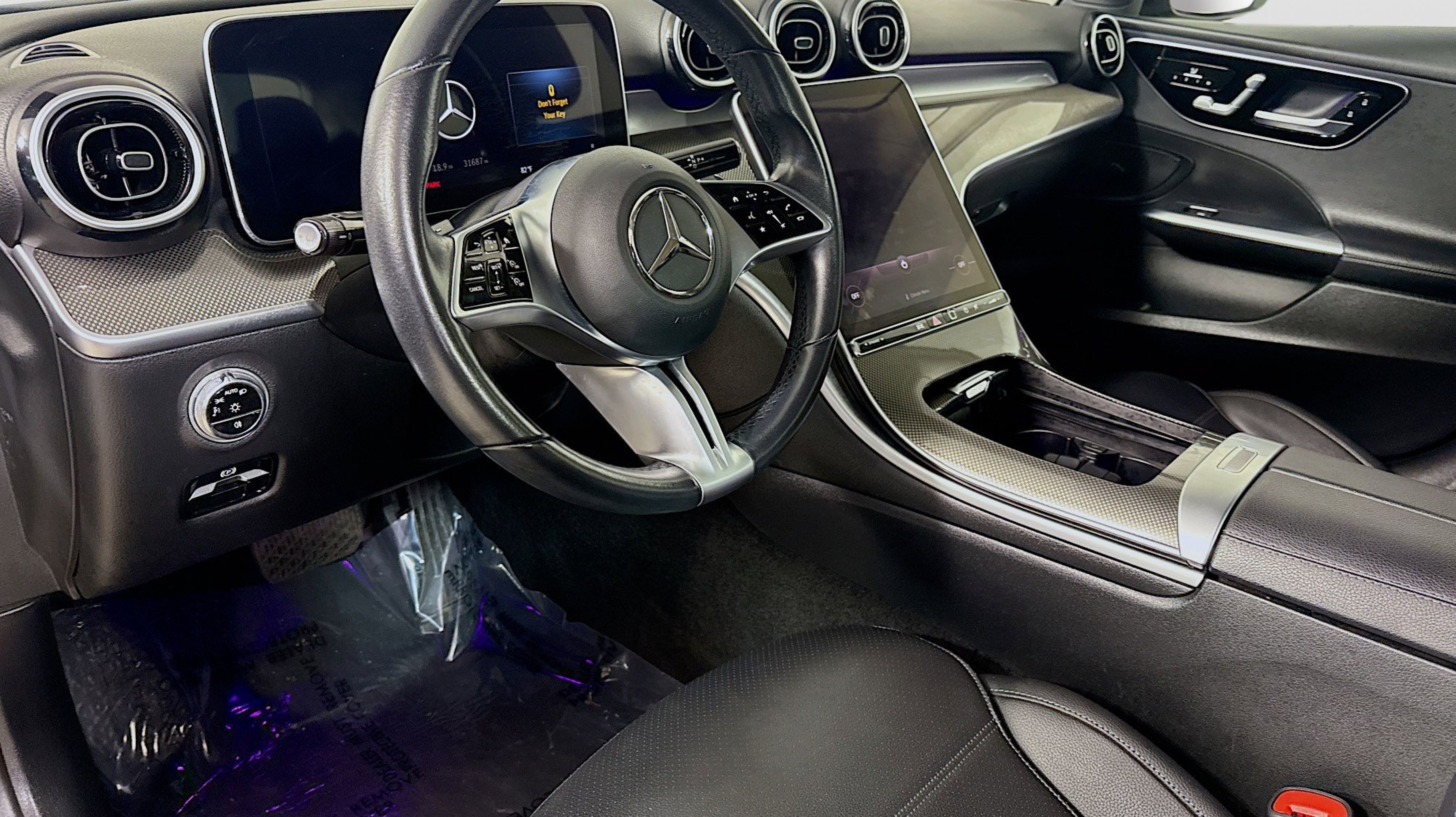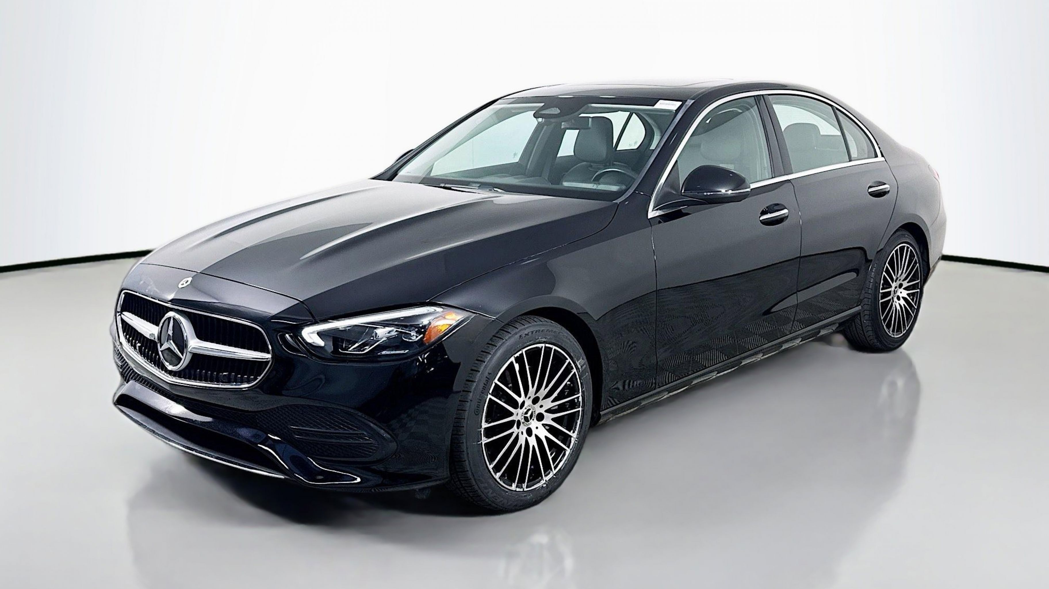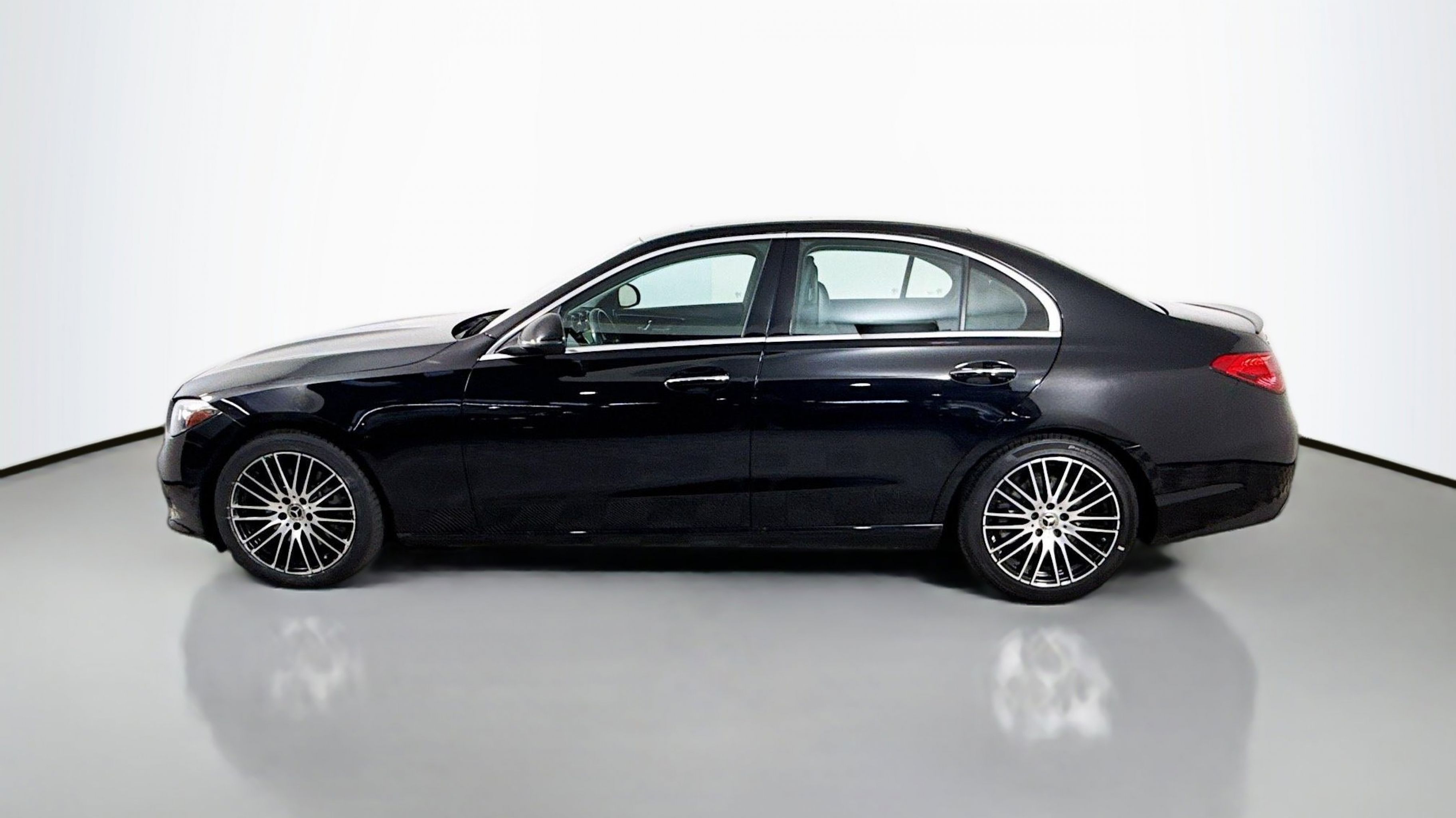 Black 2022 Mercedes-Benz C-Class C 300 RWD 9-Speed Automatic 2.0L I4 Turbocharged Premium Trim Package, 11.9 Center Touchscreen Display, 18 5-Spoke Wheels, 4-way Power Driver's Lumbar Support, 4-Wheel Disc Brakes, 5 Speakers, ABS brakes, Air Conditioning, Alloy wheels, AM/FM radio, Anti-whiplash front head restraints, Apple CarPlay®/Android Auto®, Auto High-beam Headlights, Auto tilt-away steering wheel, Auto-dimming door mirrors, Auto-dimming Rear-View mirror, Automatic temperature control, Body Color Rear Spoiler, Brake assist, Bumpers: body-color, Child-Seat-Sensing Airbag, Compass, Crystal Grey Fabric Headliner, Delay-off headlights, Driver door bin, Driver vanity mirror, Dual front impact airbags, Dual front side impact airbags, Electronic Stability Control, Emergency communication system: Mercedes-Benz Emergency Call Service, Exterior Parking Camera Rear, First Aid Kit, Four wheel independent suspension, Front anti-roll bar, Front Bucket Seats, Front Center Armrest, Front dual zone A/C, Front reading lights, Fully automatic headlights, Garage door transmitter: HomeLink, Genuine wood dashboard insert, Head restraints memory, Heated door mirrors, Heated front seats, Illuminated entry, Knee airbag, Low tire pressure warning, MB-Tex Upholstery, Memory seat, Metal Weave Center Console, Occupant sensing airbag, Outside temperature display, Overhead airbag, Overhead console, Panic alarm, PANORAMA SUNROOF, Passenger door bin, Passenger vanity mirror, Power adjustable front head restraints, Power door mirrors, Power driver seat, Power Heated Front Seats w/Memory, Power passenger seat, Power steering, Power windows, Premium audio system: MBUX, Radio data system, Radio: FrontBass 5-Speaker Audio System, Rain sensing wipers, Rear anti-roll bar, Rear fog lights, Rear reading lights, Rear seat center armrest, Rear window defroster, Remote keyless entry, Security system, Speed control, Speed-sensing steering, Split folding rear seat, Steering wheel memory, Steering wheel mounted audio controls, Tachometer, Telescoping steering wheel, Tilt steering wheel, Traction control, Trip computer, Turn signal indicator mirrors, Variably intermittent wipers, Weather band radio, Wheel Locking Bolts, Wheels: 18 Multispoke, Premium Trim Package.