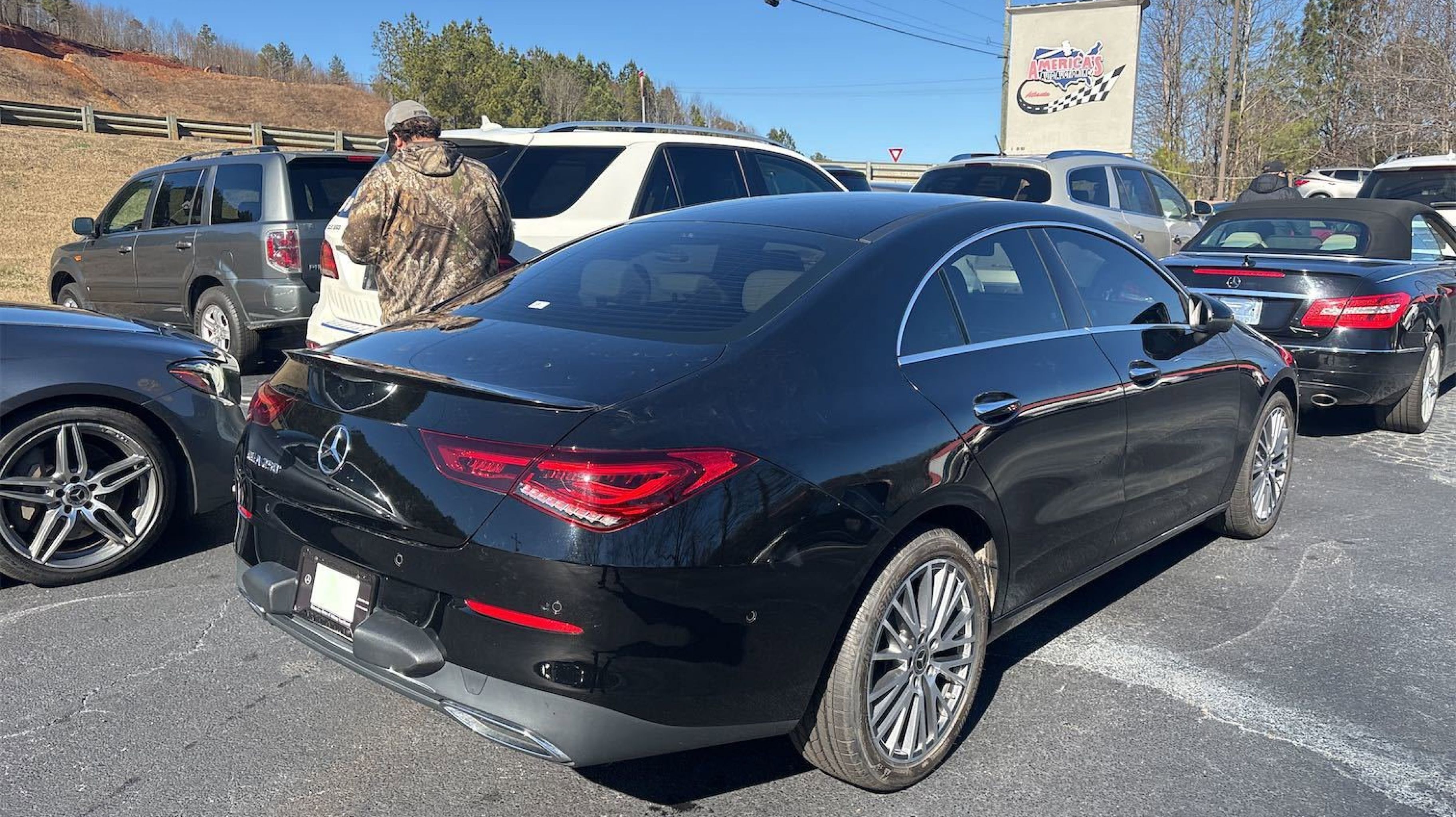 CARFAX One-Owner. Clean CARFAX. 18 Multi-Spoke Alloy Wheels, 4-Wheel Disc Brakes, 8 Speakers, ABS brakes, Air Conditioning, Alloy wheels, AM/FM radio, Apple CarPlay®/Android Auto®, Automatic temperature control, Brake assist, Bumpers: body-color, Child-Seat-Sensing Airbag, Delay-off headlights, Driver door bin, Driver vanity mirror, Dual front impact airbags, Dual front side impact airbags, Electronic Stability Control, Emergency communication system: eCall Emergency System, Exterior Parking Camera Rear, Four wheel independent suspension, Front anti-roll bar, Front Bucket Seats, Front Center Armrest, Front dual zone A/C, Front reading lights, Front Sport Seats, Fully automatic headlights, Heated door mirrors, Illuminated entry, Knee airbag, Low tire pressure warning, MB-Tex Leatherette Seat Trim, Memory seat, Occupant sensing airbag, Outside temperature display, Overhead airbag, Overhead console, Panic alarm, Passenger door bin, Passenger vanity mirror, Power door mirrors, Power driver seat, Power moonroof, Power passenger seat, Power steering, Power windows, Radio data system, Radio: MBUX Multimedia System, Rain sensing wipers, Rear anti-roll bar, Rear fog lights, Rear reading lights, Rear seat center armrest, Rear window defroster, Remote keyless entry, Security system, Speed control, Speed-sensing steering, Split folding rear seat, Steering wheel mounted audio controls, Tachometer, Telescoping steering wheel, Tilt steering wheel, Traction control, Trip computer, Turn signal indicator mirrors, Variably intermittent wipers.