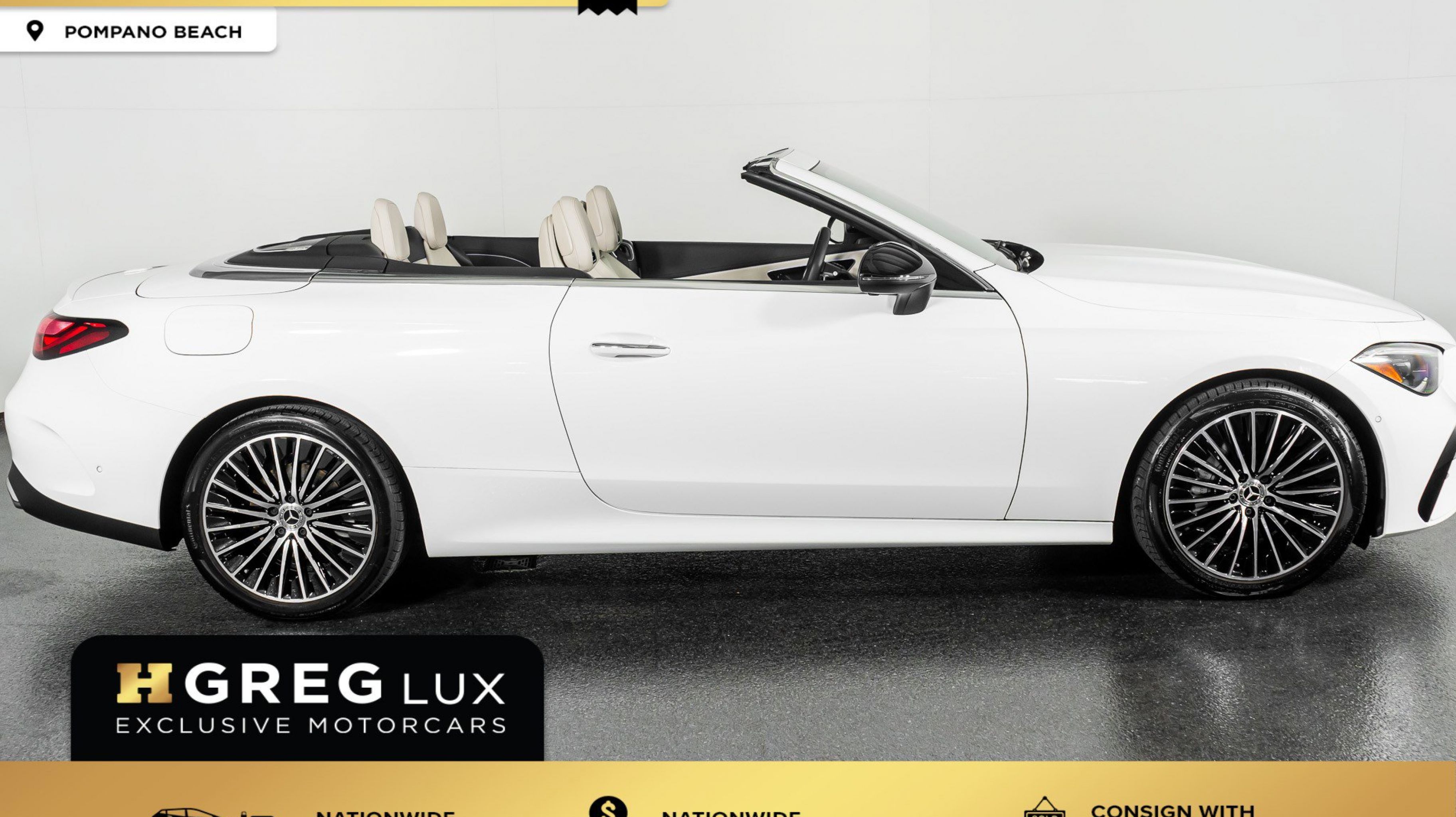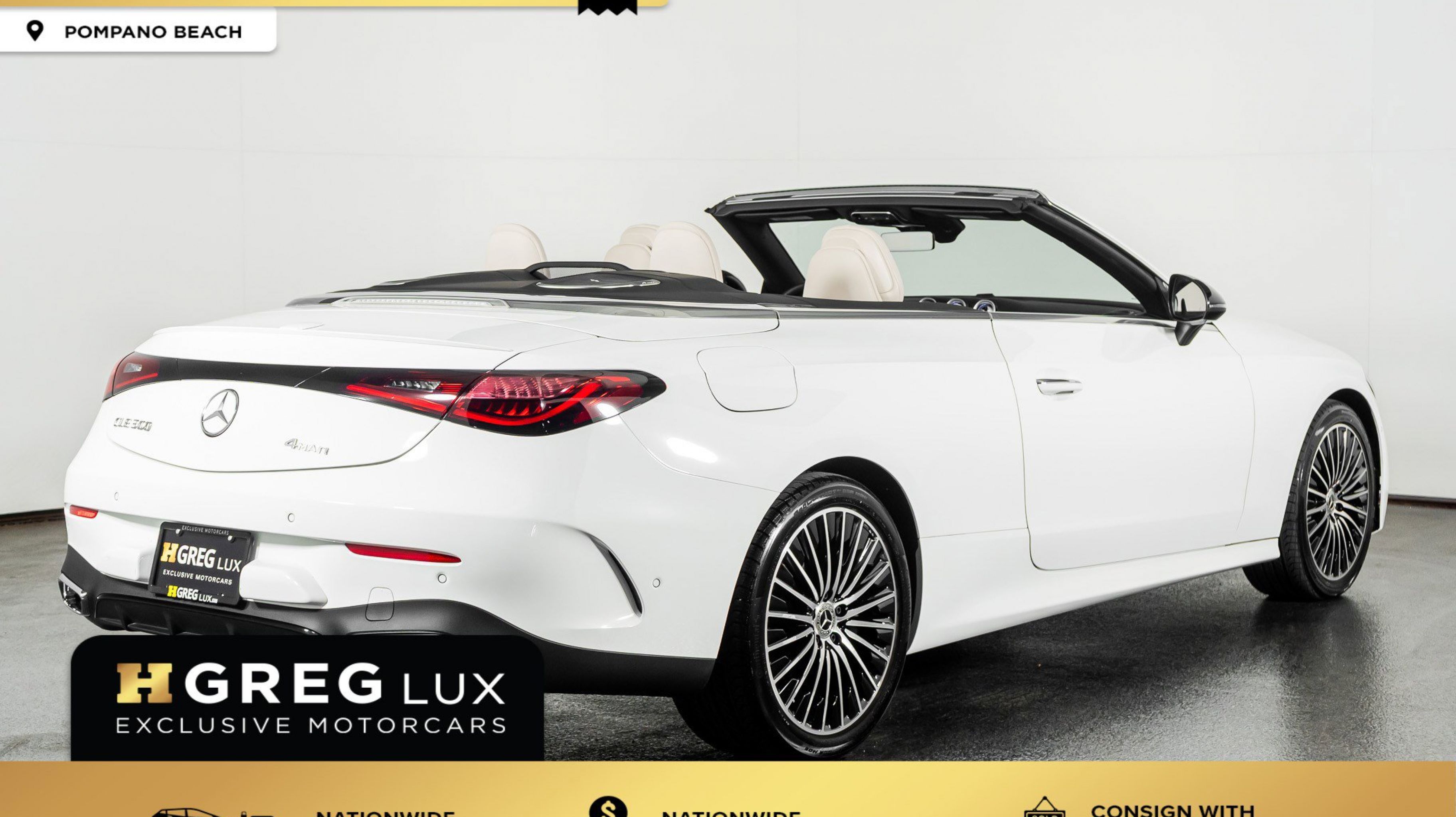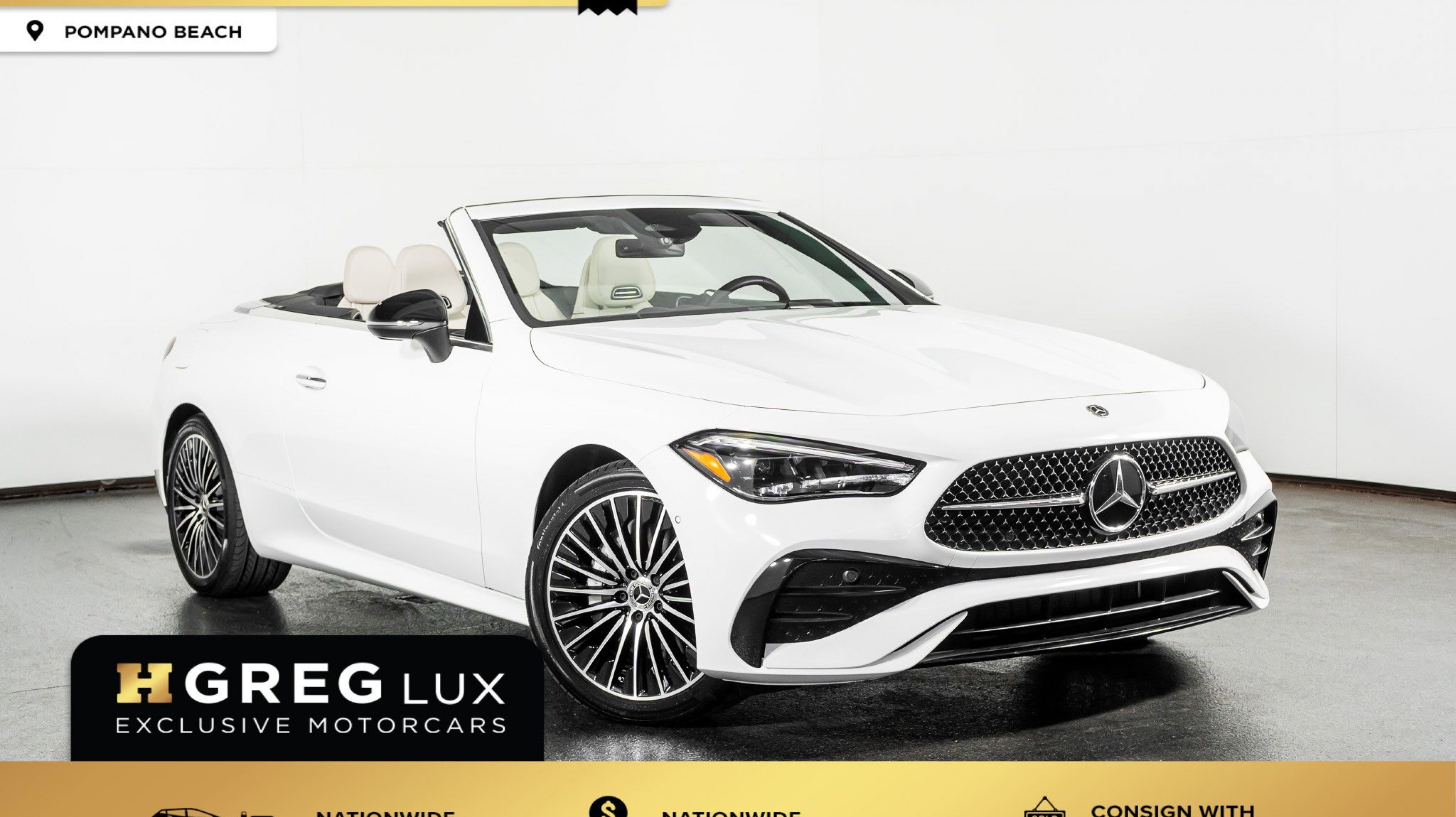 At HGREG LUX Pompano Beach, we proudly offer machines like the CLE 300 Cabriolet with refined turbocharged performance, open-top luxury, and AMG styling accents that elevate every drive. Visit our five locations in Pompano Beach, Miami, West Palm Beach, Orlando, and Doral.
