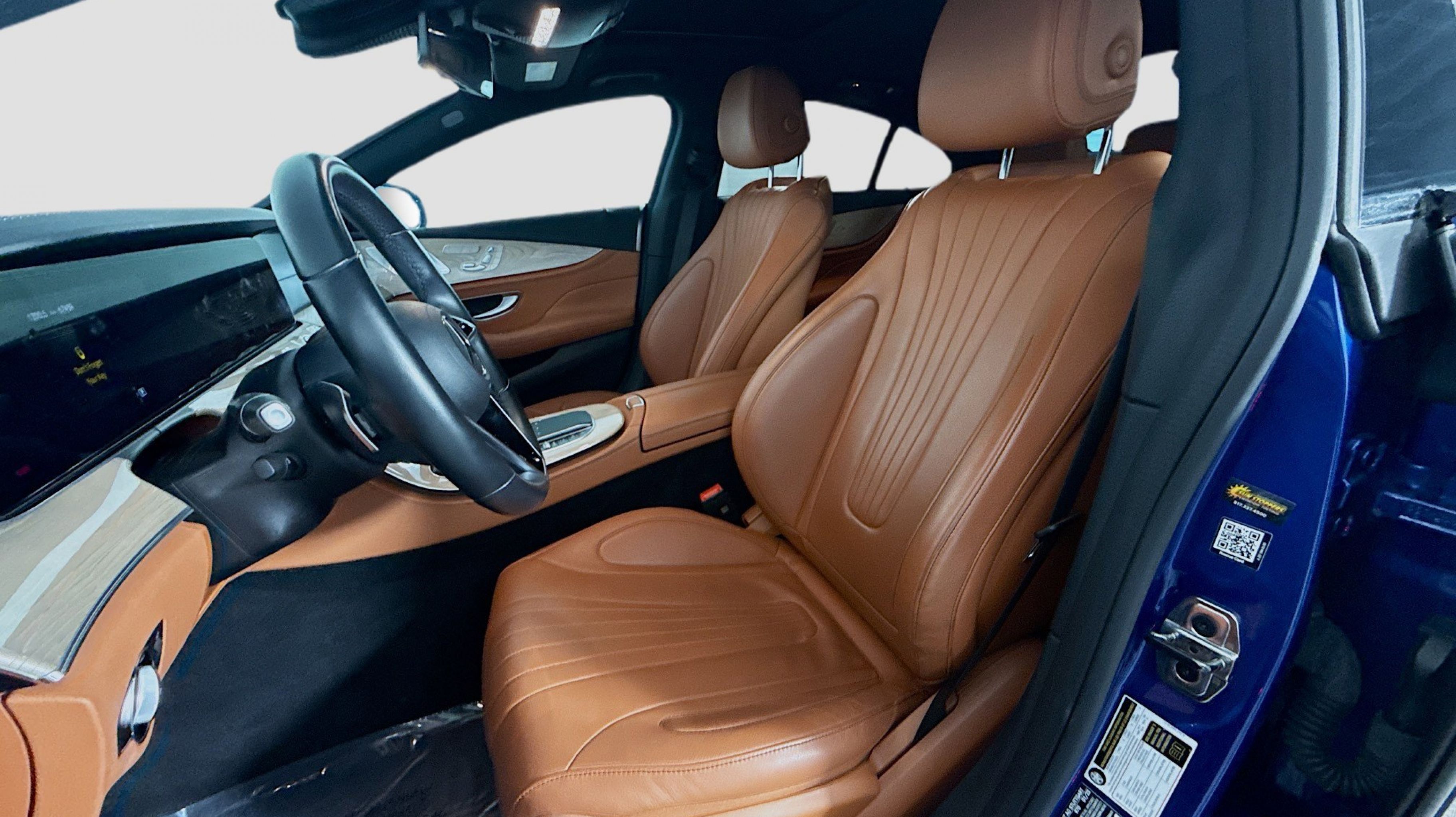 Starling Blue Metallic 2023 Mercedes-Benz CLS CLS 450 4MATIC® 4MATIC® 9-Speed Automatic I6 AMG® Floor Mats (Matching to Upholstery Color), AMG® Line, Black Headliner, Burmester® Surround Sound System, Night Package, Parking Package Code, PARKTRONIC w/Active Parking Assist, Premium Package, Round Multifunction Steering Wheel, SiriusXM Radio, Surround View Camera, 13 Speakers, 4-Wheel Disc Brakes, ABS brakes, Air Conditioning, Alloy wheels, AM/FM radio, Apple CarPlay®/Android Auto®, Auto tilt-away steering wheel, Auto-dimming door mirrors, Auto-dimming Rear-View mirror, Auto-leveling suspension, Automatic temperature control, Brake assist, Bumpers: body-color, Center Console in Light Brown Sen Wood, Child-Seat-Sensing Airbag, Compass, Delay-off headlights, Driver door bin, Driver vanity mirror, Dual front impact airbags, Dual front side impact airbags, Electronic Stability Control, Emergency communication system: eCall Emergency System, Exterior Parking Camera Rear, Four wheel independent suspension, Front anti-roll bar, Front Bucket Seats, Front Center Armrest, Front dual zone A/C, Front reading lights, Fully automatic headlights, Garage door transmitter: HomeLink, Genuine wood console insert, Genuine wood dashboard insert, Genuine wood door panel insert, Head restraints memory, Headlight cleaning, Heated door mirrors, Heated Front Seats, Heated front seats, Illuminated entry, Knee airbag, Leather Upholstery, Low tire pressure warning, Memory seat, MOE Tires (Extended Mobility), Navigation system: MBUX, Occupant sensing airbag, Outside temperature display, Overhead airbag, Overhead console, Panic alarm, PANORAMA SUNROOF, Passenger door bin, Passenger vanity mirror, Power adjustable front head restraints, Power door mirrors, Power driver seat, Power Front Bucket Seats, Power passenger seat, Power steering, Power windows, Radio data system, Radio: MBUX Infotainment System w/Navigation, Rain sensing wipers, Rear anti-roll bar, Rear reading lights, Rear seat center armrest, Rear window defroster, Remote keyless entry, Security system, Speed control, Speed-sensing steering, Speed-Sensitive Wipers, Split folding rear seat, Steering wheel memory, Steering wheel mounted audio controls, Tachometer, Telescoping steering wheel, Tilt steering wheel, Traction control, Trip computer, Turn signal indicator mirrors, Variably intermittent wipers, Wheels: 8 J x 19 ET33 Fr & 9 J x 19 ET33 Rr, Wheels: 8 J x 19 ET33 Fr/9 J x 19 ET28 Rr (RRF), AMG® Floor Mats (Matching to Upholstery Color), AMG® Line, Black Headliner, Burmester® Surround Sound System, Night Package, Parking Package Code, PARKTRONIC w/Active Parking Assist, Premium Package, Round Multifunction Steering Wheel, SiriusXM Radio, Surround View Camera.
