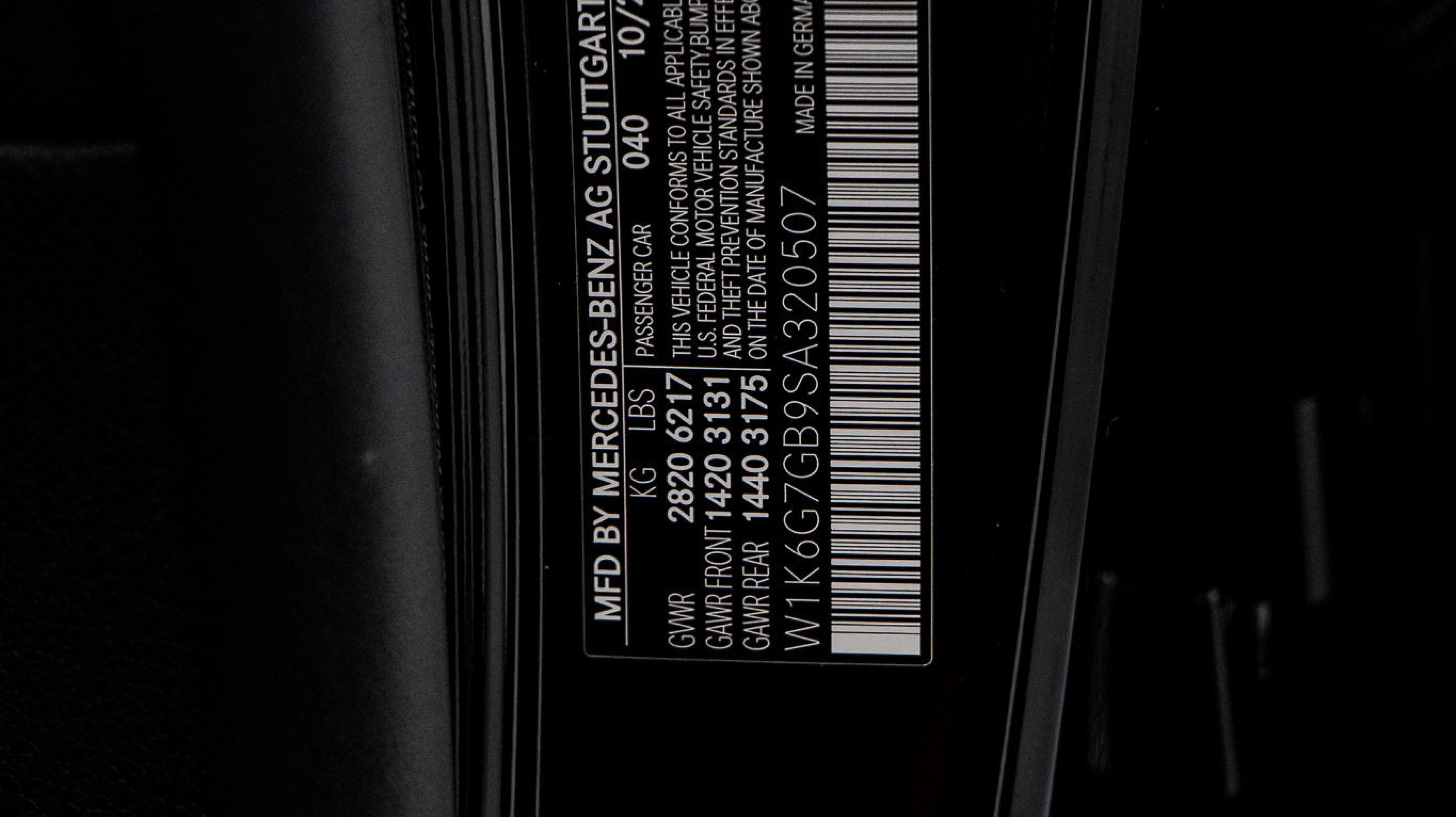 *** VIN:** W1K6G7GB9SA320507