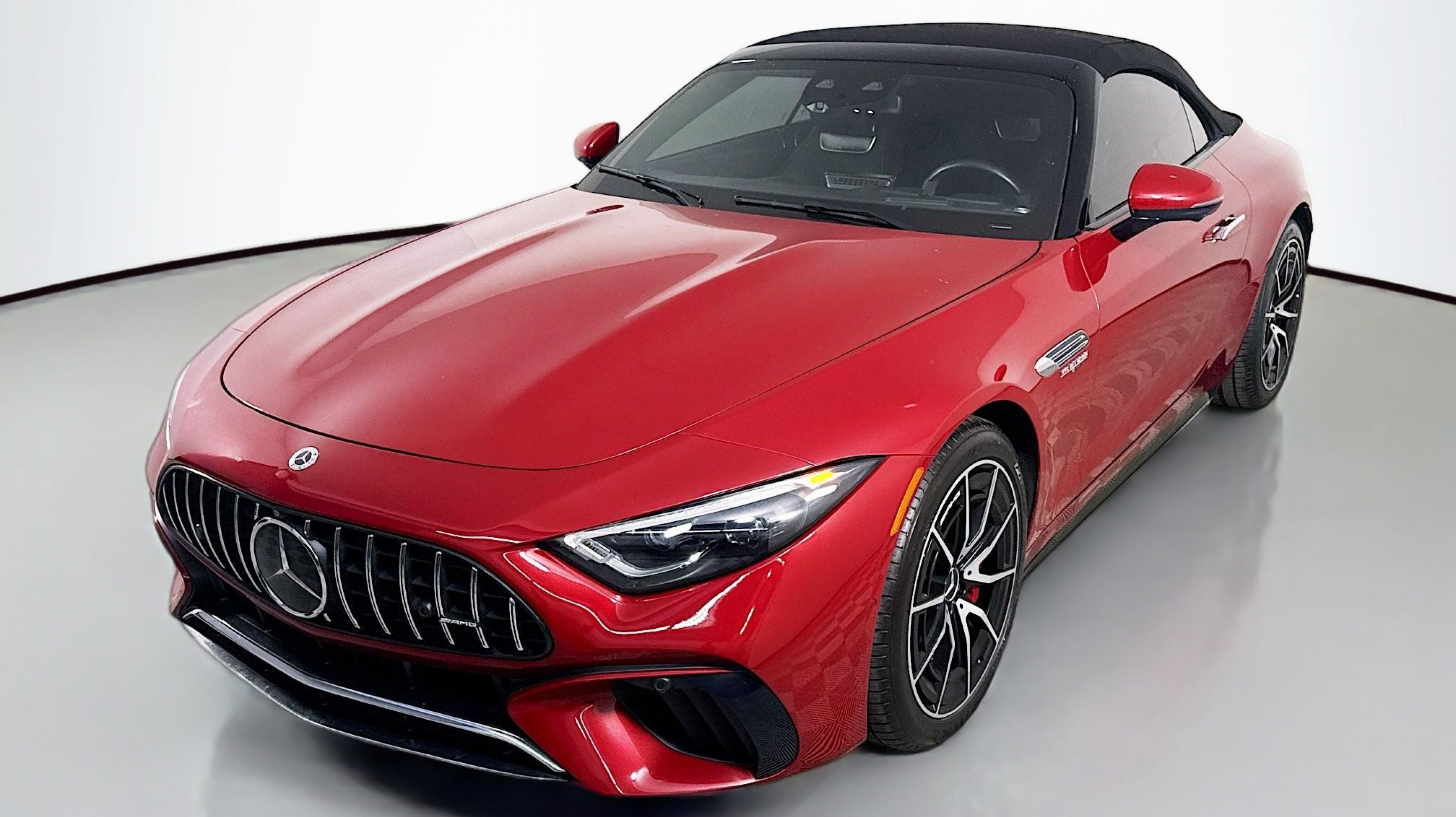 MANUFAKTUR Patagonia Red Metallic 2022 Mercedes-Benz SL-Class SL 55 AMG® 4MATIC® 4MATIC® 9-Speed Automatic 4.0L V8 Black w/Nappa Leather Upholstery, AMG® Exterior Chrome Package, Driver Assistance Package, Wheels: 21 AMG® Multi-Spoke Y-Design Silver, 11 Speakers, 4-Wheel Disc Brakes, ABS brakes, Active Multicontour Front Seats w/Massage Feature, Adaptive suspension, Air Conditioning, Alloy wheels, AM/FM radio: SiriusXM, AMG® Performance Steering Wheel in Nappa/Microfiber, Android Auto®, Apple CarPlay®, Apple CarPlay®/Android Auto®, Auto High-beam Headlights, Auto tilt-away steering wheel, Auto-dimming door mirrors, Auto-dimming Rear-View mirror, Automatic temperature control, Black Microfiber Headliner, Bluetooth® Connectivity, Brake assist, Bumpers: body-color, Burmester® High-End 3D Surround Sound System, Burmester® Surround Sound System, Cargo System for Trunk, Child-Seat-Sensing Airbag, Convertible roof lining, Convertible roof wind blocker, Delay-off headlights, Driver door bin, Driver vanity mirror, Dual front impact airbags, Dual front side impact airbags, Electronic Stability Control, Emergency communication system: Mercedes me connect, Exterior Parking Camera Rear, Four wheel independent suspension, Front anti-roll bar, Front Bucket Seats, Front Center Armrest, Front dual zone A/C, Front reading lights, Garage door transmitter: HomeLink, Glass rear window, Guard 360, Heads-Up Display, Heated front seats, Heated steering wheel, Illuminated entry, Integrated roll-over protection, Knee airbag, Leather steering wheel, Low tire pressure warning, MBUX Interior Assistant, Memory seat, Nappa Leather Upholstery, Navigation System, Occupant sensing airbag, Outside temperature display, Overhead airbag, Overhead console, Panic alarm, Passenger door bin, Passenger vanity mirror, Power convertible roof, Power door mirrors, Power driver seat, Power passenger seat, Power steering, Power windows, Radio data system, Radio: MBUX Infotainment & Navigation System, Rain sensing wipers, Rear anti-roll bar, Rear fog lights, Rear window defroster, Remote keyless entry, Security system, SiriusXM Radio, Smartphone Integration, Speed control, Speed-sensing steering, Spoiler, Sport steering wheel, Steering wheel memory, Steering wheel mounted audio controls, Tachometer, Telescoping steering wheel, Tilt steering wheel, Touring Trim Line, Traction control, Trip computer, Turn signal indicator mirrors, Variably intermittent wipers, Ventilated front seats, Black w/Nappa Leather Upholstery, AMG® Exterior Chrome Package, Driver Assistance Package, Wheels: 21 AMG® Multi-Spoke Y-Design Silver.