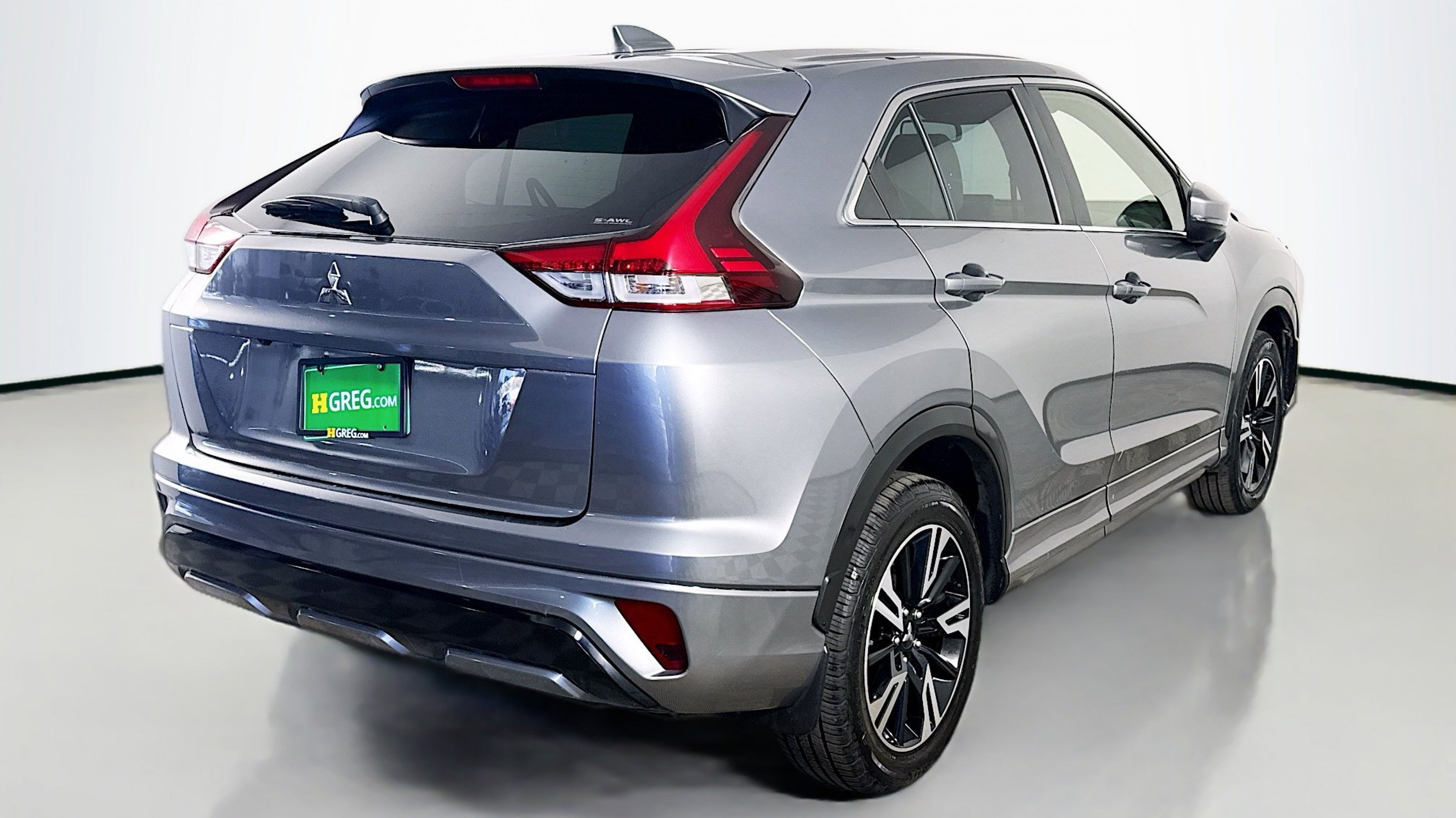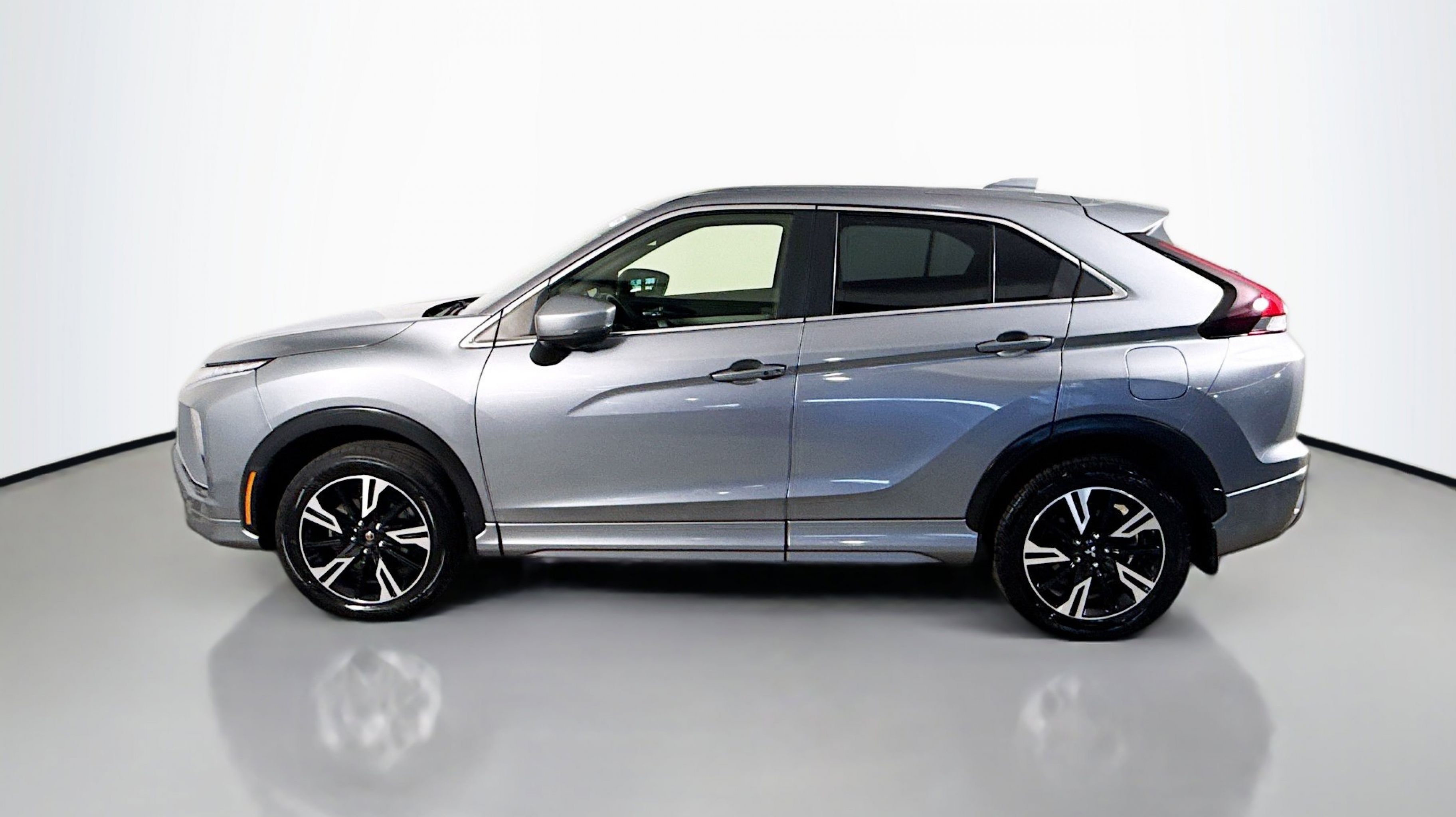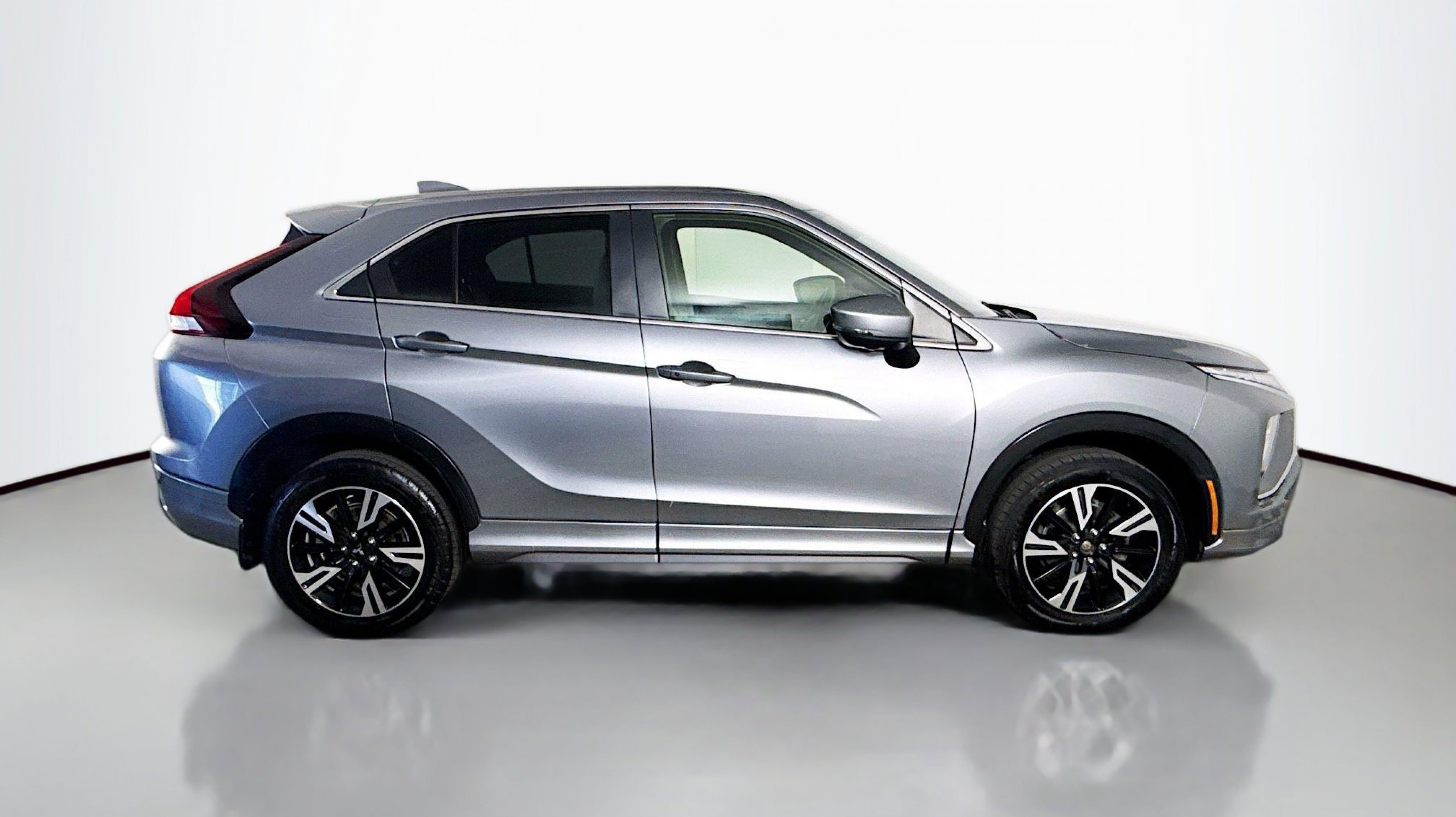 Mercury Gray Metallic 2023 Mitsubishi Eclipse Cross SE 4WD CVT 1.5L I4 DI Turbocharged DOHC 16V LEV3-ULEV70 152hp 4-Wheel Disc Brakes, 6 Speakers, 6.39 Axle Ratio, ABS brakes, Air Conditioning, Alloy wheels, AM/FM radio: SiriusXM, Android Auto & Apple CarPlay, Auto High-beam Headlights, Auto-dimming Rear-View mirror, Automatic temperature control, Brake assist, Bumpers: body-color, Delay-off headlights, Driver door bin, Driver vanity mirror, Dual front impact airbags, Dual front side impact airbags, Electronic Stability Control, Emergency communication system, Exterior Parking Camera Rear, Four wheel independent suspension, Front anti-roll bar, Front Bucket Seats, Front Center Armrest, Front dual zone A/C, Front fog lights, Front reading lights, Fully automatic headlights, Heated door mirrors, Heated Front Bucket Seats, Heated front seats, Illuminated entry, Knee airbag, Low tire pressure warning, Navigation System, Occupant sensing airbag, Outside temperature display, Overhead airbag, Overhead console, Panic alarm, Passenger door bin, Passenger vanity mirror, Power door mirrors, Power driver seat, Power steering, Power windows, Radio data system, Radio: AM/FM 8.0 Nav System w/Smartphone-Link, Rain sensing wipers, Rear anti-roll bar, Rear seat center armrest, Rear window defroster, Rear window wiper, Remote keyless entry, Security system, Speed control, Speed-sensing steering, Split folding rear seat, Spoiler, Steering wheel mounted audio controls, Synthetic Suede Seating Surfaces, Tachometer, Telescoping steering wheel, Tilt steering wheel, Traction control, Trip computer, Turn signal indicator mirrors, Variably intermittent wipers, Wheels: 18 Two-Tone Alloy.