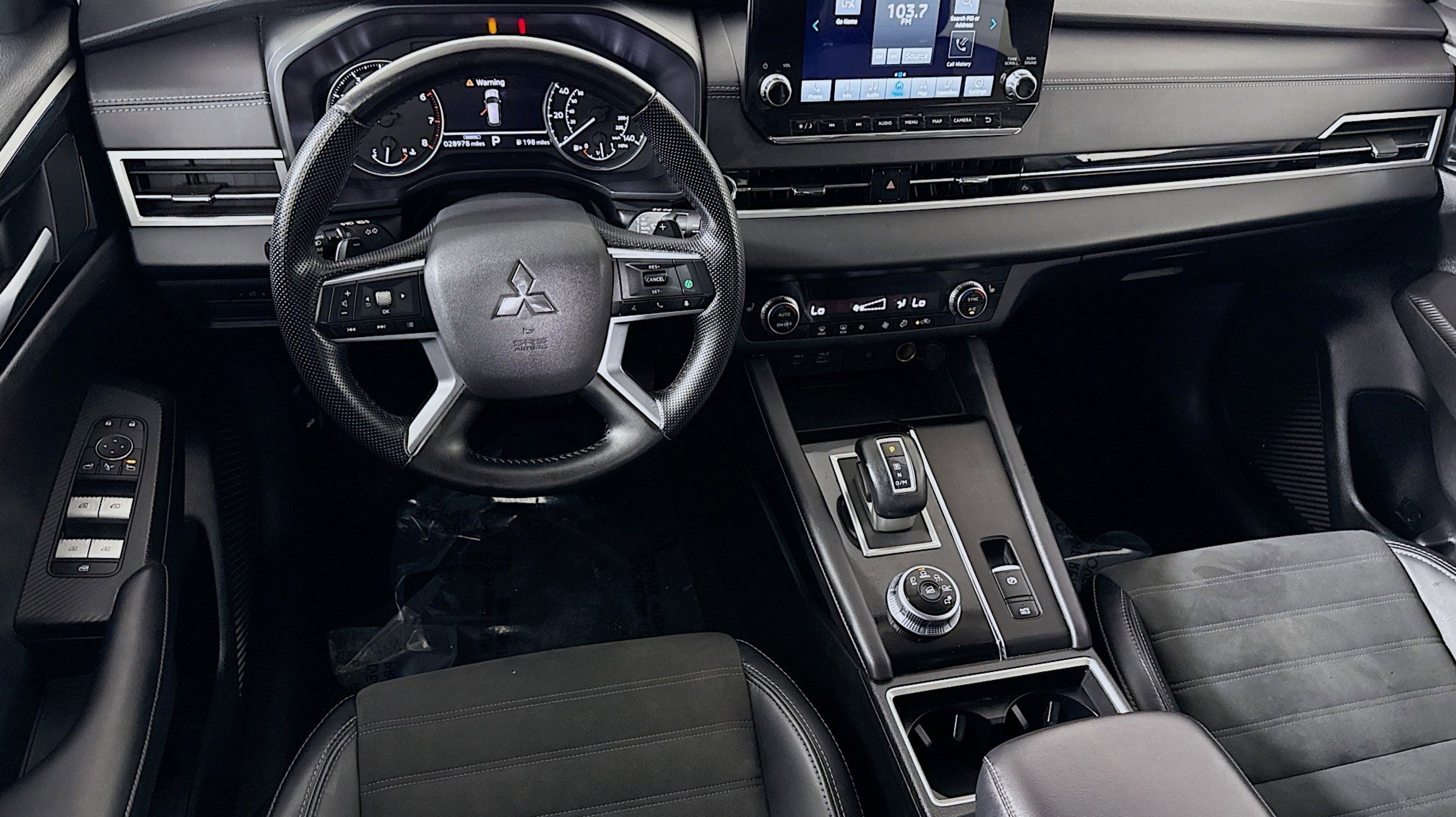 CARFAX One-Owner. 3rd row seats: split-bench, 4-Wheel Disc Brakes, 5.694 Axle Ratio, 6 Speakers, ABS brakes, Air Conditioning, Alloy wheels, AM/FM radio: SiriusXM, Android Auto & Apple CarPlay, Auto High-beam Headlights, Automatic temperature control, Brake assist, Bumpers: body-color, Driver door bin, Driver vanity mirror, Dual front impact airbags, Dual front side impact airbags, Electronic Stability Control, Emergency communication system: Mitsubishi Connect w/ 24-month trial, Exterior Parking Camera Rear, Four wheel independent suspension, Front anti-roll bar, Front Bucket Seats, Front dual zone A/C, Front fog lights, Front reading lights, Fully automatic headlights, Heated door mirrors, Heated Front Bucket Seats, Heated front seats, Illuminated entry, Knee airbag, Leather Shift Knob, Leather steering wheel, Low tire pressure warning, Navigation System, Occupant sensing airbag, Outside temperature display, Overhead airbag, Overhead console, Panic alarm, Passenger door bin, Passenger vanity mirror, Power door mirrors, Power driver seat, Power Liftgate, Power moonroof, Power steering, Power windows, Radio data system, Radio: AM/FM 9.0 Navigation w/Smartphone Link, Rain sensing wipers, Rear anti-roll bar, Rear seat center armrest, REAR SEAT Center Armrest w/Storage, Rear side impact airbag, Rear window defroster, Rear window wiper, Reclining 3rd row seat, Remote keyless entry, Security system, Speed control, Speed-Sensitive Wipers, Split folding rear seat, Spoiler, Steering wheel mounted audio controls, Synthetic Leather Seat Trim, Tachometer, Telescoping steering wheel, Tilt steering wheel, Traction control, Trip computer, Turn signal indicator mirrors, Variably intermittent wipers, Wheels: 20 Black Alloy. Odometer is 15990 miles below market average!