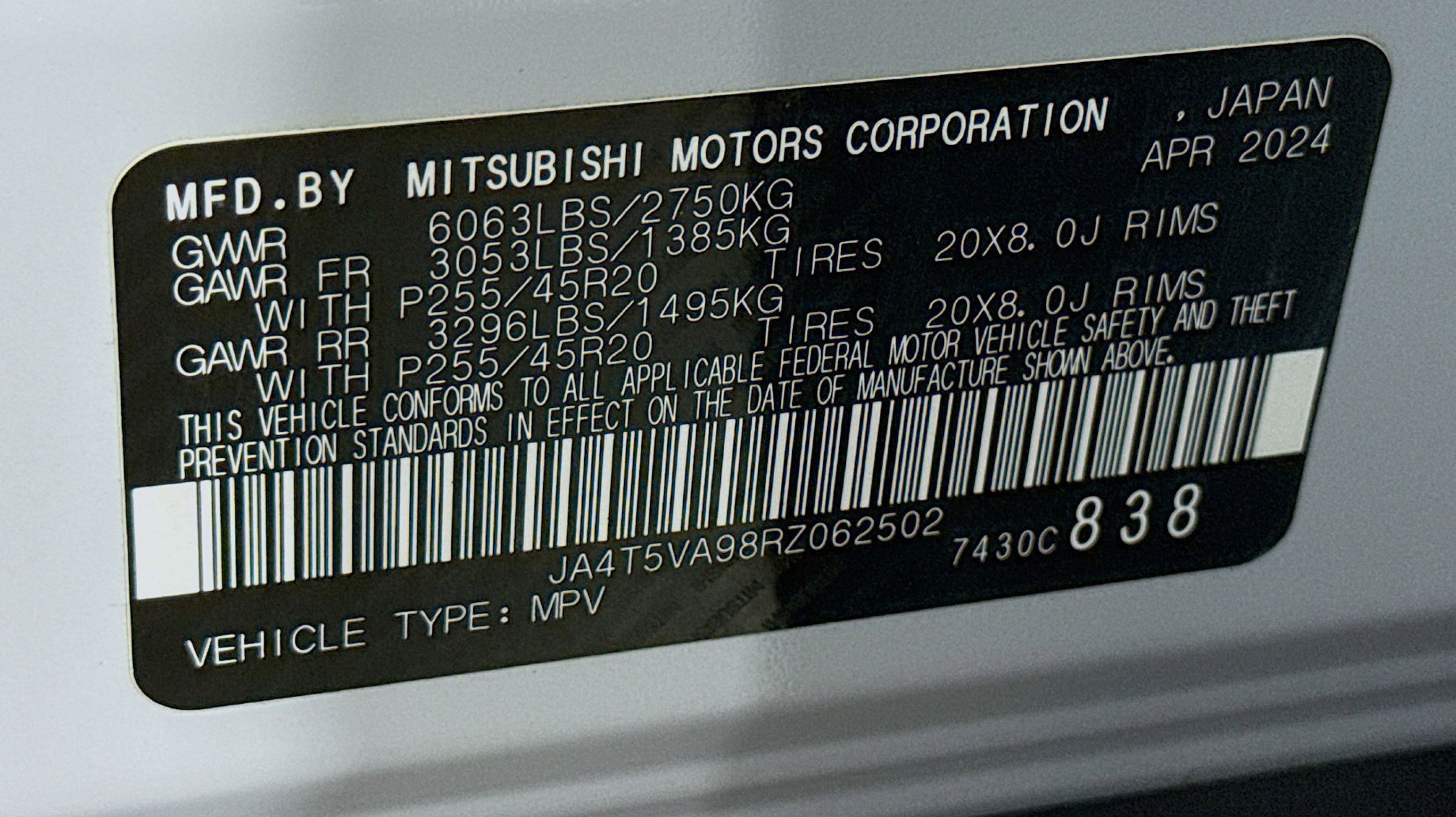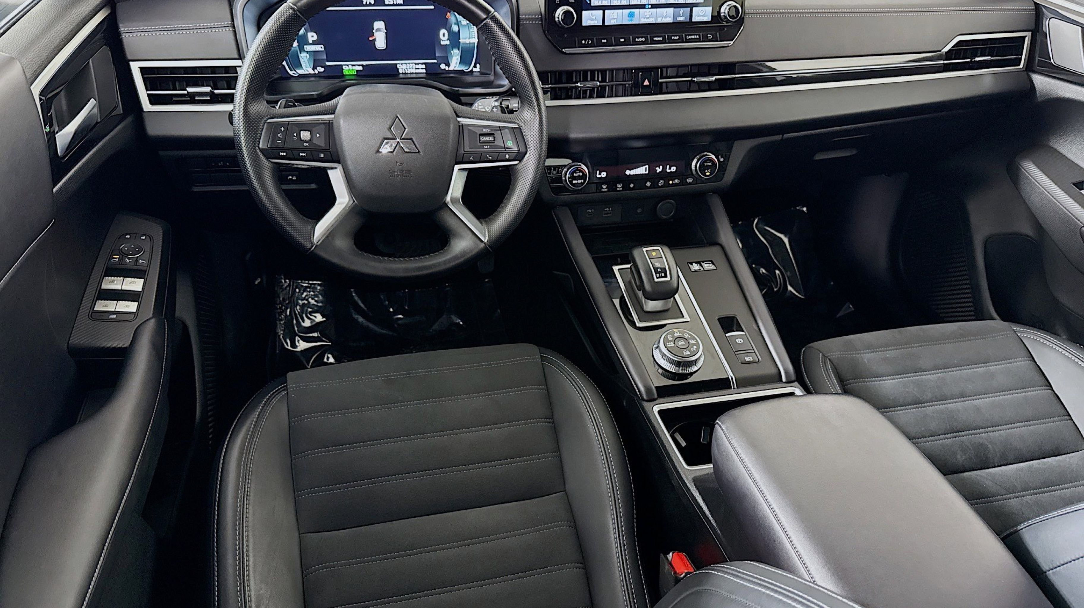 CARFAX One-Owner. Clean CARFAX. 2.4L 4-Cylinder DI DOHC, 3rd row seats: split-bench, 4-Wheel Disc Brakes, 6 Speakers, ABS brakes, Air Conditioning, Alloy wheels, AM/FM radio: SiriusXM, Android Auto & Apple CarPlay, Auto High-beam Headlights, Automatic temperature control, Axle Ratio: TBD, Brake assist, Bumpers: body-color, Driver door bin, Driver vanity mirror, Dual front impact airbags, Dual front side impact airbags, Electronic Stability Control, Emergency communication system: Mitsubishi Connect w/ 24-month trial, Four wheel independent suspension, Front anti-roll bar, Front Bucket Seats, Front dual zone A/C, Front fog lights, Front reading lights, Fully automatic headlights, Headlight cleaning, Heated door mirrors, Heated Front Bucket Seats, Heated front seats, Illuminated entry, Knee airbag, Leather Shift Knob, Leather steering wheel, Low tire pressure warning, Navigation System, Occupant sensing airbag, Outside temperature display, Overhead airbag, Overhead console, Panic alarm, Passenger door bin, Passenger vanity mirror, Power door mirrors, Power driver seat, Power Liftgate, Power moonroof, Power steering, Power windows, Radio data system, Radio: AM/FM 9 Smartphone Link Display Audio, Rain sensing wipers, Rear anti-roll bar, Rear seat center armrest, REAR SEAT Center Armrest w/Storage, Rear side impact airbag, Rear window defroster, Rear window wiper, Reclining 3rd row seat, Remote keyless entry, Security system, Speed control, Speed-Sensitive Wipers, Split folding rear seat, Spoiler, Steering wheel mounted audio controls, Synthetic Leather Seating Surfaces, Tachometer, Telescoping steering wheel, Tilt steering wheel, Traction control, Trip computer, Turn signal indicator mirrors, Variably intermittent wipers, Wheels: 20 Two-Tone Alloy, 2.4L 4-Cylinder DI DOHC. Odometer is 17226 miles below market average!
