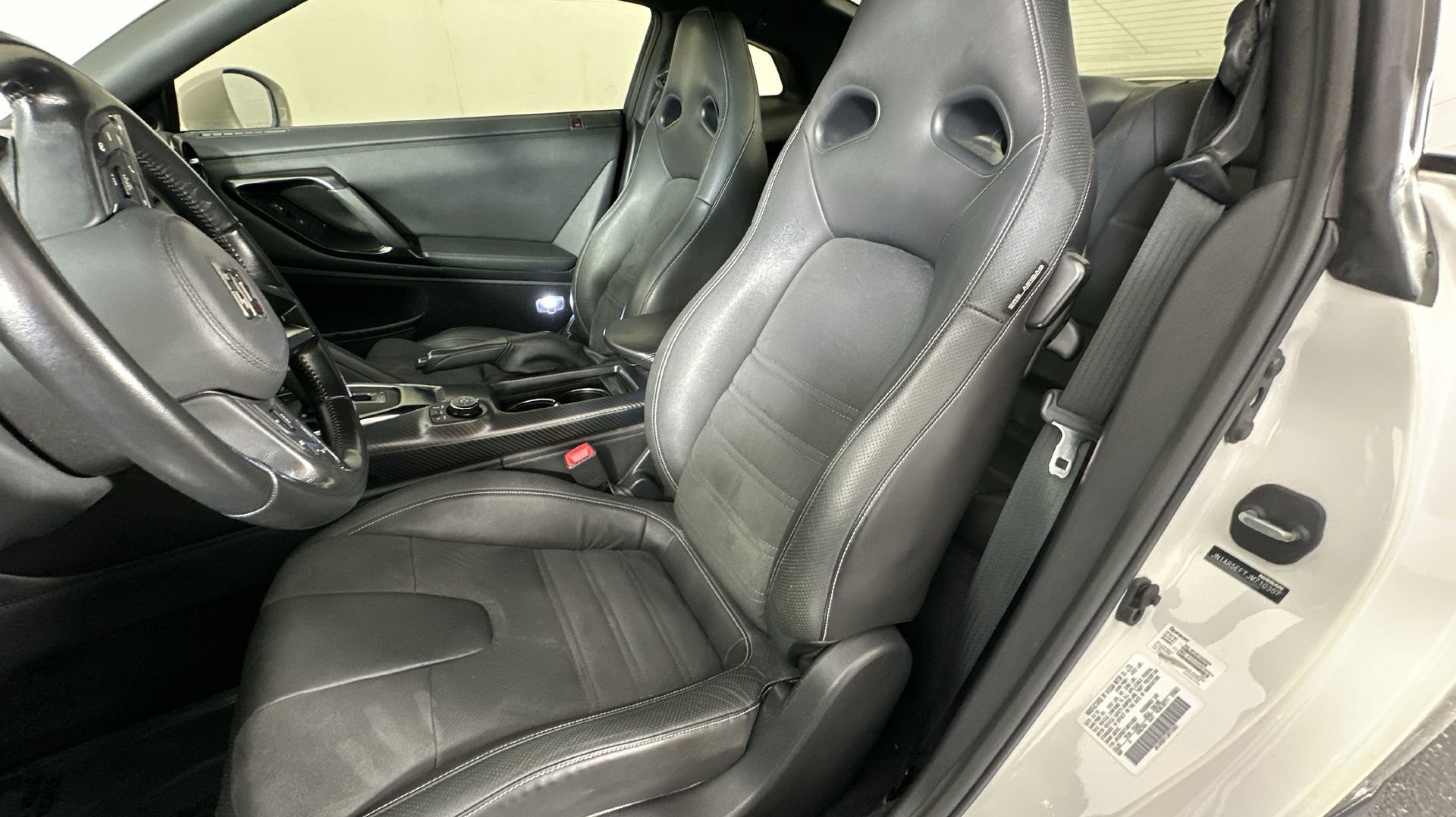 Black Leather, 11 Speakers, 4-Wheel Disc Brakes, ABS brakes, Activation Disclaimer, Adaptive suspension, Air Conditioning, Alloy wheels, AM/FM radio: SiriusXM, Auto-dimming Rear-View mirror, Automatic temperature control, Brake assist, Bumpers: body-color, Carpeted GT-R Logo Floor Mats & First Aid Kit, CD player, Driver door bin, Driver vanity mirror, Dual front impact airbags, Dual front side impact airbags, Electronic Stability Control, Emergency communication system, Four wheel independent suspension, Front anti-roll bar, Front Bucket Seats, Front Center Armrest, Front dual zone A/C, Front reading lights, Fully automatic headlights, Garage door transmitter: HomeLink, Heated door mirrors, Heated front seats, Heated Front Sport Seats, Illuminated entry, Leather Appointed Seat Trim, Leather Shift Knob, Low tire pressure warning, Navigation System, NissanConnect featuring Apple CarPlay, Occupant sensing airbag, Outside temperature display, Overhead airbag, Overhead console, Panic alarm, Passenger door bin, Passenger vanity mirror, Power door mirrors, Power driver seat, Power passenger seat, Power steering, Power windows, Radio data system, Radio: Nissan Connect w/Navigation, Rear anti-roll bar, Rear seat center armrest, Rear window defroster, Remote keyless entry, Security system, Speed control, Speed-sensing steering, Speed-Sensitive Wipers, Spoiler, Steering wheel mounted audio controls, Tachometer, Telescoping steering wheel, Tilt steering wheel, Traction control, Trip computer, Variably intermittent wipers, Wheels: 20 RAYS Forged Aluminum, Black Leather.