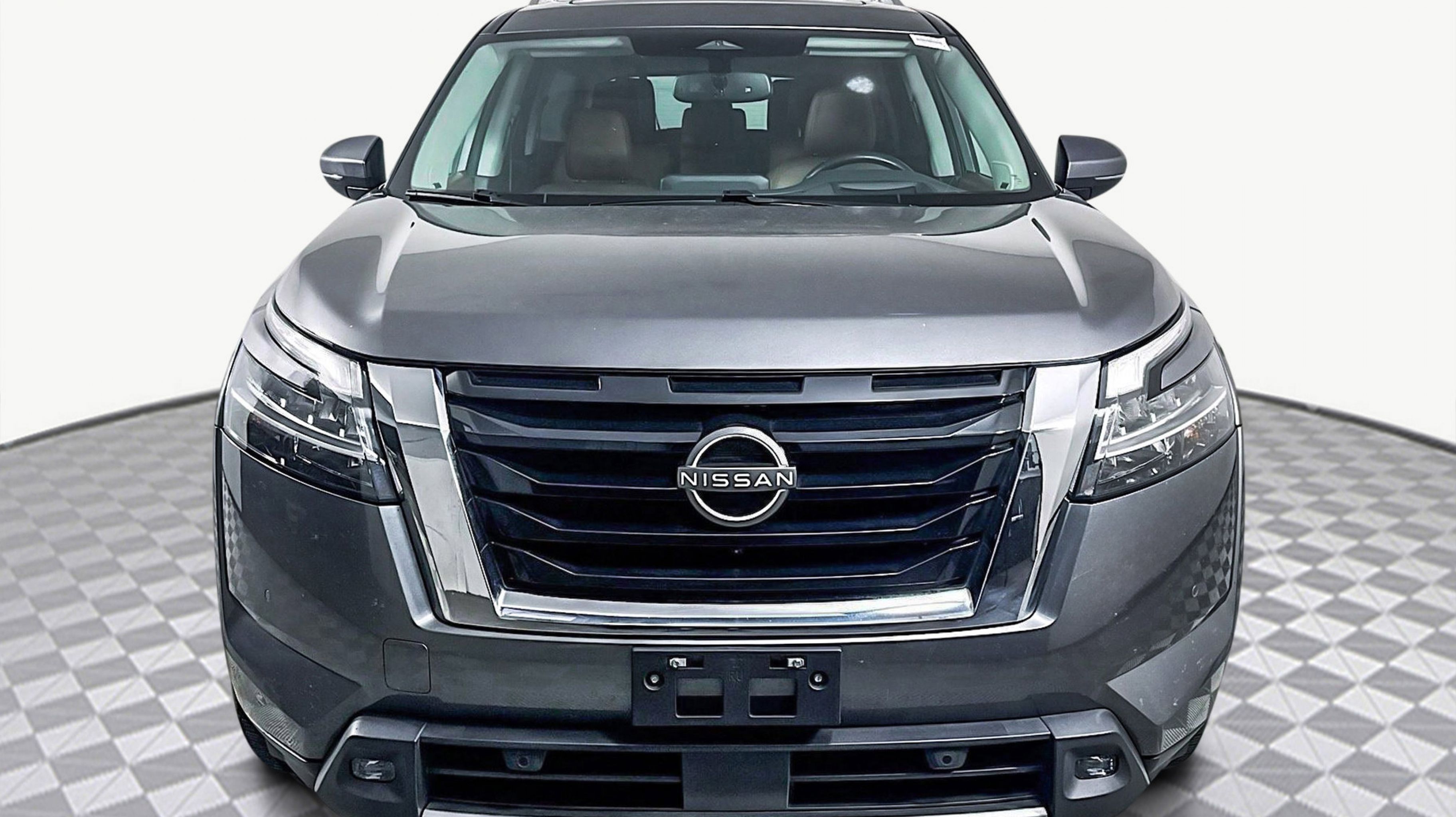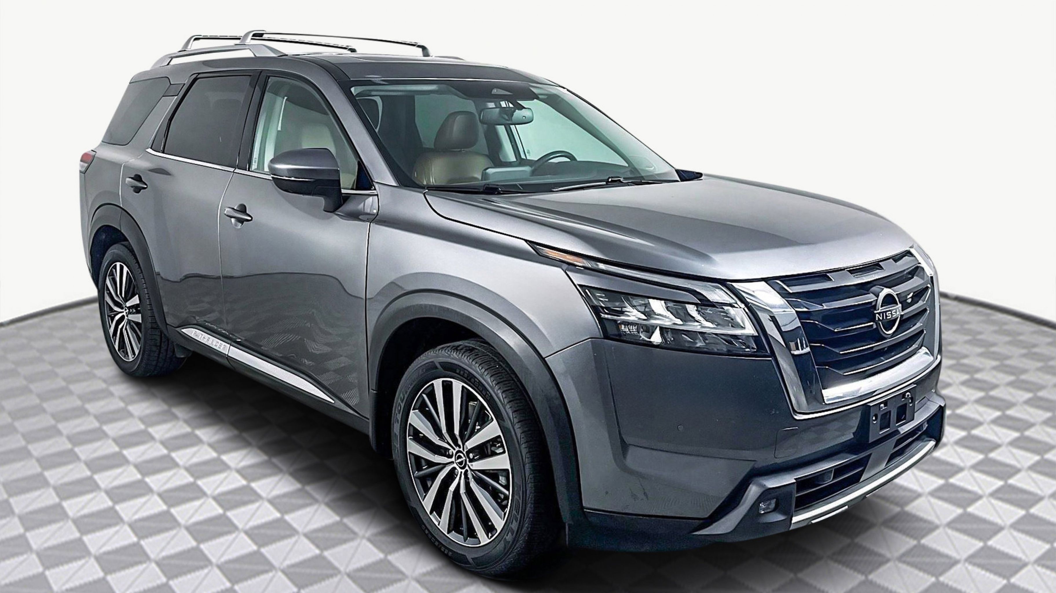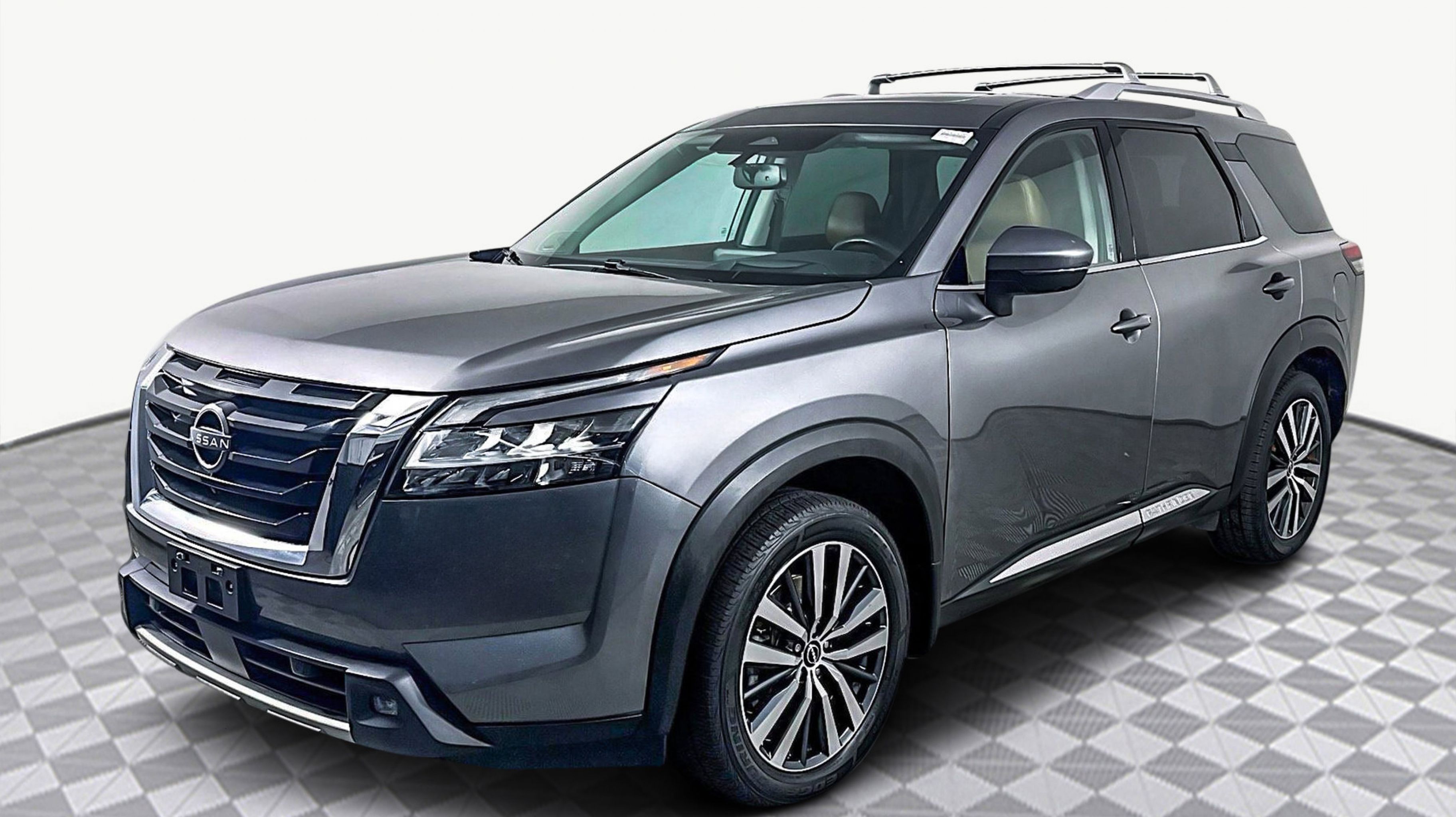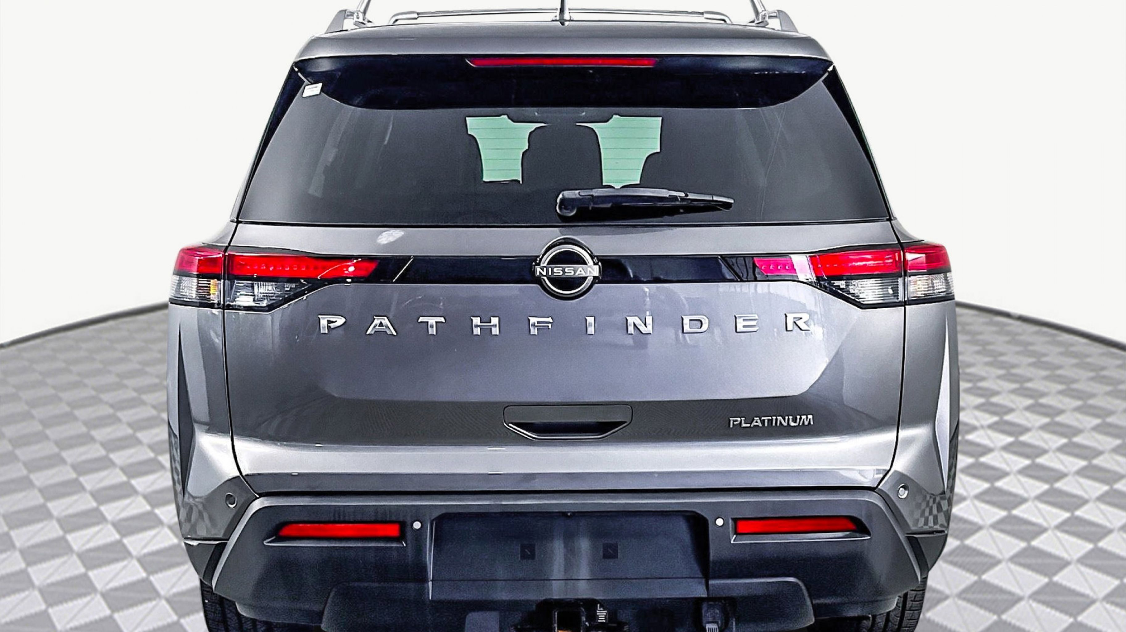 Gun Metallic 2022 Nissan Pathfinder Platinum FWD 9-Speed Automatic V6 Cargo Area Protector, Cargo Net, Cargo Package, First Aid Kit, Platinum Bench Seat Package, 13 Speakers, 3rd row seats: bench, 4-Wheel Disc Brakes, ABS brakes, Air Conditioning, Alloy wheels, AM/FM radio: SiriusXM, Auto High-beam Headlights, Auto tilt-away steering wheel, Auto-dimming Rear-View mirror, Automatic temperature control, Axle Ratio: TBD, Bench Seat Carpeted Floor Mats (Set of 4), Black Splash Guards (Set of 4), Bodyside moldings, Bose Premium Audio System, Brake assist, Bumpers: body-color, Climate Controlled Front Bucket Seats, Cross Bars, Delay-off headlights, Driver door bin, Driver vanity mirror, Dual front impact airbags, Dual front side impact airbags, Electronic Stability Control, Emergency communication system: NissanConnect Services, Exterior Parking Camera Rear, Four wheel independent suspension, Front anti-roll bar, Front Bucket Seats, Front Center Armrest, Front dual zone A/C, Front fog lights, Front reading lights, Fully automatic headlights, Garage door transmitter: HomeLink, Heads-Up Display, Heated door mirrors, Heated front seats, Heated rear seats, Heated steering wheel, Illuminated entry, Knee airbag, Leather steering wheel, Low tire pressure warning, Memory seat, Navigation system: NissanConnect Navigation, NissanConnect w/Navigation & Services, Occupant sensing airbag, Outside temperature display, Overhead airbag, Overhead console, Panic alarm, PANORAMA SUNROOF, Passenger door bin, Passenger vanity mirror, Power door mirrors, Power driver seat, Power Liftgate, Power passenger seat, Power steering, Power windows, Radio data system, Radio: AM/FM Audio System, Rain sensing wipers, Rear air conditioning, Rear anti-roll bar, Rear reading lights, Rear side impact airbag, Rear window defroster, Rear window wiper, Reclining 3rd row seat, Remote keyless entry, Security system, Semi-Aniline Leather Seating Surfaces, Speed control, Speed-sensing steering, Speed-Sensitive Wipers, Split folding rear seat, Spoiler, Steering wheel memory, Steering wheel mounted audio controls, Tachometer, Telescoping steering wheel, Tilt steering wheel, Traction control, Trip computer, Turn signal indicator mirrors, Variably intermittent wipers, Ventilated front seats, Wheels: 20 Alloy w/Unique Finish, Cargo Area Protector, Cargo Net, Cargo Package, First Aid Kit, Platinum Bench Seat Package.