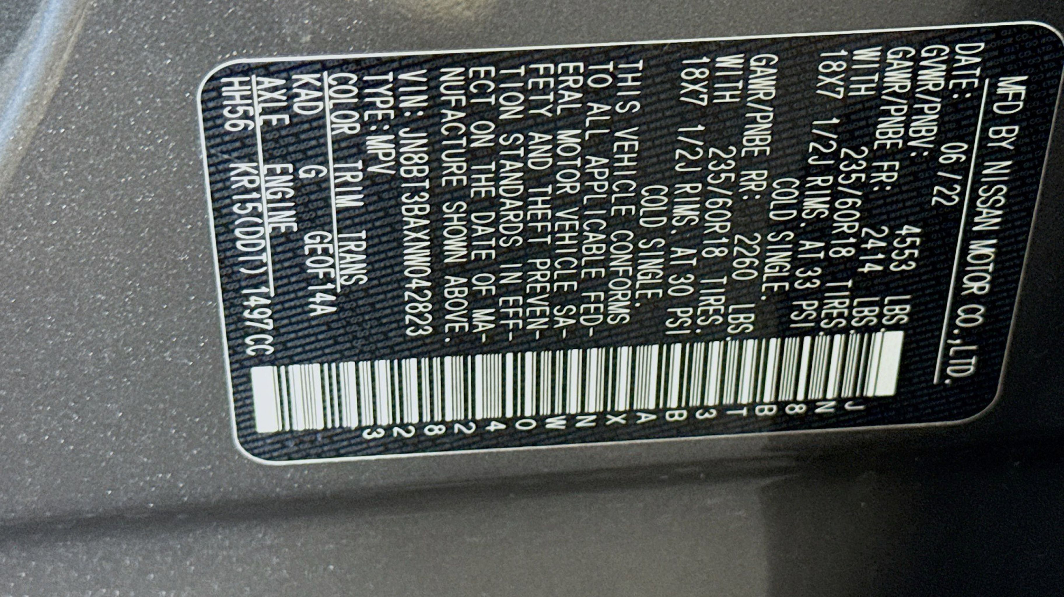 CARFAX One-Owner. 18 Aluminum Alloy Wheels, 4-Wheel Disc Brakes, 5.604 Axle Ratio, 6 Speakers, ABS brakes, Air Conditioning, Alloy wheels, AM/FM Radio, AM/FM radio: SiriusXM, Auto High-beam Headlights, Automatic temperature control, Black Splash Guards (Set of 4), Brake assist, Bumpers: body-color, Chrome Rear Bumper Protector, Cloth Seat Trim, Delay-off headlights, Driver door bin, Driver vanity mirror, Dual front impact airbags, Dual front side impact airbags, Electronic Stability Control, Emergency communication system: NissanConnect Services, First Aid Kit, Floor Mats w/1-Piece Cargo Area Protector, Four wheel independent suspension, Front anti-roll bar, Front Bucket Seats, Front Center Armrest, Front dual zone A/C, Front reading lights, Fully automatic headlights, Heated door mirrors, Illuminated entry, Knee airbag, Low tire pressure warning, NissanConnect featuring Apple CarPlay and Android Auto, Occupant sensing airbag, Outside temperature display, Overhead airbag, Overhead console, Panic alarm, Passenger door bin, Passenger vanity mirror, Power door mirrors, Power driver seat, Power steering, Power windows, Radio data system, Rear anti-roll bar, Rear Parking Sensors, Rear seat center armrest, Rear side impact airbag, Rear window defroster, Rear window wiper, Remote keyless entry, Security system, Speed control, Speed-Sensitive Wipers, Split folding rear seat, Spoiler, Steering wheel mounted audio controls, Tachometer, Telescoping steering wheel, Tilt steering wheel, Traction control, Trip computer, Turn signal indicator mirrors, Variably intermittent wipers. Odometer is 9930 miles below market average!