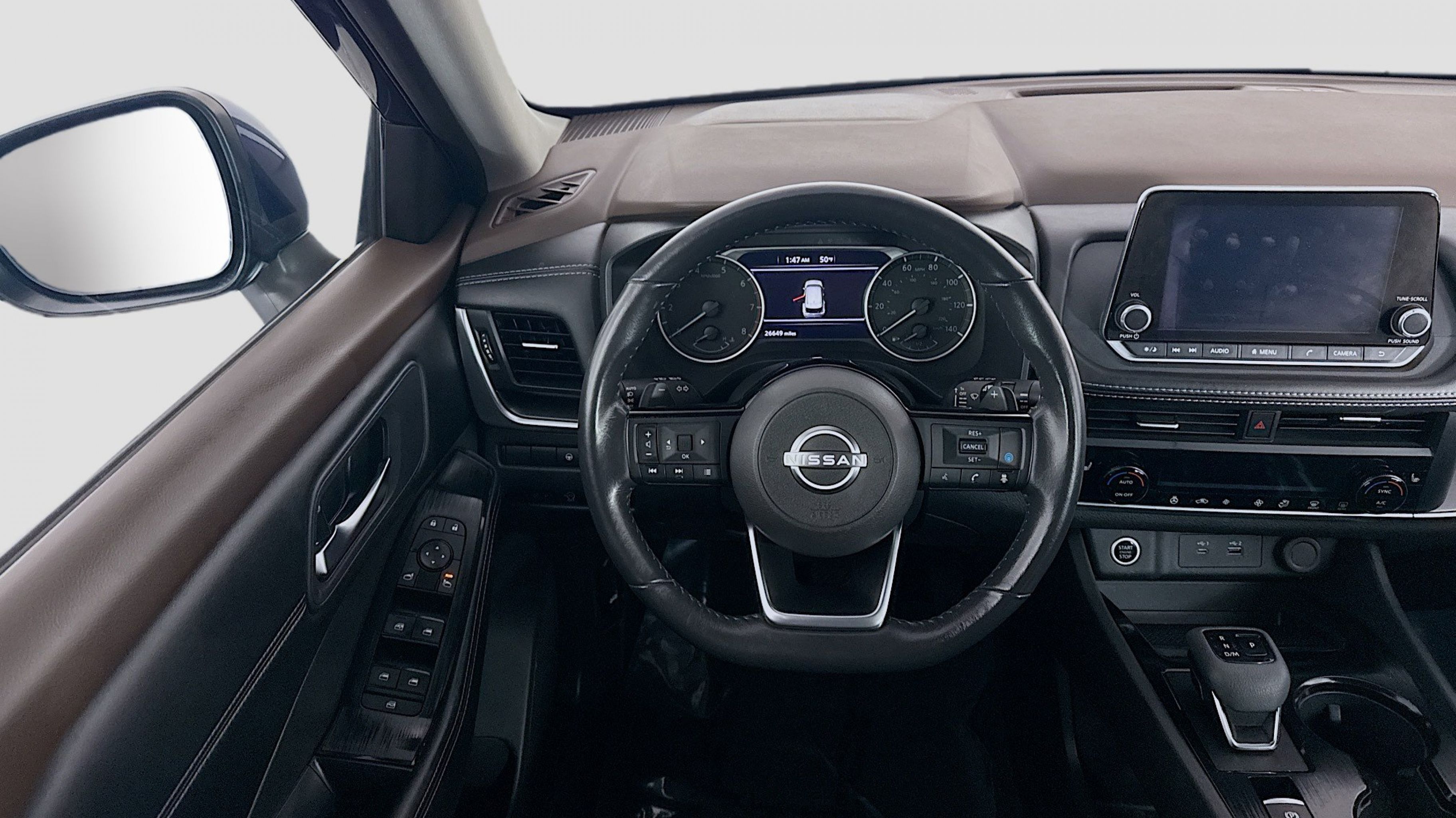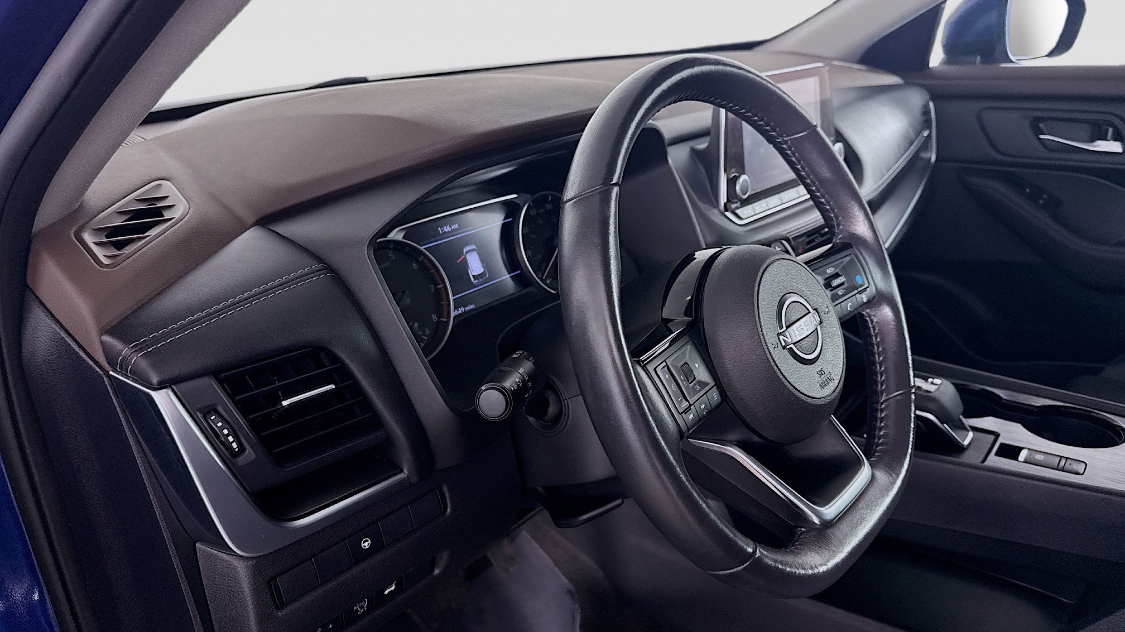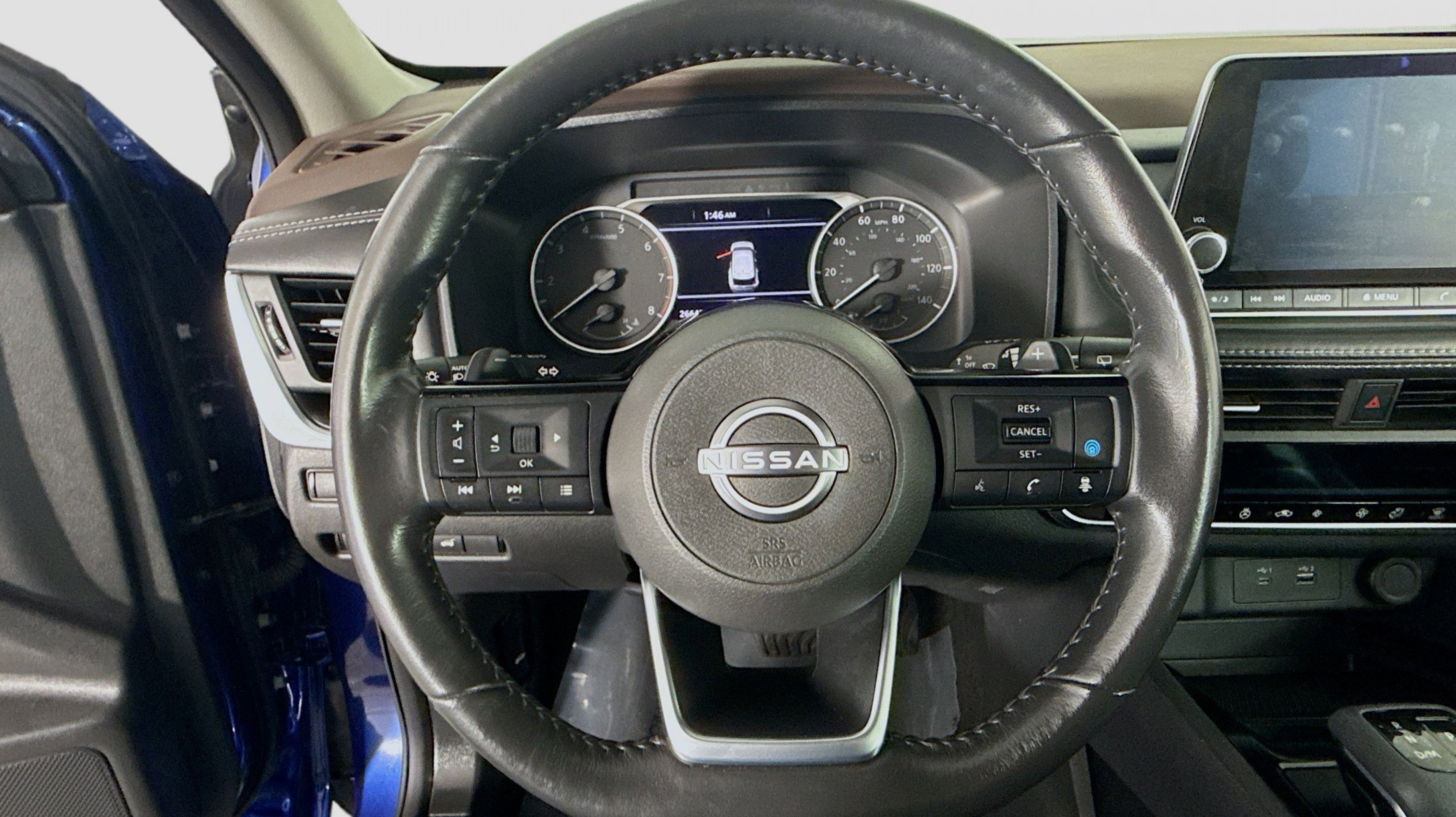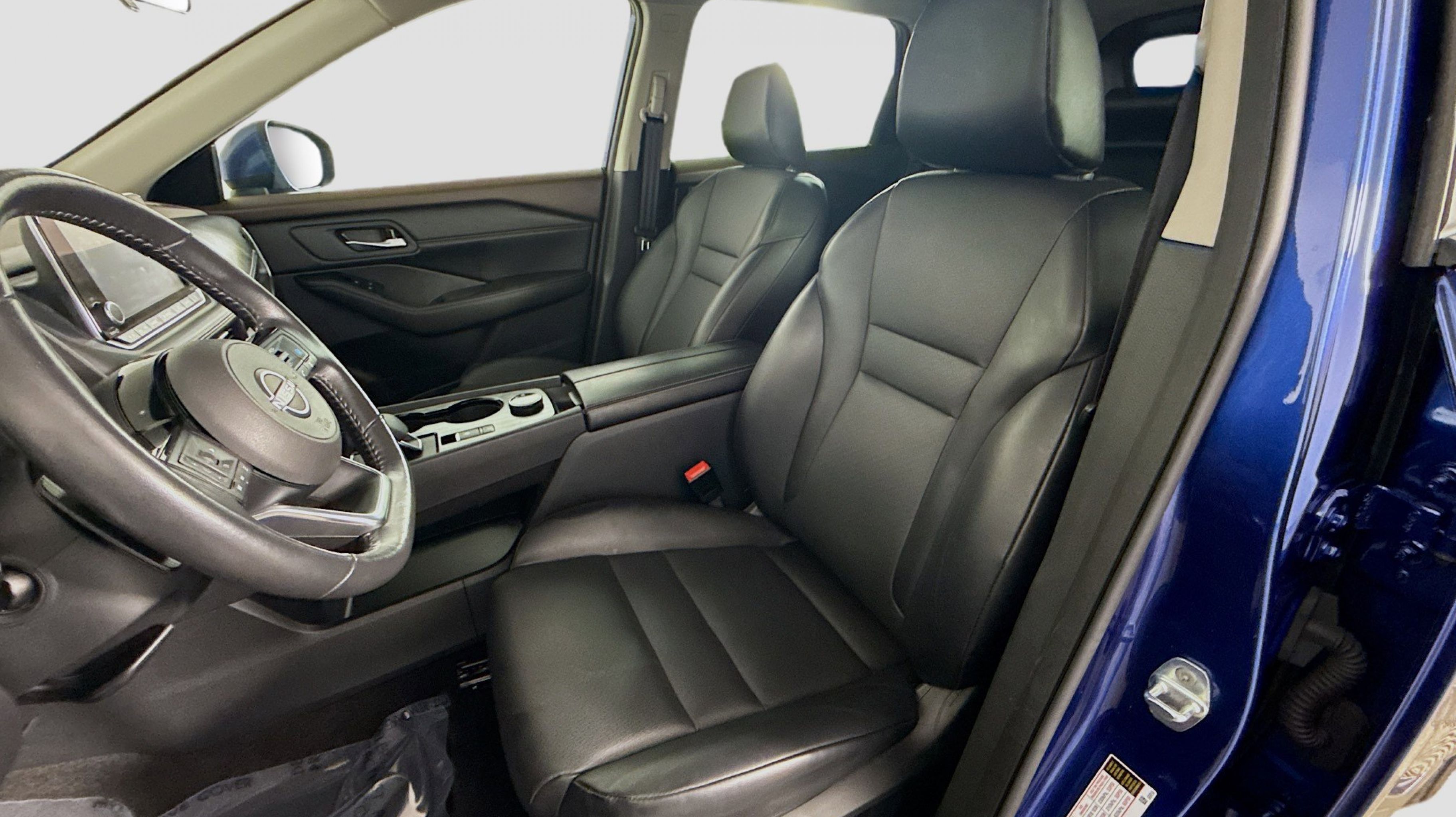 Caspian Blue Metallic 2023 Nissan Rogue SV AWD CVT with Xtronic 1.5L I3 Turbocharged DOHC 12V LEV3-ULEV50 201hp AWD, 18 Aluminum Alloy Wheels, 4-Wheel Disc Brakes, 5.604 Axle Ratio, 6 Speakers, ABS brakes, Air Conditioning, Alloy wheels, AM/FM Radio, AM/FM radio: SiriusXM, Auto High-beam Headlights, Automatic temperature control, Brake assist, Bumpers: body-color, Cloth Seat Trim, Delay-off headlights, Driver door bin, Driver vanity mirror, Dual front impact airbags, Dual front side impact airbags, Electronic Stability Control, Emergency communication system: NissanConnect Services, First Aid Kit, Floor Mats w/1-Piece Cargo Area Protector, Four wheel independent suspension, Front anti-roll bar, Front Bucket Seats, Front Center Armrest, Front dual zone A/C, Front reading lights, Fully automatic headlights, Heated door mirrors, Illuminated entry, Knee airbag, Low tire pressure warning, NissanConnect featuring Apple CarPlay and Android Auto, Occupant sensing airbag, Outside temperature display, Overhead airbag, Overhead console, Panic alarm, Passenger door bin, Passenger vanity mirror, Power door mirrors, Power driver seat, Power steering, Power windows, Radio data system, Rear anti-roll bar, Rear Parking Sensors, Rear seat center armrest, Rear side impact airbag, Rear window defroster, Rear window wiper, Remote keyless entry, Speed control, Speed-Sensitive Wipers, Split folding rear seat, Spoiler, Steering wheel mounted audio controls, Tachometer, Telescoping steering wheel, Tilt steering wheel, Traction control, Trip computer, Variably intermittent wipers, AWD.