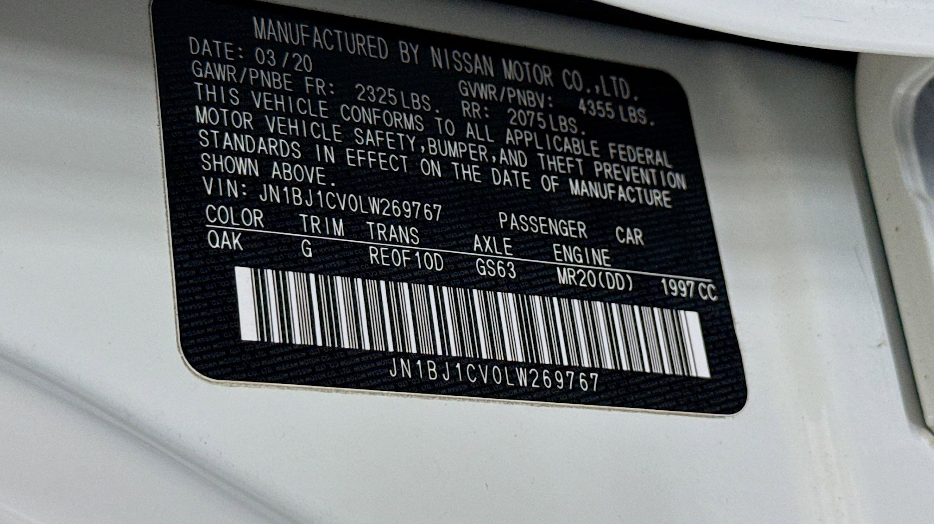 CARFAX One-Owner. 16 x 6.5 Steel Wheels w/Full Covers, 4 Speakers, 4-Wheel Disc Brakes, 6.386 Axle Ratio, ABS brakes, Air Conditioning, AM/FM radio: SiriusXM, Auto High-beam Headlights, Blind Spot Warning, Brake assist, Bumpers: body-color, CD player, Cloth Seat Trim, Delay-off headlights, Driver door bin, Driver vanity mirror, Dual front impact airbags, Dual front side impact airbags, Electronic Stability Control, Four wheel independent suspension, Front anti-roll bar, Front Bucket Seats, Front Center Armrest, Front reading lights, Fully automatic headlights, Illuminated entry, Knee airbag, Low tire pressure warning, NissanConnect featuring Apple CarPlay and Android Auto, Occupant sensing airbag, Outside temperature display, Overhead airbag, Overhead console, Panic alarm, Passenger door bin, Passenger vanity mirror, Power door mirrors, Power steering, Power windows, Radio data system, Radio: AM/FM/CD/AUX NissanConnect, Rear anti-roll bar, Rear Parking Sensors, Rear seat center armrest, Rear side impact airbag, Rear window defroster, Rear window wiper, Remote keyless entry, Security system, Speed control, Speed-sensing steering, Speed-Sensitive Wipers, Splash Guards, Split folding rear seat, Spoiler, Steering wheel mounted audio controls, Tachometer, Telescoping steering wheel, Tilt steering wheel, Traction control, Trip computer, Variably intermittent wipers, Wheels: 17 x 7.0 Aluminum Alloy. Odometer is 42505 miles below market average!