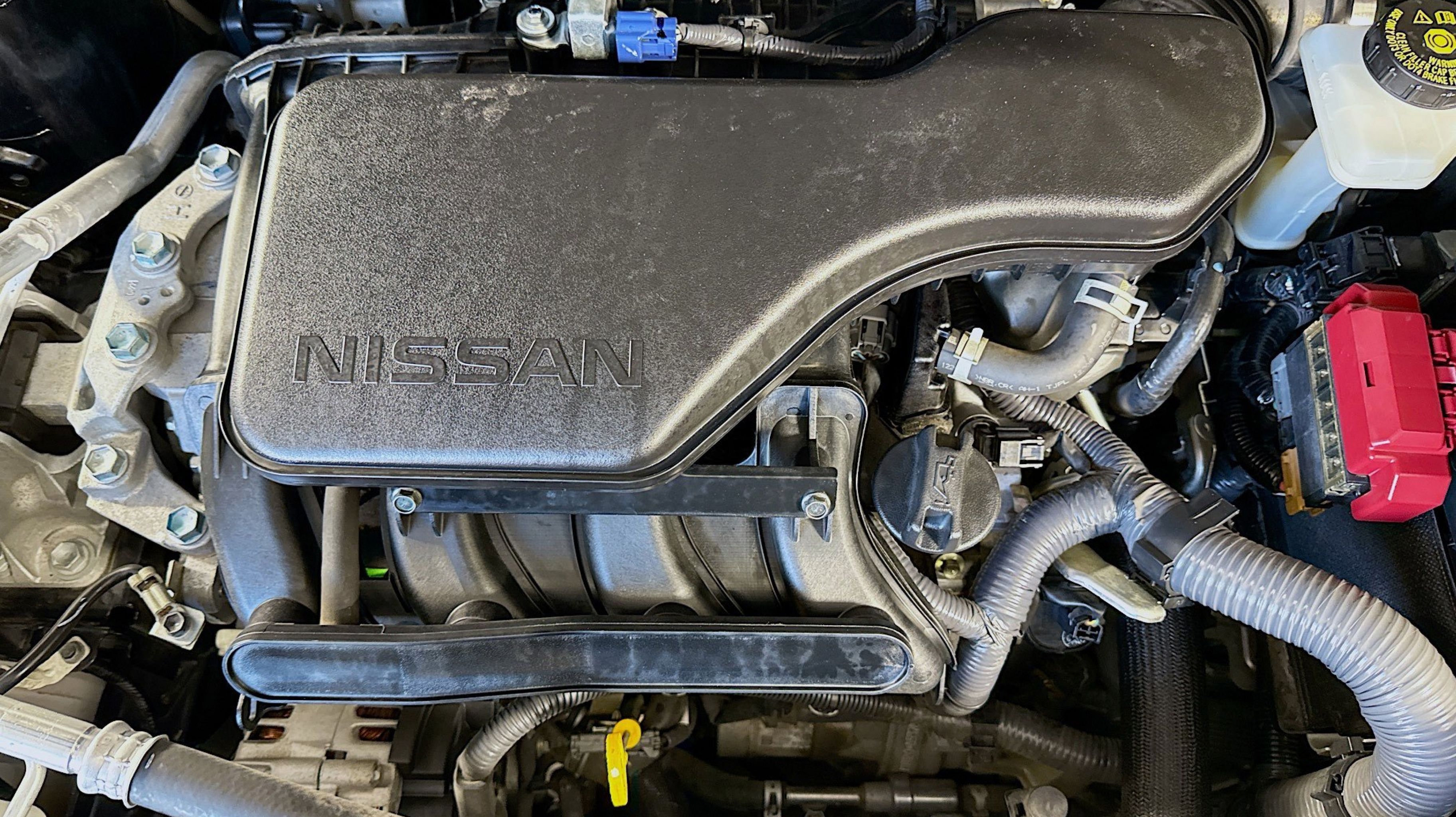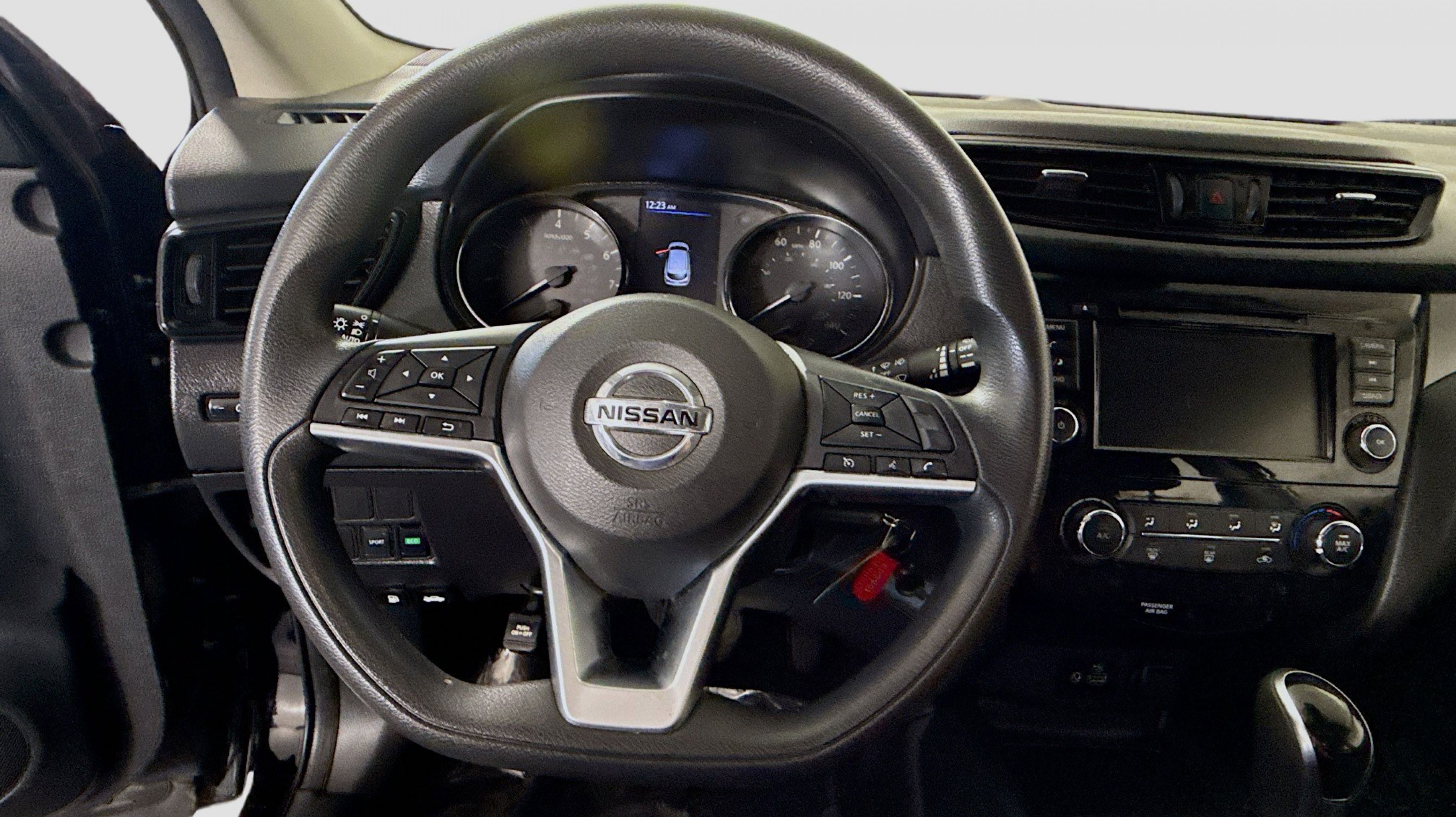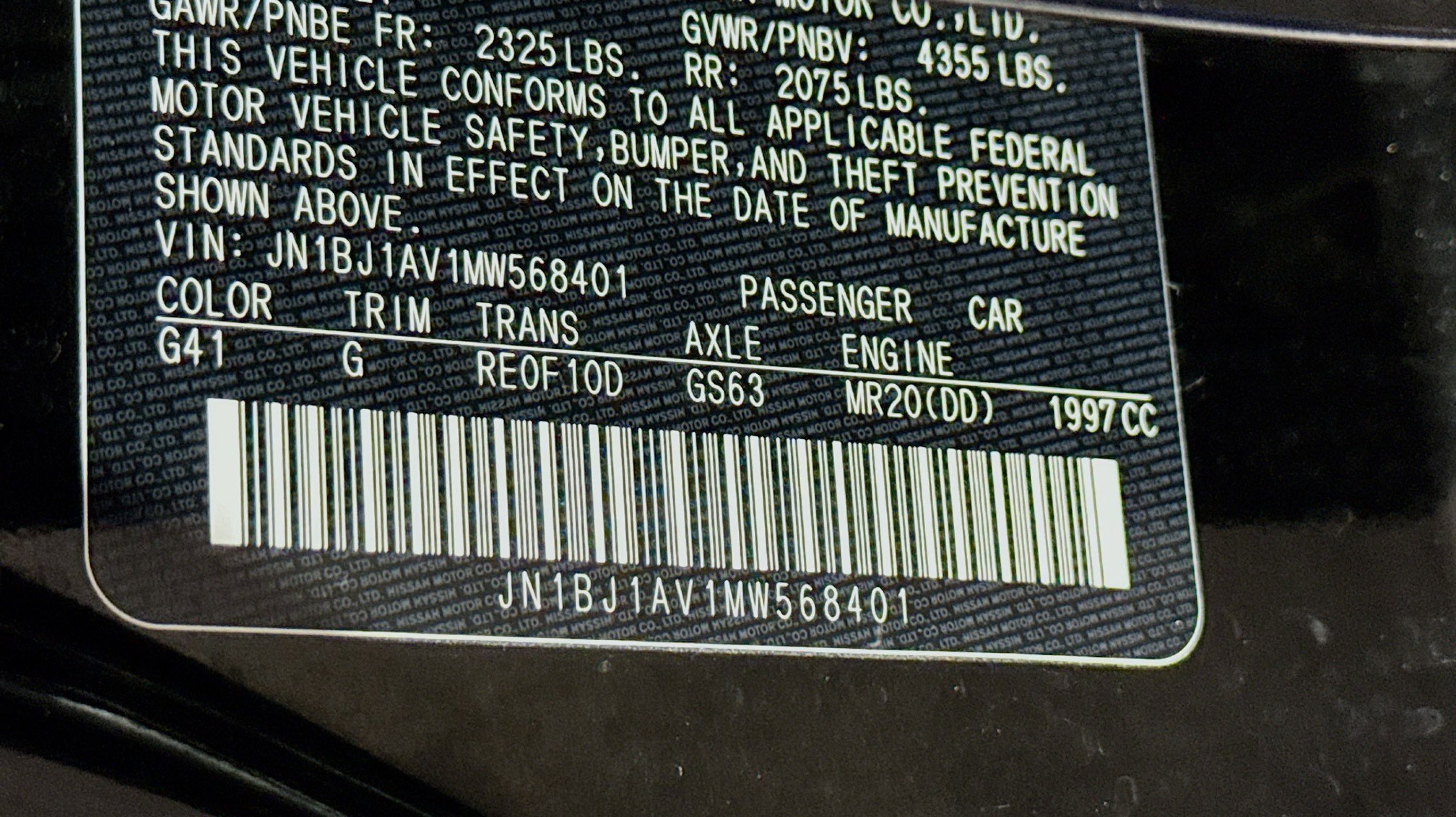 1-Piece Carpeted Cargo Area Protector & Floor Mats, 17 Aluminum Wheels, 4 Speakers, 4-Wheel Disc Brakes, 6.386 Axle Ratio, ABS brakes, Air Conditioning, Alloy wheels, AM/FM Radio, AM/FM radio: SiriusXM, Auto High-beam Headlights, Blind Spot Warning, Brake assist, Bumpers: body-color, CD player, Cloth Seat Trim, Delay-off headlights, Driver door bin, Driver vanity mirror, Dual front impact airbags, Dual front side impact airbags, Electronic Stability Control, First Aid Kit, Four wheel independent suspension, Front anti-roll bar, Front Bucket Seats, Front Center Armrest, Front reading lights, Fully automatic headlights, Illuminated entry, Knee airbag, Low tire pressure warning, NissanConnect featuring Apple CarPlay and Android Auto, Occupant sensing airbag, Outside temperature display, Overhead airbag, Overhead console, Panic alarm, Passenger door bin, Passenger vanity mirror, Power door mirrors, Power steering, Power windows, Radio data system, Rear anti-roll bar, Rear Parking Sensors, Rear seat center armrest, Rear side impact airbag, Rear window defroster, Rear window wiper, Remote keyless entry, Security system, Speed control, Speed-sensing steering, Speed-Sensitive Wipers, Split folding rear seat, Spoiler, Steering wheel mounted audio controls, Tachometer, Telescoping steering wheel, Tilt steering wheel, Traction control, Trip computer, Variably intermittent wipers.