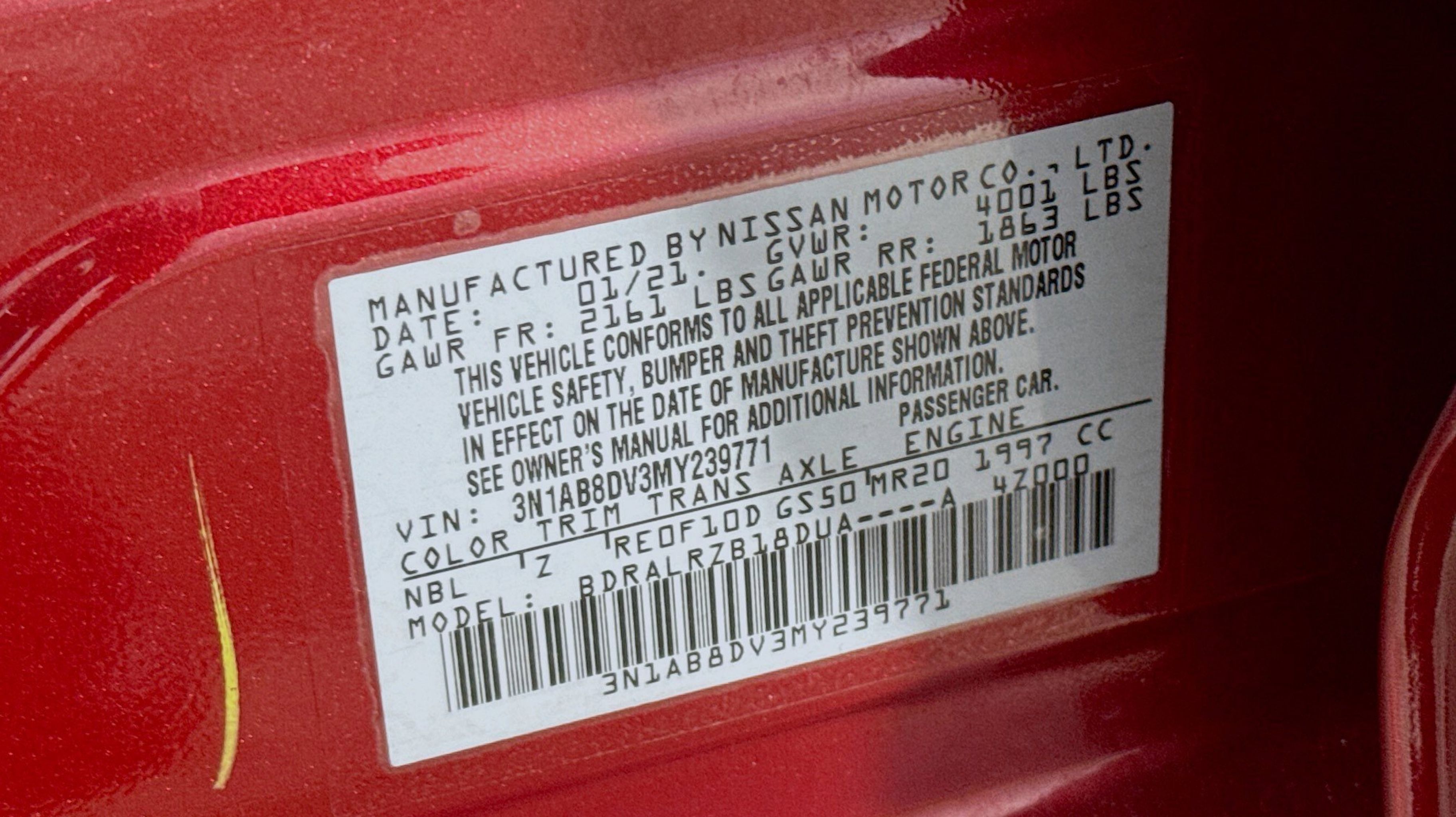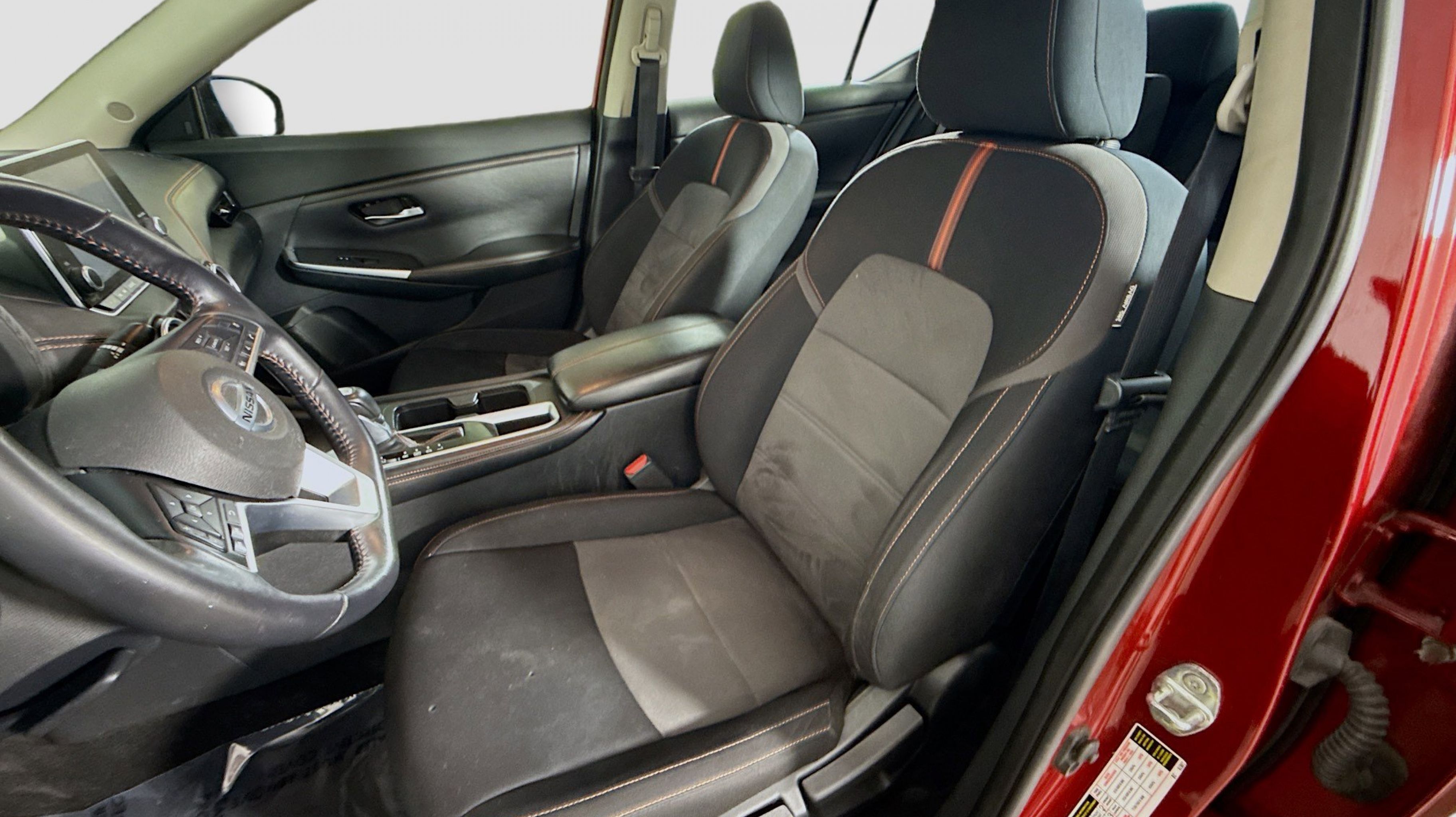 Scarlet Ember Tintcoat 2021 Nissan Sentra SR FWD CVT with Xtronic 2.0L DOHC CVT with Xtronic, Sport w/Sport Cloth Seat Trim or Prima-Tex Seat Trim, 18 Alloy Wheels, 4-Wheel Disc Brakes, 6 Speakers, ABS brakes, Air Conditioning, Alloy wheels, AM/FM radio: SiriusXM, Auto High-beam Headlights, Automatic temperature control, Blind Spot Warning, Brake assist, Bumpers: body-color, Carpeted Floor Mats w/Trunk Mat, Clear Rear Bumper Protector, Delay-off headlights, Door Sill Plates, Driver door bin, Driver vanity mirror, Dual front impact airbags, Dual front side impact airbags, Electronic Stability Control, Four wheel independent suspension, Front anti-roll bar, Front Bucket Seats, Front Center Armrest, Front dual zone A/C, Front fog lights, Front reading lights, Fully automatic headlights, Heated door mirrors, Illuminated entry, Knee airbag, Leather Shift Knob, Low tire pressure warning, NissanConnect featuring Apple CarPlay and Android Auto, Occupant sensing airbag, Outside temperature display, Overhead airbag, Overhead console, Panic alarm, Passenger door bin, Passenger vanity mirror, Power door mirrors, Power steering, Power windows, Radio data system, Radio: AM/FM w/RDS/MP3/Aux-In, Rear anti-roll bar, Rear Parking Sensors, Rear seat center armrest, Rear side impact airbag, Rear window defroster, Remote keyless entry, Security system, Speed control, Speed-sensing steering, Split folding rear seat, Spoiler, Sport Cloth Seat Trim, Steering wheel mounted audio controls, Tachometer, Telescoping steering wheel, Tilt steering wheel, Traction control, Trip computer, Turn signal indicator mirrors, Variably intermittent wipers, CVT with Xtronic, Sport w/Sport Cloth Seat Trim or Prima-Tex Seat Trim.