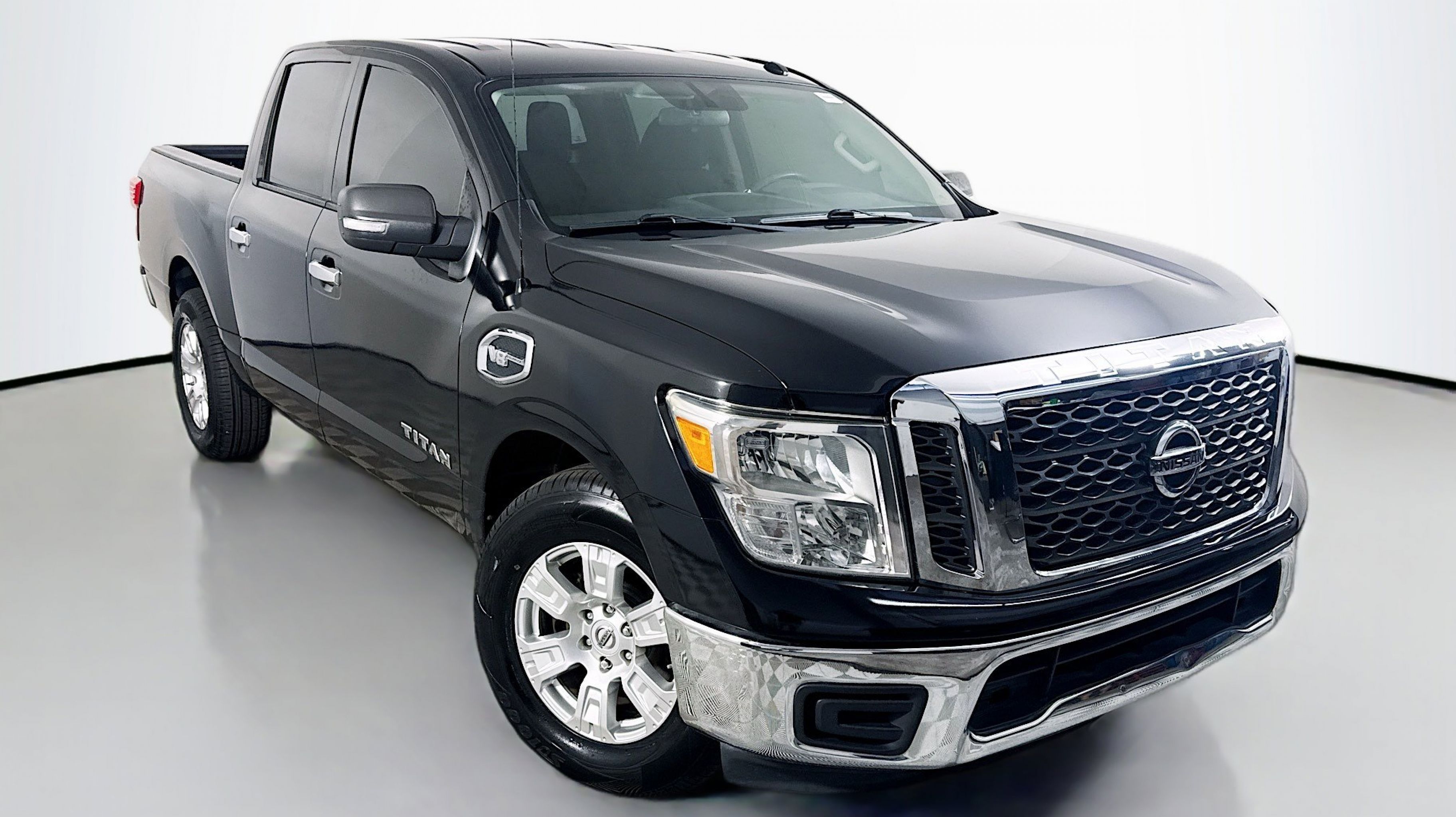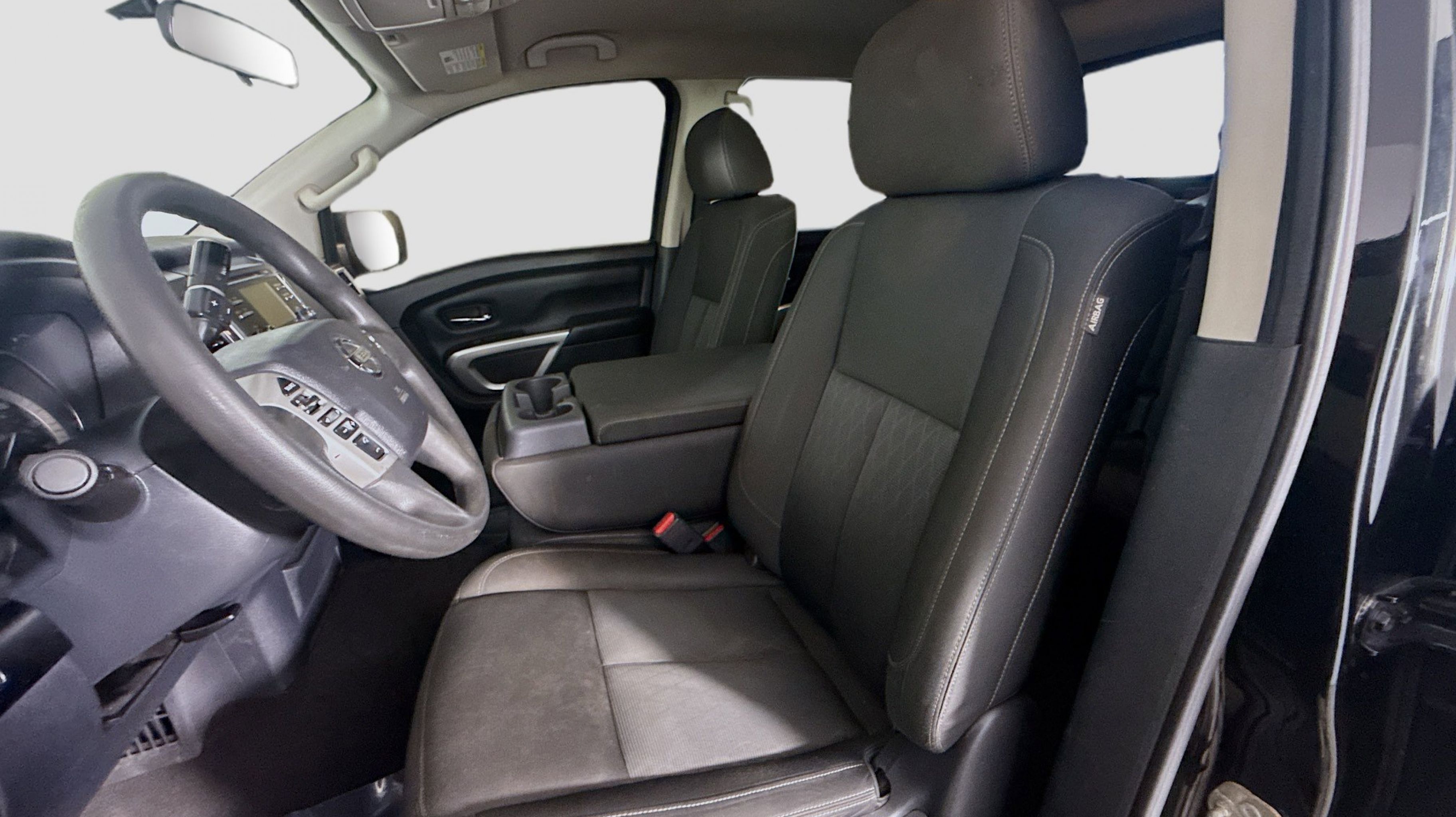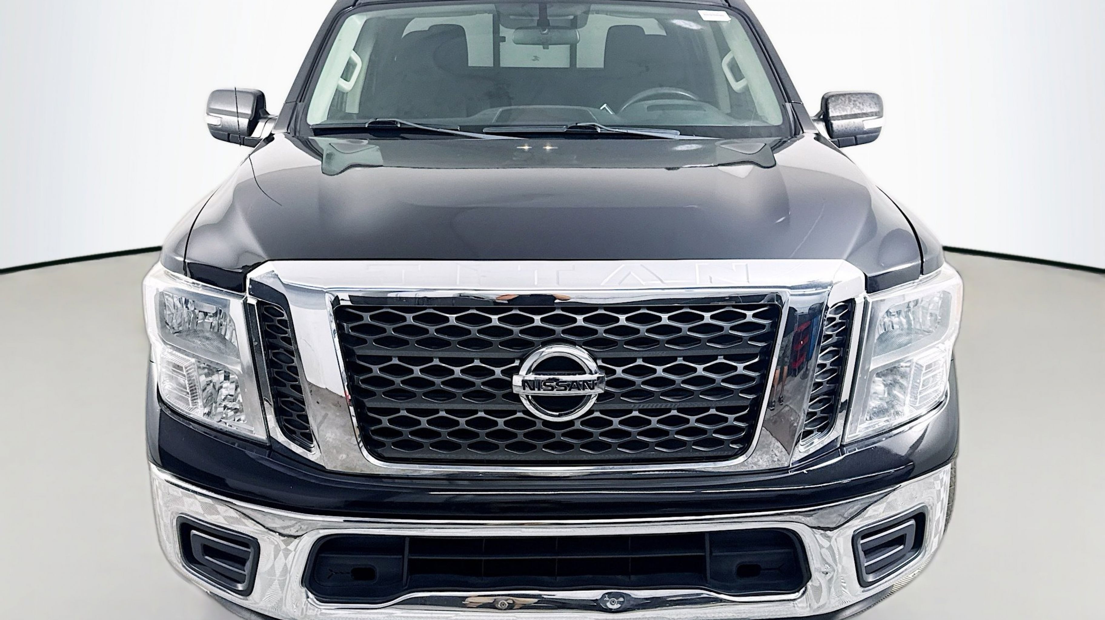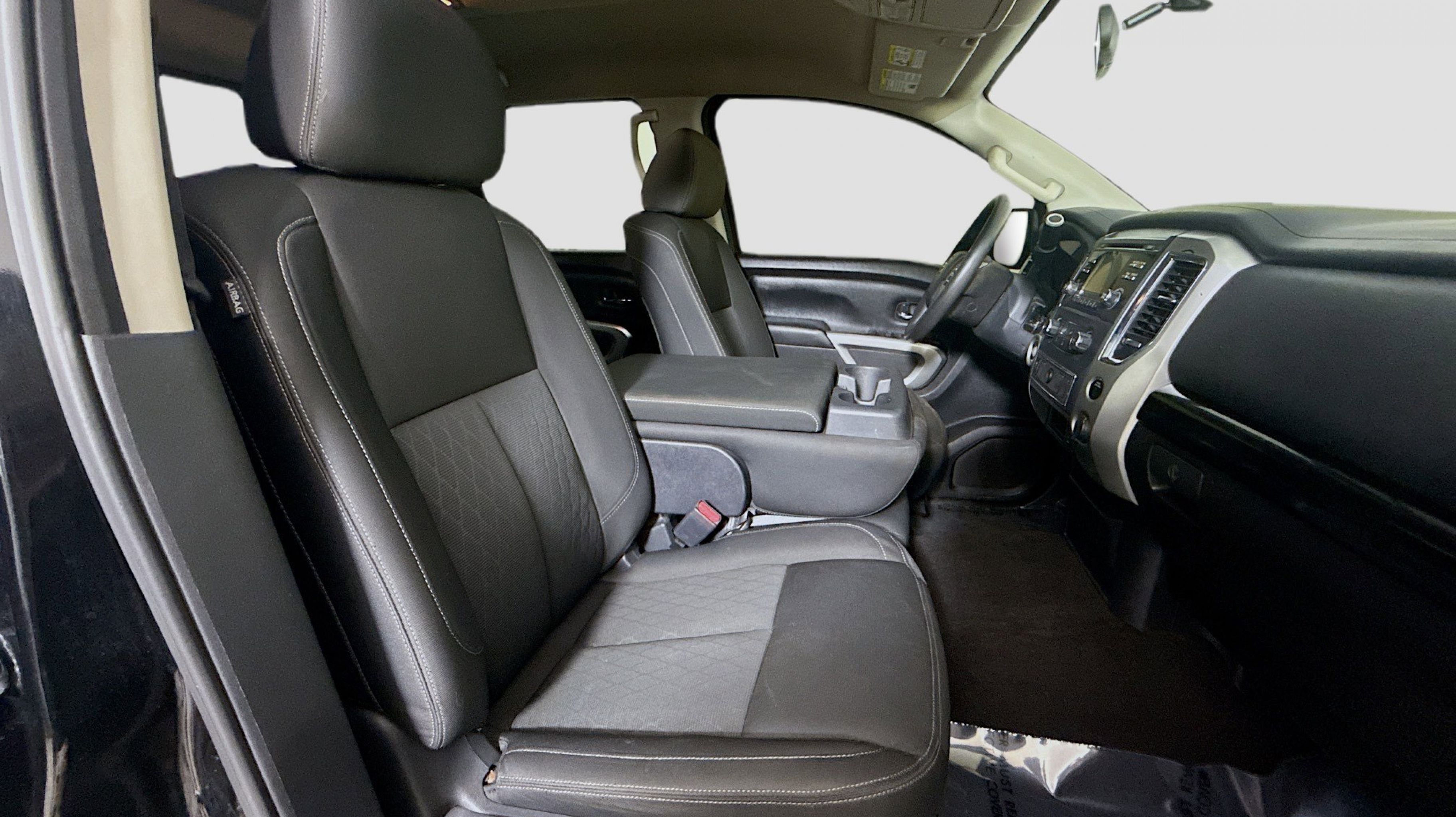 Magnetic Black 2017 Nissan Titan SV RWD 7-Speed Automatic 5.6L V8 2.937 Axle Ratio, 4-Wheel Disc Brakes, 6 Speakers, ABS brakes, Activation Disclaimer, Air Conditioning, Alloy wheels, AM/FM radio: SiriusXM, Brake assist, Bumpers: chrome, Carpeted Floor Mats, CD player, Driver door bin, Driver vanity mirror, Dual front impact airbags, Dual front side impact airbags, Electronic Stability Control, Front anti-roll bar, Front Center Armrest w/Storage, Front Manual Split Bench Seat (40/20/40), Front reading lights, Front wheel independent suspension, Heated door mirrors, Heated Front Captain's Chairs, Illuminated entry, Leather Seat Trim, Low tire pressure warning, Occupant sensing airbag, Outside temperature display, Overhead airbag, Overhead console, Panic alarm, Passenger door bin, Passenger vanity mirror, Power door mirrors, Power steering, Power windows, Radio data system, Radio: NissanConnect w/SiriusXM & Mobile Apps, Rear anti-roll bar, Rear seat center armrest, Rear step bumper, Rear window defroster, Remote keyless entry, Security system, Speed control, Speed-sensing steering, Speed-Sensitive Wipers, Split folding rear seat, Steering wheel mounted audio controls, Tachometer, Telescoping steering wheel, Tilt steering wheel, Traction control, Trip computer, Turn signal indicator mirrors, Variably intermittent wipers, Voltmeter, Wheels: 18 x 8 Silver Painted Alloy.