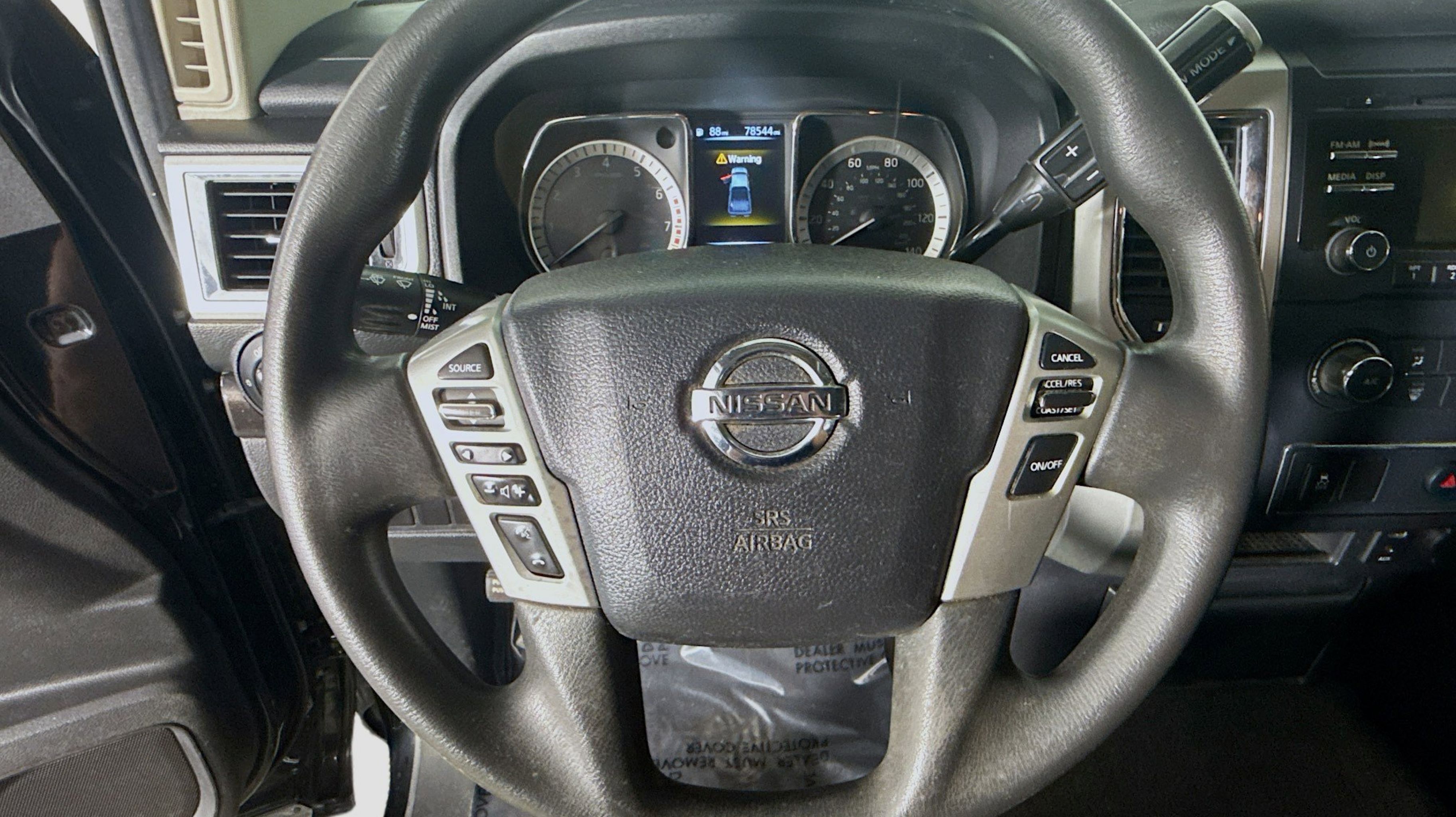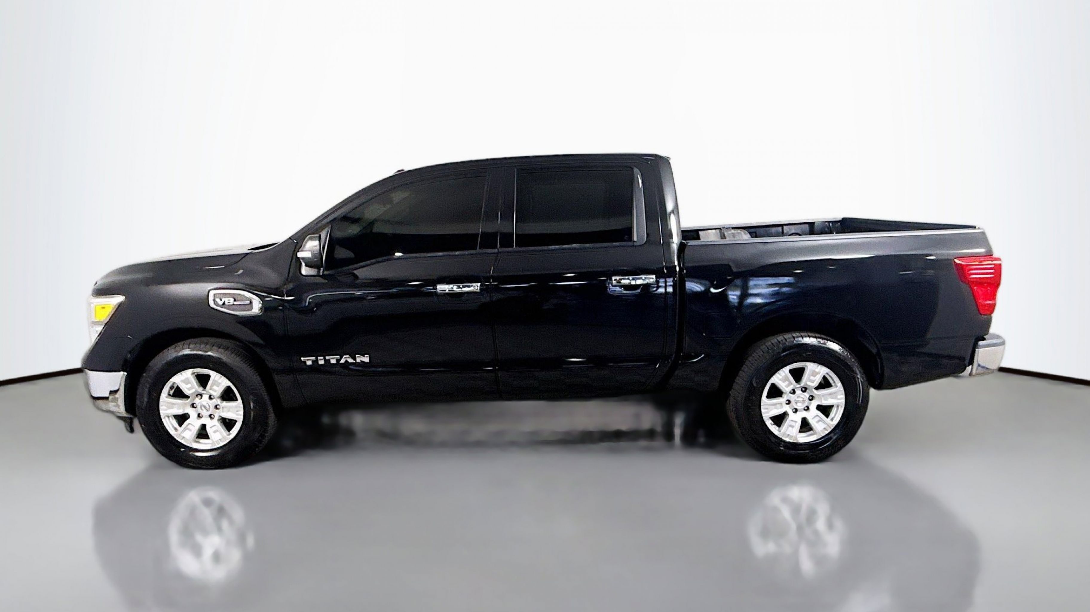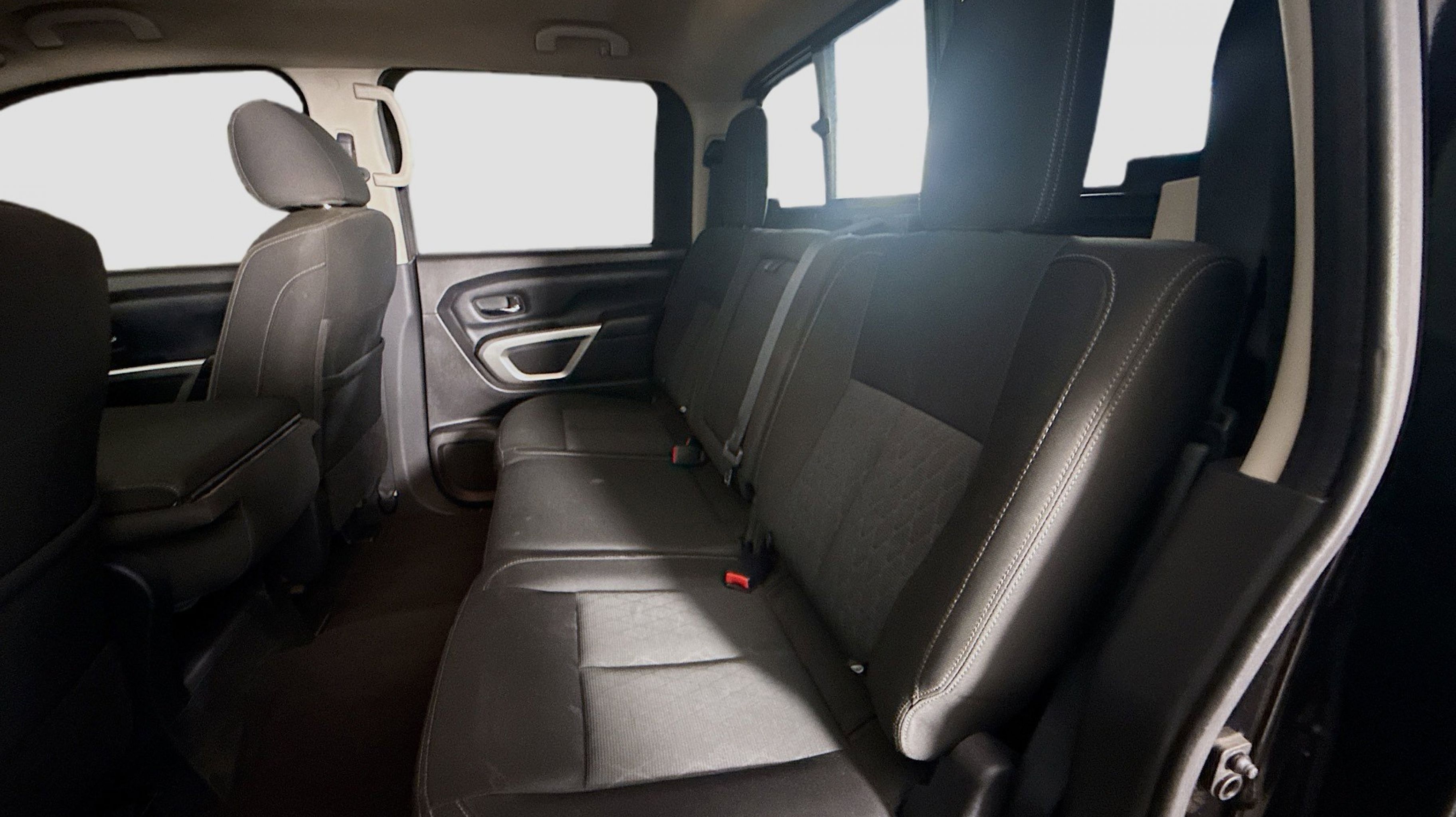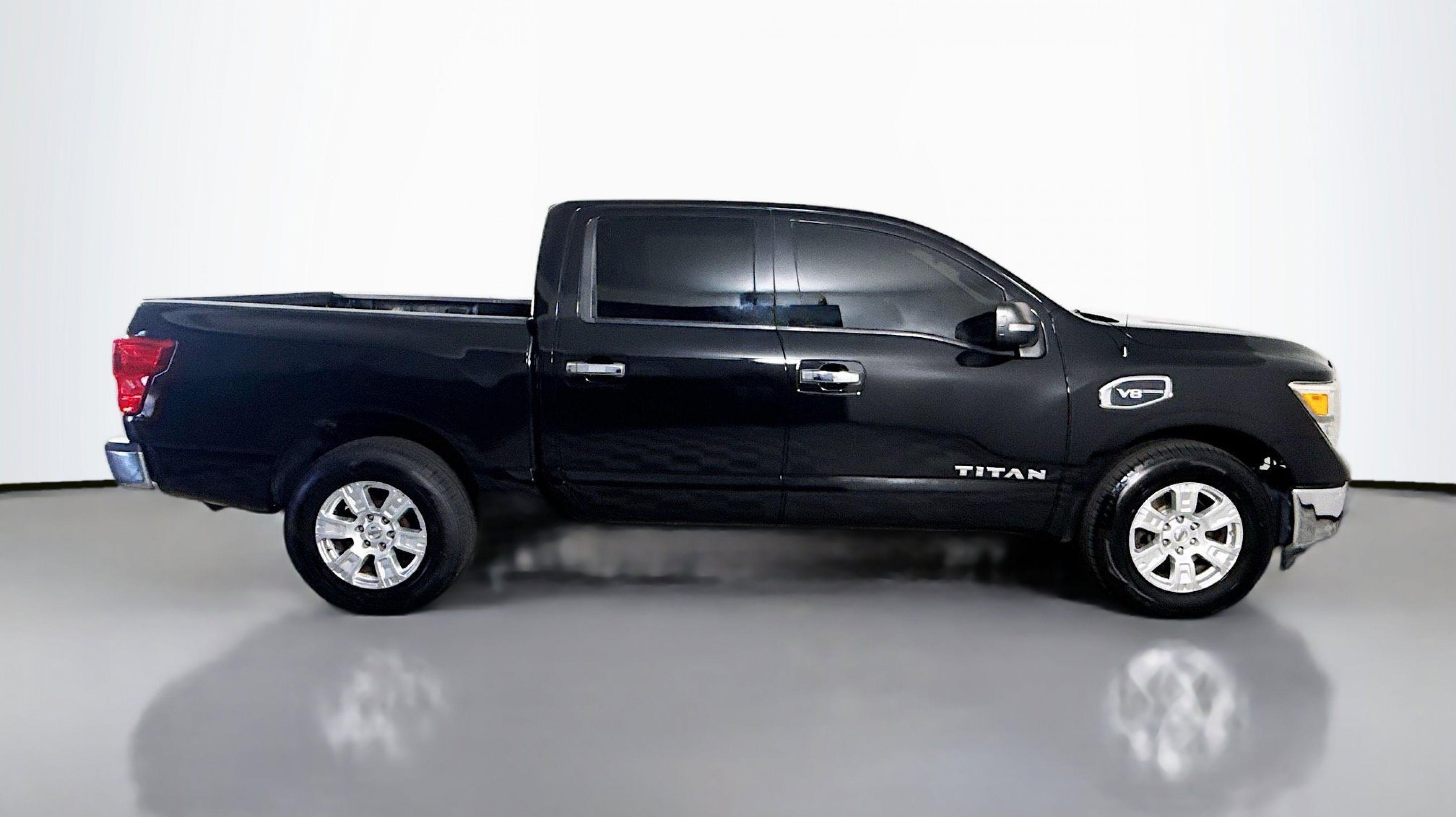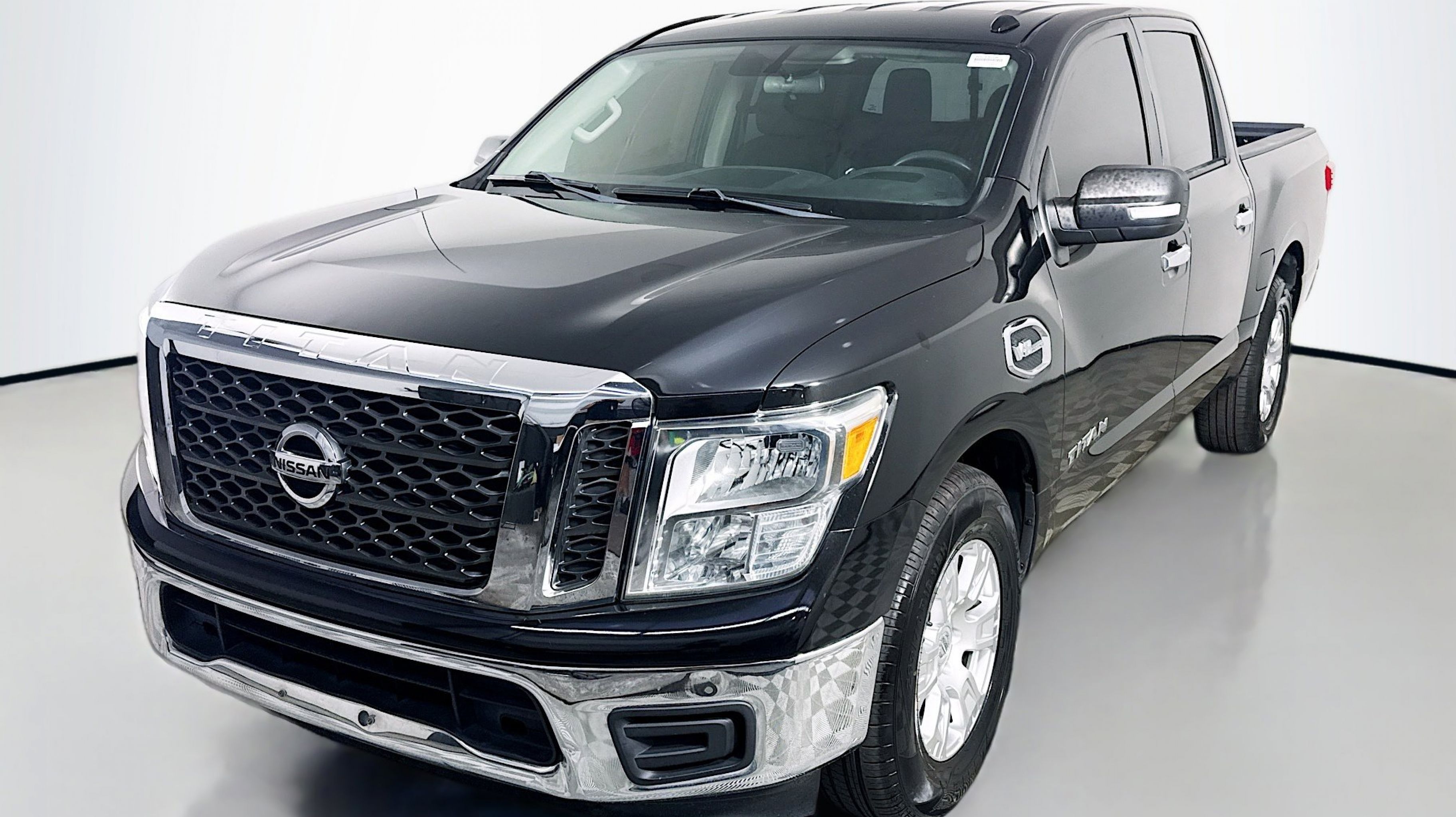 Magnetic Black 2017 Nissan Titan SV RWD 7-Speed Automatic 5.6L V8 2.937 Axle Ratio, 4-Wheel Disc Brakes, 6 Speakers, ABS brakes, Activation Disclaimer, Air Conditioning, Alloy wheels, AM/FM radio: SiriusXM, Brake assist, Bumpers: chrome, Carpeted Floor Mats, CD player, Driver door bin, Driver vanity mirror, Dual front impact airbags, Dual front side impact airbags, Electronic Stability Control, Front anti-roll bar, Front Center Armrest w/Storage, Front Manual Split Bench Seat (40/20/40), Front reading lights, Front wheel independent suspension, Heated door mirrors, Heated Front Captain's Chairs, Illuminated entry, Leather Seat Trim, Low tire pressure warning, Occupant sensing airbag, Outside temperature display, Overhead airbag, Overhead console, Panic alarm, Passenger door bin, Passenger vanity mirror, Power door mirrors, Power steering, Power windows, Radio data system, Radio: NissanConnect w/SiriusXM & Mobile Apps, Rear anti-roll bar, Rear seat center armrest, Rear step bumper, Rear window defroster, Remote keyless entry, Security system, Speed control, Speed-sensing steering, Speed-Sensitive Wipers, Split folding rear seat, Steering wheel mounted audio controls, Tachometer, Telescoping steering wheel, Tilt steering wheel, Traction control, Trip computer, Turn signal indicator mirrors, Variably intermittent wipers, Voltmeter, Wheels: 18 x 8 Silver Painted Alloy.