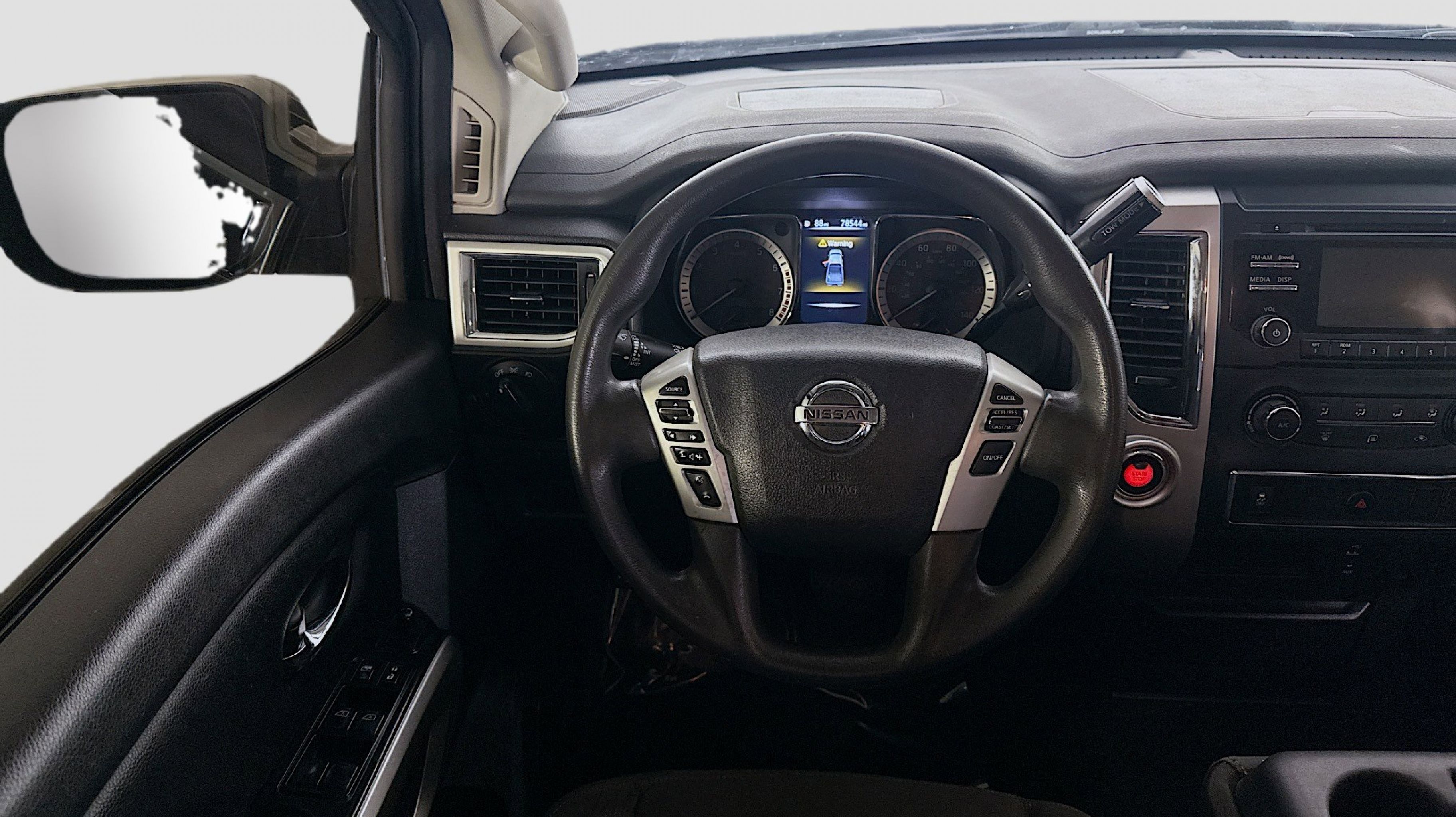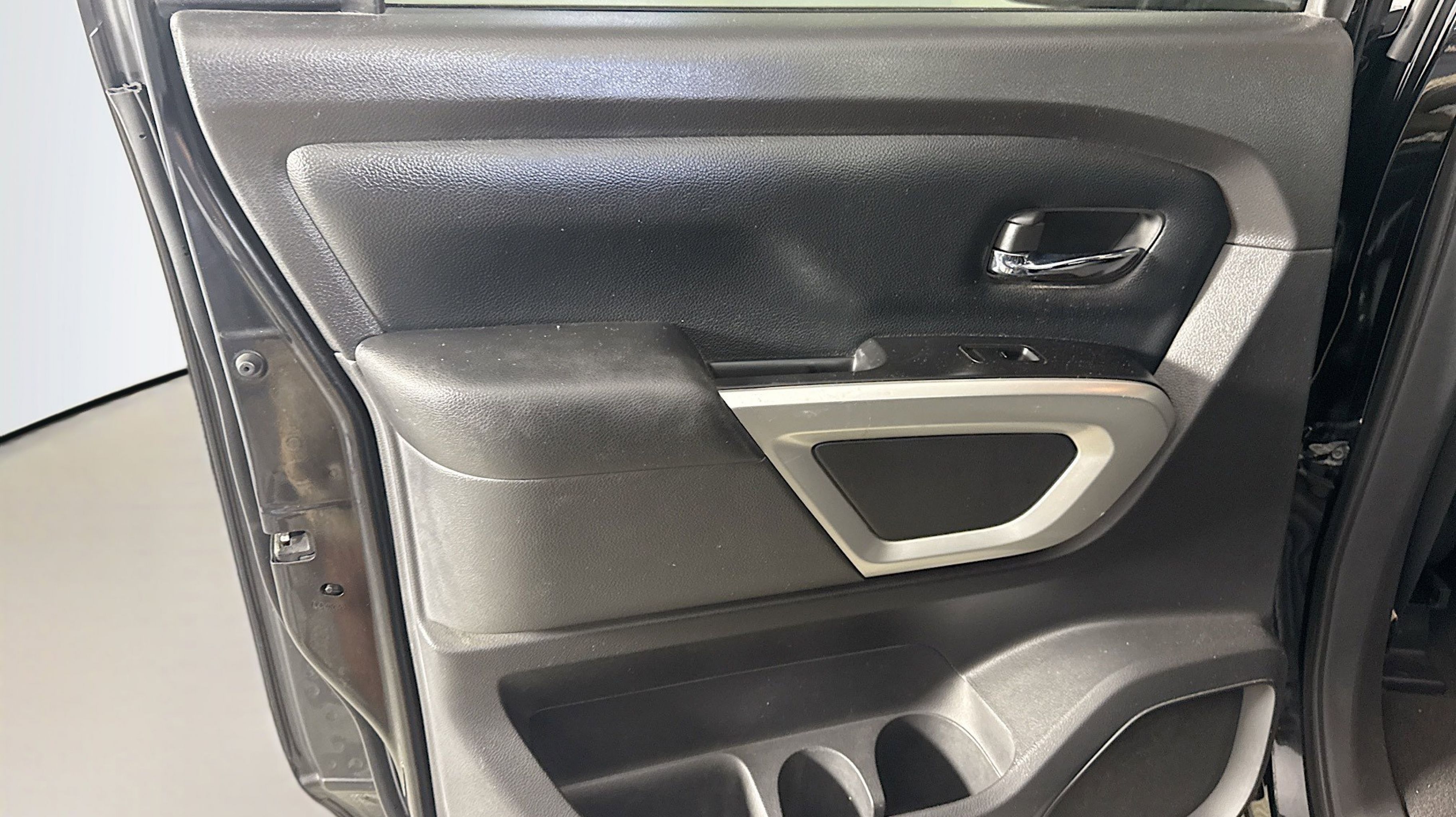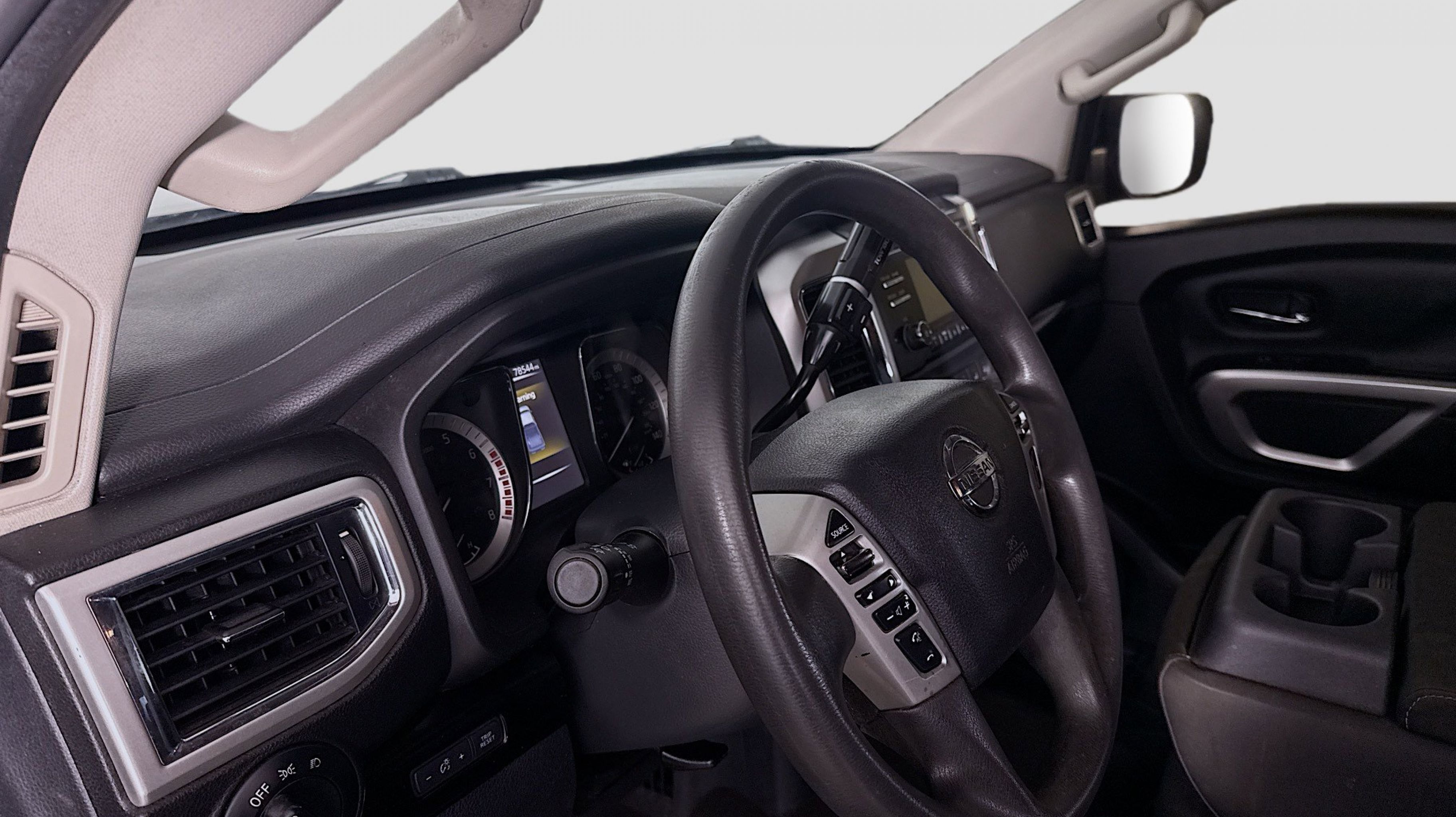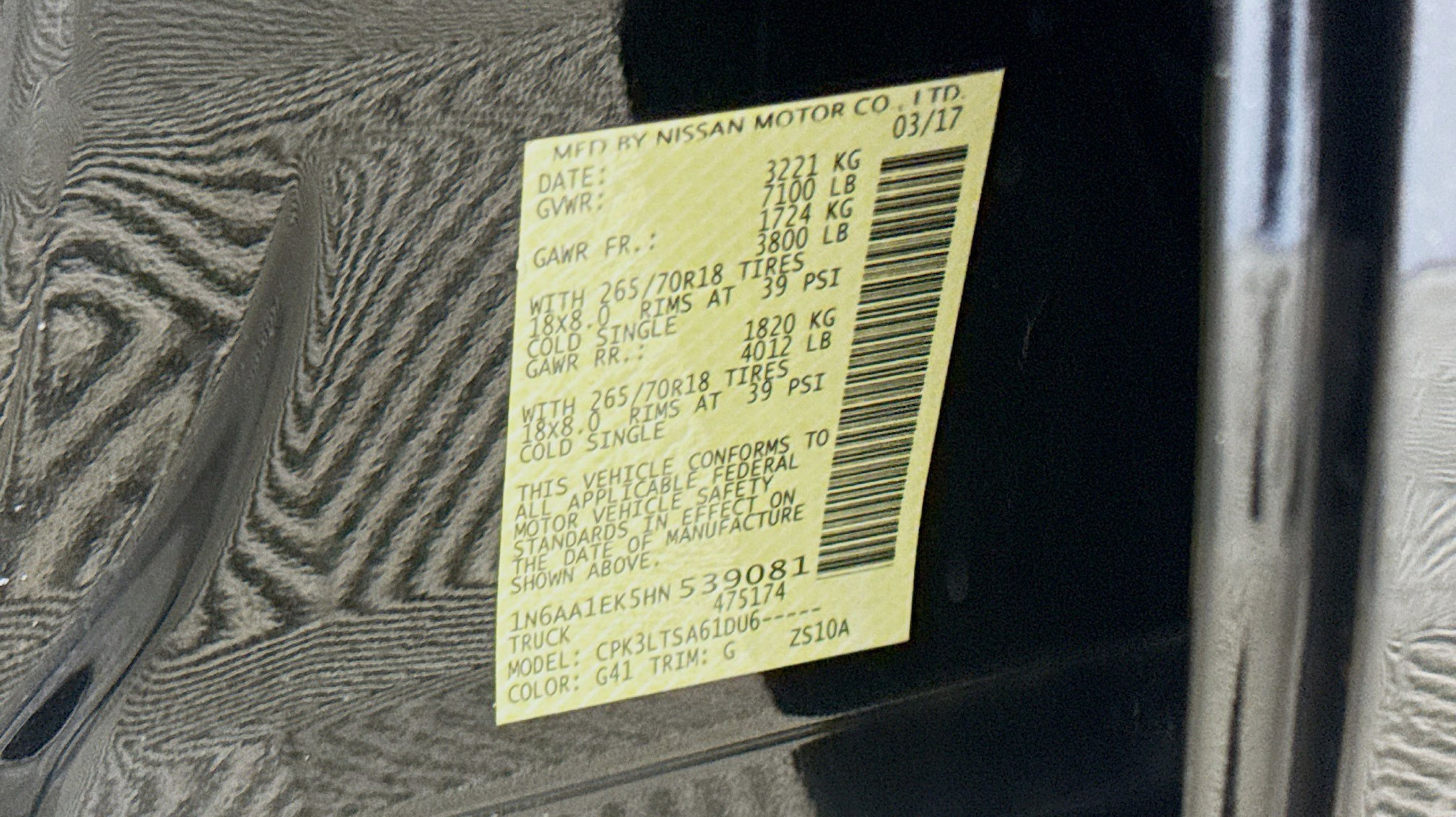 Magnetic Black 2017 Nissan Titan SV RWD 7-Speed Automatic 5.6L V8 2.937 Axle Ratio, 4-Wheel Disc Brakes, 6 Speakers, ABS brakes, Activation Disclaimer, Air Conditioning, Alloy wheels, AM/FM radio: SiriusXM, Brake assist, Bumpers: chrome, Carpeted Floor Mats, CD player, Driver door bin, Driver vanity mirror, Dual front impact airbags, Dual front side impact airbags, Electronic Stability Control, Front anti-roll bar, Front Center Armrest w/Storage, Front Manual Split Bench Seat (40/20/40), Front reading lights, Front wheel independent suspension, Heated door mirrors, Heated Front Captain's Chairs, Illuminated entry, Leather Seat Trim, Low tire pressure warning, Occupant sensing airbag, Outside temperature display, Overhead airbag, Overhead console, Panic alarm, Passenger door bin, Passenger vanity mirror, Power door mirrors, Power steering, Power windows, Radio data system, Radio: NissanConnect w/SiriusXM & Mobile Apps, Rear anti-roll bar, Rear seat center armrest, Rear step bumper, Rear window defroster, Remote keyless entry, Security system, Speed control, Speed-sensing steering, Speed-Sensitive Wipers, Split folding rear seat, Steering wheel mounted audio controls, Tachometer, Telescoping steering wheel, Tilt steering wheel, Traction control, Trip computer, Turn signal indicator mirrors, Variably intermittent wipers, Voltmeter, Wheels: 18 x 8 Silver Painted Alloy.
