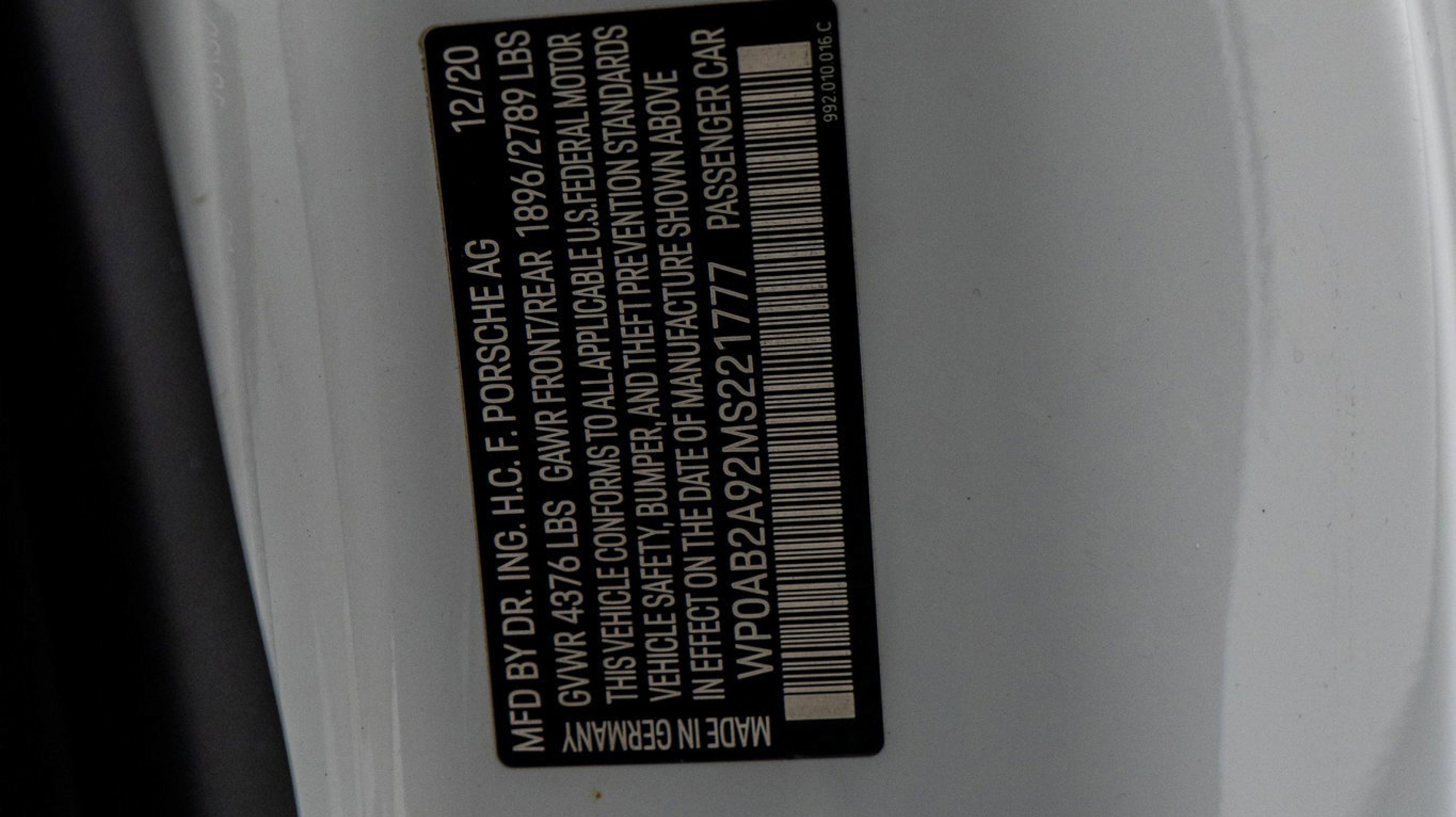 *** VIN: WP0AB2A95MS221777