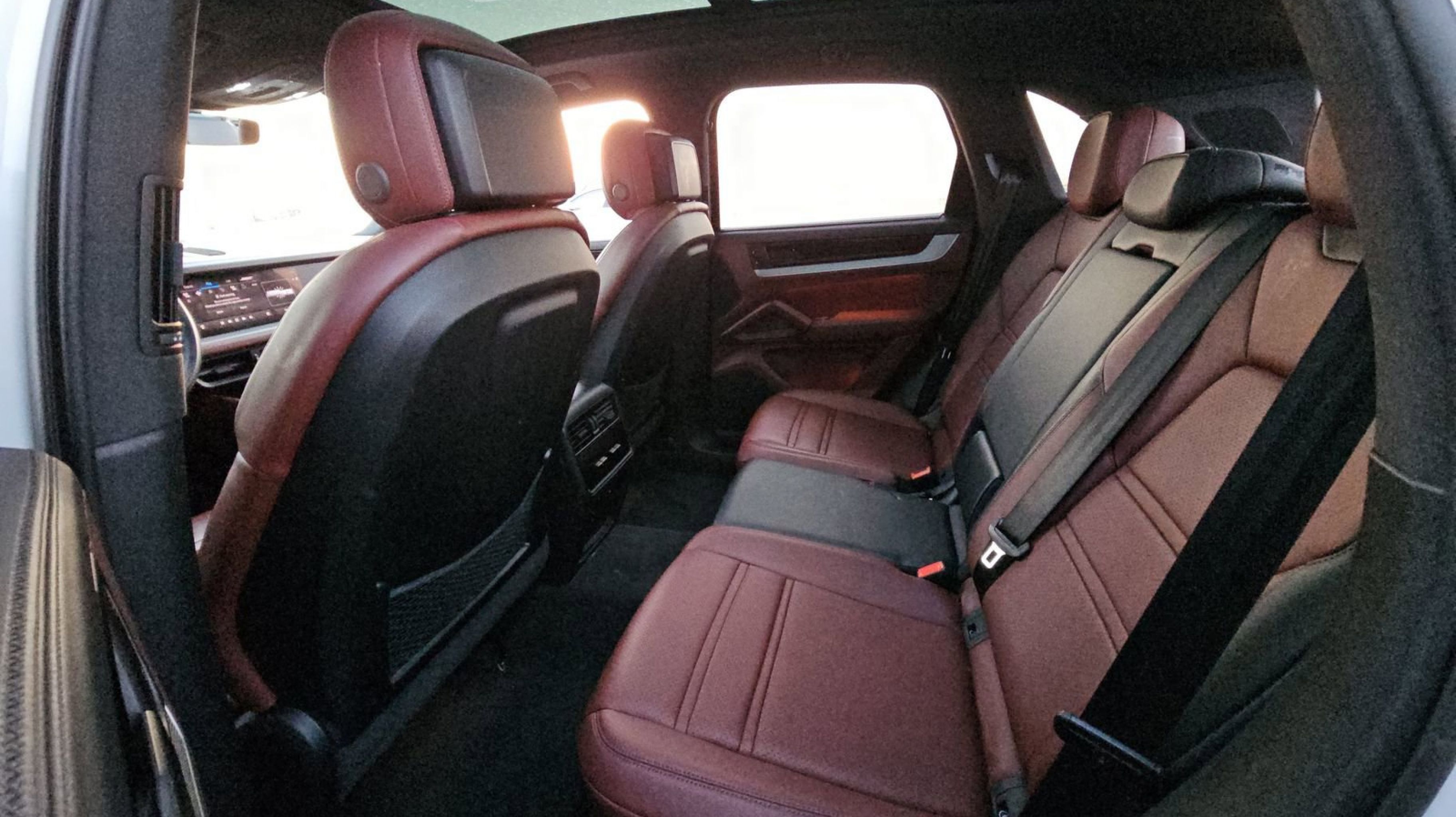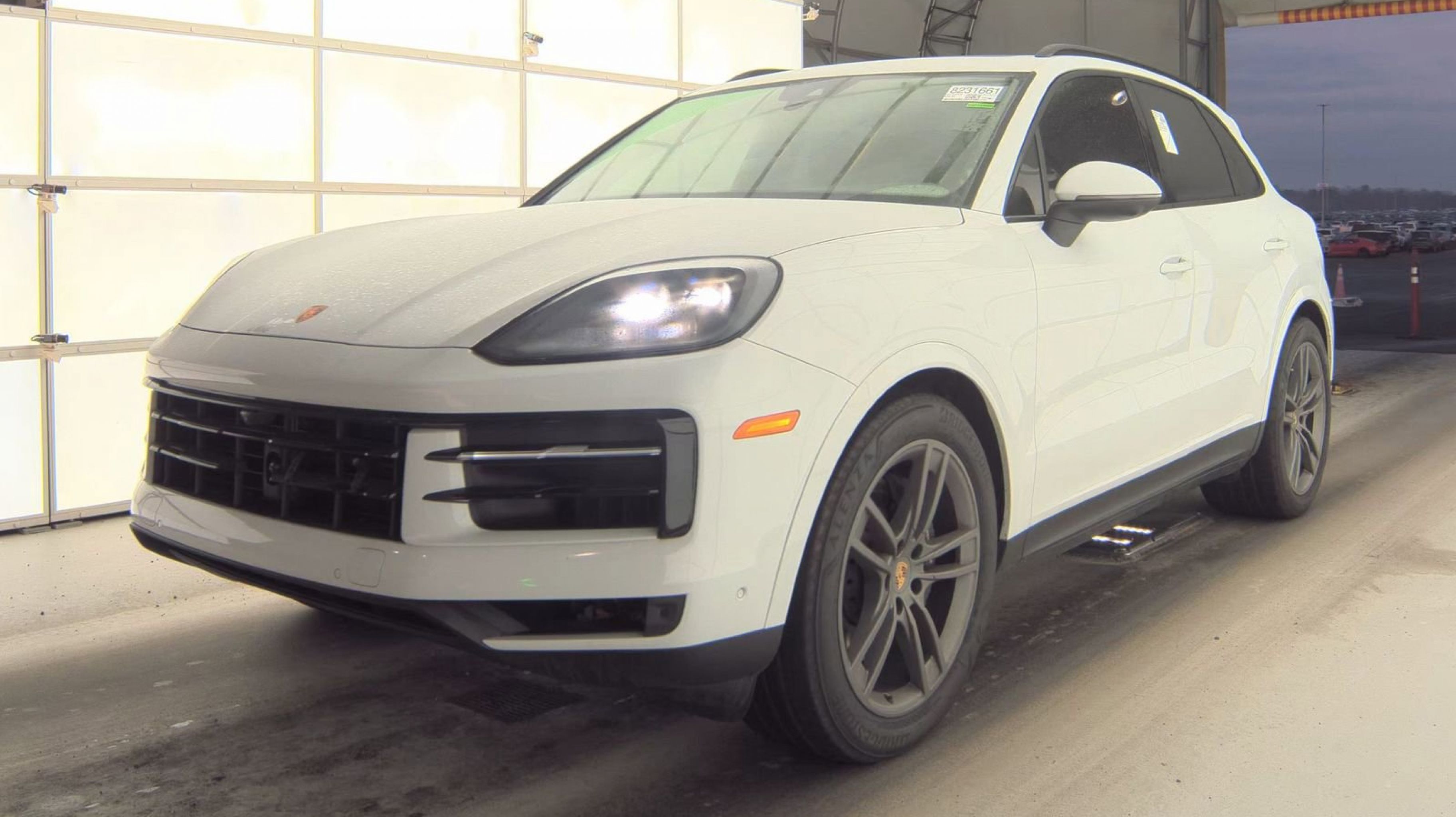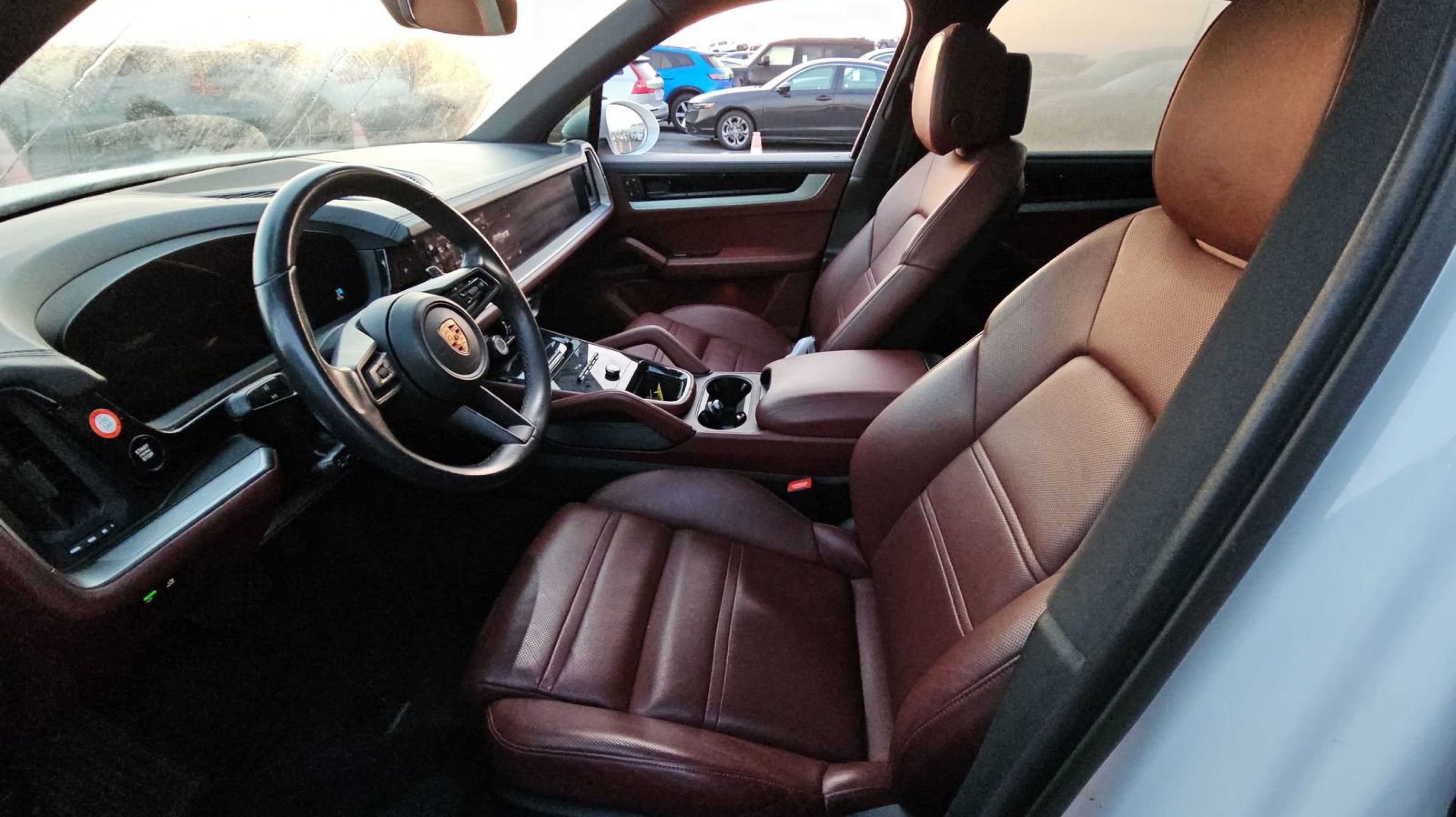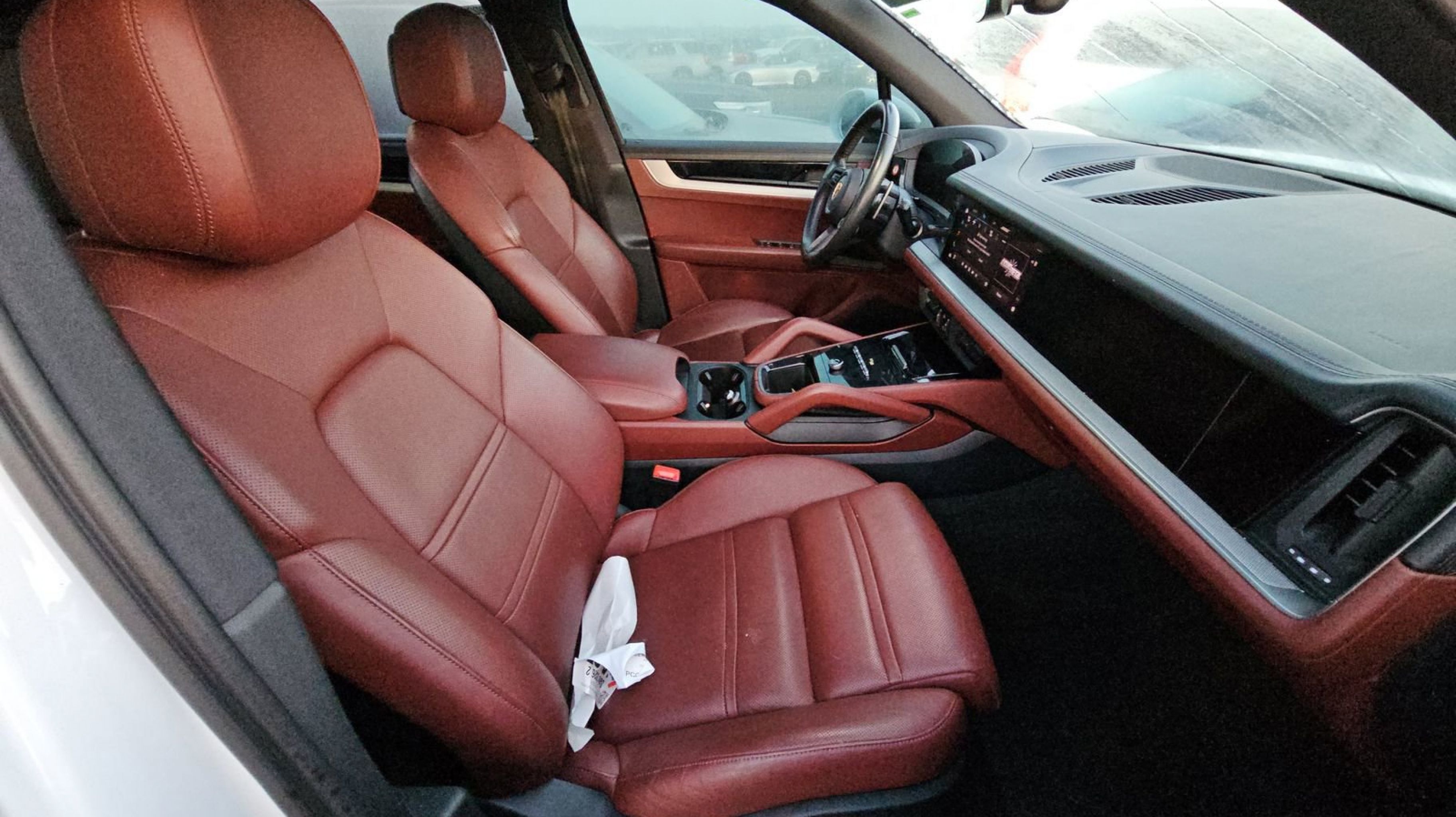 White 2024 Porsche Cayenne AWD 8-Speed Automatic with Tiptronic 3.0L V6 Black/Bordeaux Red w/Leather Seat Trim w/Two-Tone Leather Interior, 10 Speakers, 4-Wheel Disc Brakes, 8-Way Power Seats, ABS brakes, Adaptive suspension, Air Conditioning, Alloy wheels, AM/FM radio: SiriusXM w/360L, Audio memory, Auto High-beam Headlights, Auto-dimming door mirrors, Auto-dimming Rear-View mirror, Automatic temperature control, Axle Ratio: 3.48, Brake assist, Bumpers: body-color, Compass, Delay-off headlights, Driver door bin, Driver vanity mirror, Dual front impact airbags, Dual front side impact airbags, Electronic Stability Control, Exterior Parking Camera Rear, Four wheel independent suspension, Front anti-roll bar, Front Bucket Seats, Front Center Armrest, Front dual zone A/C, Front reading lights, Fully automatic headlights, Garage door transmitter: HomeLink, Heated door mirrors, Heated front seats, HVAC memory, Illuminated entry, Knee airbag, Leather steering wheel, Low tire pressure warning, Memory seat, Navigation System, Occupant sensing airbag, Outside temperature display, Overhead airbag, Overhead console, Panic alarm, Partial Leather Seat Trim, Passenger door bin, Passenger vanity mirror, Porsche Communication Management, Power door mirrors, Power driver seat, Power Liftgate, Power passenger seat, Power steering, Power windows, Radio data system, Rain sensing wipers, Rear anti-roll bar, Rear fog lights, Rear reading lights, Rear seat center armrest, Rear side impact airbag, Rear window defroster, Rear window wiper, Remote keyless entry, Security system, Speed control, Speed-sensing steering, Split folding rear seat, Spoiler, Steering wheel mounted audio controls, Tachometer, Telescoping steering wheel, Tilt steering wheel, Traction control, Trip computer, Turn signal indicator mirrors, Variably intermittent wipers, Voltmeter, Wheels: 20 Cayenne Design, Black/Bordeaux Red w/Leather Seat Trim w/Two-Tone Leather Interior.