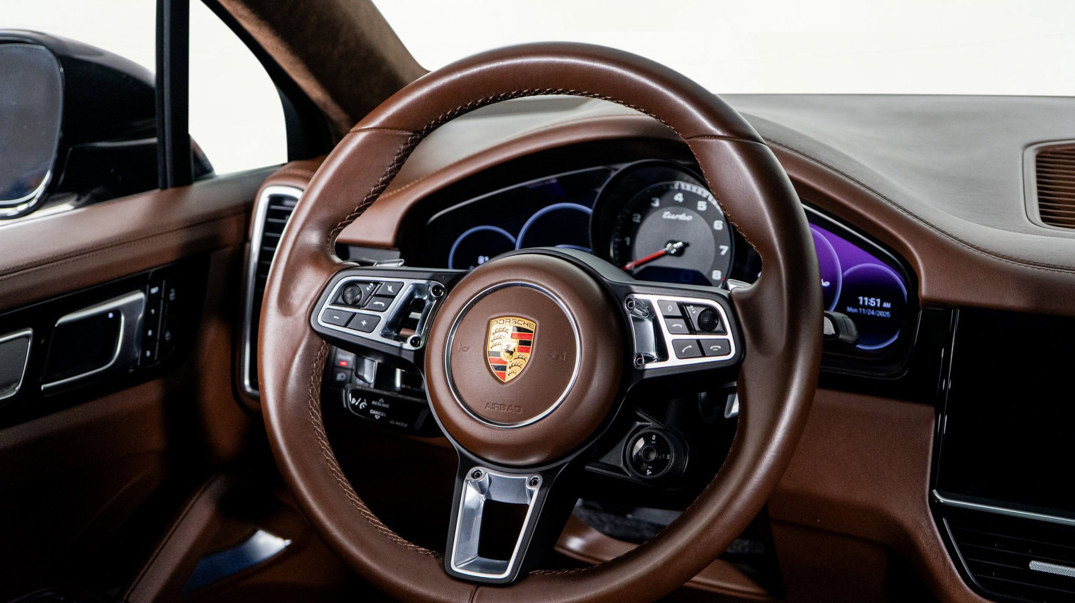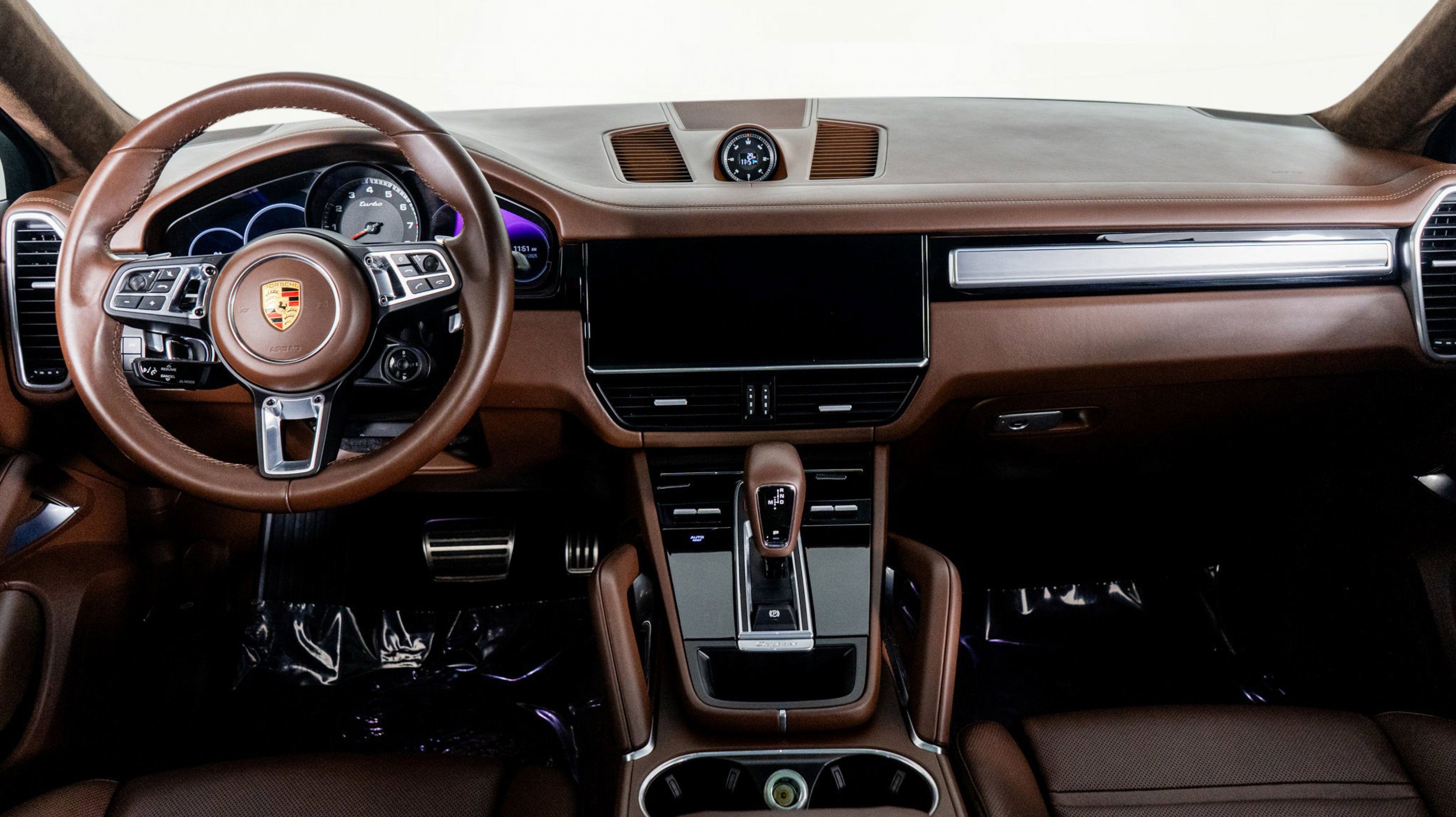 At HGREG LUX Orlando, experience this richly optioned Cayenne Turbo Coupe, equipped with SportDesign Package, ventilated seats, Surround View, LCA, and the upgraded Truffle Brown Club Leather interior. A perfect combination of luxury and performance, designed to stand out.