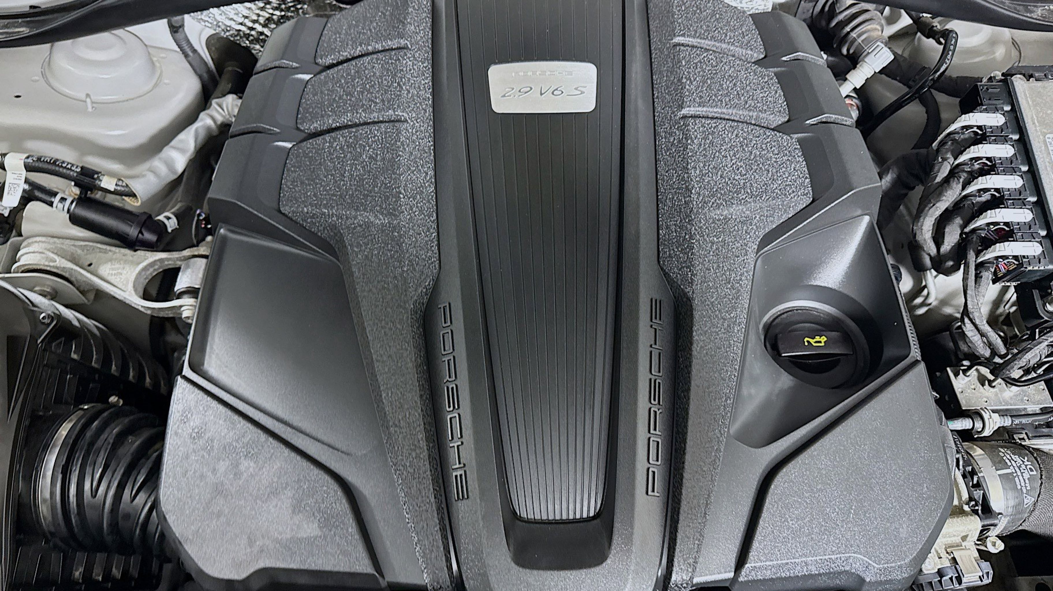 Clean CARFAX. 10 Speakers, 4-Wheel Disc Brakes, 4.67 Axle Ratio, 8-Way Power Seats, ABS brakes, Air Conditioning, Alloy wheels, AM/FM radio: SiriusXM, Apple CarPlay & Android Auto, Auto-dimming door mirrors, Auto-dimming Rear-View mirror, Automatic temperature control, Brake assist, Bumpers: body-color, Delay-off headlights, Driver door bin, Driver vanity mirror, Dual front impact airbags, Dual front side impact airbags, Electronic Stability Control, Emergency communication system: Car Connect Services, Exterior Parking Camera Rear, Four wheel independent suspension, Front anti-roll bar, Front Bucket Seats, Front Center Armrest, Front dual zone A/C, Front reading lights, Fully automatic headlights, Garage door transmitter: HomeLink, Heated door mirrors, Heated front seats, Illuminated entry, Leather Shift Knob, Leather steering wheel, Low tire pressure warning, Memory seat, Navigation System, Occupant sensing airbag, Outside temperature display, Overhead airbag, Overhead console, Panic alarm, Partial Leather Seat Trim w/Sport-Tex, Passenger door bin, Passenger vanity mirror, Porsche Communication Management, Power door mirrors, Power driver seat, Power Liftgate, Power passenger seat, Power steering, Power windows, Radio data system, Rain sensing wipers, Rear air conditioning, Rear anti-roll bar, Rear reading lights, Rear seat center armrest, Rear side impact airbag, Rear window defroster, Rear window wiper, Remote keyless entry, Security system, Speed control, Speed-sensing steering, Split folding rear seat, Spoiler, Sport steering wheel, Steering wheel mounted audio controls, Tachometer, Telescoping steering wheel, Tilt steering wheel, Traction control, Trip computer, Turn signal indicator mirrors, Variably intermittent wipers, Wheels: 20 Macan S in Dark Titanium.