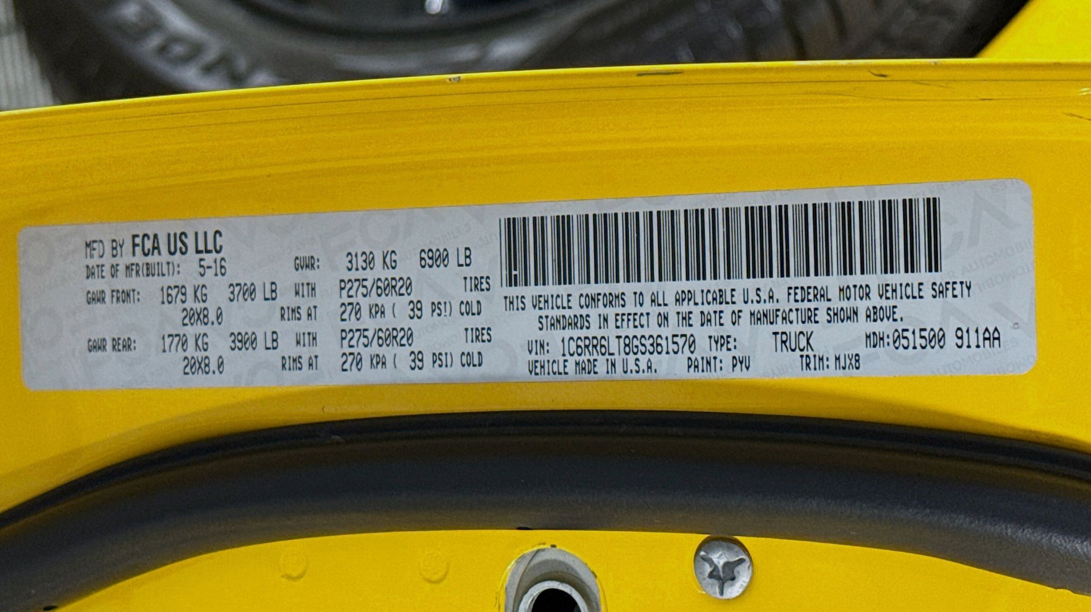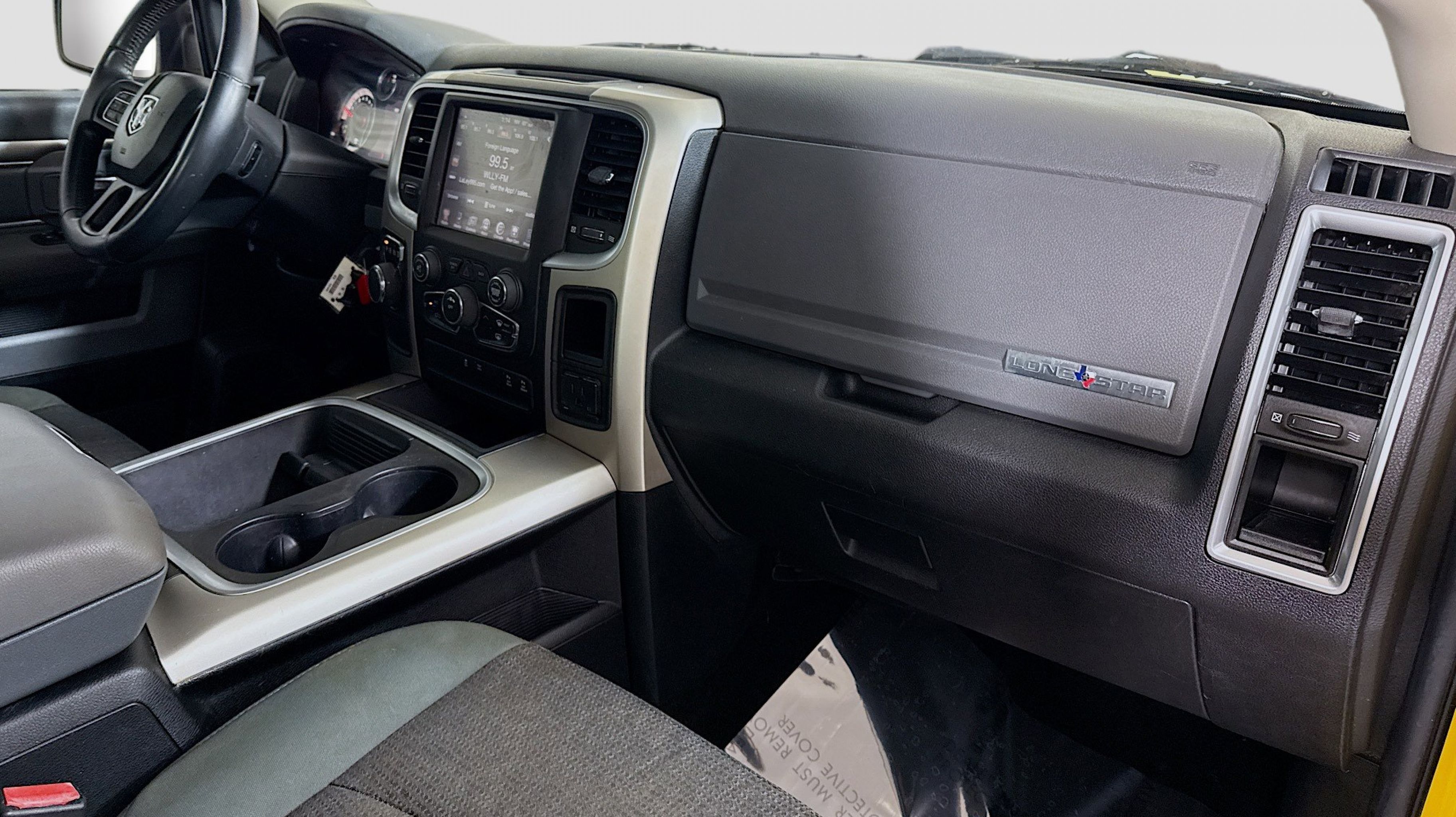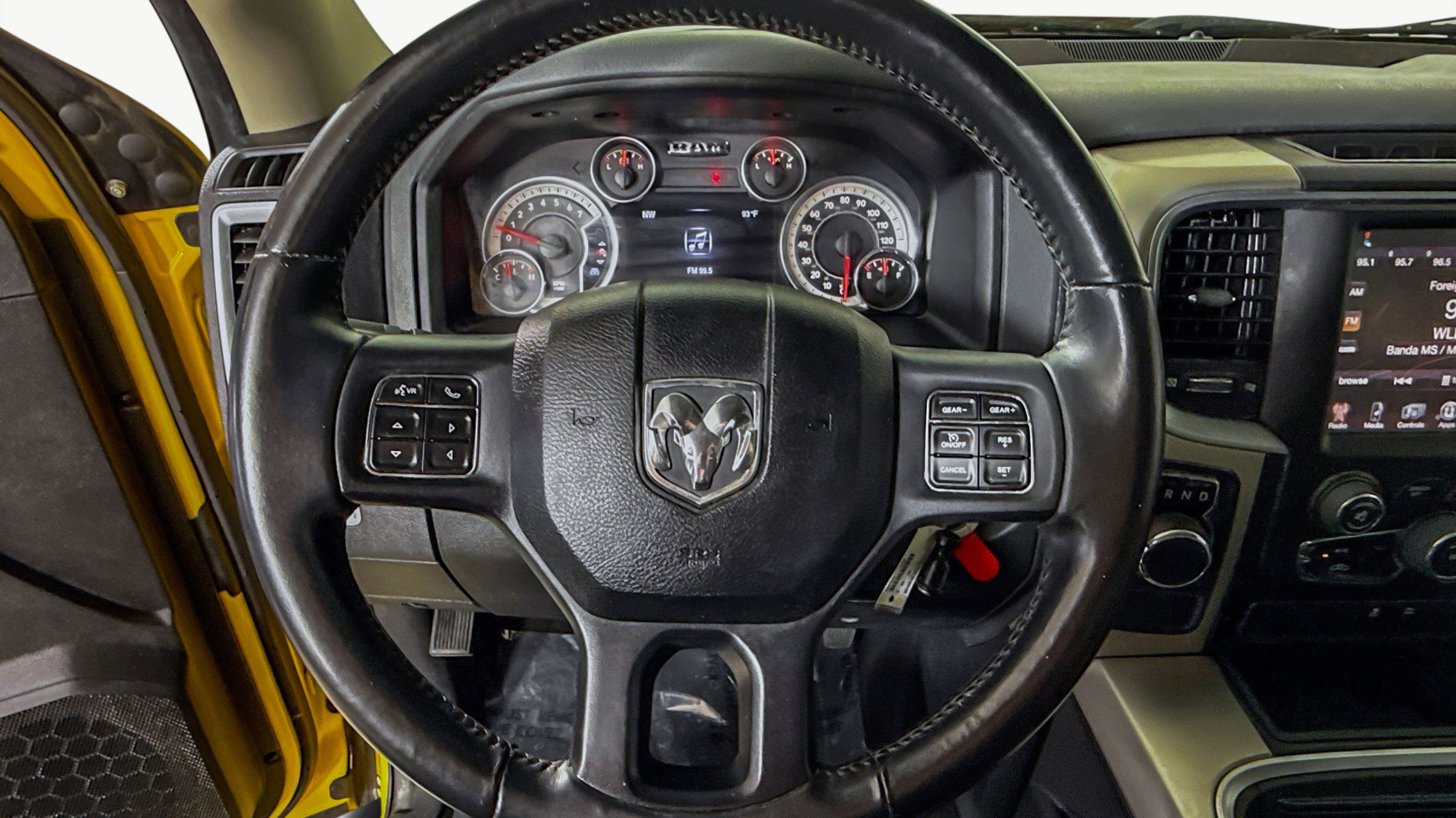 Yellow 2016 Ram 1500 Lone Star RWD 8-Speed Automatic HEMI 5.7L V8 Multi Displacement VVT 115V Auxiliary Power Outlet, 40/20/40 Split Bench Seat, 6 Month Trial (Reg. Required), 6 Month Trial (Registration Required), 8.4 Touchscreen Display, Auto-Dimming Exterior Mirrors, Bright/Bright Billets Grille, Charge Only Remote USB Port, Class IV Receiver Hitch, Dual Rear Exhaust w/Bright Tips, Electroluminescent Instrument Cluster, Exterior Mirrors Courtesy Lamps, Exterior Mirrors w/Supplemental Signals, Fog Lamps, Folding Flat Load Floor Storage, For Details Visit DriveUconnect.com, Front Armrest w/3 Cupholders, Front Center Seat Cushion Storage, Glove Box Lamp, GPS Antenna Input, Integrated Voice Command w/Bluetooth, Leather Wrapped Steering Wheel, LED Bed Lighting, Lone Star Badge, Lone Star Regional Package, Media Hub (SD, USB, AUX), Nav-Capable! See Dealer for Details, Overhead Console w/Garage Door Opener, ParkSense Front/Rear Park Assist System, ParkView Rear Back-Up Camera, Power 10-Way Driver Seat, Power Folding Mirrors, Power Heated Fold-Away Mirrors, Power Lumbar Adjust, Premium Cloth 40/20/40 Bench Seat, Quick Order Package 26R Lone Star (Regional), Radio: Uconnect 8.4, Rear 60/40 Split Folding Seat, Rear Dome w/On/Off Switch Lamp, Rear-View Auto-Dimming Mirror w/Microphone, Remote SD Card Slot, Remote Start System, Security Alarm, SIRIUSXM Satellite Radio, Steering Wheel Mounted Audio Controls, Storage Tray, Sun Visors w/Illuminated Vanity Mirrors, Uconnect Access, Underhood Lamp, Universal Garage Door Opener, Wheels: 20 x 8 Aluminum Chrome Clad, 17 x 7 Aluminum Wheels, 3.21 Rear Axle Ratio, 32 Gallon Fuel Tank, 4-Wheel Disc Brakes, 6 Speakers, ABS brakes, Active Grille Shutters, Air Conditioning, Alloy wheels, AM/FM radio, Anti-Spin Differential Rear Axle, Black Exterior Mirrors, Black Rotary Shifter, Brake assist, Bumpers: chrome, Center Hub, Cloth 40/20/40 Bench Seat, Compass, Delay-off headlights, Driver door bin, Dual front impact airbags, Dual front side impact airbags, Electronic Shift, Electronic Stability Control, Exterior Mirrors w/Heating Element, Front anti-roll bar, Front Center Armrest w/Storage, Front reading lights, Front wheel independent suspension, Fully automatic headlights, Heated door mirrors, Illuminated entry, Low tire pressure warning, Occupant sensing airbag, Outside temperature display, Overhead airbag, Overhead console, Panic alarm, Passenger door bin, Passenger vanity mirror, Power door mirrors, Power steering, Power windows, Radio data system, Radio: Uconnect 5.0, Rear anti-roll bar, Rear seat center armrest, Rear step bumper, Remote keyless entry, Speed control, Tachometer, Tilt steering wheel, Tip Start, Traction control, Trip computer, Variably intermittent wipers, Voltmeter, 115V Auxiliary Power Outlet, 40/20/40 Split Bench Seat, 6 Month Trial (Reg. Required), 6 Month Trial (Registration Required), 8.4 Touchscreen Display, Auto-Dimming Exterior Mirrors, Bright/Bright Billets Grille, Charge Only Remote USB Port, Class IV Receiver Hitch, Dual Rear Exhaust w/Bright Tips, Electroluminescent Instrument Cluster, Exterior Mirrors Courtesy Lamps, Exterior Mirrors w/Supplemental Signals, Fog Lamps, Folding Flat Load Floor Storage, For Details Visit DriveUconnect.com, Front Armrest w/3 Cupholders, Front Center Seat Cushion Storage, Glove Box Lamp, GPS Antenna Input, Integrated Voice Command w/Bluetooth, Leather Wrapped Steering Wheel, LED Bed Lighting, Lone Star Badge, Lone Star Regional