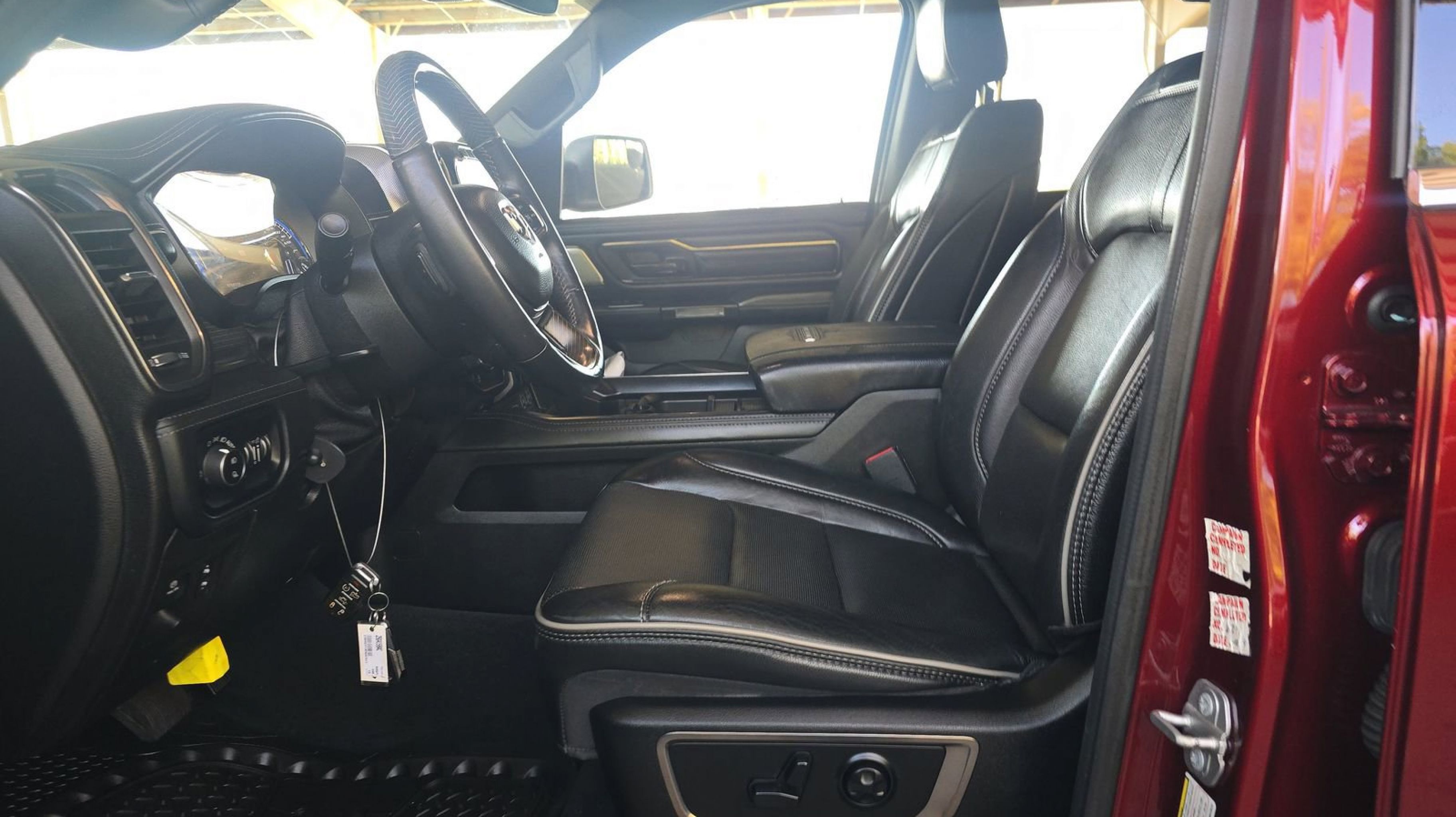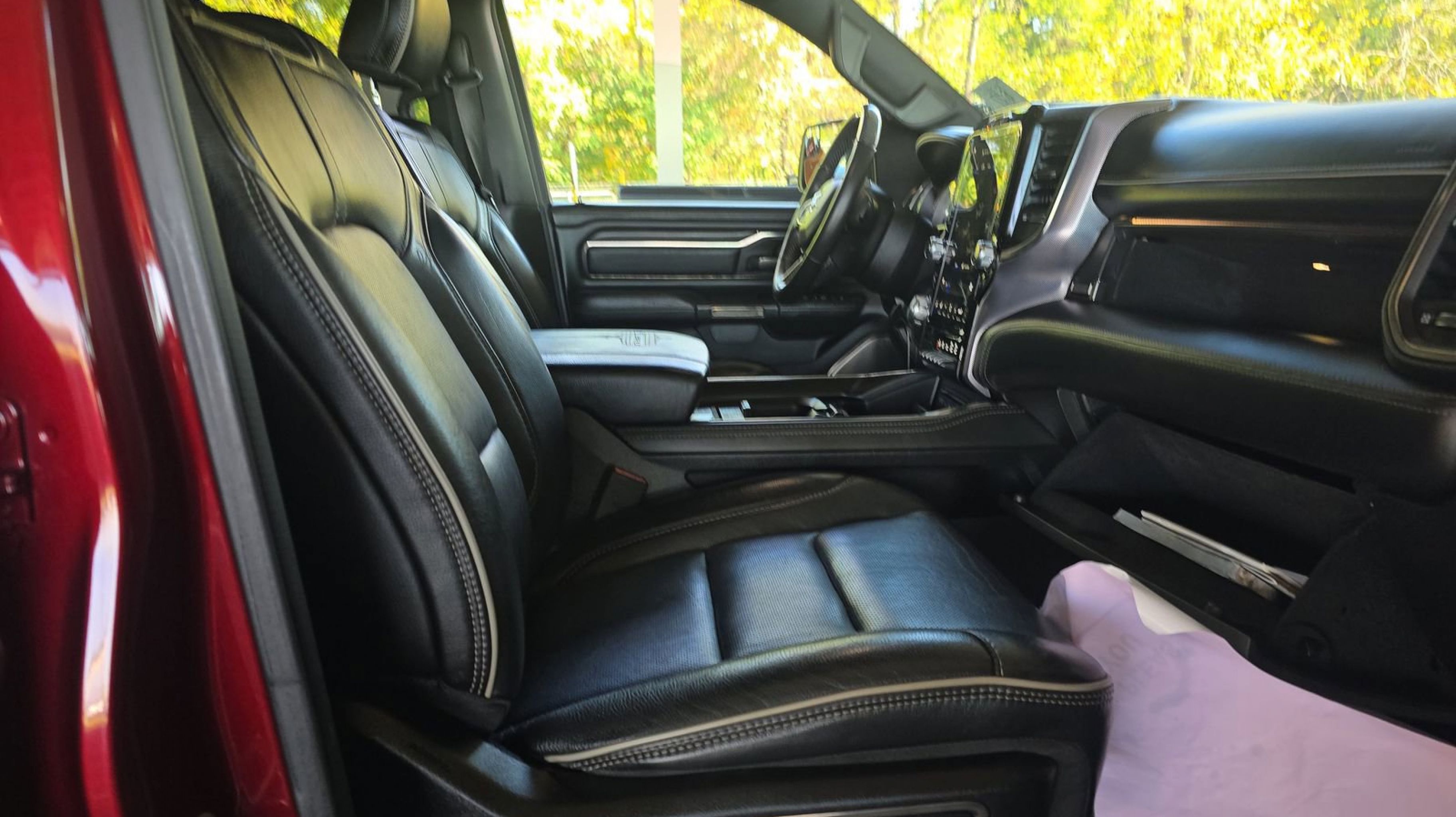 Delmonico Red Pearlcoat 2019 Ram 1500 Limited RWD 8-Speed Automatic HEMI 5.7L V8 Multi Displacement VVT Adaptive Cruise Control w/Stop & Go, Advanced Brake Assist, Full Speed Forward Collision Warning Plus, harman/kardon 19 Speaker Premium Sound, Lane Keep Assist, Limited Level 1 Equipment Group, Parallel & Perp Park Assist w/Stop, Quick Order Package 27M Limited, Ventilated Rear Seats, 1-Yr SiriusXM Guardian Trial, 10 Speakers, 12 Touchscreen Display, 3.21 Rear Axle Ratio, 4-Wheel Disc Brakes, 48V Belt Starter Generator, ABS brakes, Adjustable pedals, Air Conditioning, Alloy wheels, AM/FM radio: SiriusXM with 360L, Anti-Spin Differential Rear Axle, Apple CarPlay, Apple CarPlay/Android Auto, Audio memory, Auto High-beam Headlights, Auto-dimming door mirrors, Auto-dimming Rear-View mirror, Auto-leveling suspension, Automatic temperature control, Bodyside moldings, Brake assist, Bumpers: chrome, Compass, Delay-off headlights, Disassociated Touchscreen Display, Dome Dual LED Reading Lamp, Driver door bin, Driver vanity mirror, Dual front impact airbags, Dual front side impact airbags, Dual-Pane Panoramic Sunroof, Electronic Stability Control, Emergency communication system: SiriusXM Guardian, Front anti-roll bar, Front Bucket Seats, Front Center Armrest w/Storage, Front dual zone A/C, Front fog lights, Front reading lights, Front wheel independent suspension, Fully automatic headlights, Garage door transmitter, Genuine wood console insert, Genuine wood dashboard insert, Genuine wood door panel insert, Google Android Auto, GPS Antenna Input, GPS Navigation, HD Radio, Heated door mirrors, Heated front seats, Heated rear seats, Heated steering wheel, Illuminated entry, Integrated Center Stack Radio, Leather steering wheel, LED Dome/Reading Lamp, Low tire pressure warning, Manufacturer's Statement of Origin, Memory seat, Navigation System, Occupant sensing airbag, Outside temperature display, Overhead airbag, Overhead console, Panic alarm, ParkView Rear Back-Up Camera, Passenger door bin, Passenger vanity mirror, Pedal memory, Power door mirrors, Power driver seat, Power passenger seat, Power steering, Power windows, Premium Leather Trimmed Bucket Seats, Radio data system, Radio: Uconnect 12 w/Navigation, Rain sensing wipers, Rear anti-roll bar, Rear seat center armrest, Rear step bumper, Rear window defroster, Remote CD player, Remote keyless entry, Security system, SiriusXM Satellite Radio, SiriusXM Traffic Plus, SiriusXM Travel Link, SiriusXM w/360L, Speed control, Split folding rear seat, Steering wheel mounted audio controls, Tachometer, Telescoping steering wheel, Tilt steering wheel, Traction control, Trip computer, Turn signal indicator mirrors, USB Host Flip, Variably intermittent wipers, Ventilated front seats, Voltmeter, Wheels: 20 x 9 Polished w/Inserts, Wheels: 22 x 9 Polish/Painted w/Inserts, Adaptive Cruise Control w/Stop & Go, Advanced Brake Assist, Full Speed Forward Collision Warning Plus, harman/kardon 19 Speaker Premium Sound, Lane Keep Assist, Limited Level 1 Equipment Group, Parallel & Perp Park Assist w/Stop, Quick Order Package 27M Limited, Ventilated Rear Seats.