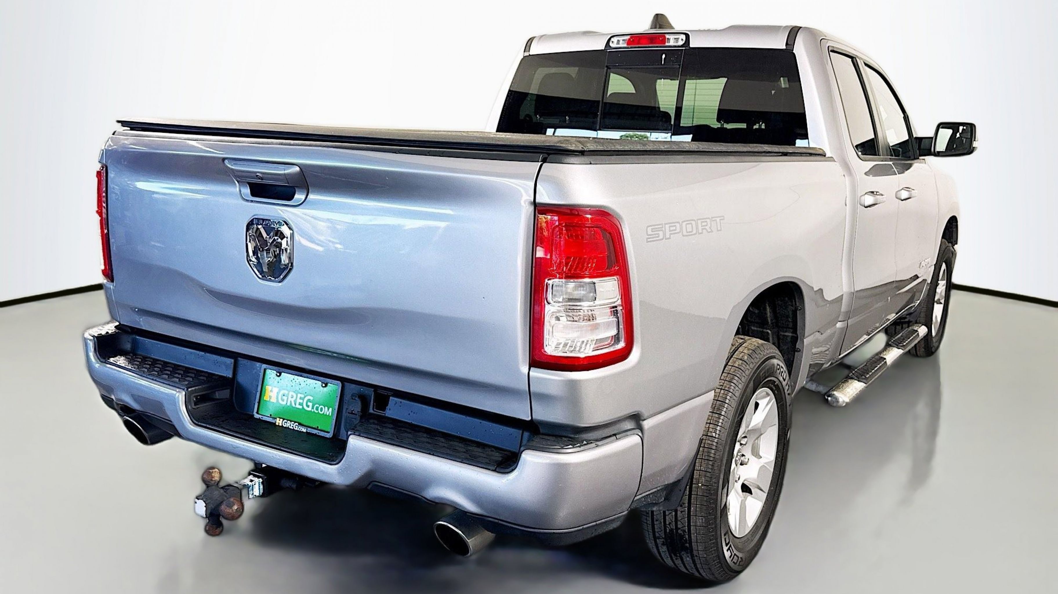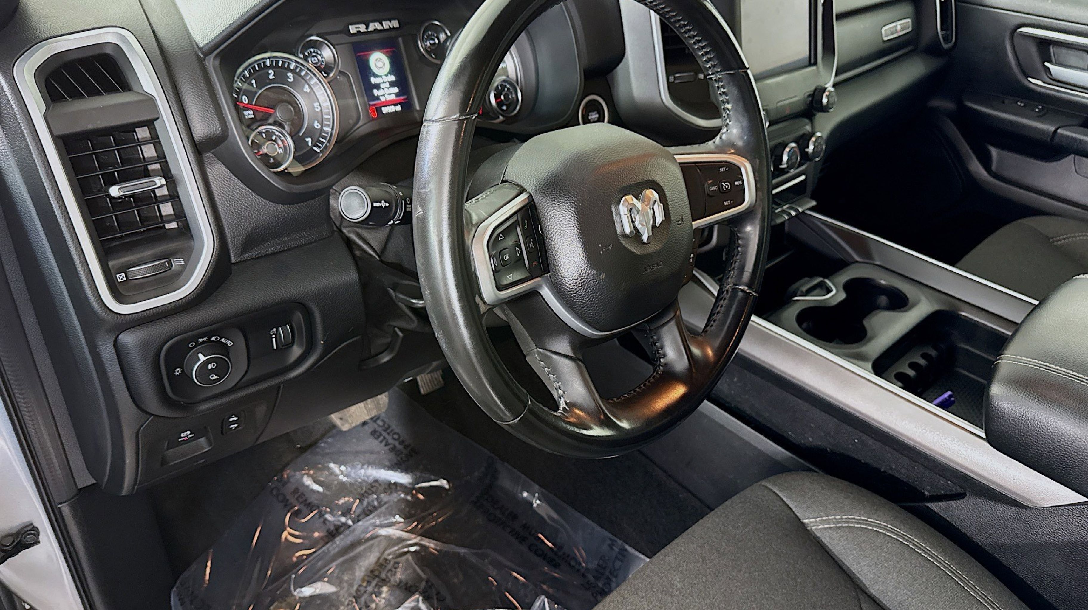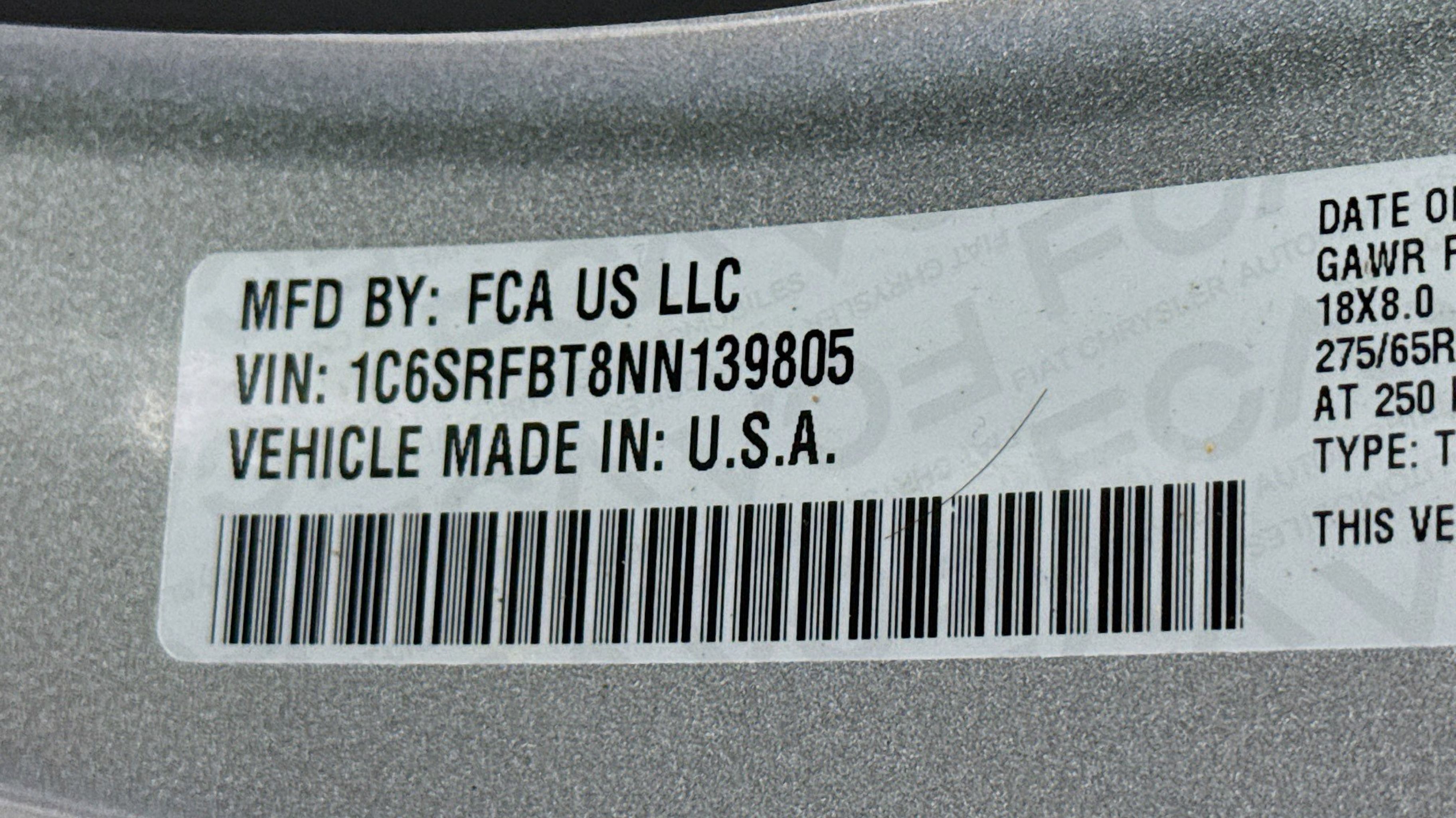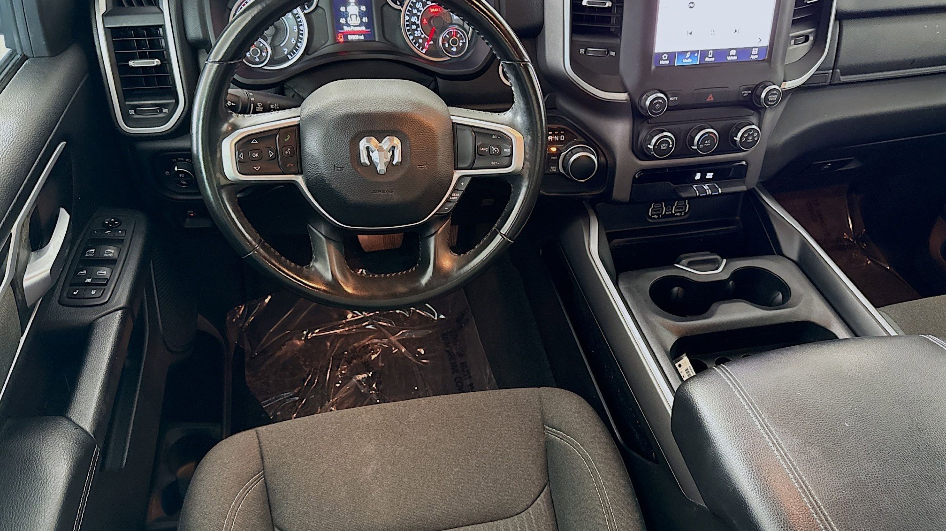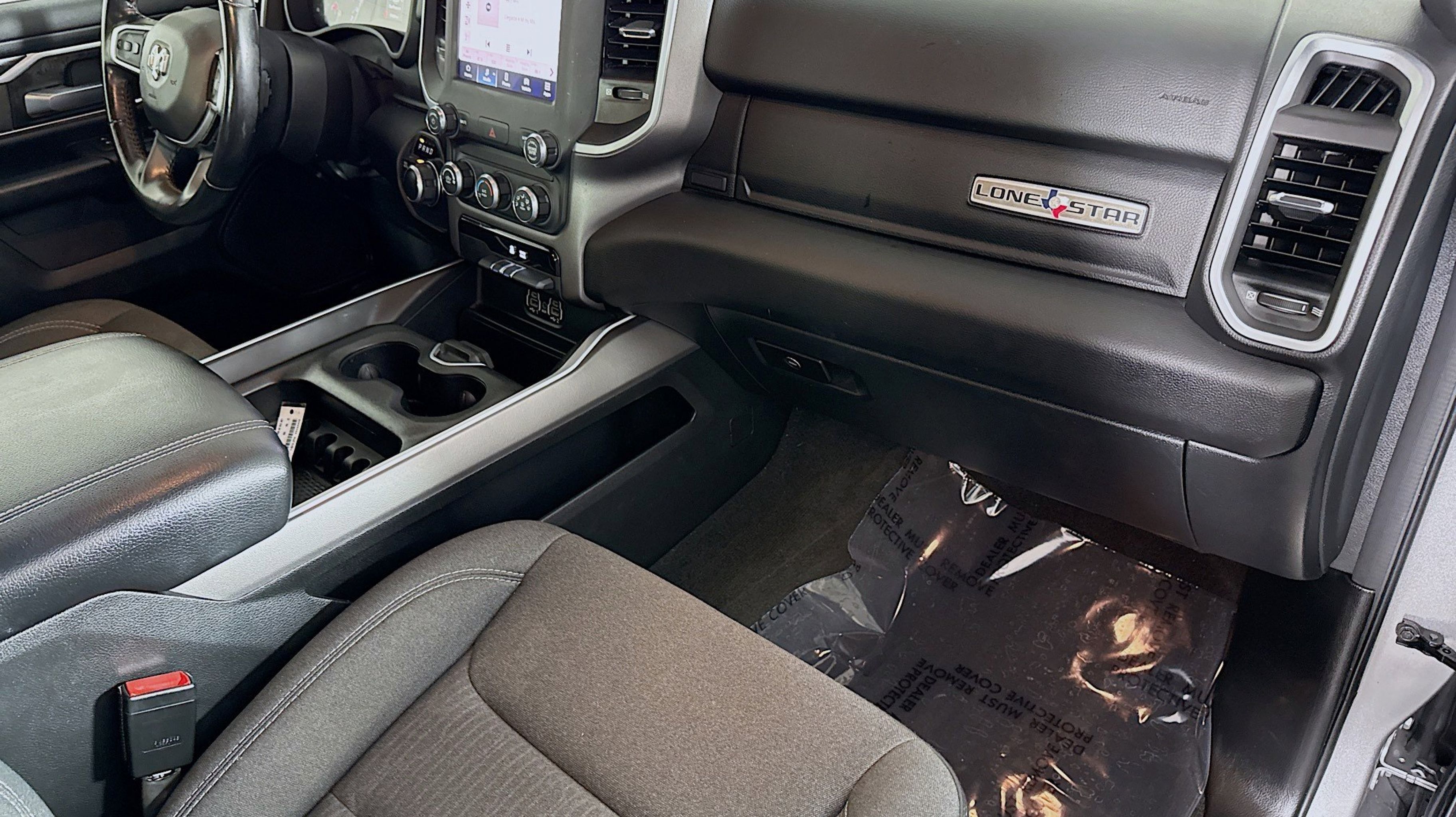 3 Rear Seat Head Restraints, 4 Way Front Headrests, 4G LTE Wi-Fi Hot Spot, 8.4 Touchscreen Display, All Plant-Installed Decals, Apple CarPlay, Auto-Dimming Exterior Driver Mirror, Auto-Dimming Rear-View Mirror, Big Horn Level 1 Equipment Group, Black Exterior Mirrors, Black Interior Accents, Black Premium Power Mirrors, Bluetooth Handsfree Phone & Audio, Body Color Exterior Mirrors, Body Color Front Bumper, Body Color Premium Power Mirrors, Body Color Rear Bumper w/Step Pads, Bridgestone Brand Tires, Bucket Seats, Class IV Receiver Hitch, Connectivity - US/Canada, Convex Wide-Angle Mirror Insert, Delete LED Lamp - Floor Console Bin, Deluxe Cloth Bucket Seats, Exterior Mirrors Courtesy Lamps, Exterior Mirrors w/Heating Element, Exterior Mirrors w/Supplemental Signals, For Details, Visit DriveUconnect.com, For More Info, Call 800-643-2112, Front Seat Back Map Pockets, Full Length Floor Console, Global Telematics Box Module (TBM), Glove Box Lamp, Google Android Auto, GPS Antenna Input, Grille Surround 1 Body Color Texture 2 Black, Integrated Center Stack Radio, Lone Star Badge, Manual Adjust 4-Way Front Passenger Seat, Power 2-Way Driver Lumbar Adjust, Power 8-Way Driver Seat, Power Adjustable Pedals, Power-Folding Mirrors, Quick Order Package 23R Lone Star (Regional), Quick Order Package 25R Lone Star (Regional), Radio: Uconnect 5 W w/8.4 Display, Rear 60/40 Folding Seat, Rear Dome w/On/Off Switch Lamp, Rear Power Sliding Window, Rear Window Defroster, SiriusXM Radio Service, SiriusXM Satellite Radio, Sport Appearance Package, Sport Decal, Sun Visors w/Illuminated Vanity Mirrors, Universal Garage Door Opener, USB Host Flip, 3.21 Rear Axle Ratio, 4-Wheel Disc Brakes, 48V Belt Starter Generator, 6 Speakers, ABS brakes, Air Conditioning, Alloy wheels, AM/FM radio, Brake assist, Bumpers: chrome, Cloth Bench Seat, Compass, Delay-off headlights, Driver door bin, Dual front impact airbags, Dual front side impact airbags, Electronic Stability Control, Emergency communication system: SiriusXM Guardian, Front anti-roll bar, Front fog lights, Front License Plate Bracket, Front reading lights, Front wheel independent suspension, Fully automatic headlights, Heated door mirrors, Illuminated entry, Integrated Voice Command w/Bluetooth, Leather steering wheel, Low tire pressure warning, MOPAR Front & Rear Rubber Floor Mats, Occupant sensing airbag, Outside temperature display, Overhead airbag, Overhead console, Panic alarm, ParkView Rear Back-Up Camera, Passenger door bin, Passenger vanity mirror, Power door mirrors, Power steering, Power windows, Radio data system, Radio: Uconnect 3 w/5 Display, Rear anti-roll bar, Rear seat center armrest, REAR SEAT Center Armrest w/Storage, Rear step bumper, Remote keyless entry, Remote Start System, Speed control, Split folding rear seat, Steering wheel mounted audio controls, Tachometer, Telescoping steering wheel, Tilt steering wheel, Traction control, Trip computer, Variably intermittent wipers, Voltmeter, Wheels: 18 x 8 Cast-Aluminum Painted, 3 Rear Seat Head Restraints, 4 Way Front Headrests, 4G LTE Wi-Fi Hot Spot, 8.4 Touchscreen Display, All Plant-Installed Decals, Apple CarPlay, Auto-Dimming Exterior Driver Mirror, Auto-Dimming Rear-View Mirror, Big Horn Level 1 Equipment Group, Black Exterior Mirrors, Black Interior Accents, Black Premium Power Mirrors, Bluetooth Handsfree Phone & Audio, Body Color Exterior Mirrors, Body Color Front Bumper, Body Color Premium Power Mirrors, Body Color Re
