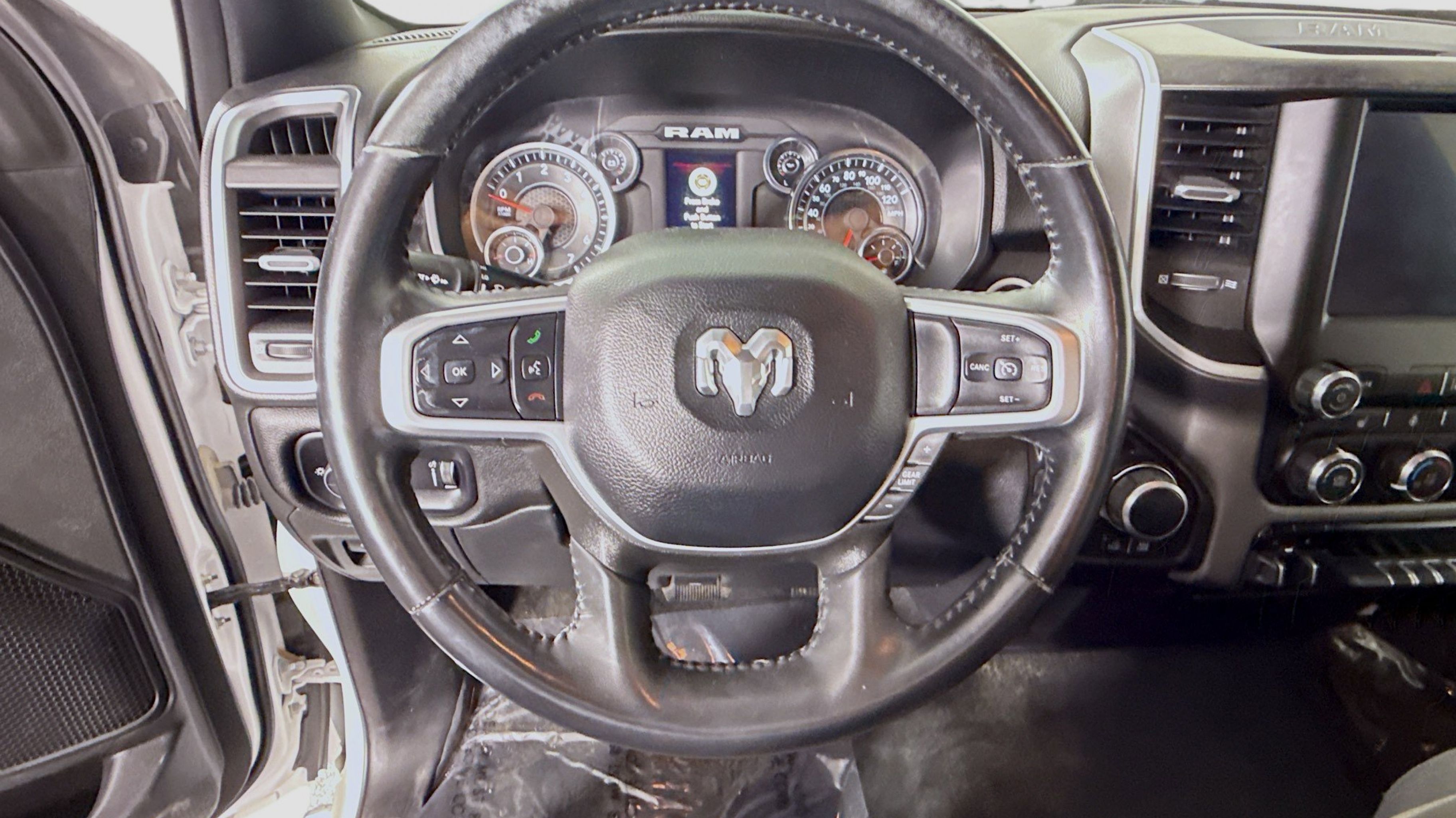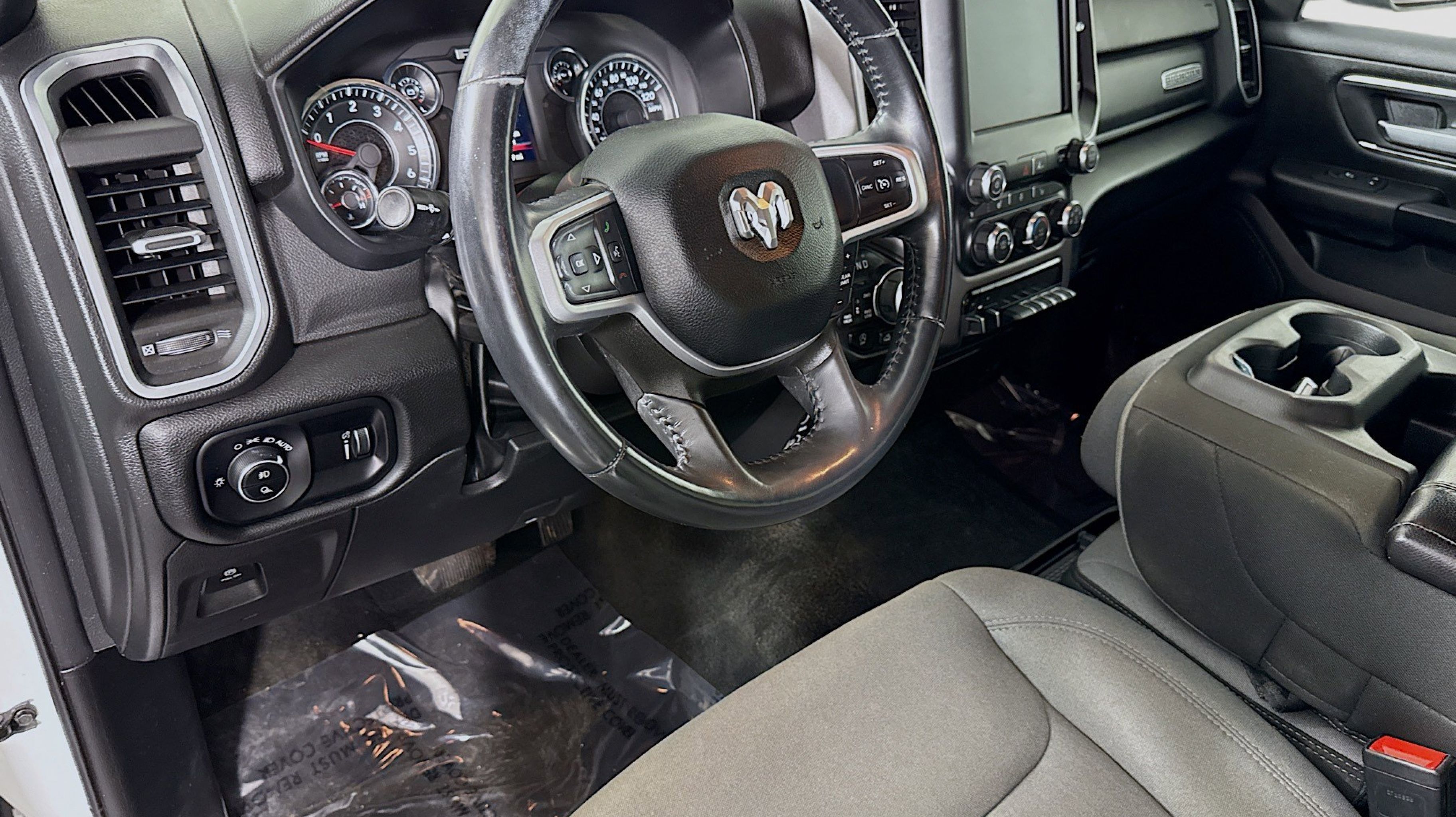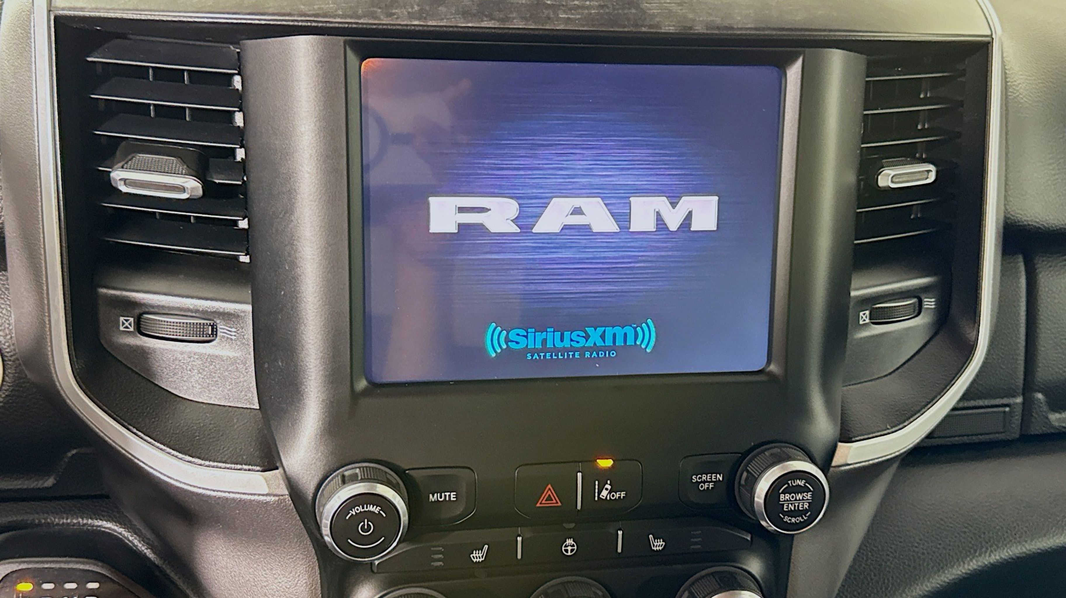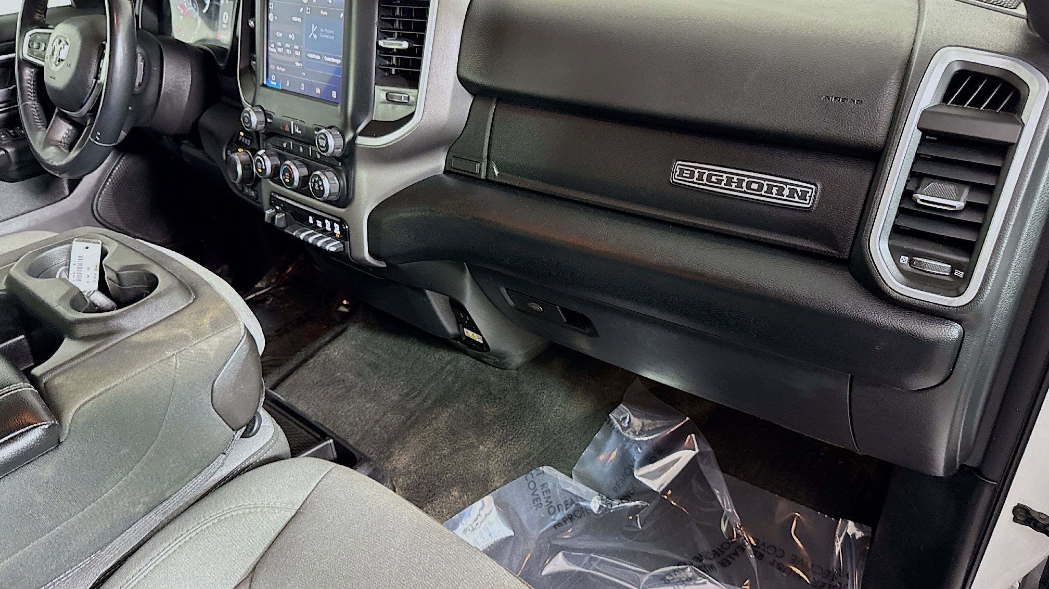 CARFAX One-Owner. 2nd Row In Floor Storage Bins, 4G LTE Wi-Fi Hot Spot, Advanced Brake Assist, Apple CarPlay, Auto-Dimming Exterior Driver Mirror, Auto-Dimming Rear-View Mirror, Bed Utility Group, Big Horn Badge, Big Horn Level 1 Equipment Group, Black Premium Power Mirrors, Bluetooth Handsfree Phone & Audio, Class IV Receiver Hitch, Connectivity - US/Canada, Convex Wide-Angle Exterior Mirror Insert, E-Locker Rear Axle, Electric Shift-On-Demand Transfer Case, Exterior Mirrors Courtesy Lamps, Exterior Mirrors w/Heating Element, Exterior Mirrors w/Supplemental Signals, For Details, Visit DriveUconnect.com, For More Info, Call 800-643-2112, Front Extra HD Shock Absorbers, Front Fog Lamps, Full Speed Forward Collision Warning Plus, Global Telematics Box Module (TBM), Glove Box Lamp, Google Android Auto, Heated Front Seats, Heated Steering Wheel, Lane Keep Assist, Level 1 Safety Group, MOPAR 4 Adjustable Cargo Tie-Down Hooks, MOPAR Deployable Bed Step, MOPAR Spray In Bedliner, Off Road Decals, Off Road Group, Passenger Sun Visor w/Illuminated Mirror, Pedestrian Emergency Braking, Pick-Up Box Lighting, Power-Folding Mirrors, Quick Order Package 27Z Big Horn, Radio: Uconnect 5 W w/8.4 Display, Raised Ride Height, Rear Dome w/On/Off Switch Lamp, Rear Extra HD Shock Absorbers, Rear Power Sliding Window, Rear Window Defroster, Selec-Speed (TM) Control, SiriusXM Radio Service, SiriusXM Satellite Radio, Tow Hooks, USB Host Flip, 115V Auxiliary Power Outlet, 3 Rear Seat Head Restraints, 3.21 Rear Axle Ratio, 4 Way Front Headrests, 4-Wheel Disc Brakes, 48V Belt Starter Generator, 6 Speakers, ABS brakes, Air Conditioning, Alloy wheels, AM/FM radio, Brake assist, Bumpers: chrome, Cloth Bench Seat, Compass, Delay-off headlights, Driver door bin, Dual front impact airbags, Dual front side impact airbags, Electronic Stability Control, Emergency communication system: RAM Connect, Front anti-roll bar, Front License Plate Bracket, Front reading lights, Front Seat Back Map Pockets, Front wheel independent suspension, Fully automatic headlights, Heated door mirrors, Illuminated entry, Integrated Voice Command w/Bluetooth, Leather steering wheel, Low tire pressure warning, Manufacturer's Statement of Origin, MOPAR Front & Rear Rubber Floor Mats, Occupant sensing airbag, Outside temperature display, Overhead airbag, Overhead console, Panic alarm, ParkSense Front/Rear Park Assist w/Stop, ParkView Rear Back-Up Camera, Passenger door bin, Passenger vanity mirror, Power door mirrors, Power steering, Power windows, Radio data system, Radio: Uconnect 3 w/5 Display, RAM Grille Badge - Chrome, Rear 60/40 Folding Seat, Rear anti-roll bar, Rear seat center armrest, REAR SEAT Center Armrest w/Storage, Rear step bumper, Remote keyless entry, Speed control, Split folding rear seat, Steering wheel mounted audio controls, Tachometer, Telescoping steering wheel, Tilt steering wheel, Traction control, Trailer Brake Control, Trip computer, Variably intermittent wipers, Voltmeter, Wheel to Wheel Side Steps, Wheels: 18 x 8 Cast-Aluminum Painted, 2nd Row In Floor Storage Bins, 4G LTE Wi-Fi Hot Spot, Advanced Brake Assist, Apple CarPlay, Auto-Dimming Exterior Driver Mirror, Auto-Dimming Rear-View Mirror, Bed Utility Group, Big Horn Badge, Big Horn Level 1 Equipment Group, Black Premium Power Mirrors, Bluetooth Handsfree Phone & Audio, Class IV Receiver Hitch, Connectivity - US/Canada, Convex Wide-Angle Exterior Mirror Insert, E-Locker Rear Axle, Electric Shift-On-D