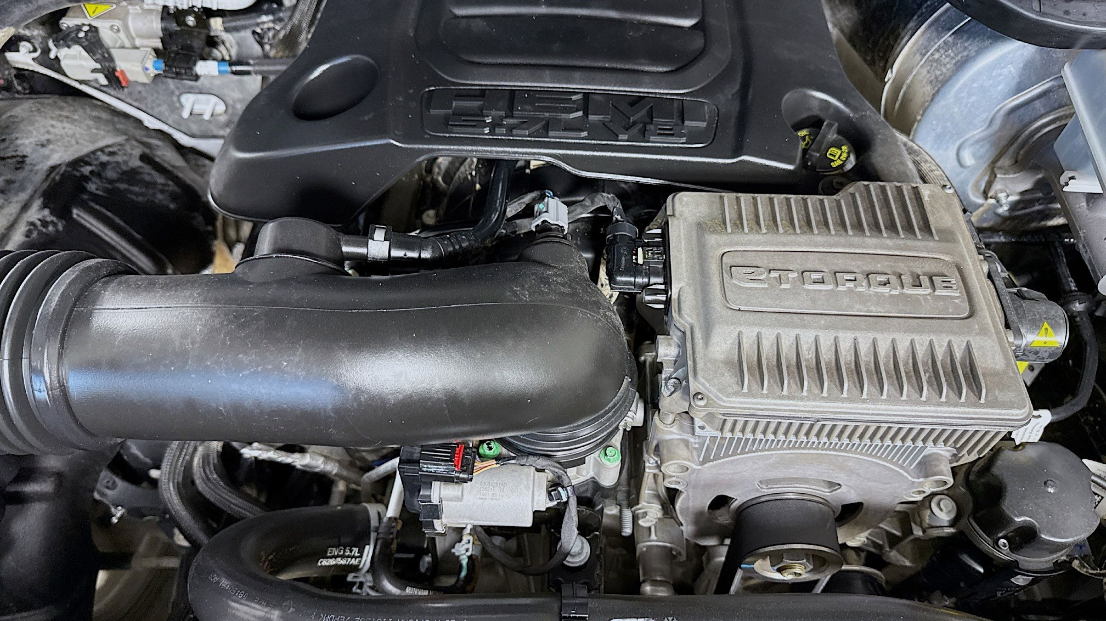 - ENGINE: 5.7L V8 HEMI MDS VVT ETORQUE -inc: Active Noise Control System Heavy Duty Engine Cooling Passive Tuned Mass Damper Dual Rear Exhaust w/Bright Tips HEMI Badge 23 Gallon Fuel Tank 18 Aluminum Spare Wheel