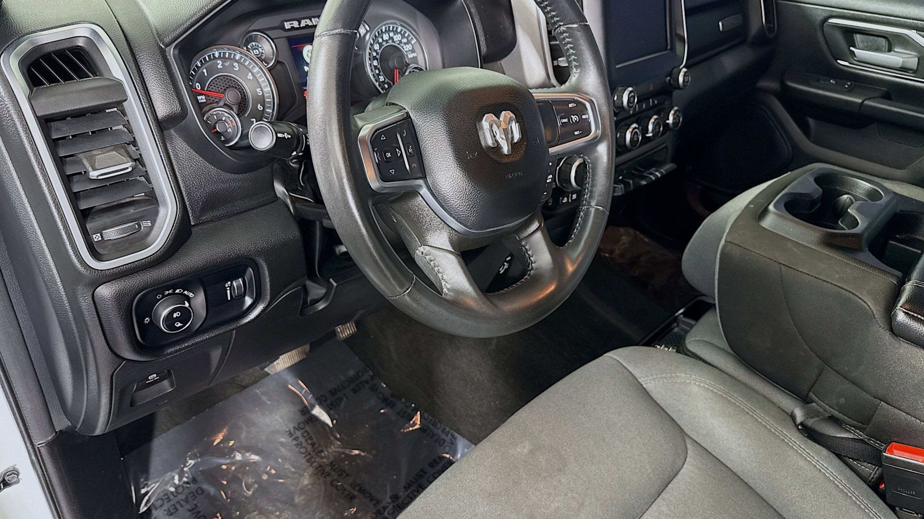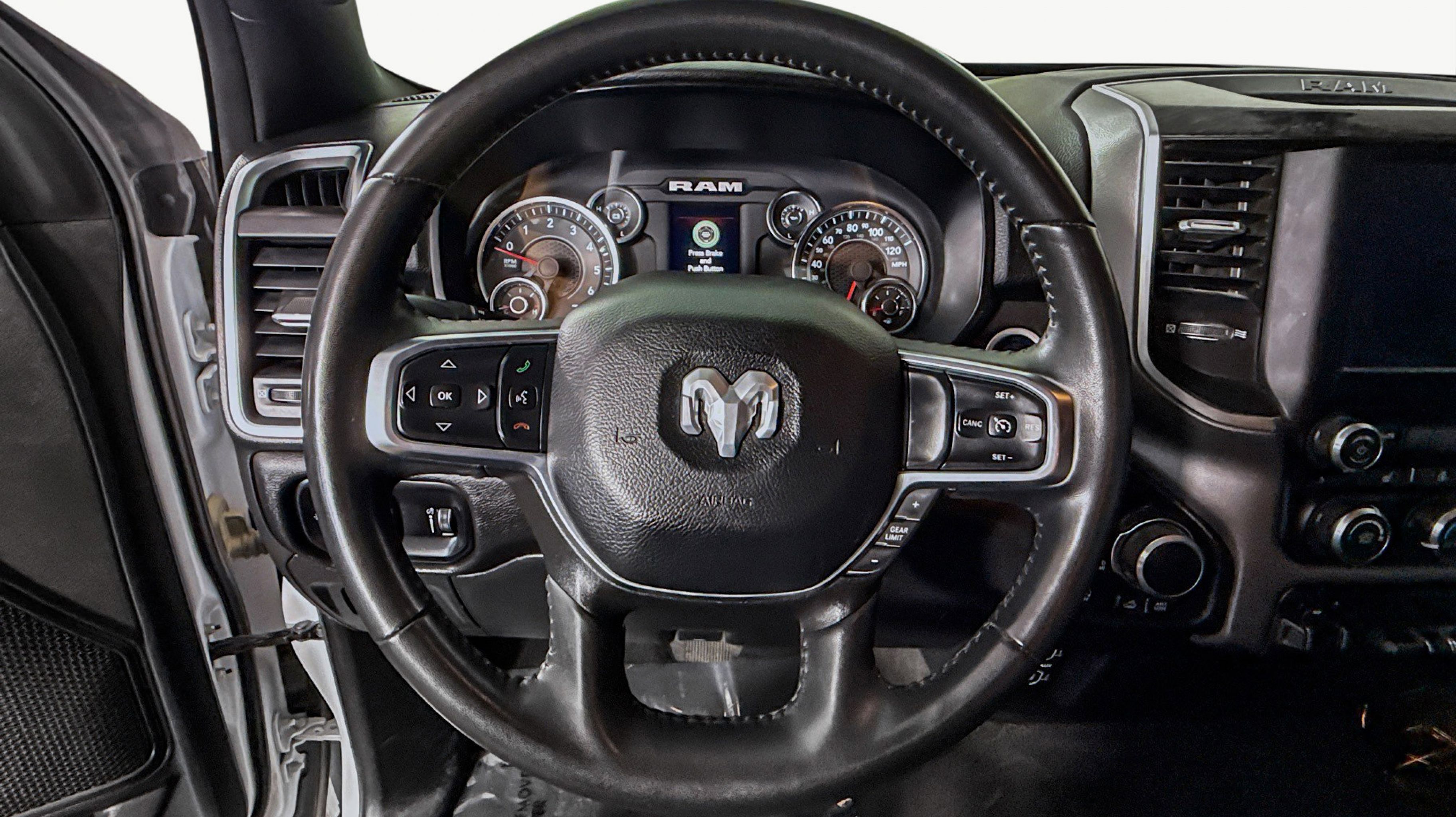 CARFAX One-Owner. 2nd Row In Floor Storage Bins, 4G LTE Wi-Fi Hot Spot, Apple CarPlay, Auto-Dimming Exterior Driver Mirror, Auto-Dimming Rear-View Mirror, Big Horn Badge, Big Horn Level 1 Equipment Group, Black Premium Power Mirrors, Bluetooth Handsfree Phone & Audio, Class IV Receiver Hitch, Connectivity - US/Canada, Convex Wide-Angle Exterior Mirror Insert, E-Locker Rear Axle, Electric Shift-On-Demand Transfer Case, Exterior Mirrors Courtesy Lamps, Exterior Mirrors w/Heating Element, Exterior Mirrors w/Supplemental Signals, For Details, Visit DriveUconnect.com, For More Info, Call 800-643-2112, Front Extra HD Shock Absorbers, Front Fog Lamps, Global Telematics Box Module (TBM), Glove Box Lamp, Google Android Auto, Heated Front Seats, Heated Steering Wheel, Off Road Decals, Off Road Group, Passenger Sun Visor w/Illuminated Mirror, Power-Folding Mirrors, Quick Order Package 27Z Big Horn, Radio: Uconnect 5 W w/8.4 Display, Raised Ride Height, Rear Dome w/On/Off Switch Lamp, Rear Extra HD Shock Absorbers, Rear Power Sliding Window, Rear Window Defroster, Selec-Speed (TM) Control, SiriusXM Radio Service, SiriusXM Satellite Radio, Tow Hooks, USB Host Flip, 3 Rear Seat Head Restraints, 3.21 Rear Axle Ratio, 4 Way Front Headrests, 4-Wheel Disc Brakes, 48V Belt Starter Generator, 6 Speakers, ABS brakes, Air Conditioning, Alloy wheels, AM/FM radio, Brake assist, Bumpers: chrome, Cloth Bench Seat, Compass, Delay-off headlights, Driver door bin, Dual front impact airbags, Dual front side impact airbags, Electronic Stability Control, Emergency communication system: RAM Connect, Front anti-roll bar, Front License Plate Bracket, Front reading lights, Front Seat Back Map Pockets, Front wheel independent suspension, Fully automatic headlights, Heated door mirrors, Illuminated entry, Integrated Voice Command w/Bluetooth, Leather steering wheel, Low tire pressure warning, Occupant sensing airbag, Outside temperature display, Overhead airbag, Overhead console, Panic alarm, ParkView Rear Back-Up Camera, Passenger door bin, Passenger vanity mirror, Power door mirrors, Power steering, Power windows, Radio data system, Radio: Uconnect 3 w/5 Display, RAM Grille Badge - Chrome, Rear 60/40 Folding Seat, Rear anti-roll bar, Rear seat center armrest, REAR SEAT Center Armrest w/Storage, Rear step bumper, Remote keyless entry, Remote Start System, Speed control, Split folding rear seat, Steering wheel mounted audio controls, Tachometer, Telescoping steering wheel, Tilt steering wheel, Traction control, Trailer Brake Control, Trip computer, Variably intermittent wipers, Voltmeter, Wheels: 18 x 8 Cast-Aluminum Painted, 2nd Row In Floor Storage Bins, 4G LTE Wi-Fi Hot Spot, Apple CarPlay, Auto-Dimming Exterior Driver Mirror, Auto-Dimming Rear-View Mirror, Big Horn Badge, Big Horn Level 1 Equipment Group, Black Premium Power Mirrors, Bluetooth Handsfree Phone & Audio, Class IV Receiver Hitch, Connectivity - US/Canada, Convex Wide-Angle Exterior Mirror Insert, E-Locker Rear Axle, Electric Shift-On-Demand Transfer Case, Exterior Mirrors Courtesy Lamps, Exterior Mirrors w/Heating Element, Exterior Mirrors w/Supplemental Signals, For Details, Visit DriveUconnect.com, For More Info, Call 800-643-2112, Front Extra HD Shock Absorbers, Front Fog Lamps, Global Telematics Box Module (TBM), Glove Box Lamp, Google Android Auto, Heated Front Seats, Heated Steering Wheel, Off Road Decals, Off Road Group, Passenger Sun Visor w/Illuminated Mirror, Power-Folding Mirro