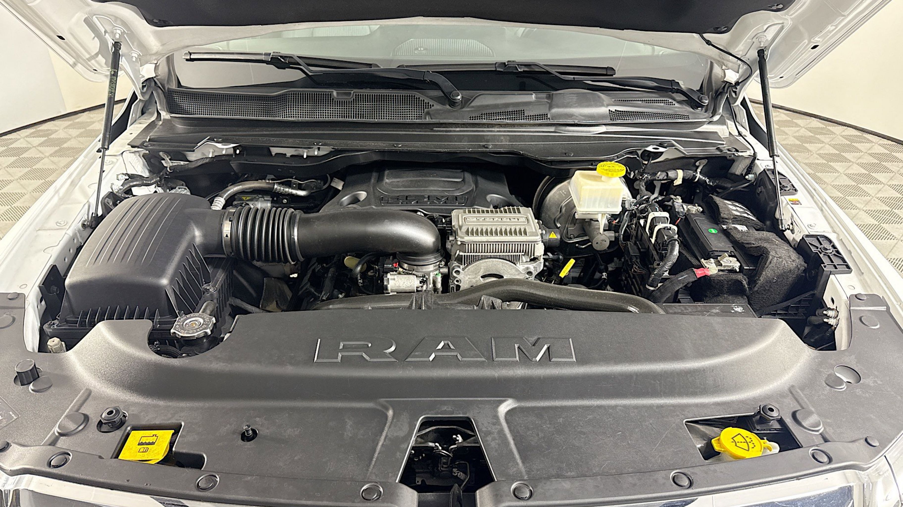 - ENGINE: 5.7L V8 HEMI MDS VVT ETORQUE -inc: Active Noise Control System Heavy Duty Engine Cooling Passive Tuned Mass Damper Dual Rear Exhaust w/Bright Tips HEMI Badge 23 Gallon Fuel Tank 18 Aluminum Spare Wheel