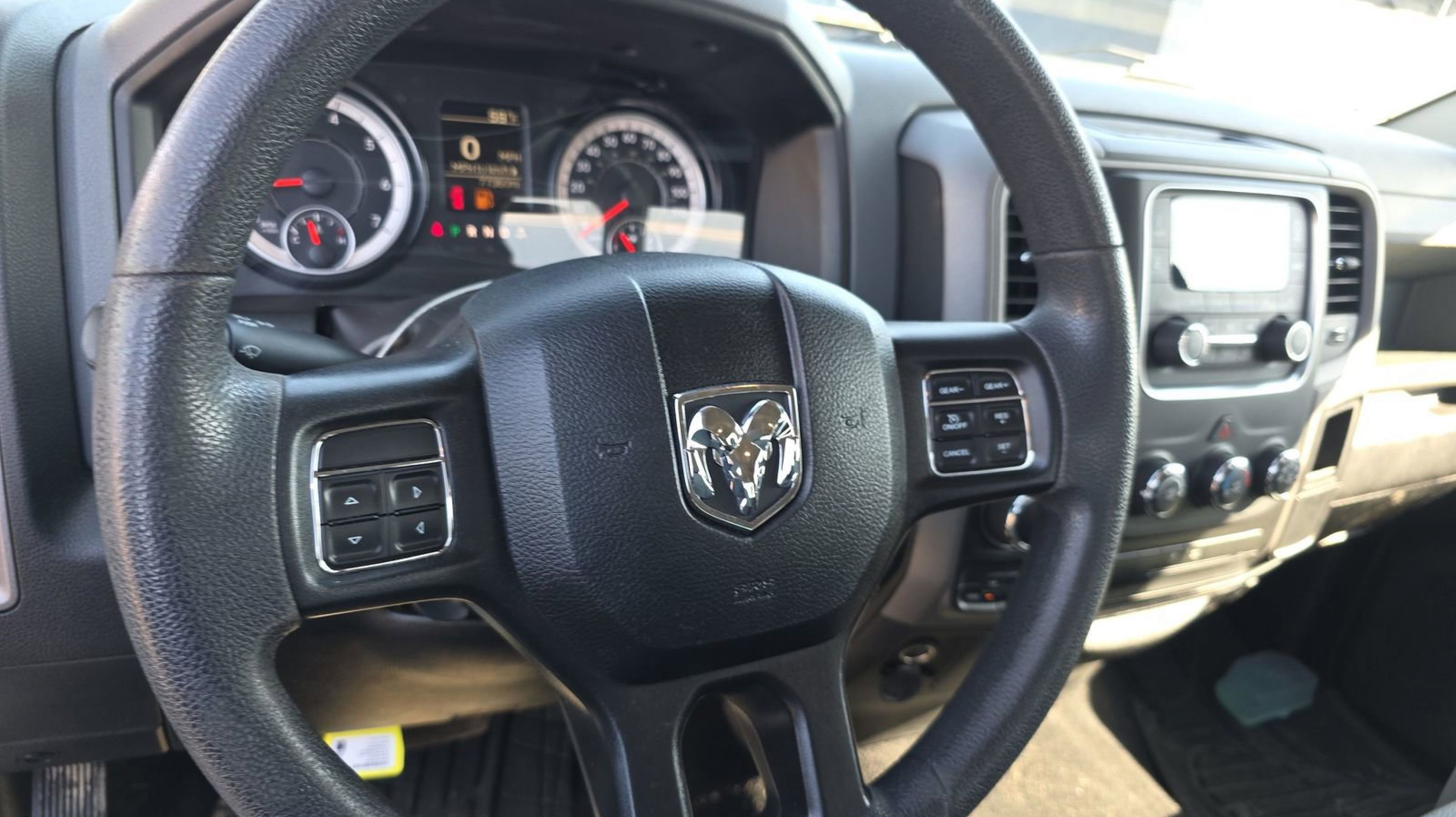 Clean CARFAX. 17 x 7 Aluminum Wheels, 40/20/40 Split Bench Seat, Bright Front Bumper, Bright Grille, Bright Rear Bumper, Chrome Appearance Group, Cloth 40/20/40 Bench Seat, Front Armrest w/3 Cupholders, Manual Adjust Seats, Popular Equipment Group, Quick Order Package 22B Tradesman, Rear Folding Seat, Remote Keyless Entry w/All-Secure, Storage Tray, Tradesman Package, 1-Yr SiriusXM Radio Service, 17 x 7 Steel Wheels, 3.21 Rear Axle Ratio, 4-Wheel Disc Brakes, 6 Speakers, ABS brakes, Active Grille Shutters, Air Conditioning, AM/FM radio, Auto-dimming Rear-View mirror, Black Exterior Mirrors, Brake assist, Carpet Floor Covering, Center Hub, Delay-off headlights, Driver door bin, Dual front impact airbags, Dual front side impact airbags, Electronic Shift, Electronic Stability Control, Exterior Mirrors w/Heating Element, For More Info, Call 800-643-2112, Front anti-roll bar, Front Center Armrest, Front wheel independent suspension, Fully automatic headlights, Heated door mirrors, Heavy Duty Vinyl 40/20/40 Split Bench Seat, Low tire pressure warning, Media Hub (USB, AUX), No Satellite Coverage w/AK/HI, Occupant sensing airbag, Overhead airbag, ParkView Rear Back-Up Camera, Passenger door bin, Power door mirrors, Power steering, Power windows, Radio data system, Radio: 3.0, Rear anti-roll bar, Rear seat center armrest, Rear step bumper, Remote USB Port - Charge Only, SiriusXM Satellite Radio, Speed control, Tachometer, Tilt steering wheel, Tip Start, Traction control, Variably intermittent wipers, Voltmeter, 17 x 7 Aluminum Wheels, 40/20/40 Split Bench Seat, Bright Front Bumper, Bright Grille, Bright Rear Bumper, Chrome Appearance Group, Cloth 40/20/40 Bench Seat, Front Armrest w/3 Cupholders, Manual Adjust Seats, Popular Equipment Group, Quick Order Package 22B Tradesman, Rear Folding Seat, Remote Keyless Entry w/All-Secure, Storage Tray, Tradesman Package. Odometer is 58901 miles below market average!