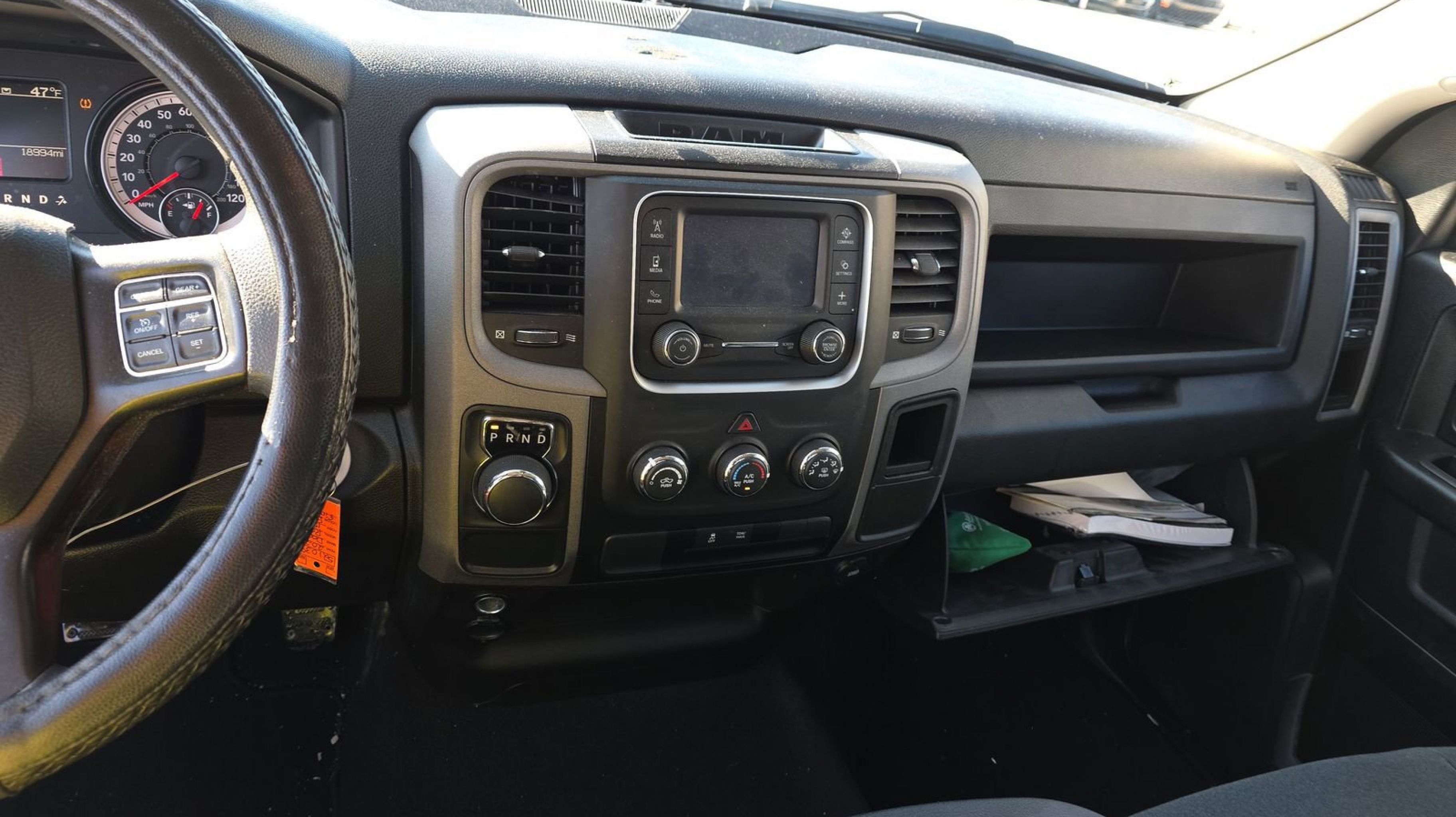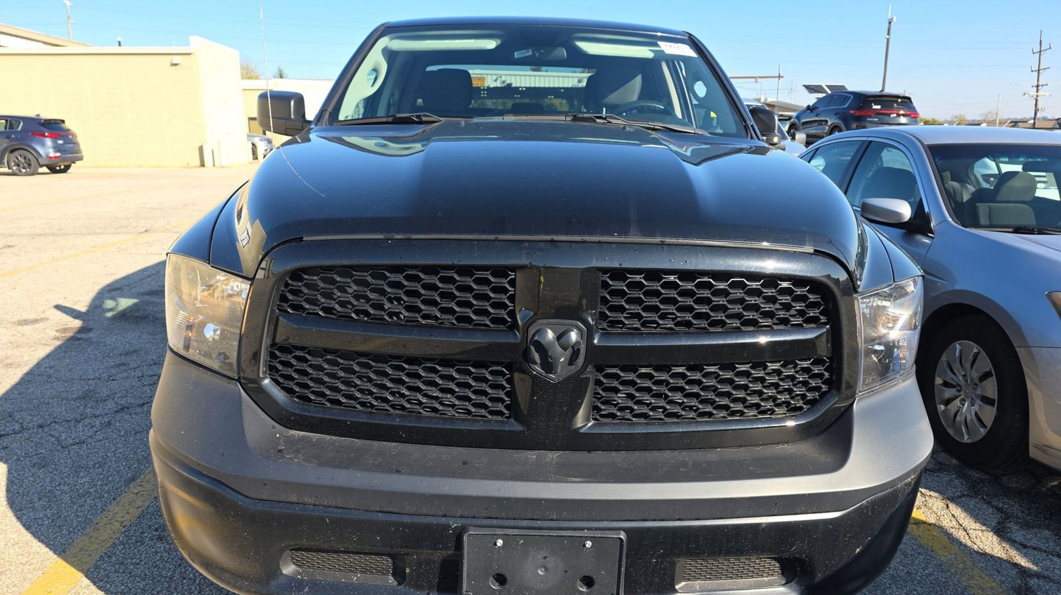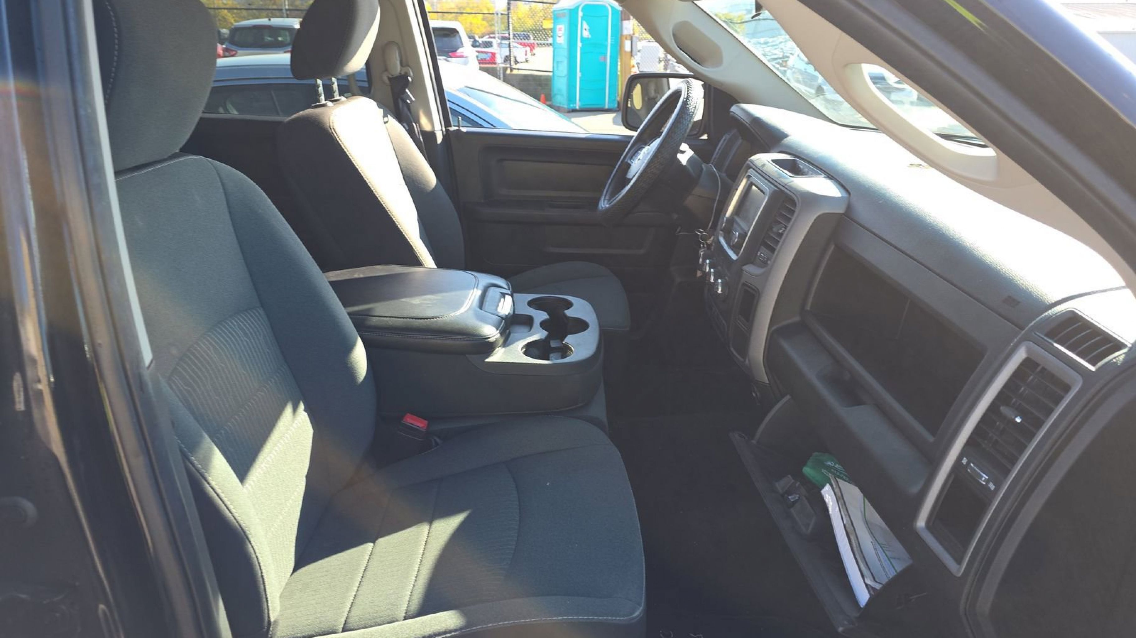 CARFAX One-Owner. 40/20/40 Split Bench Seat, Black Exterior Truck Badging, Black Grille w/Black RAM's Head, Black Headlamp Bezels, Black RAM Head Tailgate Badge, Carpet Floor Covering, Cloth 40/20/40 Bench Seat, For More Info, Call 800-643-2112, Front Armrest w/3 Cupholders, Front Floor Mats, Manual Adjust Seats, No Satellite Coverage w/HI/AK/PR/VI/GU, Popular Equipment Group, Quick Order Package 29B Tradesman, Rear Floor Mats, Rear Folding Seat, Remote Keyless Entry w/All-Secure, Semi-Gloss Black Hub, SiriusXM Radio Service, SiriusXM Satellite Radio, Tradesman Black Package, Tradesman Package, Wheels: 17 x 7 Semi-Gloss Black Aluminum, 17 x 7 Steel Wheels, 3.21 Rear Axle Ratio, 4-Wheel Disc Brakes, 6 Speakers, ABS brakes, Active Grille Shutters, Air Conditioning, AM/FM radio, Audio Input Jack for Mobile Devices, Black Exterior Mirrors, Brake assist, Center Hub, Charge Only Remote USB Port, Compass, Delay-off headlights, Driver door bin, Dual front impact airbags, Dual front side impact airbags, Electronic Shift, Electronic Stability Control, Exterior Mirrors w/Heating Element, Front anti-roll bar, Front Center Armrest, Front License Plate Bracket, Front wheel independent suspension, Fully automatic headlights, GPS Antenna Input, Heated door mirrors, Heavy Duty Vinyl 40/20/40 Split Bench Seat, Integrated Voice Command w/Bluetooth, Low tire pressure warning, MOPAR Spray In Bedliner, Occupant sensing airbag, Outside temperature display, Overhead airbag, Overhead console, ParkView Rear Back-Up Camera, Passenger door bin, Power door mirrors, Power steering, Power windows, Radio data system, Radio: Uconnect 3 w/5 Display, Rear anti-roll bar, Rear step bumper, Remote USB Port, Rotary Shifter-Black, Speed control, Tachometer, Tilt steering wheel, Tip Start, Traction control, Variably intermittent wipers, Voltmeter, 40/20/40 Split Bench Seat, Black Exterior Truck Badging, Black Grille w/Black RAM's Head, Black Headlamp Bezels, Black RAM Head Tailgate Badge, Carpet Floor Covering, Cloth 40/20/40 Bench Seat, For More Info, Call 800-643-2112, Front Armrest w/3 Cupholders, Front Floor Mats, Manual Adjust Seats, No Satellite Coverage w/HI/AK/PR/VI/GU, Popular Equipment Group, Quick Order Package 29B Tradesman, Rear Floor Mats, Rear Folding Seat, Remote Keyless Entry w/All-Secure, Semi-Gloss Black Hub, SiriusXM Radio Service, SiriusXM Satellite Radio, Tradesman Black Package, Tradesman Package, Wheels: 17 x 7 Semi-Gloss Black Aluminum.