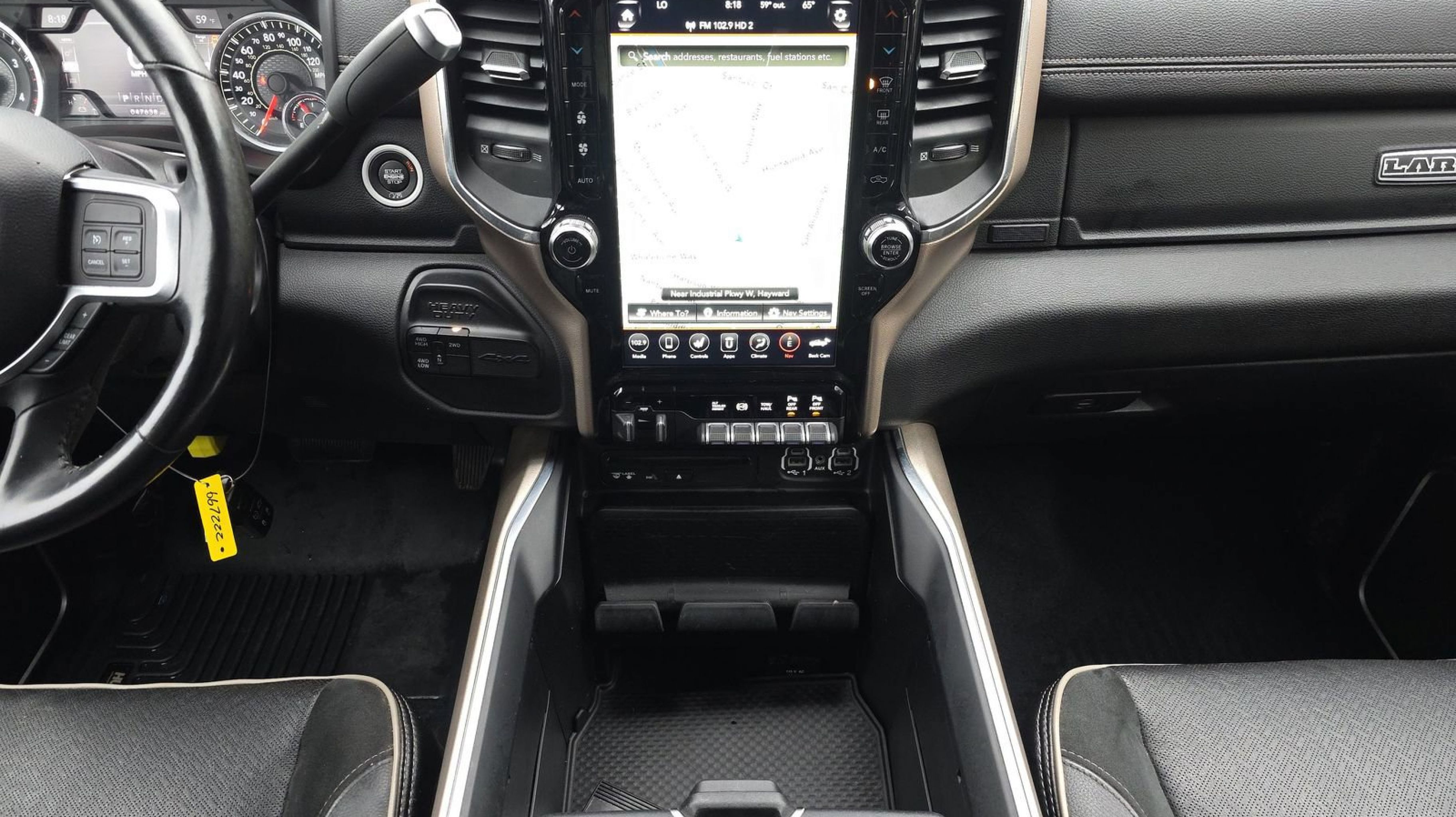 - LARAMIE LEVEL 1 EQUIPMENT GROUP -inc: Remote Tailgate Release Auto High Beam Headlamp Control Blind Spot & Cross Path Detection Rain Sensitive Windshield Wipers Power Adjustable Pedals w/Memory Foam Bottle Insert (Door Trim Panel) Single Disc Remote CD Player 2nd Row In Floor Storage Bins Radio/Driver Seat/Mirrors/Pedals Memory Ventilated Front Seats