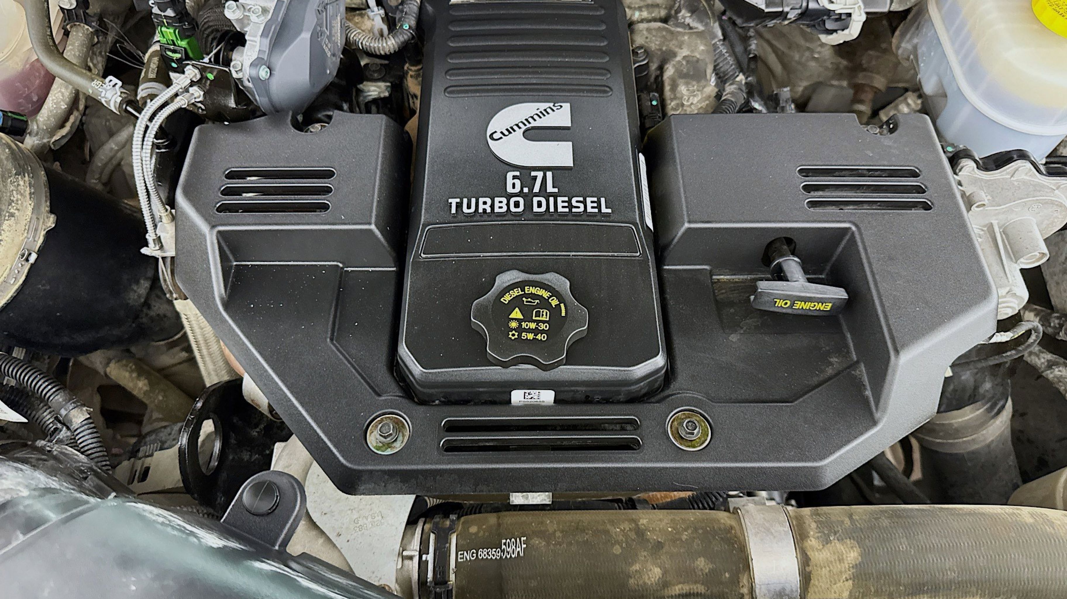 - ENGINE: 6.7L I6 CUMMINS TURBO DIESEL -inc: Selective Catalytic Reduction (Urea) Dual 730 Amp Maintenance Free Batteries Cummins Turbo Diesel Badge Heavy Duty Engine Cooling Tow Hooks Diesel Exhaust Brake Supplemental Heater Front Bumper Sight Shields Capless Fuel Fill w/o Discriminator
