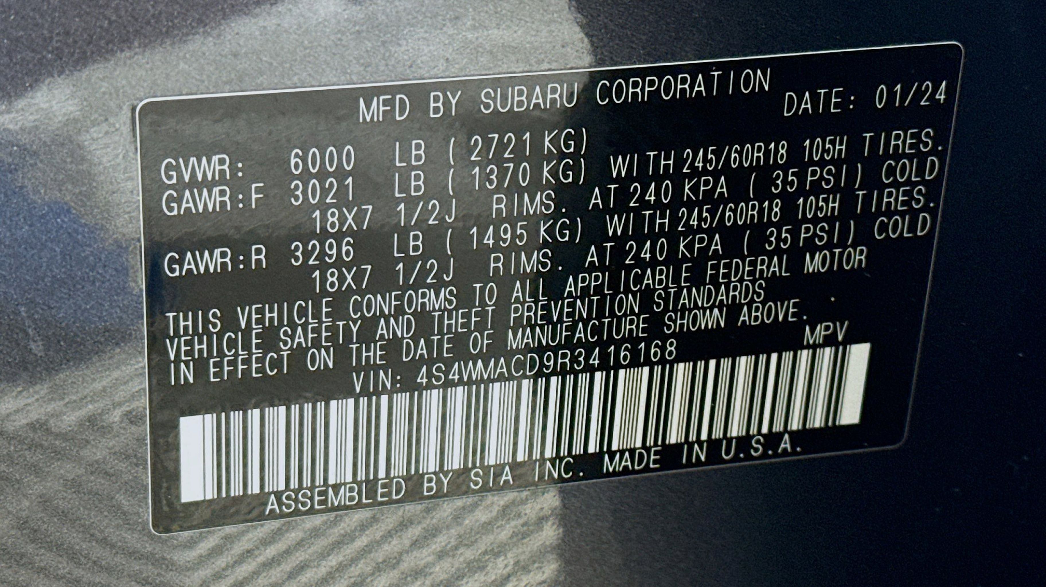 Magnetite Gray Metallic 2024 Subaru Ascent Premium AWD Lineartronic CVT 2.4L 4-Cylinder DOHC 16V Auto-Dimming Rear View Compass Mirror w/HomeLink, Convenience Package, Keyless Access w/Push-Button Start, Power Rear Gate w/Automatic Close & Height Memory, Reverse Automatic Braking (RAB) System, 2nd Row Bench Rear Seatback Protector, 3rd Row Bench Rear Seatback Protector, 3rd row seats: bench, 4-Wheel Disc Brakes, 6 Speakers, ABS brakes, Air Conditioning, Alloy wheels, AM/FM radio: SiriusXM, Auto High-beam Headlights, Automatic temperature control, Axle Ratio: 4.44, Brake assist, Bumpers: body-color, Cargo Tray, Delay-off headlights, Driver door bin, Driver vanity mirror, Dual front impact airbags, Dual front side impact airbags, Electronic Stability Control, Emergency communication system: STARLINK Safety and Security (Subscription Required), Exterior Parking Camera Rear, Four wheel independent suspension, Front anti-roll bar, Front Bucket Seats, Front Center Armrest, Front dual zone A/C, Front reading lights, Fully automatic headlights, Heated door mirrors, Heated Front Bucket Seats, Heated front seats, Illuminated entry, Knee airbag, Leather Shift Knob, Leather steering wheel, Low tire pressure warning, Occupant sensing airbag, Outside temperature display, Overhead airbag, Overhead console, Panic alarm, Passenger door bin, Passenger vanity mirror, Power door mirrors, Power driver seat, Power steering, Power windows, Radio data system, Radio: Subaru STARLINK 11.6 Multimedia Plus System, Rear air conditioning, Rear anti-roll bar, Rear reading lights, Rear seat center armrest, Rear window defroster, Rear window wiper, Reclining 3rd row seat, Remote keyless entry, Security system, Speed control, Speed-sensing steering, Spill Resistant Coated Cloth Upholstery, Split folding rear seat, Spoiler, STARLINK/Apple CarPlay/Android Auto, Steering wheel mounted audio controls, Tachometer, Telescoping steering wheel, Tilt steering wheel, Traction control, Trip computer, Turn signal indicator mirrors, Variably intermittent wipers, Wheels: 18 x 7.5 J Gray Alloy w/Machine Finish, Auto-Dimming Rear View Compass Mirror w/HomeLink, Convenience Package, Keyless Access w/Push-Button Start, Power Rear Gate w/Automatic Close & Height Memory, Reverse Automatic Braking (RAB) System.
