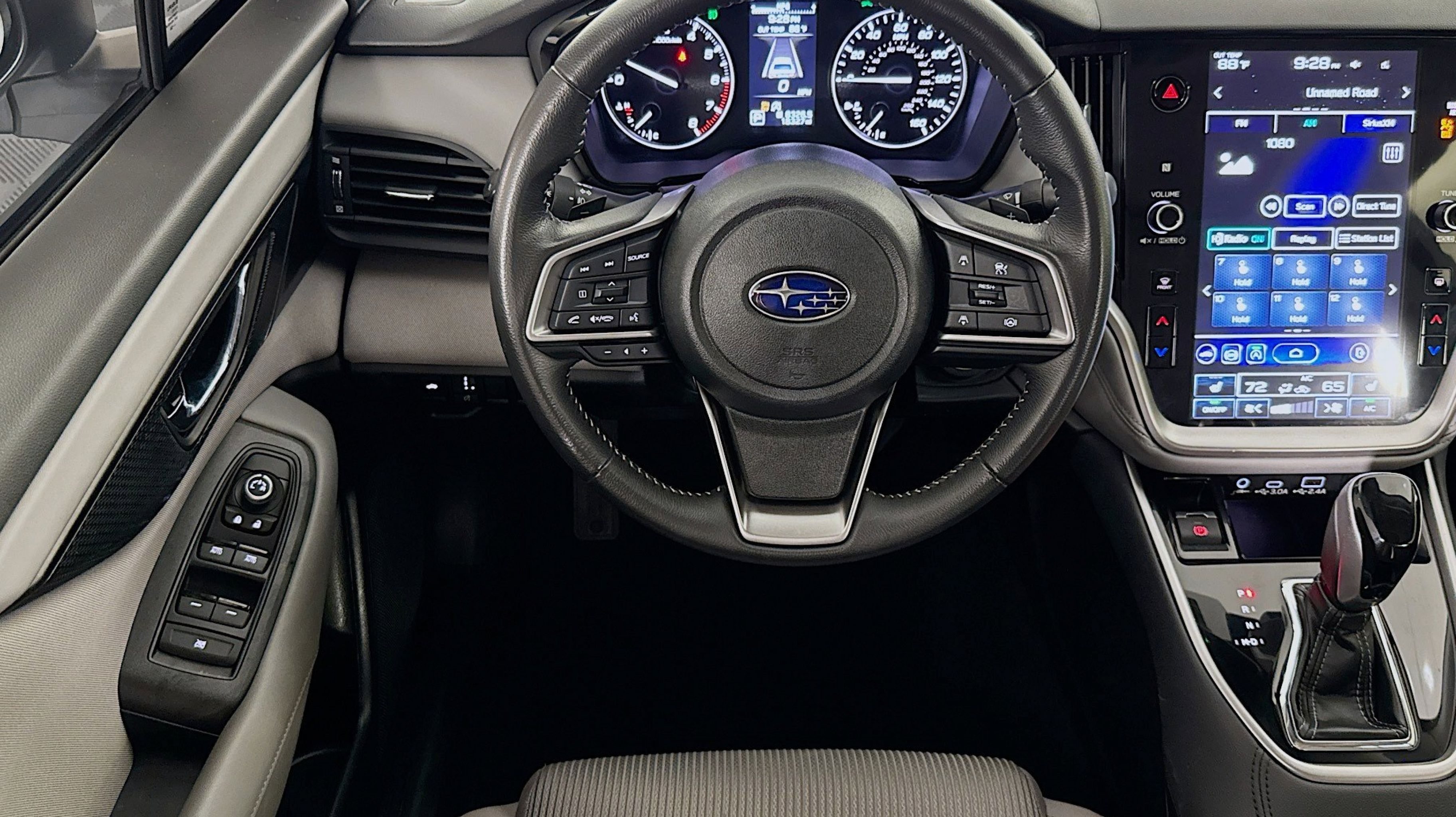 - BSD W/RCTA & KEYLESS & FOG LTS & MOONROOF & NAV -inc: Blind Spot Detection w/Rear Cross-Traffic Alert system off switch exterior power mirrors: BSD/RCTA detection indicator rear radar detection sensors Lane Change Assist RCTA audible vehicle detection warning and malfunction warning indicator Keyless Access w/Push Button Start laser cut master key remote transmitter w/removable key spare remote transmitter w/removable key illuminated engine start/stop switch shift lever park engagement display and audible warning starter override protection driver and front passenger door unlock/lock sensor trunk lid unlock button and PIN code access Power Moonroof tilt up and internal retracting w/auto-open/close and UV dark tint laminated glass Radio: Subaru 11.6 Multimedia System w/Navigation AM/FM stereo HD Radio valet mode multi-touch gesture high resolution display screen voice activated controls and navigation Bluetooth audio streaming and hands-free phone connectivity