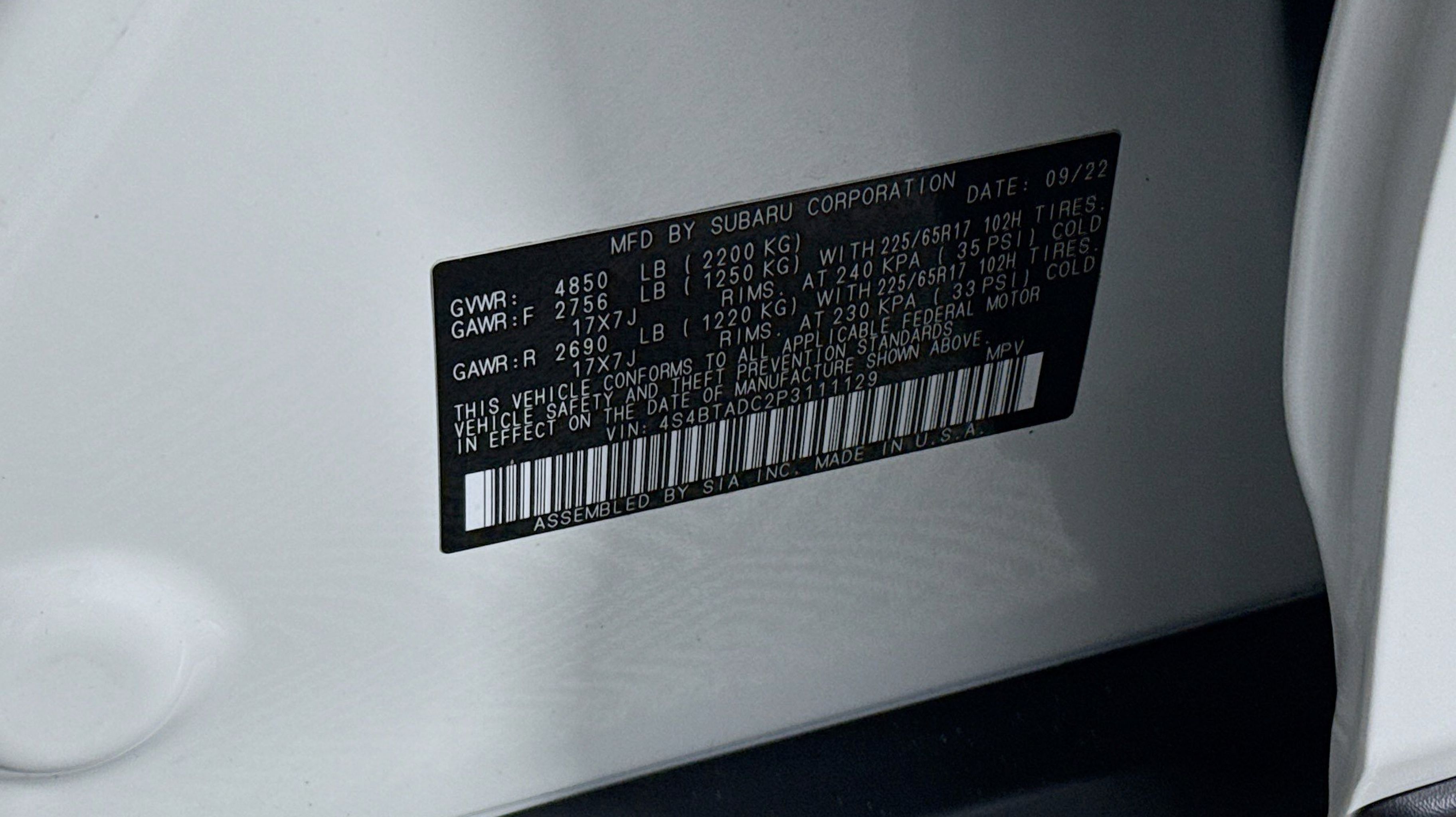 CARFAX One-Owner. Clean CARFAX. Blind Spot Detection (BSD), BSD w/RCTA & Keyless Access & Push Button Start, Hands-Free Power Rear Gate, Keyless Access w/Push Button Start, Rear Cross Traffic Alert (RCTA), 3.90 Axle Ratio, 4-Wheel Disc Brakes, 6 Speakers, ABS brakes, Air Conditioning, All-Weather Floor Liners, Alloy wheels, AM/FM radio: SiriusXM, Auto High-beam Headlights, Automatic temperature control, Brake assist, Bumpers: body-color, Cloth Upholstery, Driver door bin, Driver vanity mirror, Dual front impact airbags, Dual front side impact airbags, Electronic Stability Control, Emergency communication system: STARLINK Safety Plus (3-year free trial), Exterior Parking Camera Rear, Four wheel independent suspension, Front anti-roll bar, Front Bucket Seats, Front dual zone A/C, Front fog lights, Front reading lights, Fully automatic headlights, Heated door mirrors, Heated Front Bucket Seats, Heated front seats, Illuminated entry, Knee airbag, Leather Shift Knob, Leather steering wheel, Low tire pressure warning, Occupant sensing airbag, Outside temperature display, Overhead airbag, Overhead console, Panic alarm, Passenger door bin, Passenger vanity mirror, Power door mirrors, Power driver seat, Power steering, Power windows, Radio: Subaru STARLINK 11.6 Multimedia Plus Sys, Rear anti-roll bar, Rear Bumper Cover, Rear seat center armrest, REAR SEAT Center Armrest w/Storage, Rear window defroster, Rear window wiper, Remote keyless entry, Roof rack, Security system, Speed control, Speed-sensing steering, Split folding rear seat, Spoiler, Steering wheel mounted audio controls, Steering Wheel Paddle Shift Control Switches, Tachometer, Telescoping steering wheel, Tilt steering wheel, Traction control, Trip computer, Turn signal indicator mirrors, Variably intermittent wipers, Wheels: 17 x 7J Black Aluminum Alloy, Blind Spot Detection (BSD), BSD w/RCTA & Keyless Access & Push Button Start, Hands-Free Power Rear Gate, Keyless Access w/Push Button Start, Rear Cross Traffic Alert (RCTA). Odometer is 8486 miles below market average!