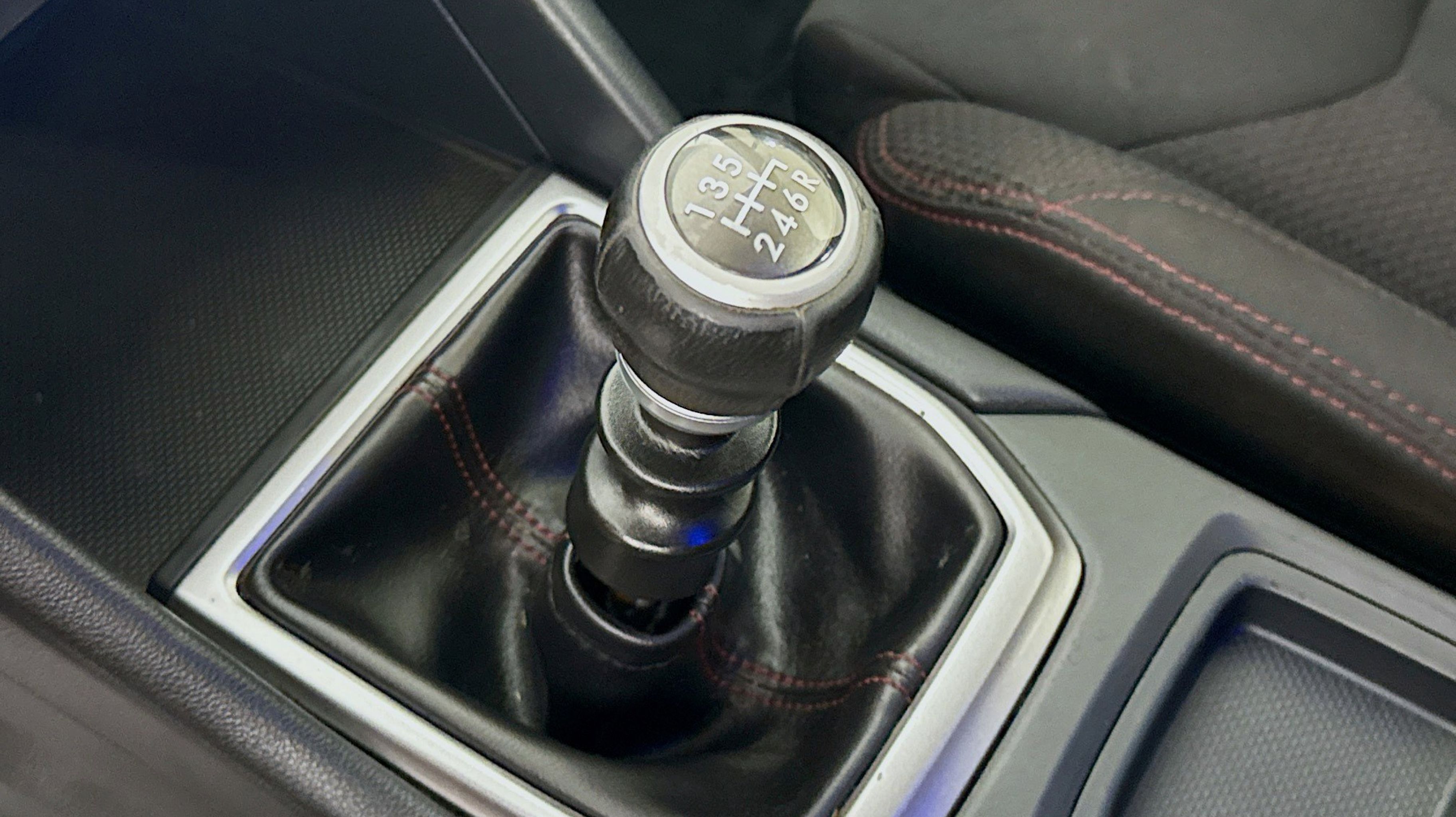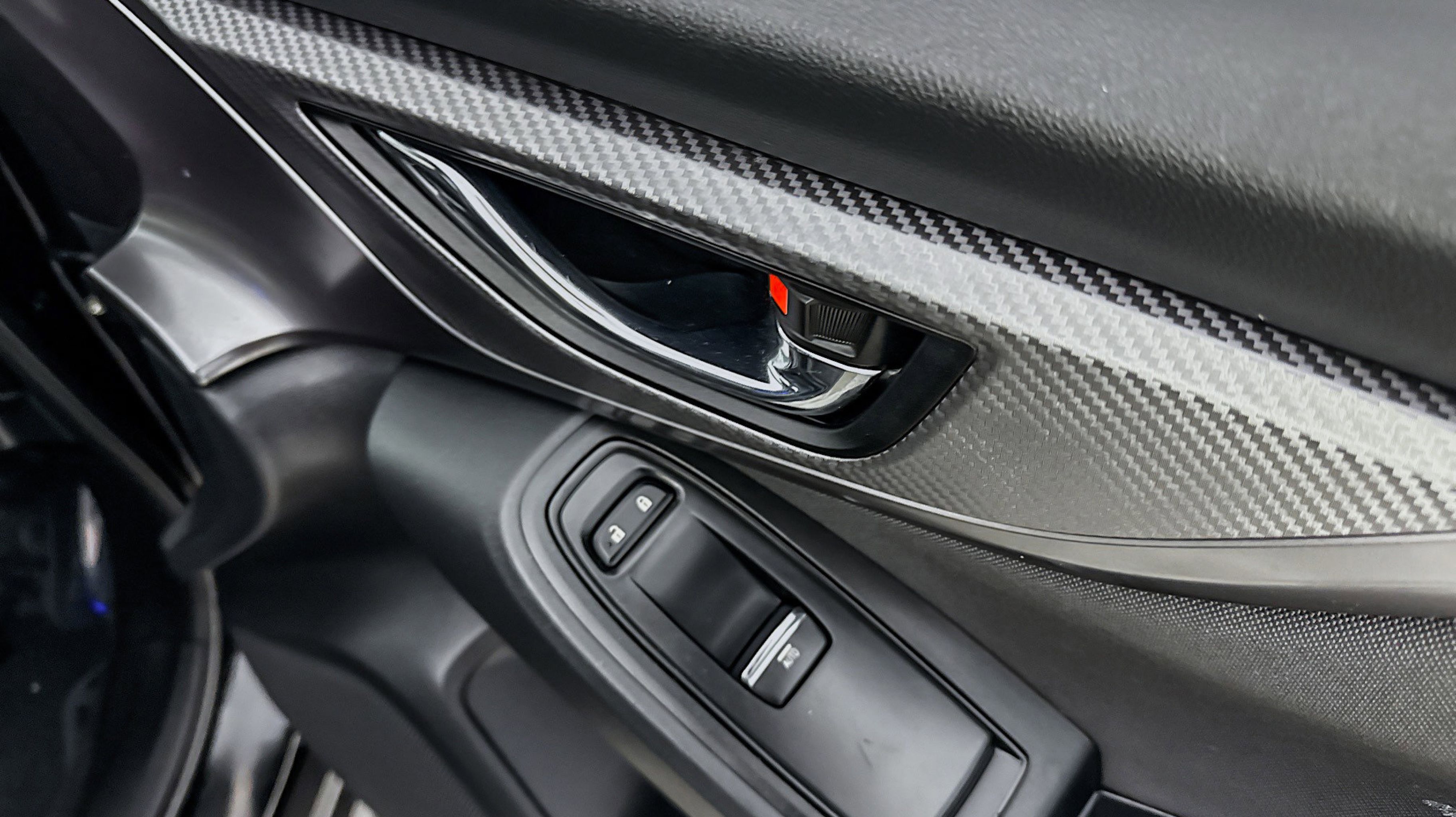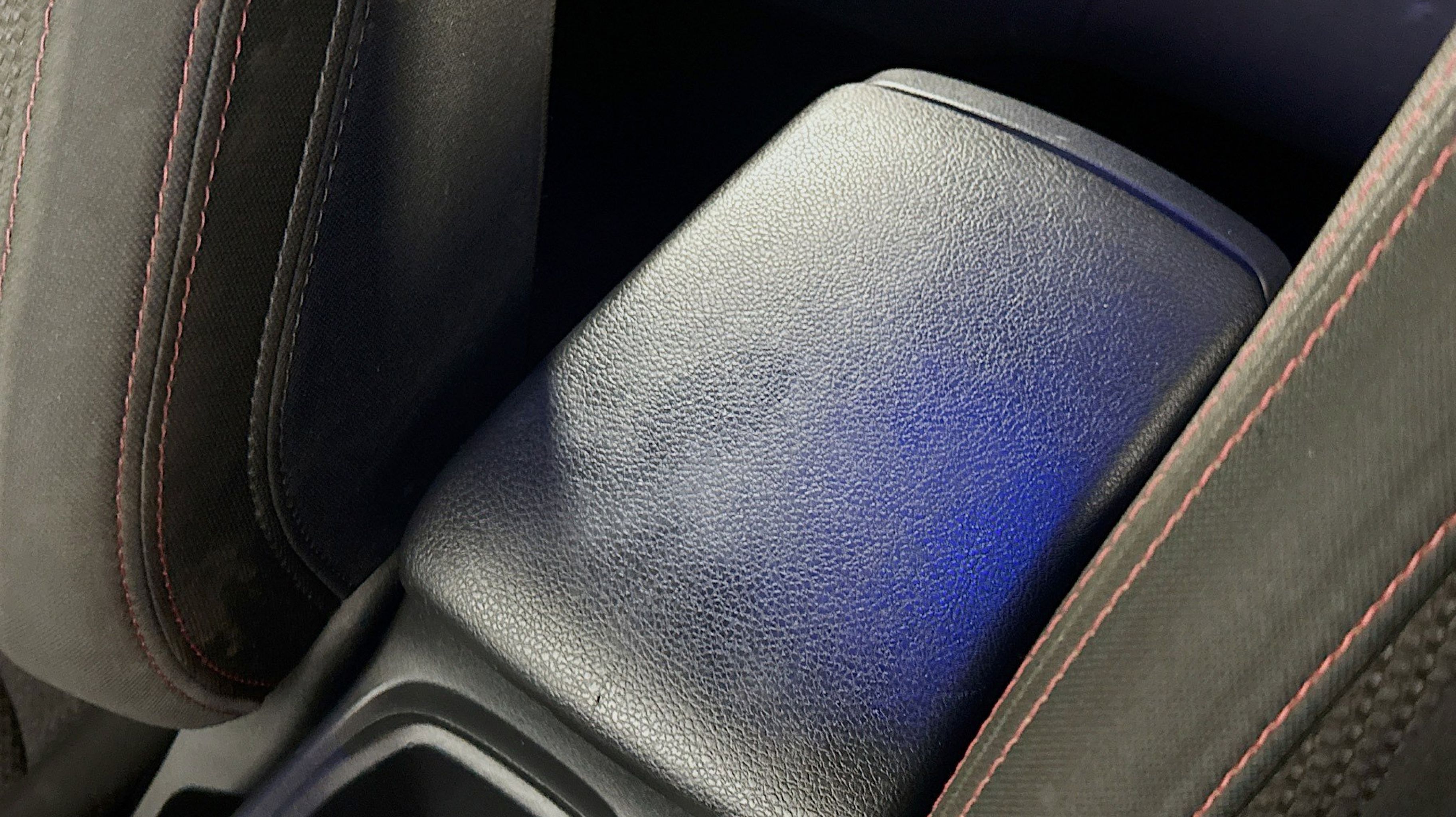- CARBON BLACK CLOTH UPHOLSTERY W/RED STITCHING