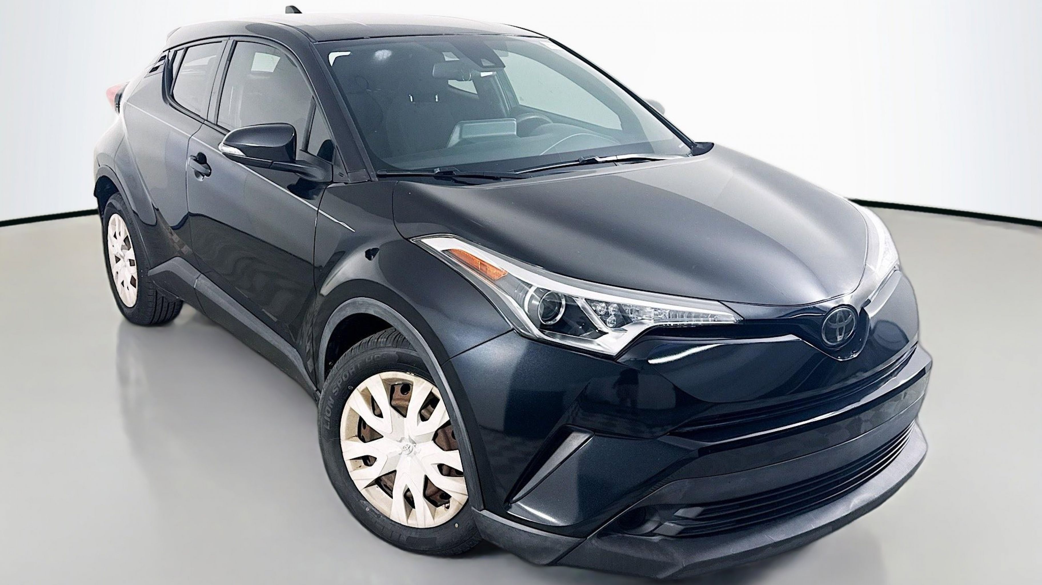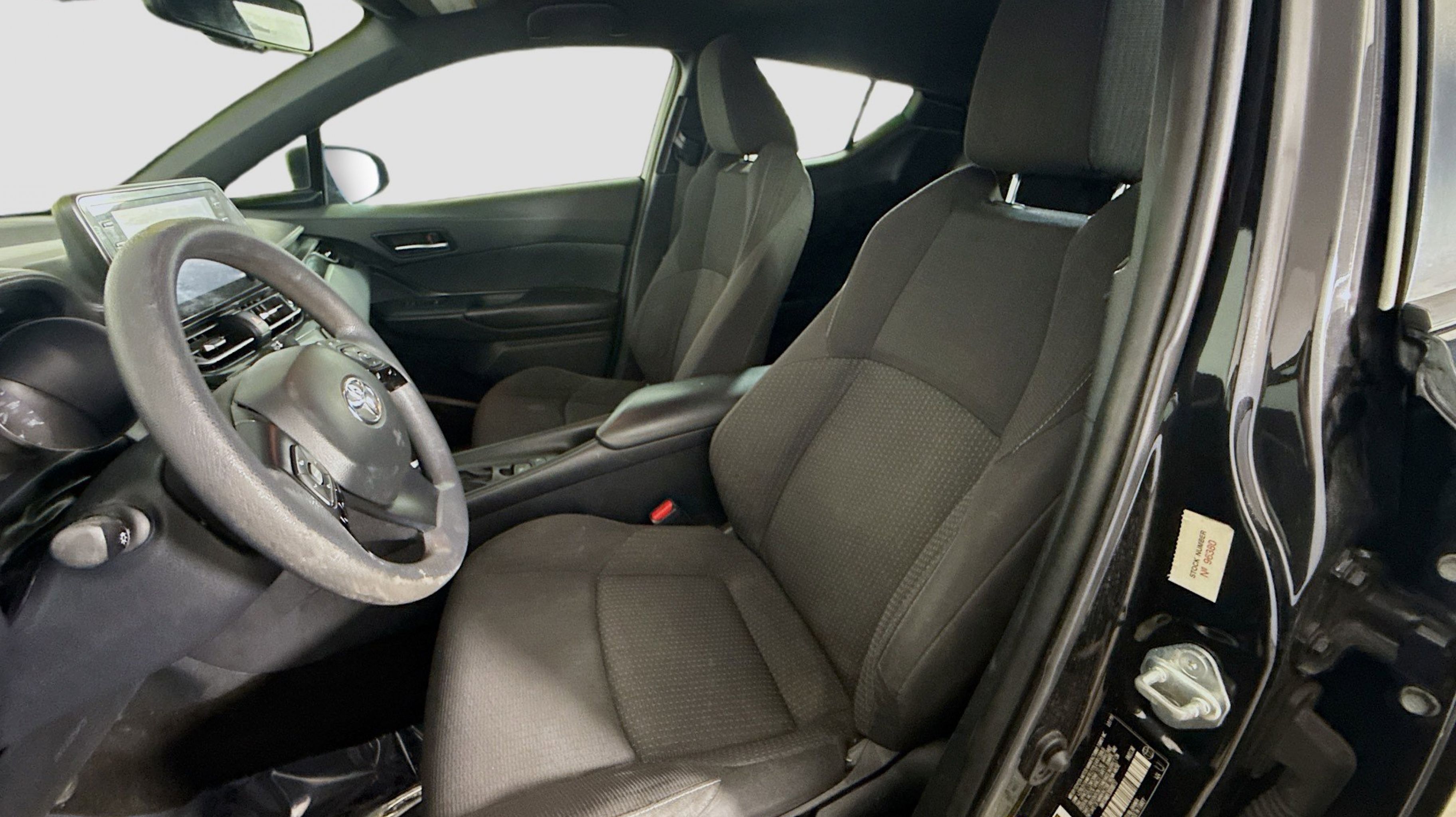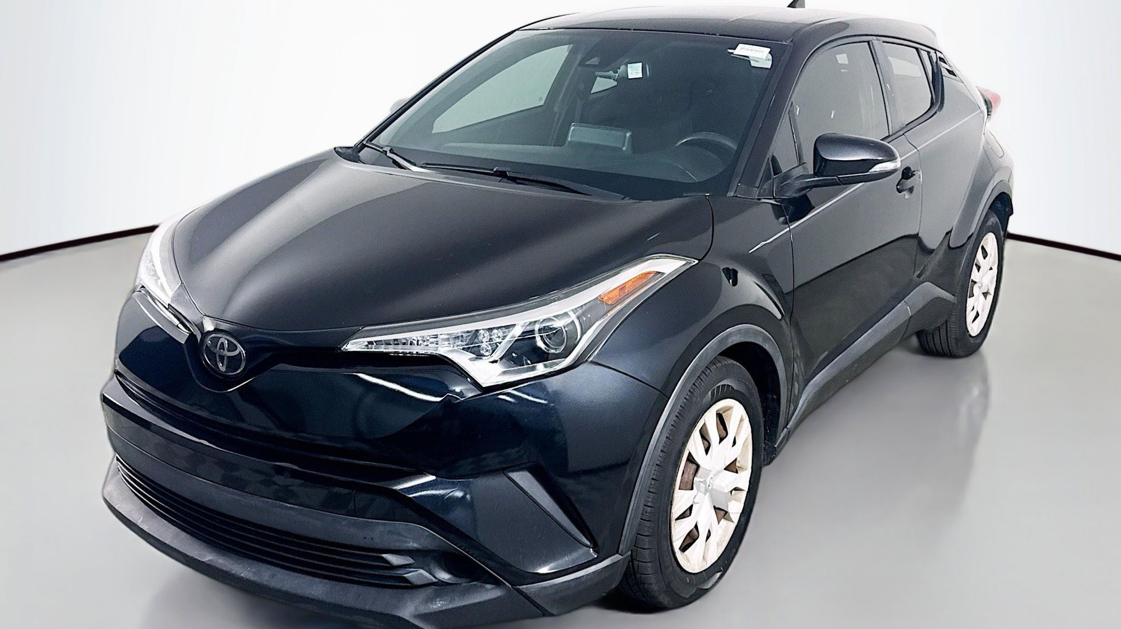 Black Sand Pearl 2019 Toyota C-HR LE FWD CVT 2.0L I4 DOHC 16V 17 Steel Wheels, 4-Wheel Disc Brakes, 6 Speakers, ABS brakes, Air Conditioning, AM/FM radio, AM/FM Stereo, Apple CarPlay, Auto High-beam Headlights, Auto-dimming Rear-View mirror, Automatic temperature control, Axle Ratio: TBD, Brake assist, Bumpers: body-color, Delay-off headlights, Driver door bin, Driver vanity mirror, Dual front impact airbags, Dual front side impact airbags, Electronic Stability Control, Exterior Parking Camera Rear, Fabric Seat Material, Four wheel independent suspension, Front anti-roll bar, Front Bucket Seats, Front Center Armrest, Front dual zone A/C, Front reading lights, Fully automatic headlights, Heated door mirrors, Illuminated entry, Knee airbag, Low tire pressure warning, Occupant sensing airbag, Outside temperature display, Overhead airbag, Panic alarm, Passenger door bin, Passenger vanity mirror, Power door mirrors, Power steering, Power windows, Radio data system, Rear anti-roll bar, Rear side impact airbag, Rear window defroster, Rear window wiper, Remote keyless entry, Speed control, Speed-sensing steering, Split folding rear seat, Spoiler, Steering wheel mounted audio controls, Tachometer, Telescoping steering wheel, Tilt steering wheel, Traction control, Trip computer, Turn signal indicator mirrors, Variably intermittent wipers.