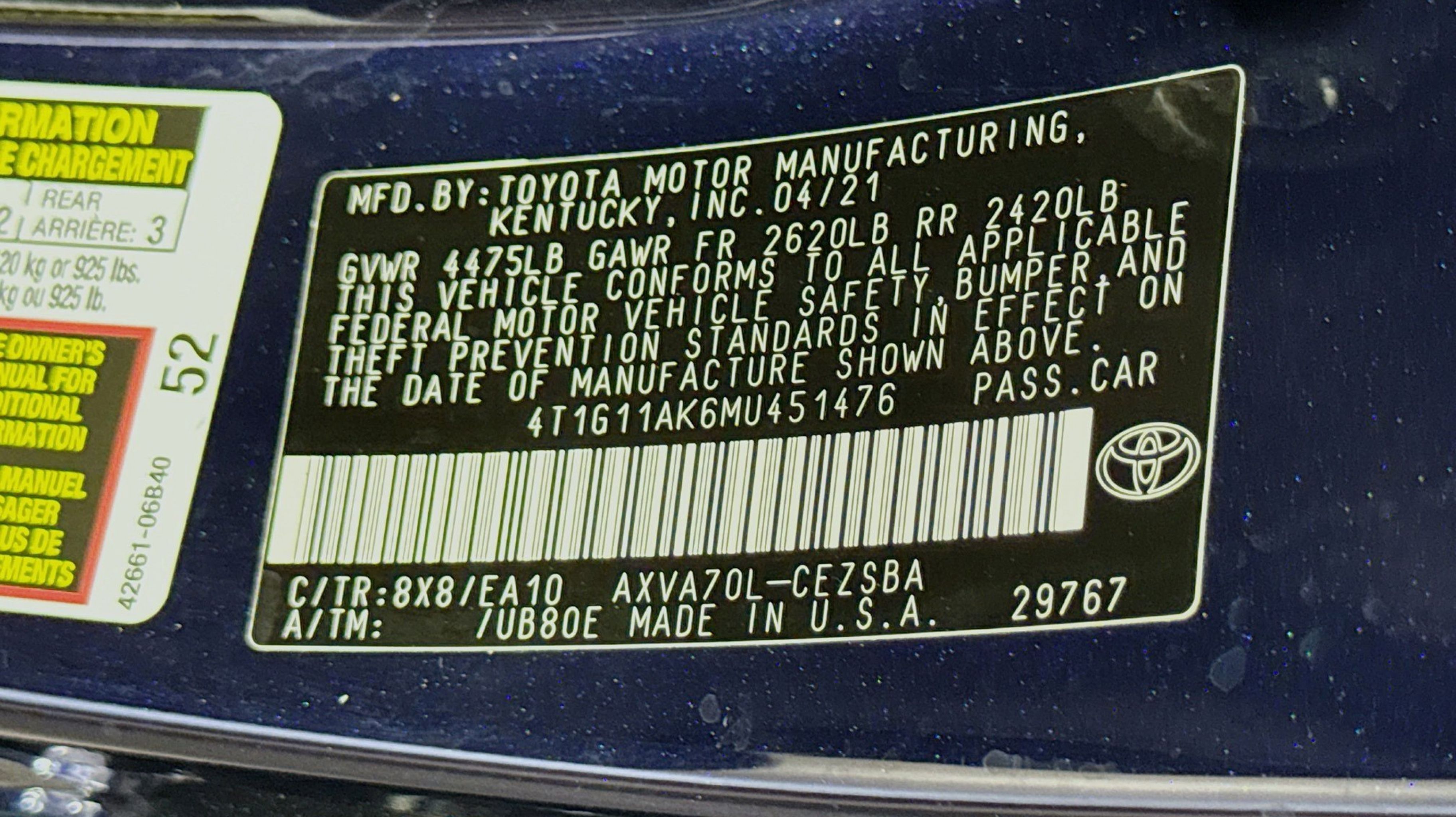 Clean CARFAX. Ash w/Fabric Seat Trim, 4-Wheel Disc Brakes, 6 Speakers, ABS brakes, Air Conditioning, Alloy wheels, AM/FM radio: SiriusXM, Apple CarPlay/Android Auto, Auto High-beam Headlights, Automatic temperature control, Brake assist, Bumpers: body-color, Delay-off headlights, Driver door bin, Driver vanity mirror, Dual front impact airbags, Dual front side impact airbags, Electronic Stability Control, Emergency communication system: Safety Connect with 1-year trial, Exterior Parking Camera Rear, Fabric Seat Trim w/Sport SofTex, Four wheel independent suspension, Front anti-roll bar, Front Bucket Seats, Front Center Armrest, Front reading lights, Fully automatic headlights, Illuminated entry, Knee airbag, Low tire pressure warning, Occupant sensing airbag, Outside temperature display, Overhead airbag, Overhead console, Panic alarm, Passenger door bin, Passenger vanity mirror, Power door mirrors, Power driver seat, Power steering, Power windows, Radio data system, Radio: AM/FM Audio System, Rear anti-roll bar, Rear seat center armrest, Rear side impact airbag, Rear window defroster, Remote keyless entry, Security system, Speed control, Speed-sensing steering, Split folding rear seat, Spoiler, Steering wheel mounted audio controls, Tachometer, Telescoping steering wheel, Tilt steering wheel, Traction control, Trip computer, Variably intermittent wipers, Wheels: 8.0J x 18 Black Machined-Finish Alloy, Ash w/Fabric Seat Trim. Odometer is 30974 miles below market average!