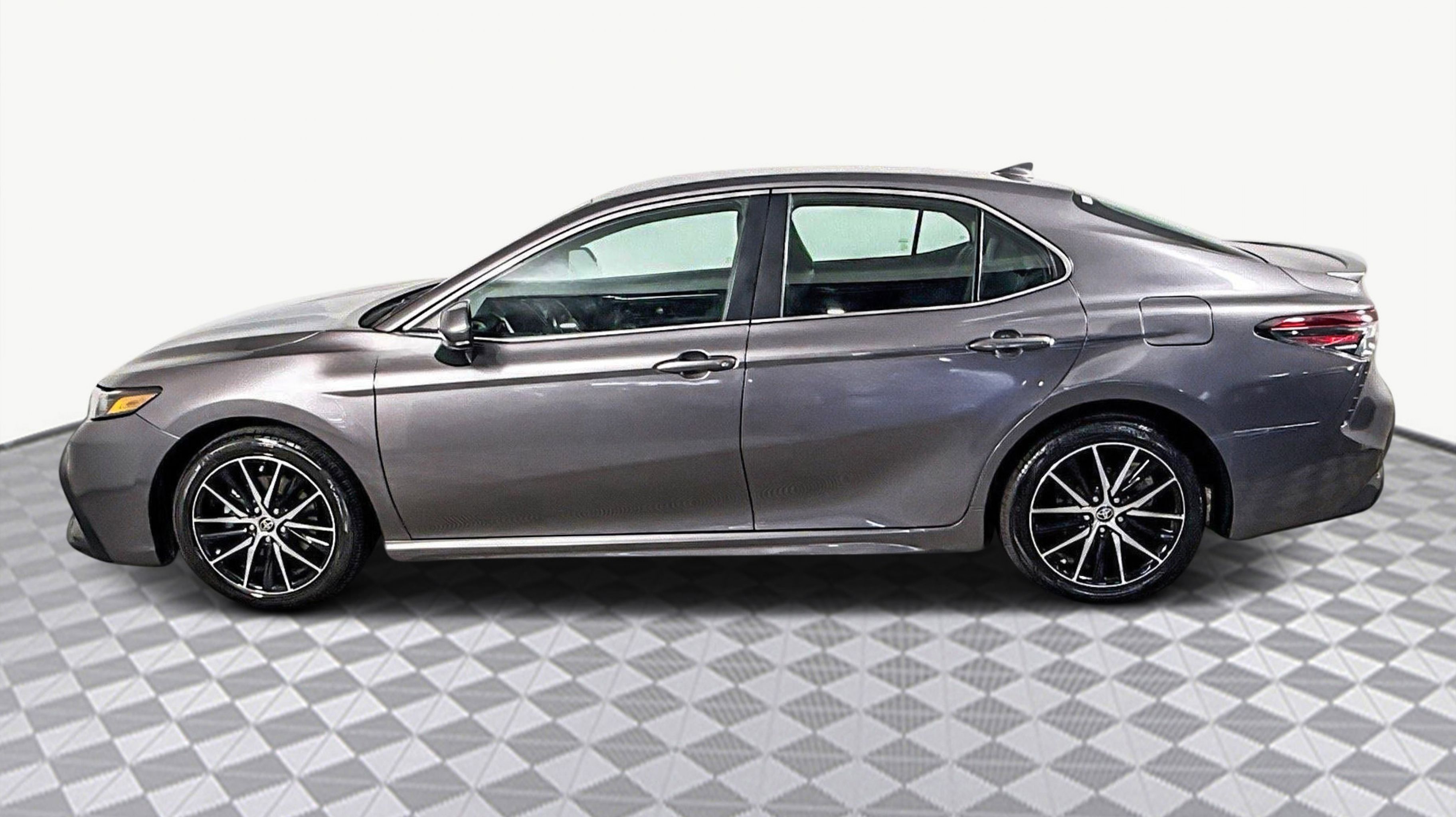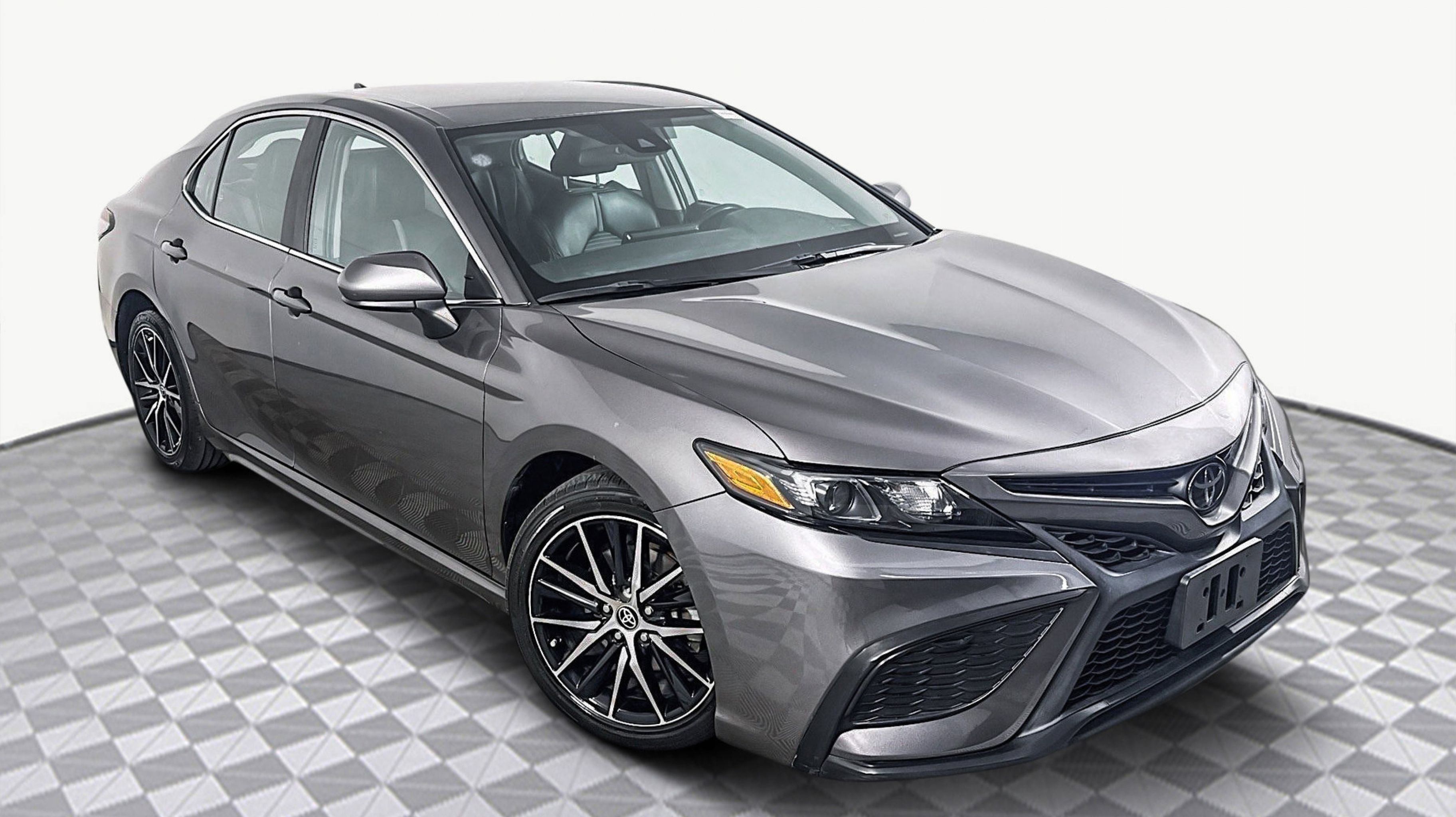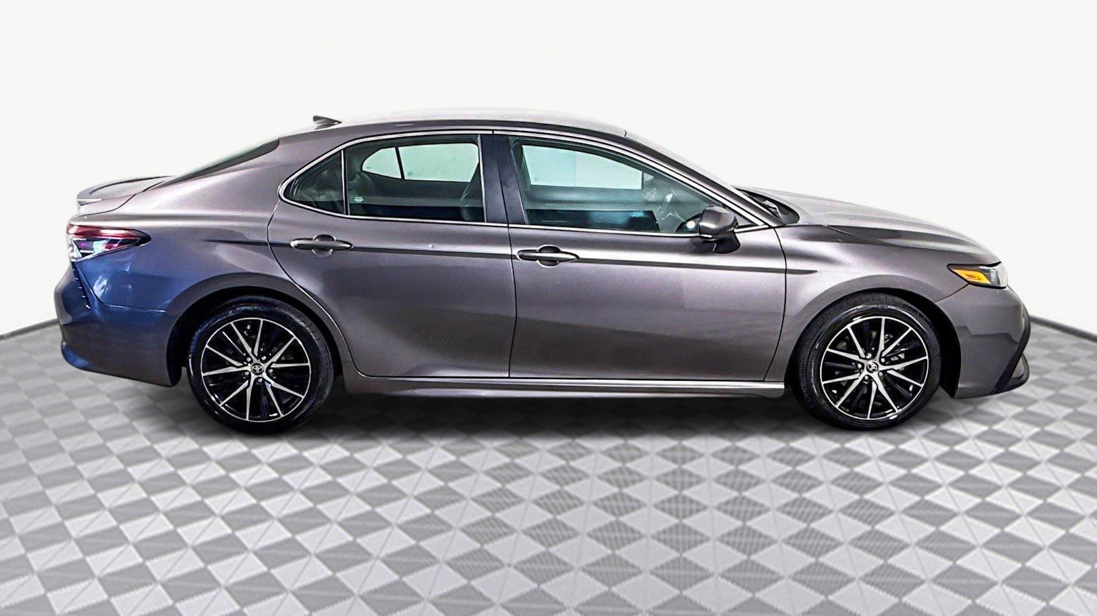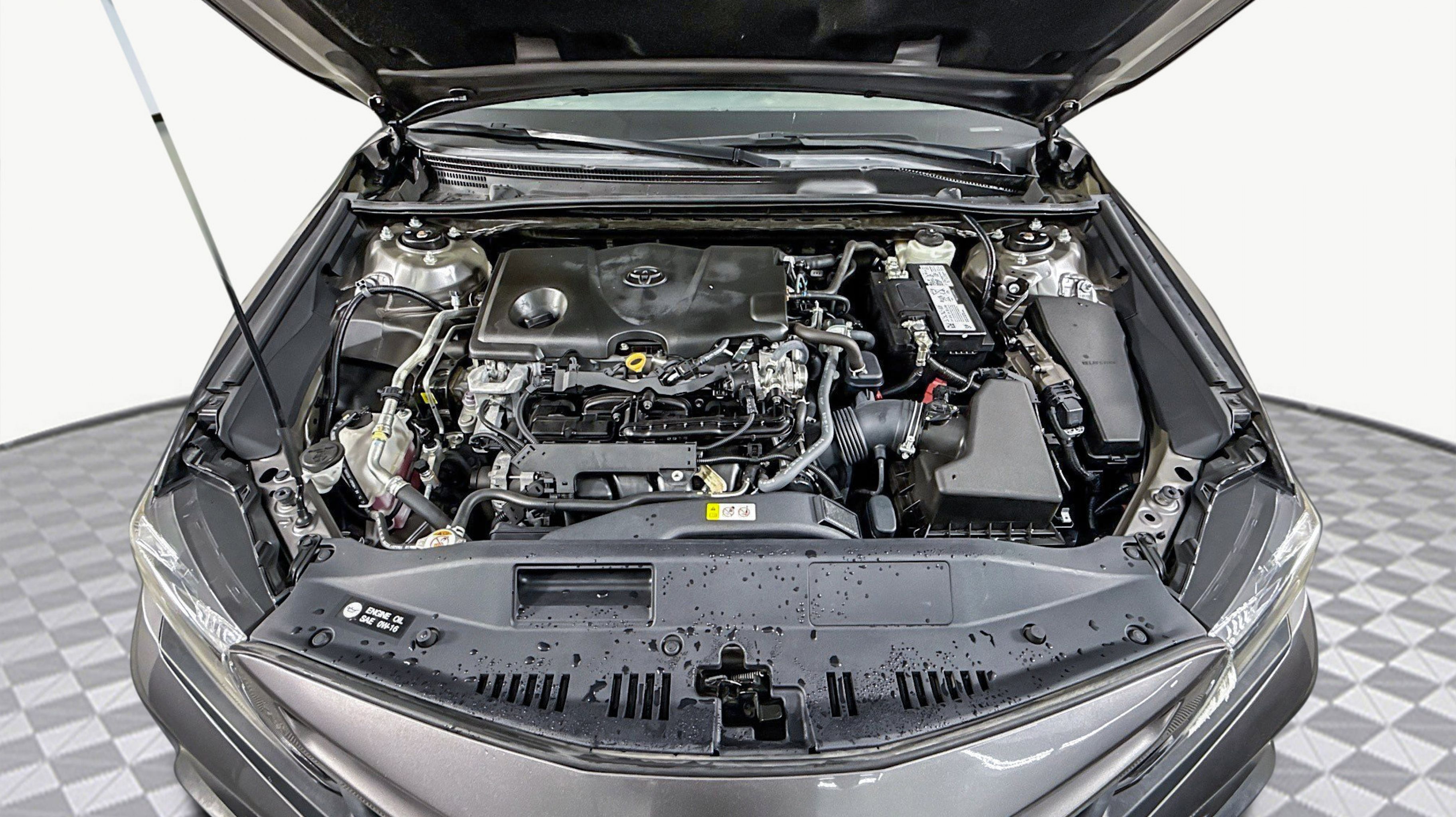 Predawn Gray Mica 2021 Toyota Camry SE FWD 8-Speed Automatic 2.5L I4 DOHC 16V Black w/Fabric Seat Trim, 4-Wheel Disc Brakes, 6 Speakers, ABS brakes, Air Conditioning, Alloy wheels, AM/FM radio: SiriusXM, Apple CarPlay/Android Auto, Auto High-beam Headlights, Automatic temperature control, Brake assist, Bumpers: body-color, Delay-off headlights, Driver door bin, Driver vanity mirror, Dual front impact airbags, Dual front side impact airbags, Electronic Stability Control, Emergency communication system: Safety Connect with 1-year trial, Exterior Parking Camera Rear, Fabric Seat Trim w/Sport SofTex, Four wheel independent suspension, Front anti-roll bar, Front Bucket Seats, Front Center Armrest, Front reading lights, Fully automatic headlights, Illuminated entry, Knee airbag, Low tire pressure warning, Occupant sensing airbag, Outside temperature display, Overhead airbag, Overhead console, Panic alarm, Passenger door bin, Passenger vanity mirror, Power door mirrors, Power driver seat, Power steering, Power windows, Radio data system, Radio: AM/FM Audio System, Rear anti-roll bar, Rear seat center armrest, Rear side impact airbag, Rear window defroster, Remote keyless entry, Security system, Speed control, Speed-sensing steering, Split folding rear seat, Spoiler, Steering wheel mounted audio controls, Tachometer, Telescoping steering wheel, Tilt steering wheel, Traction control, Trip computer, Variably intermittent wipers, Wheels: 8.0J x 18 Black Machined-Finish Alloy, Black w/Fabric Seat Trim.